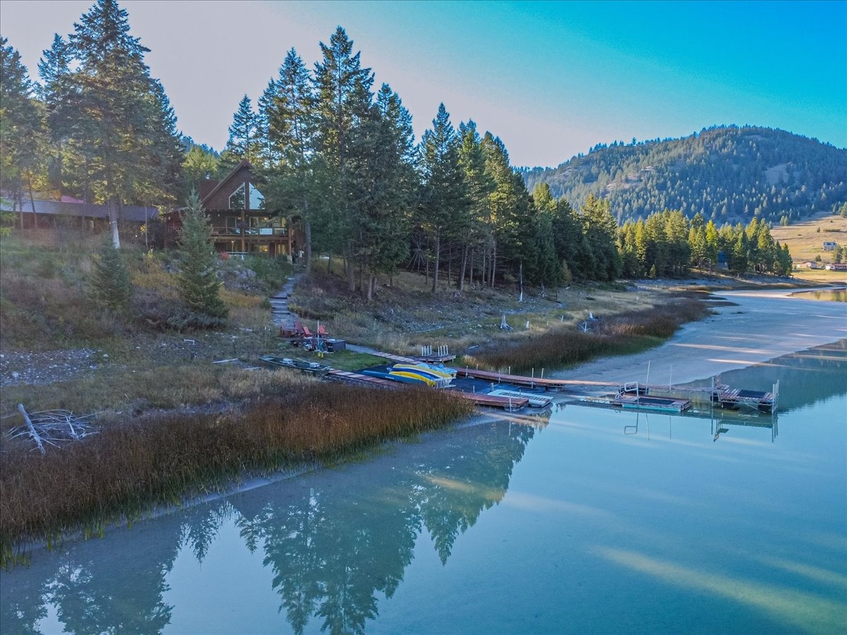 Discover your Montana dream with this stunning Cedar Lake House and Hobby Farm on the shores of Othorp Lake. Over 6 wooded and secluded acres of waterfront living. The home features vaulted ceilings with floor-to-ceiling windows that showcase tranquil lake and forest views. Step outside to grill on the covered deck or relax in the hot tub or by one of two firepits. For those who enjoy gardening and self-sufficiency, the property includes a greenhouse, a fenced garden area, barn with chicken coop, and an insulated and heated garage with shop, hobby room, and a climate-controlled storage area. Additional highlights include in-ground sprinklers, boat dock, and the inclusion of most furniture, tools, and watercraft, making this turn-key property ready for you to start living the lake lifestyle. This exceptional property blends natural beauty, privacy, and practical amenities—ideal as a full-time residence, weekend getaway, or hobby farm retreat.