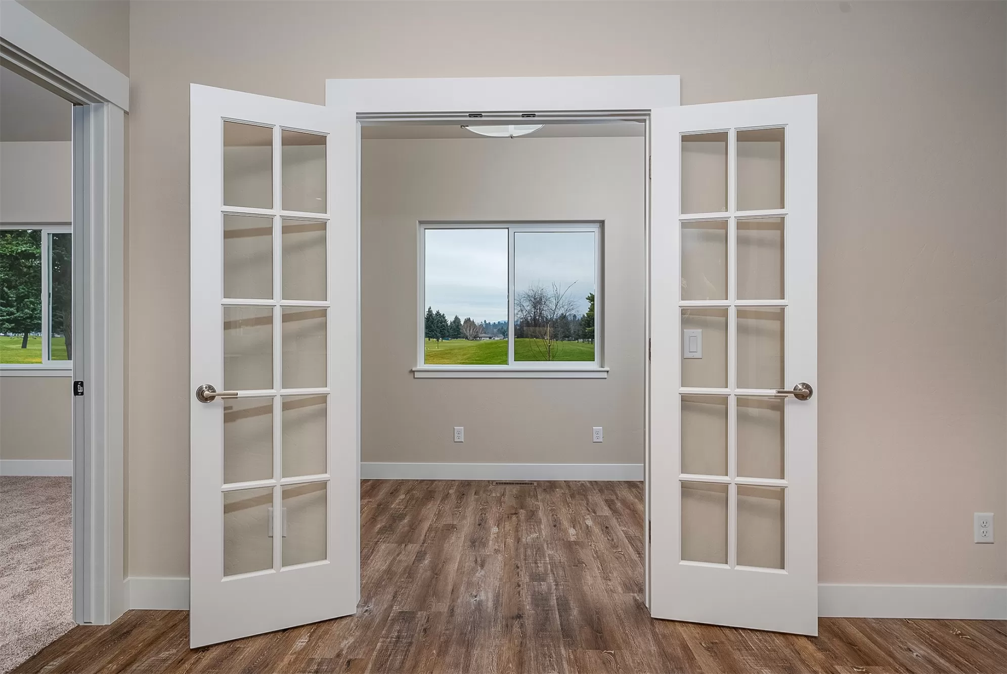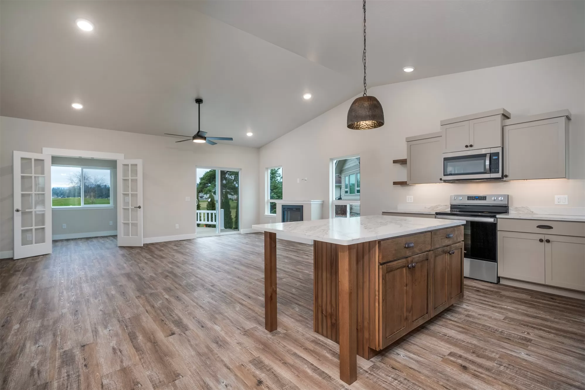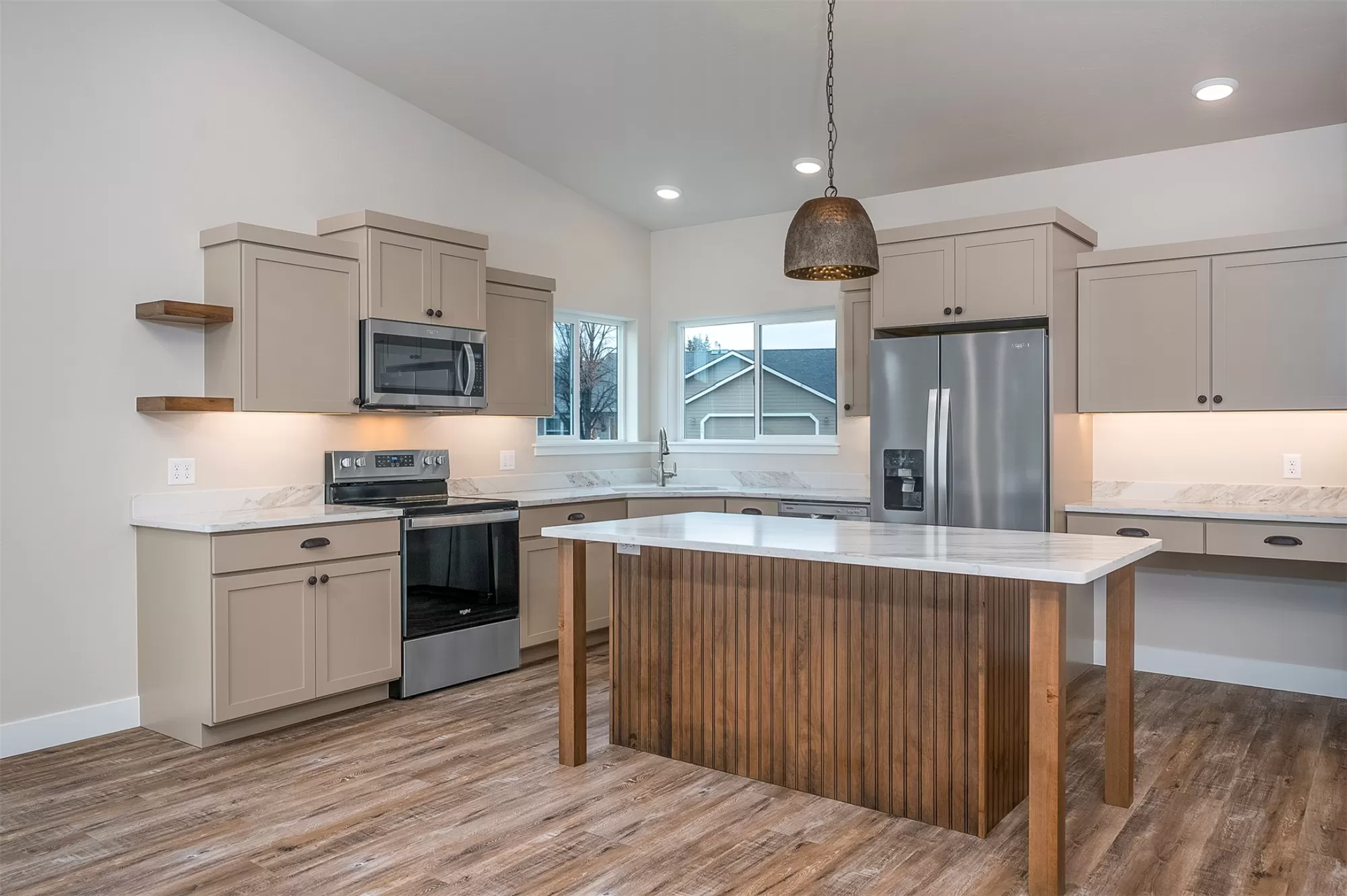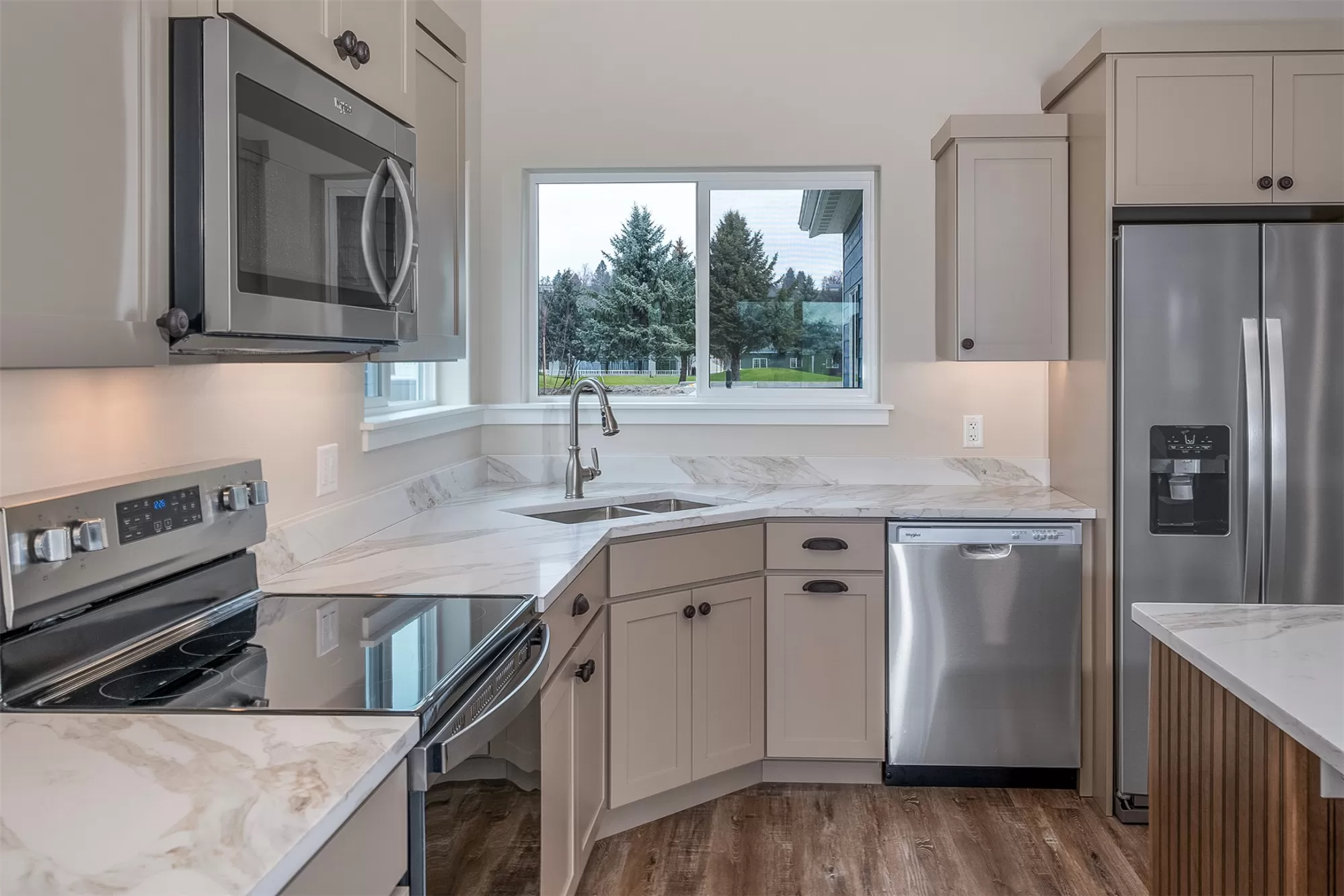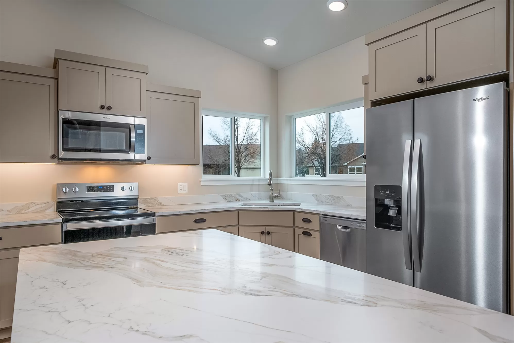 It's a beautiful life in this spacious single level townhouse! Serene, golf course greenery surrounds your home and you are close to shopping, airport, hospital and Glacier National Park! Stainless appliances and plenty of space in your fresh, bright kitchen. Easy entertaining with open concept vaulted ceilings in the kitchen, living and dining room. Heated floors in your primary en suite bath. Low maintenance exterior equipped with stone accents and sprinkler system.