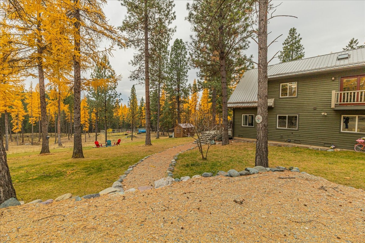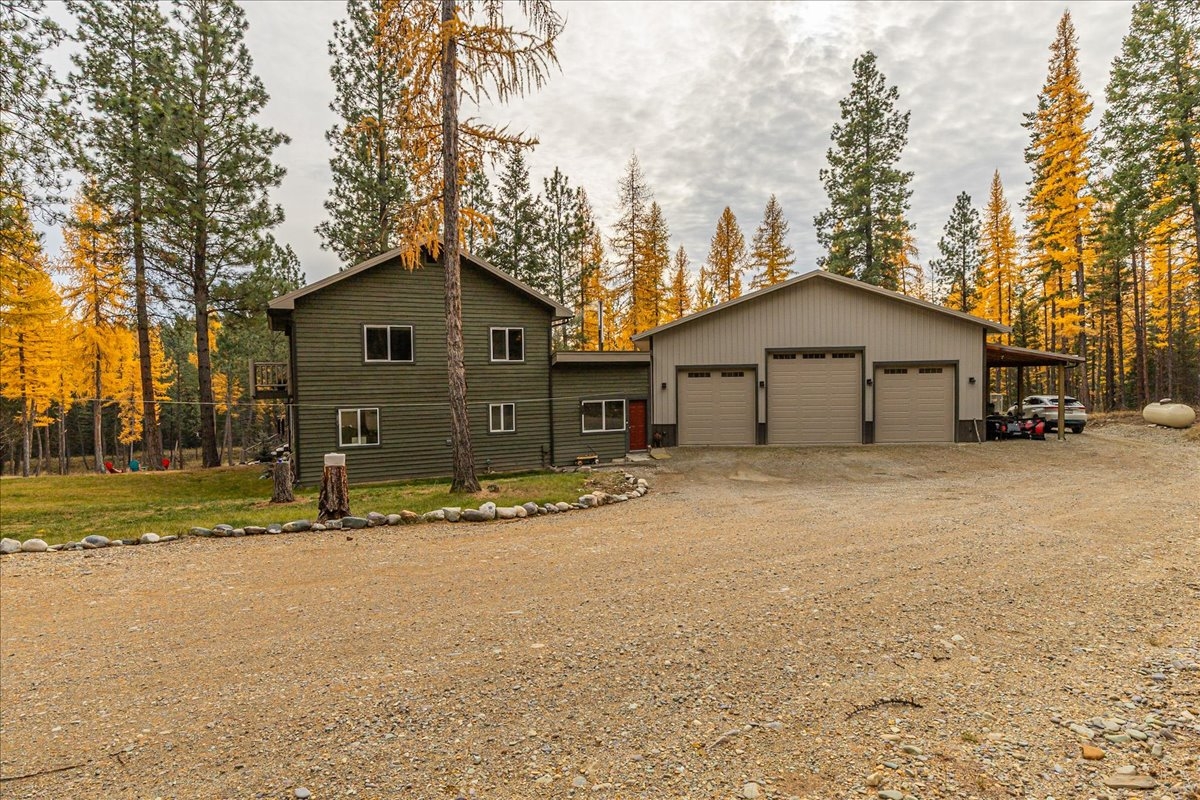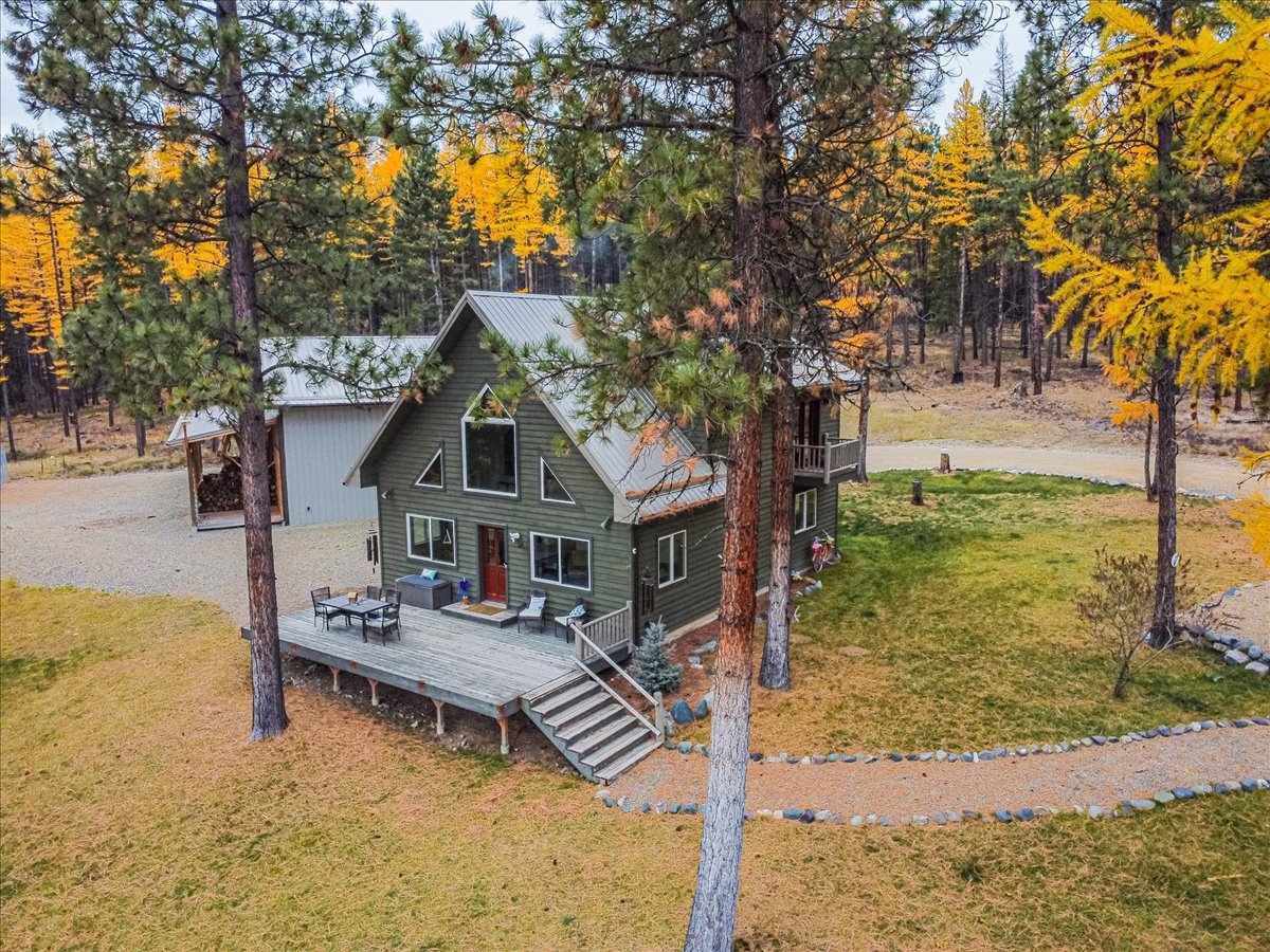 This exceptional Montana property checks every box on your wish list! Tucked away at the end of a private road, this beautifully remodeled home is surrounded by a mature forest laced with natural springs, a creek and an irrigation canal—the perfect blend of seclusion and convenience. Located just minutes from town and Glen Lake and bordering Forest Service land, this property offers endless opportunities for outdoor recreation right from your doorstep. Step inside the completely remodeled living space, featuring high-quality finishes and a warm rustic-modern design. Enjoy granite countertops, tile and hardwood floors, wood doors and trim and custom cabinetry throughout. The luxurious master suite includes a private balcony, spa-style bath and walk-in closet—your perfect retreat. A dream for hobbyists or professionals alike, the attached shop measures 32' x 42' with two 10x10 doors and one 12x12 door, plus an impressive 84-foot carport for additional storage or parking. The property also includes irrigation water and rights for use, ensuring lush landscaping or agricultural potential with a reliable water source from the on-site canal. Relax and take in the mountain air from the large front deck, or gather around the fire pit with loved ones. A graveled walking path leads you to the water, where tranquility and natural beauty abound.