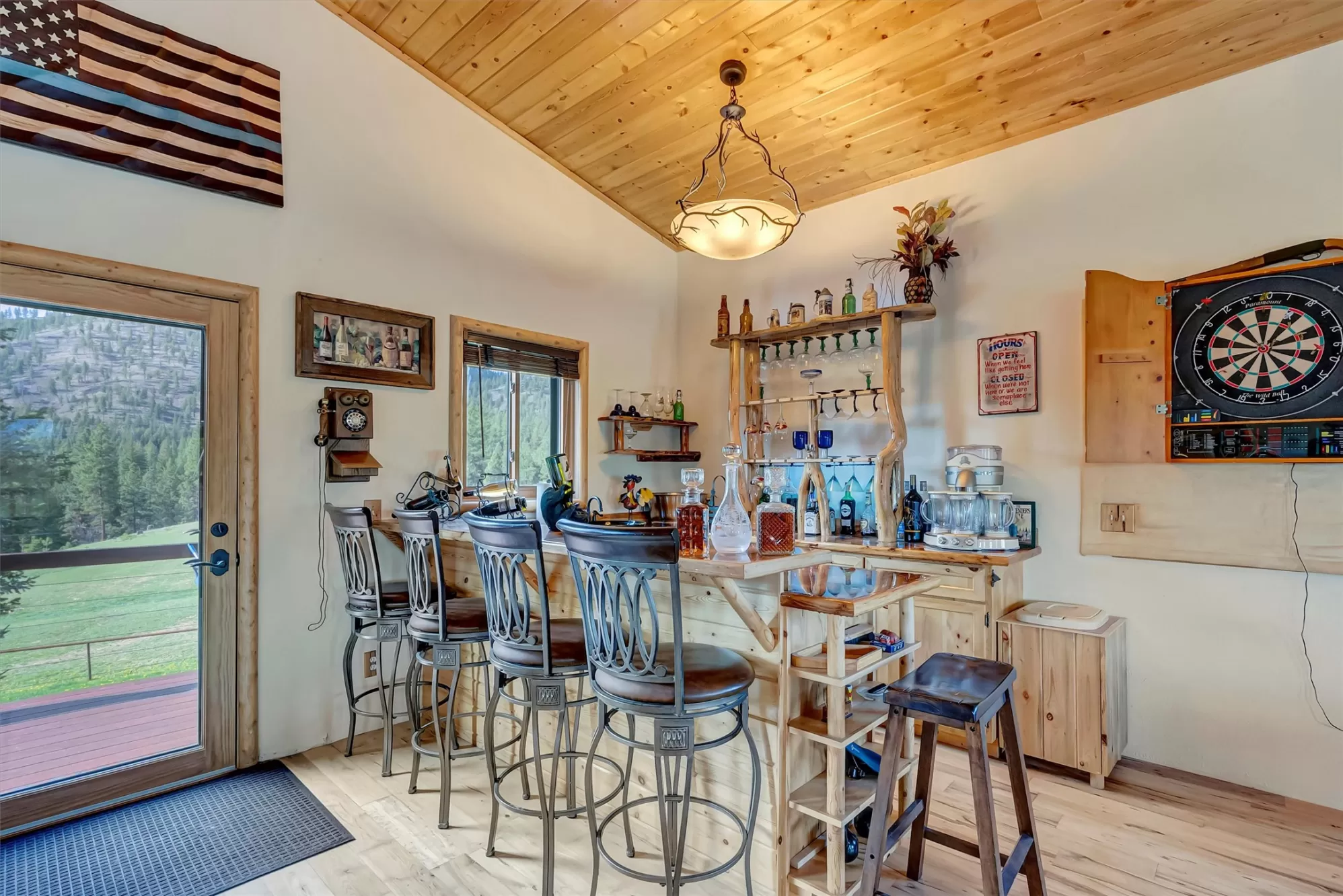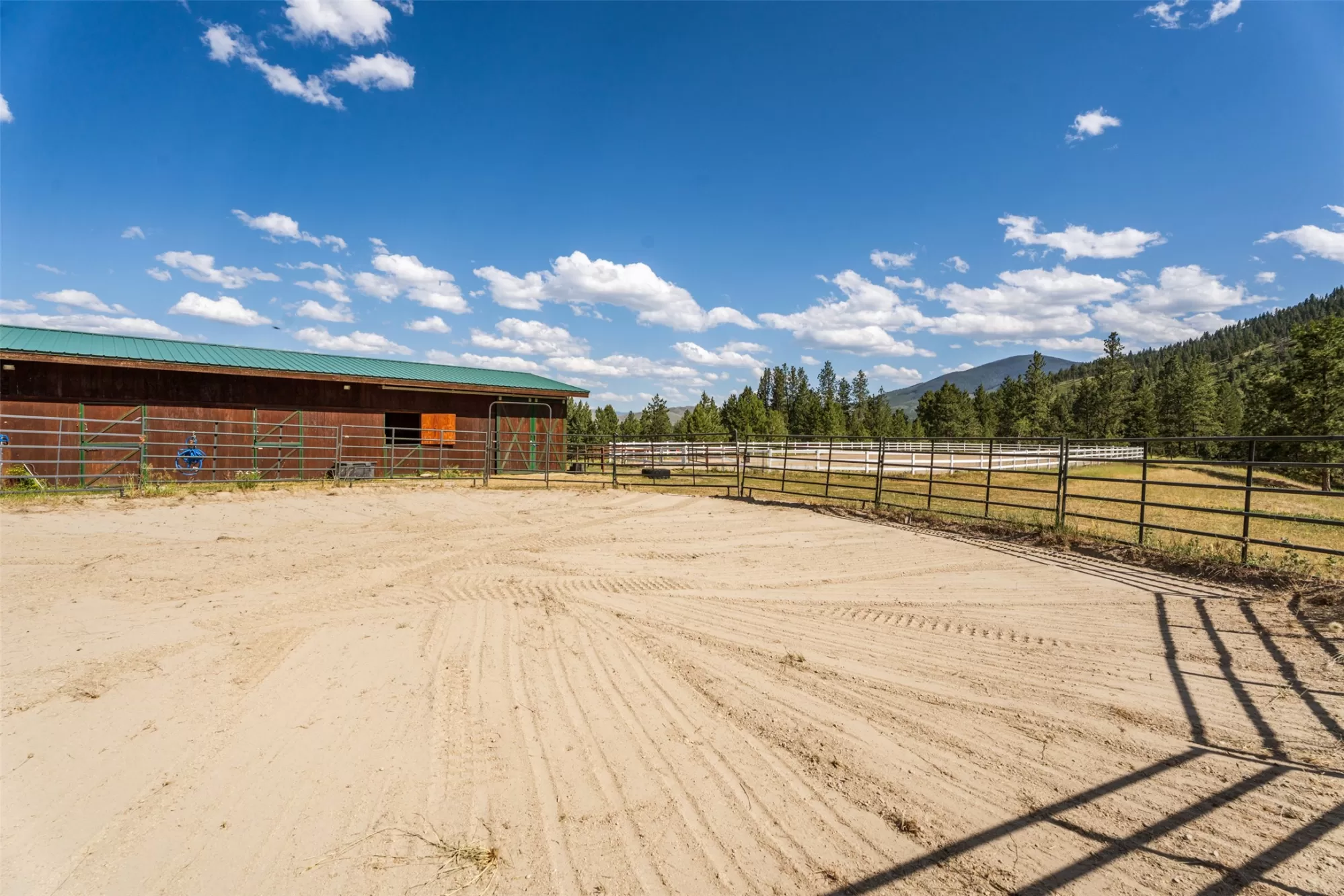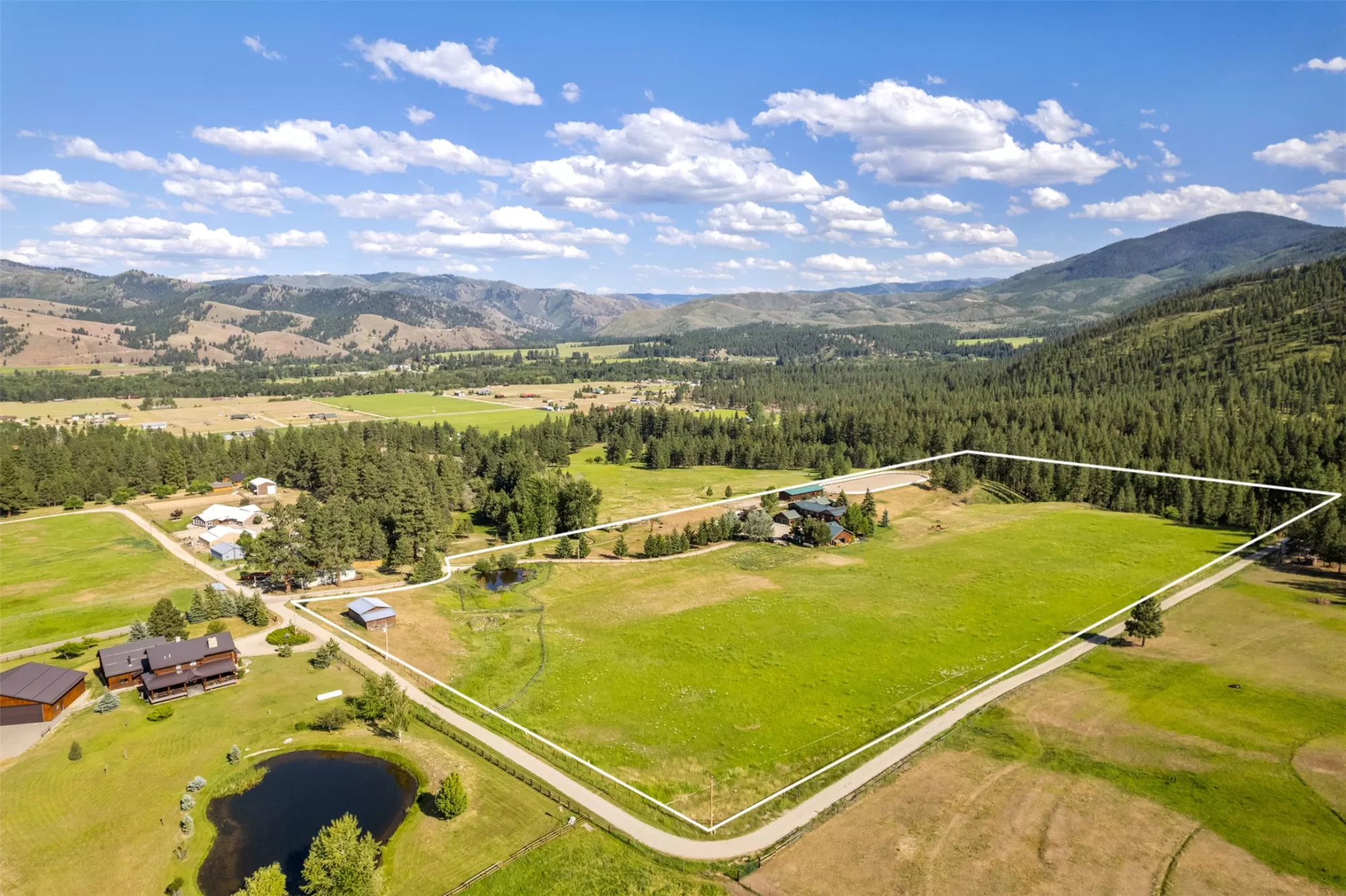 No trailering required—miles of unrestricted riding and fully horse-ready from day one with steel pipe fencing, 5-stall barn, arena, round corral, irrigated hay ground, 19.55-acres and direct access to Bitterroot National Forest. Live Montana’s ultimate equestrian lifestyle — where scenic privacy meets endless miles of trails. Ride straight into the U.S. Forest Service trails from your gate, or relax in your private sauna after a day exploring the mountain air. This country estate is a custom-designed masterpiece of western living, featuring four bedrooms, bonus room, office, game room with wet bar and wine fridge, a cozy library nook, double garage as well as two full guest apartments, and heated workshop. Perfect for equestrians, multi-generational living, or as a legacy retreat with income potential. Located minutes from Chief Joseph Ranch, Lake Como, and Lost Trail Ski Area, this property offers year-round recreation and luxurious self-sufficiency — all under Montana’s big sky. This is more than a home—it’s a self-sustaining retreat built for adventure, serenity, and lasting legacy under the Big Sky. Fish the legendary West Fork of the Bitterroot River in less than five minutes, ski Lost Trail Powder Mountain in just 30, or simply enjoy the peace and privacy of your own mountain retreat, complete with panoramic views, lush irrigated pasture, and three ponds. Thoughtful details like wrap-around decks, multiple fireplaces, and a private hot tub maximize your connection to nature and the stunning south valley vistas. The home includes a private 1-bedroom guest wing with a full kitchen, bath, and separate entrance. A second fully-equipped studio apartment—an 840 sq ft space above the large detached shop—has served successfully as a vacation rental. Equestrian and ranch amenities include: • 5-stall barn with tack room and hay storage • Large riding arena • Steel pipe fencing • Irrigated pastures • Fenced garden with fertile soil and optimal sunlight Built for self-sufficiency and peace of mind, the property includes solar panels, electric utilities, and a full-home generator for uninterrupted living. Whether you're raising horses, cultivating a garden, or watching elk and deer cross the land at dawn, this property offers an unmatched Montana lifestyle. It’s not just a home—it’s a private sanctuary built for legacy living in Big Sky Country.
