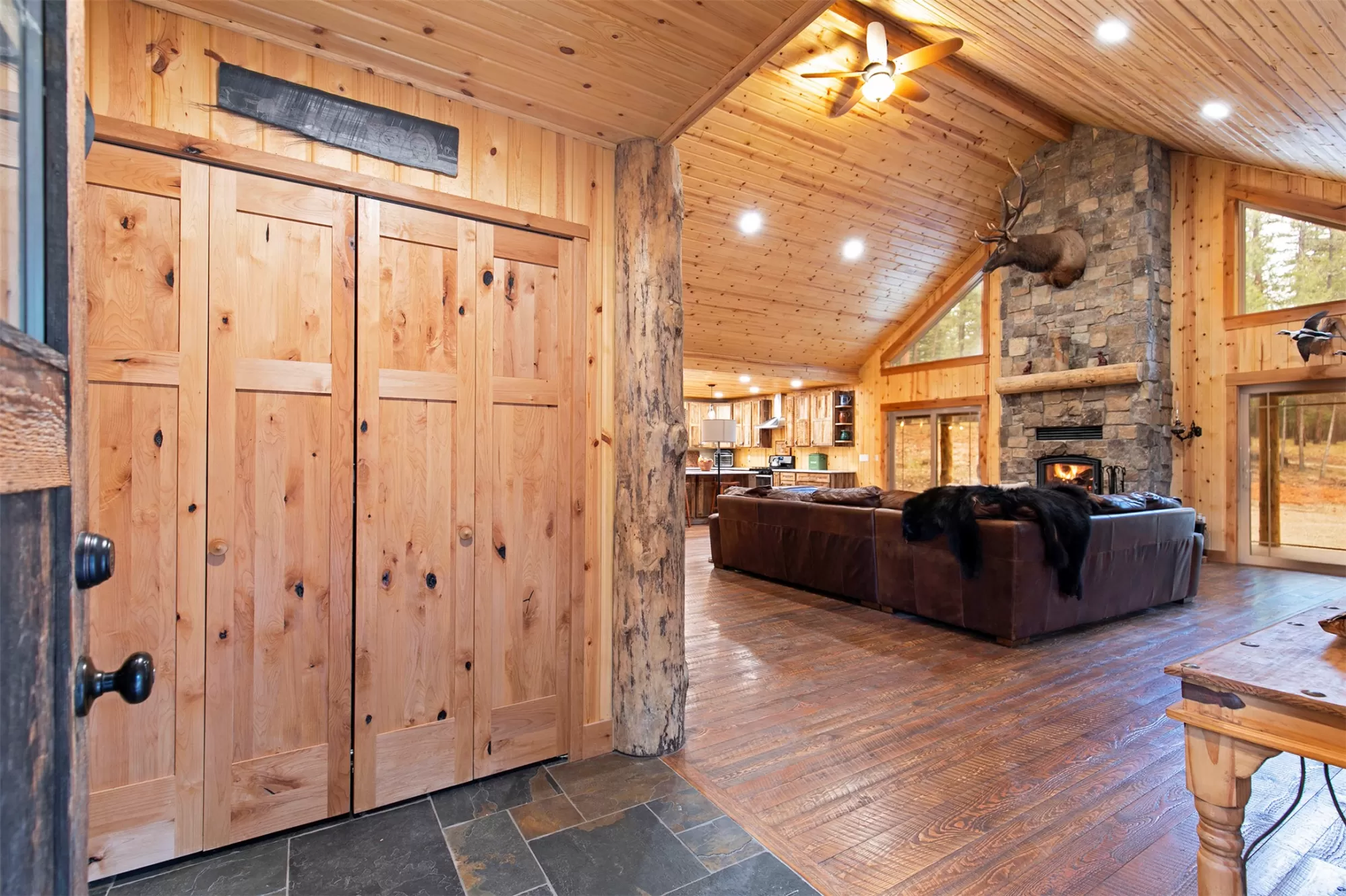 Charming Timber-Frame Haven on 10 Acres in the Heart of Bitterroot Valley. Welcome to a home where rustic elegance meets modern comfort, and where every detail celebrates the beauty of Montana living. This timber-frame gem offers three bedrooms and two baths, set on a sprawling 10 acres of serene, wooded land. As you step inside, you’ll be greeted by a spacious living area with a stunning stone fireplace and a rustic chandelier that adds a touch of elegance. Natural light pours through the expansive windows, making every corner feel warm and inviting. Outside, a wrap-around porch invites you to relax and take in the peaceful, tree-lined surroundings. For those who love both space and function, the property also features a versatile barn-dominium complete with a full kitchen, a three-quarter bath, and ample shop space—perfect for hobbies, projects, or guest accommodations. Additionally, the land has been thoughtfully managed with extensive fire mitigation measures, ensuring that the risk of wildfires is minimized so you can enjoy Montana summers with peace of mind. With a Nature Conservation on the north boundary, National Forest to the west, and a 1200 acre ranch on the south boundary, the wildlife is abundant. Deer and turkey frequent this property, adding to the serenity of living at this peaceful oasis. Views from the north property line are incredible. This property truly captures the essence of Bitterroot Valley living, offering a cozy retreat with both timeless charm and modern safety.