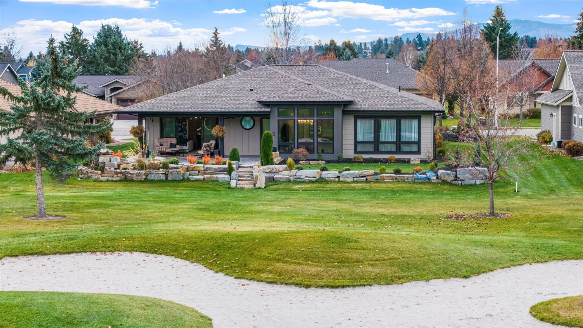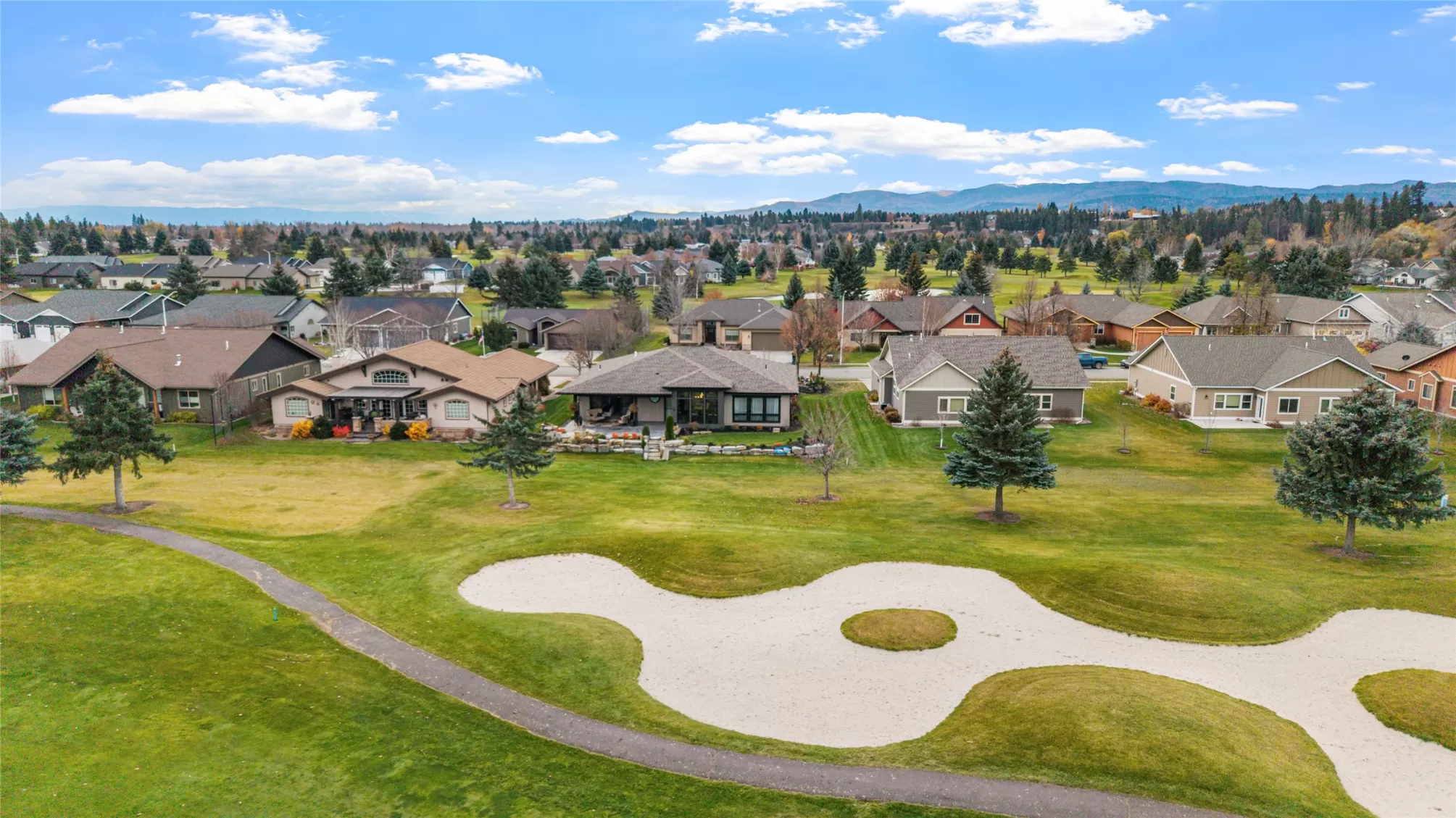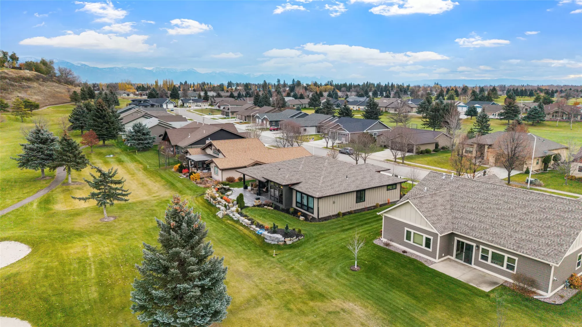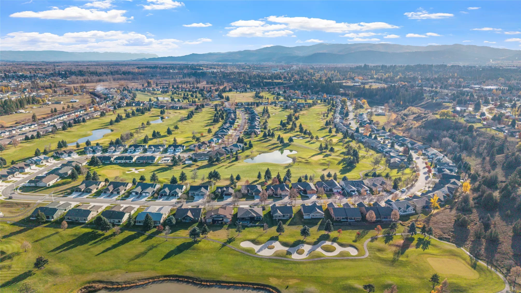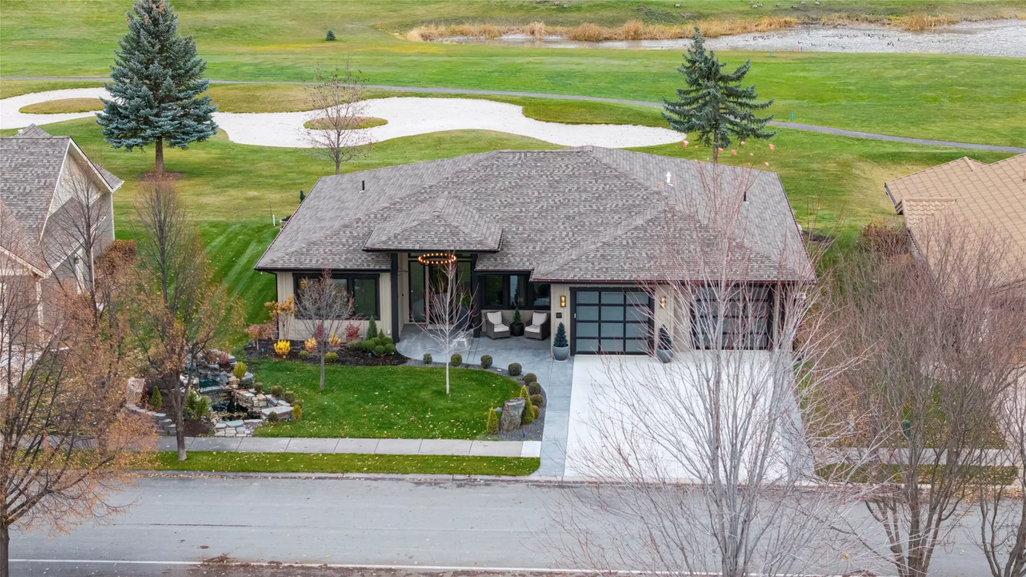 FORE! This is Montana’s premier golf lifestyle at Village Greens, where modern elegance meets effortless living on the 13th hole! This 2022 custom single-level, ADA-compliant 4BD/3BA home offers 2,207 sq ft of open, light-filled design. Expansive floor-to-ceiling glass windows frame fairway views like fine art. The chef’s kitchen features custom shaker cabinets, wet bar, and large island perfect for entertaining. The primary suite is a spa-inspired retreat with soaking tub, walk-in tile shower, dual vanity, and full ADA accessibility with wide doorways and zero-threshold entries. Step outside to a landscaped patio with tranquil water feature overlooking the 13th hole. Heated 2-car garage plus golf cart bay offers hot water, workspace, and sleek glass doors. Close to downtown Kalispell, shopping, dining, and Glacier National Park—luxury, light, and lifestyle combined.