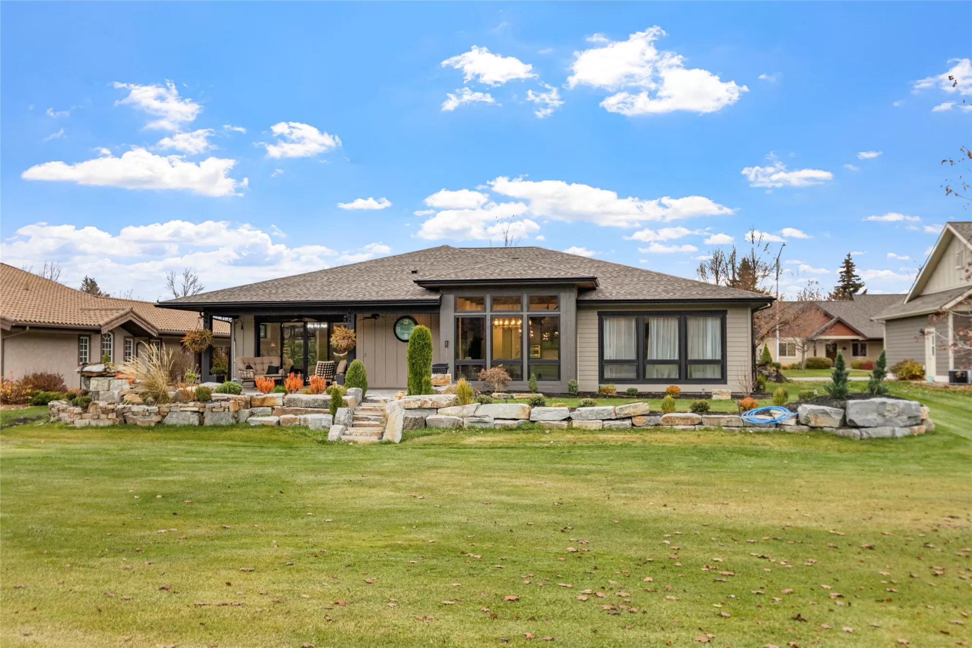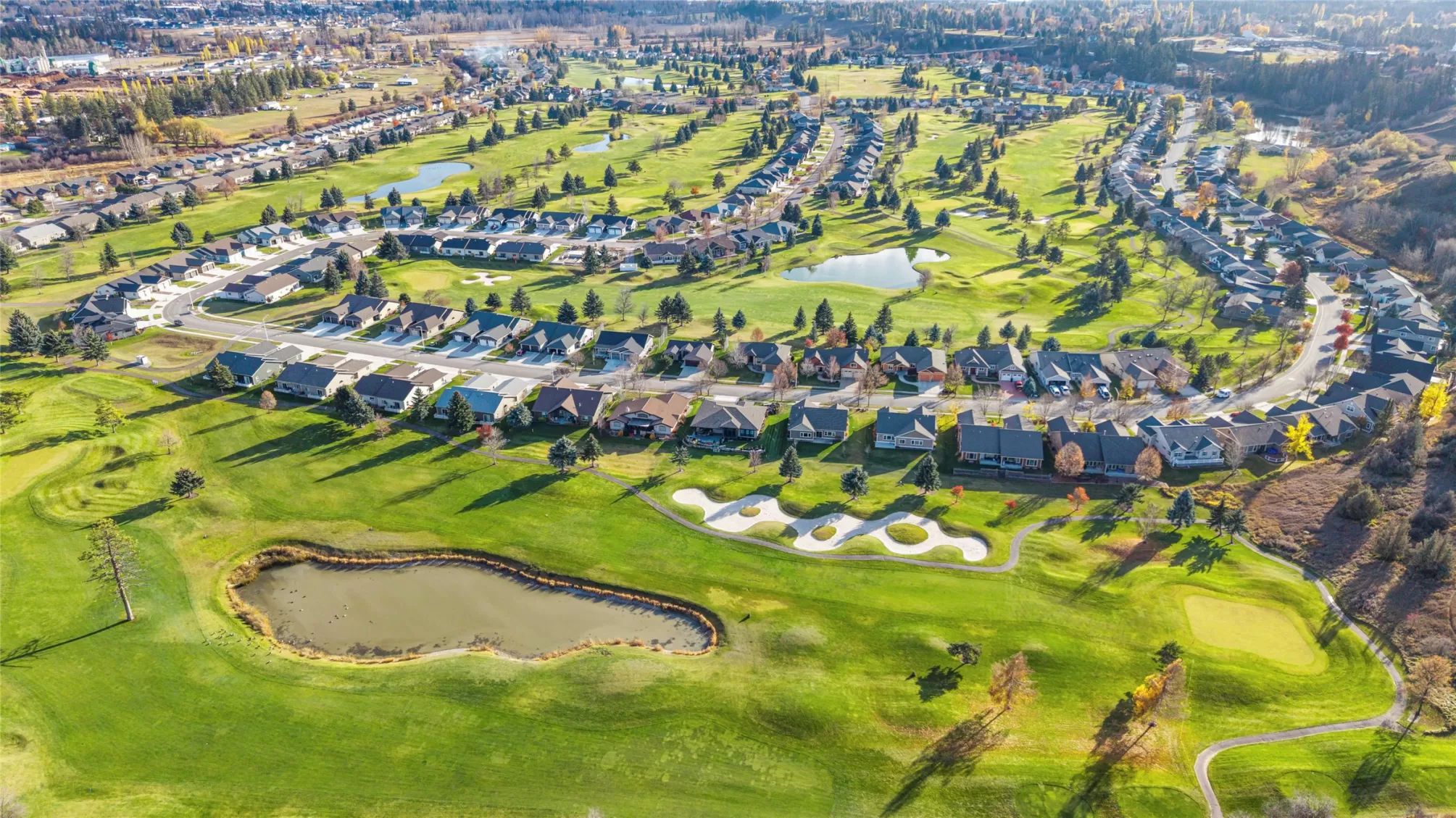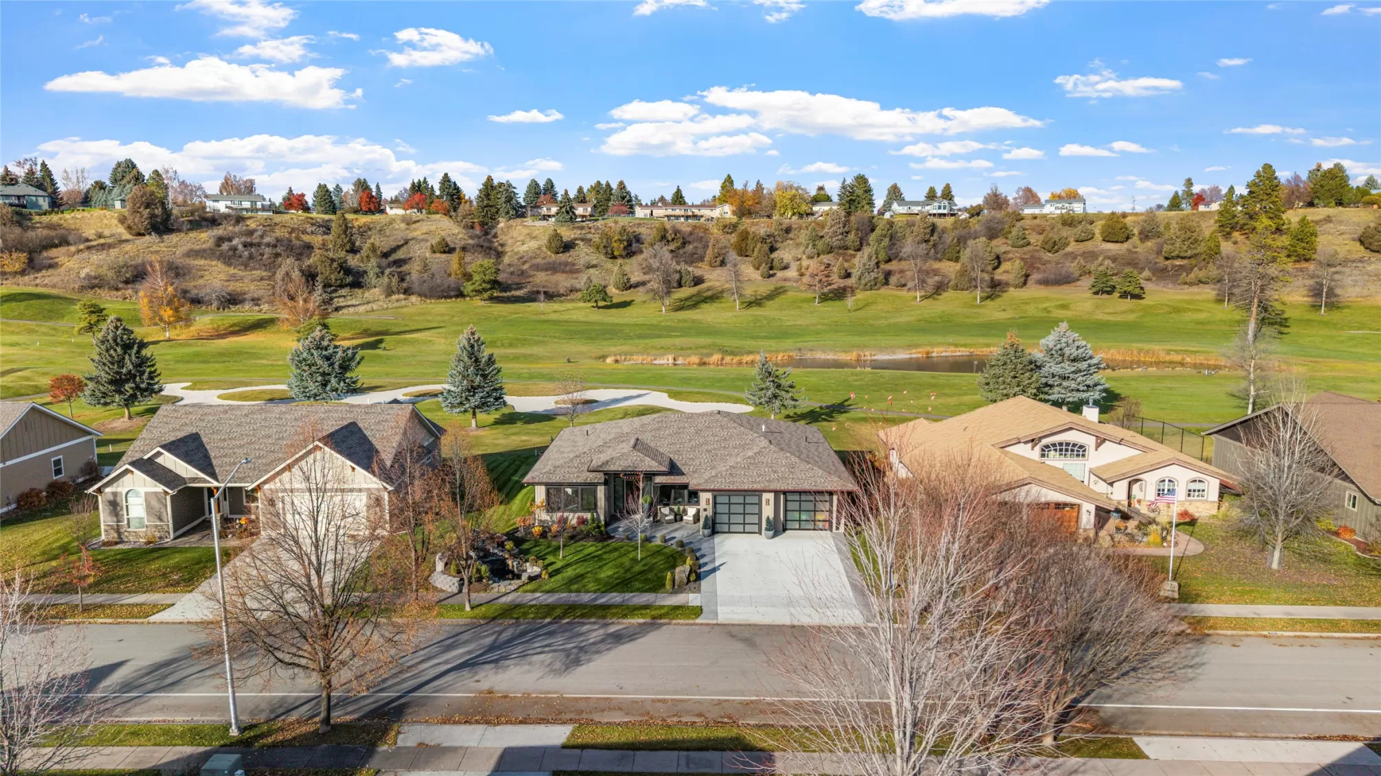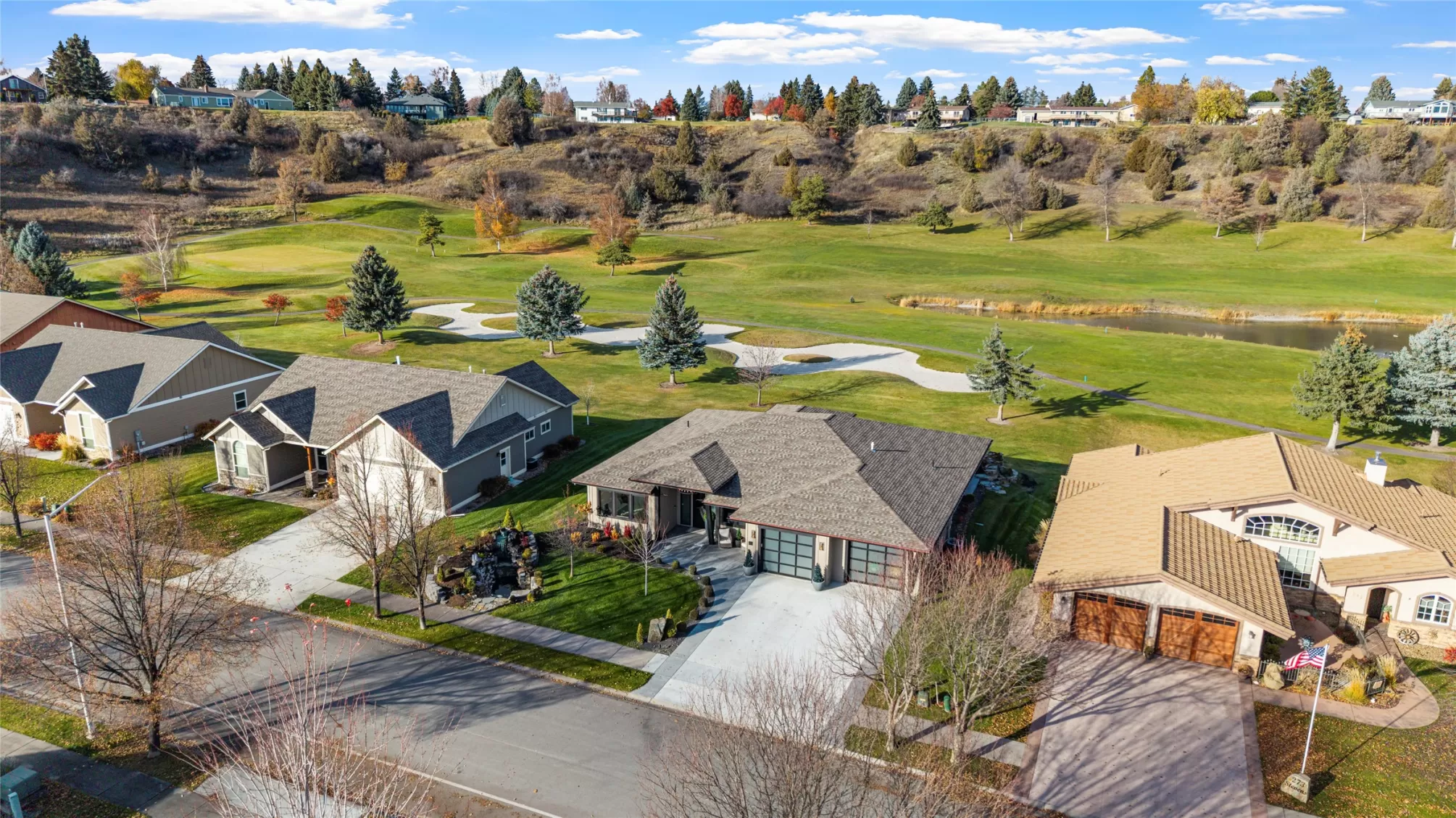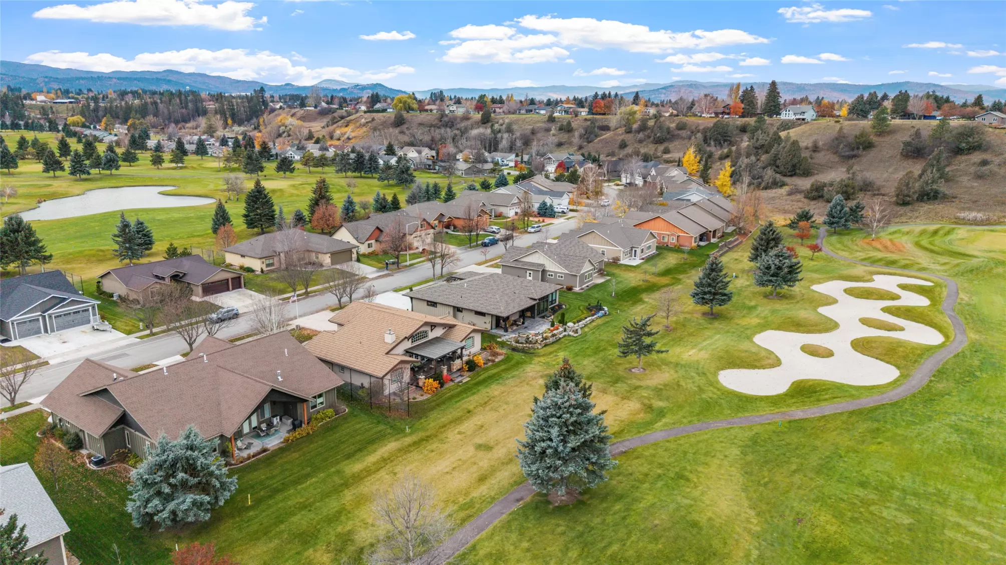 FORE! This is Montana’s premier golf lifestyle at Village Greens, where modern elegance meets effortless living on the 13th hole! This 2022 custom single-level, ADA-compliant 4BD/3BA home offers 2,207 sq ft of open, light-filled design. Expansive floor-to-ceiling glass windows frame fairway views like fine art. The chef’s kitchen features custom shaker cabinets, wet bar, and large island perfect for entertaining. The primary suite is a spa-inspired retreat with soaking tub, walk-in tile shower, dual vanity, and full ADA accessibility with wide doorways and zero-threshold entries. Step outside to a landscaped patio with tranquil water feature overlooking the 13th hole. Heated 2-car garage plus golf cart bay offers hot water, workspace, and sleek glass doors. Close to downtown Kalispell, shopping, dining, and Glacier National Park—luxury, light, and lifestyle combined.