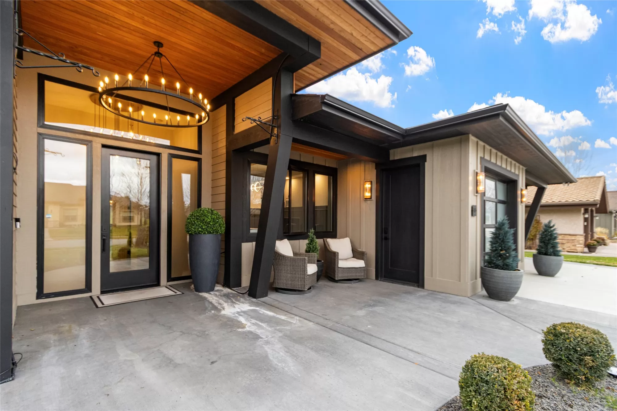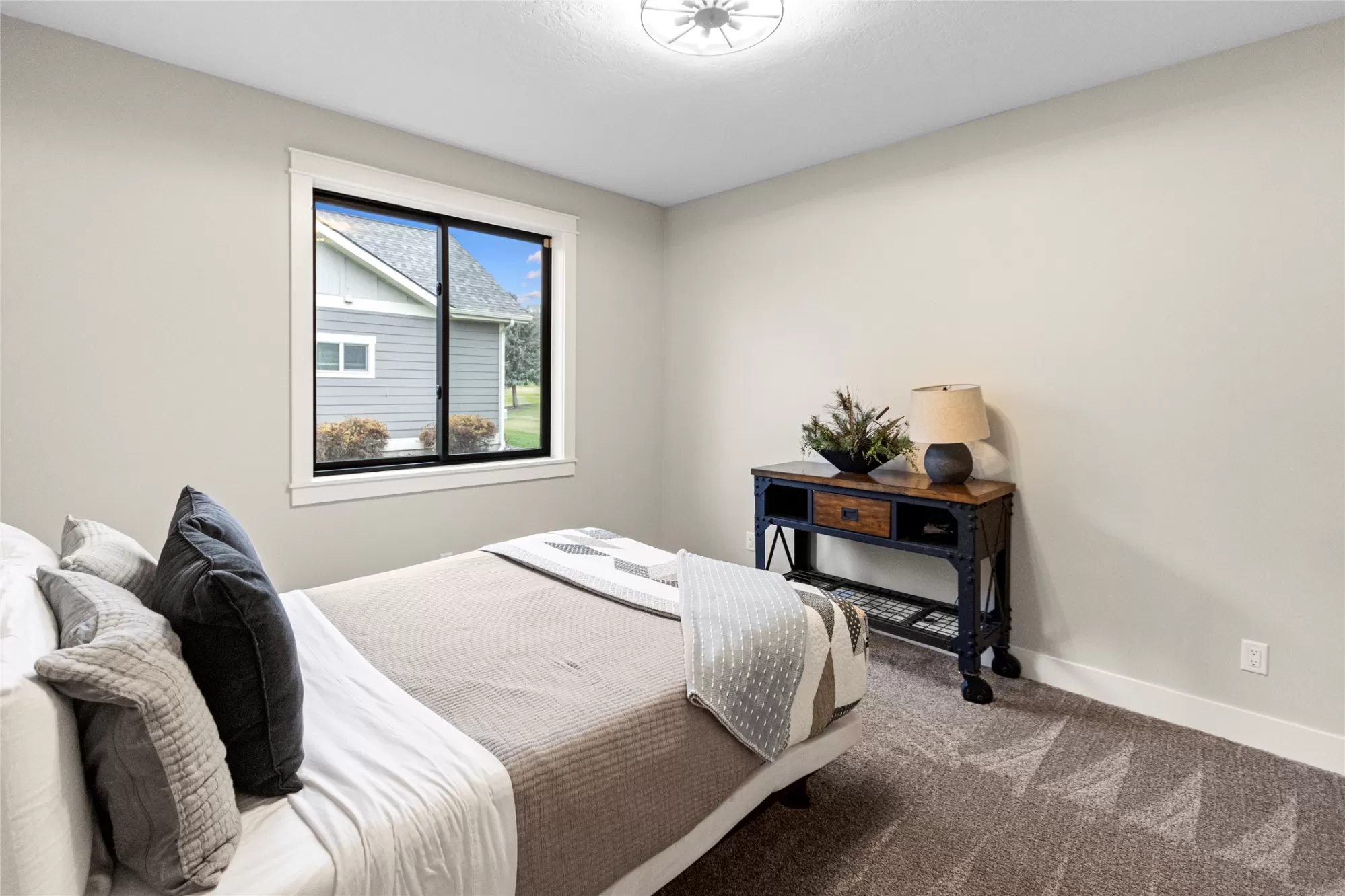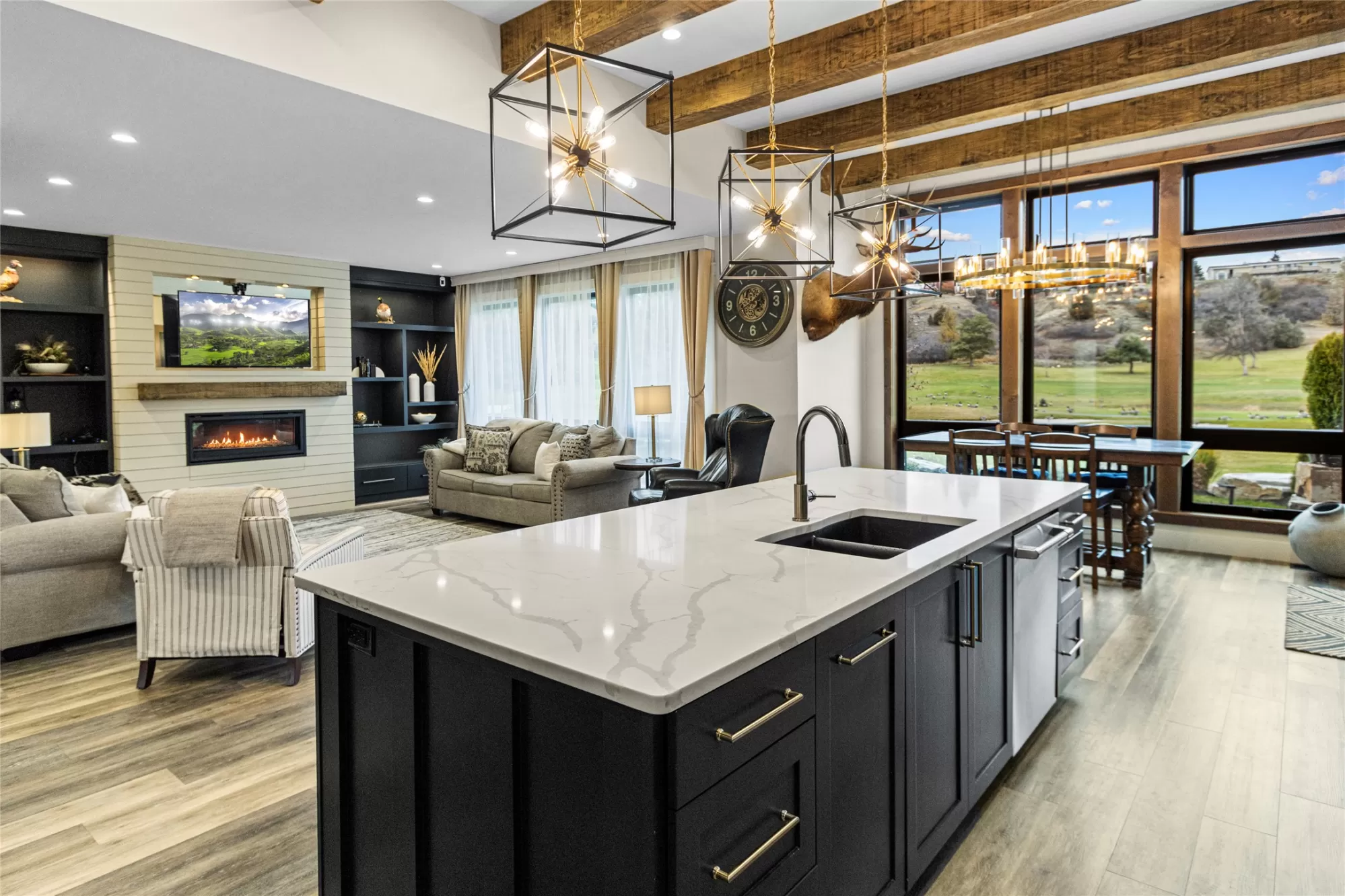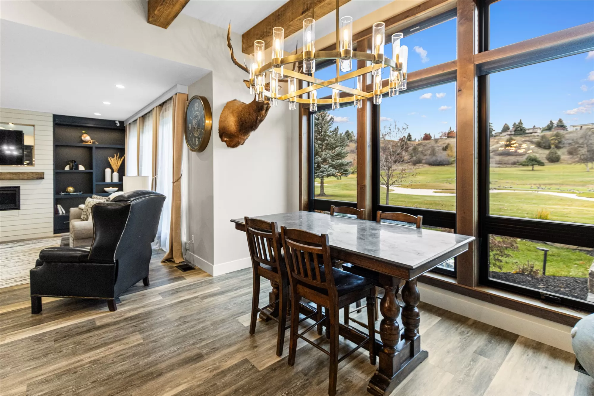 FORE! This is Montana’s premier golf lifestyle at Village Greens, where modern elegance meets effortless living on the 13th hole! This 2022 custom single-level, ADA-compliant 4BD/3BA home offers 2,207 sq ft of open, light-filled design. Expansive floor-to-ceiling glass windows frame fairway views like fine art. The chef’s kitchen features custom shaker cabinets, wet bar, and large island perfect for entertaining. The primary suite is a spa-inspired retreat with soaking tub, walk-in tile shower, dual vanity, and full ADA accessibility with wide doorways and zero-threshold entries. Step outside to a landscaped patio with tranquil water feature overlooking the 13th hole. Heated 2-car garage plus golf cart bay offers hot water, workspace, and sleek glass doors. Close to downtown Kalispell, shopping, dining, and Glacier National Park—luxury, light, and lifestyle combined.