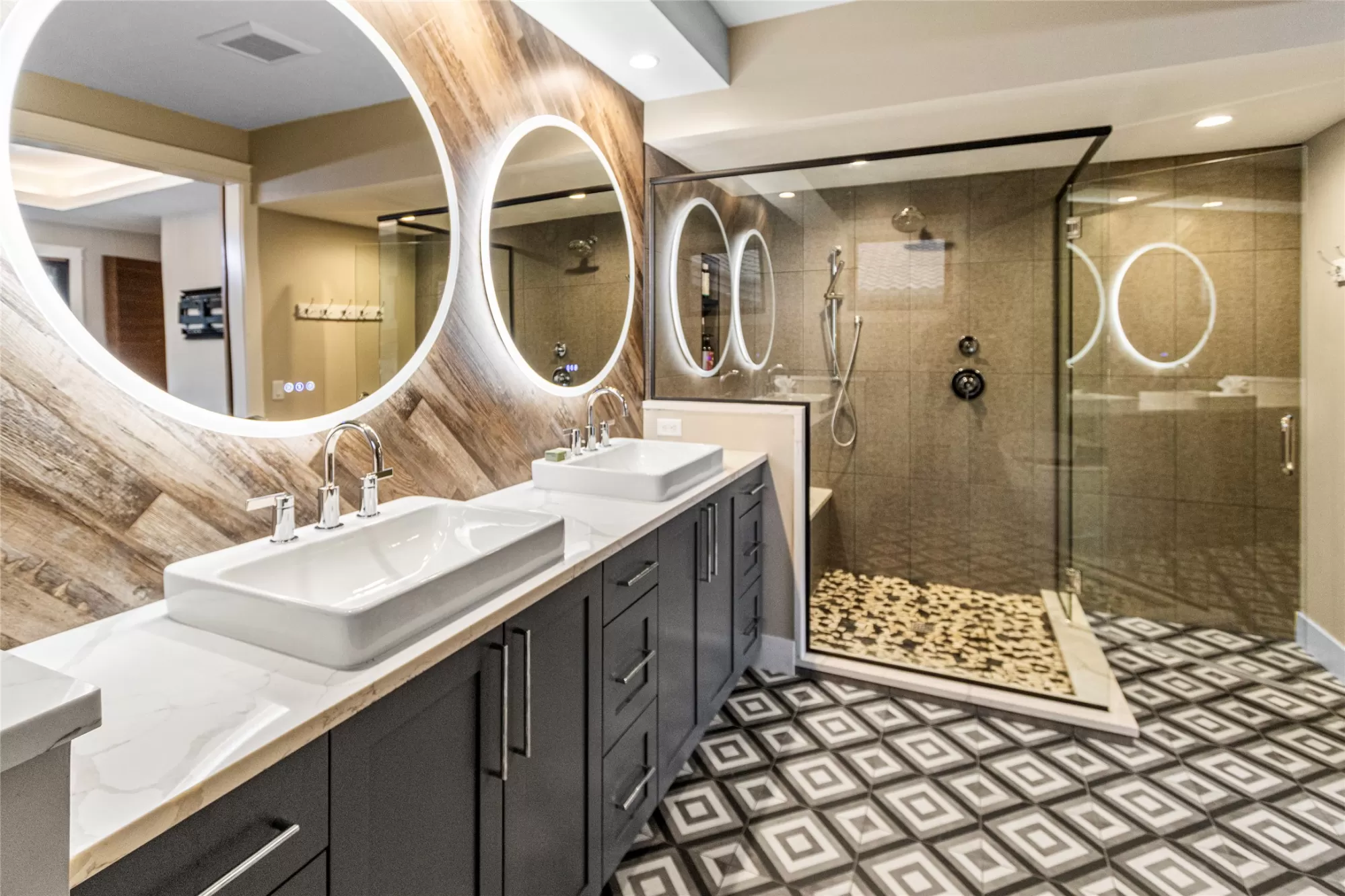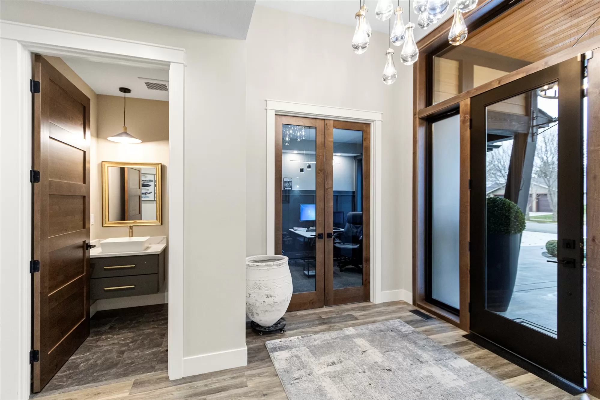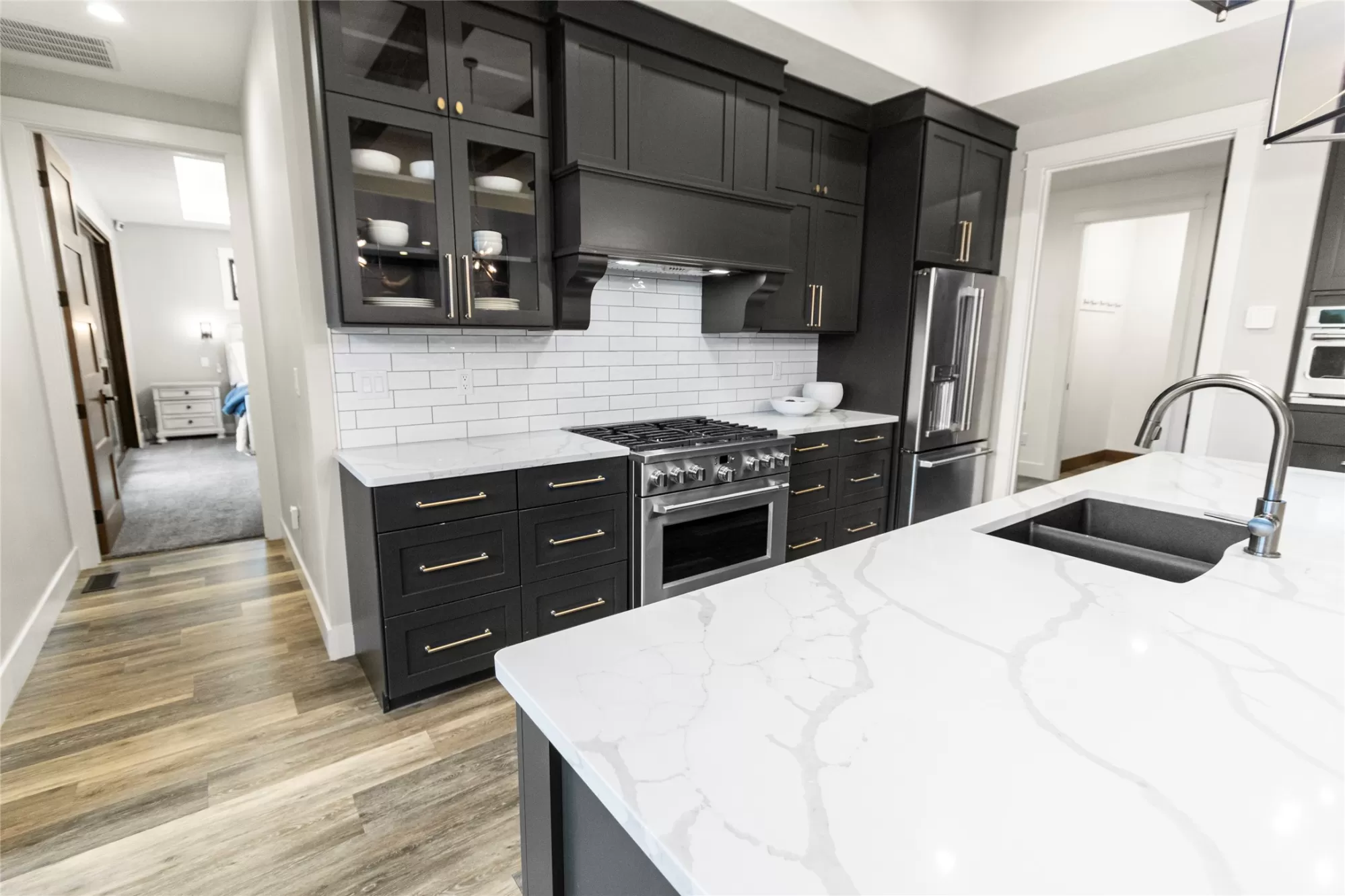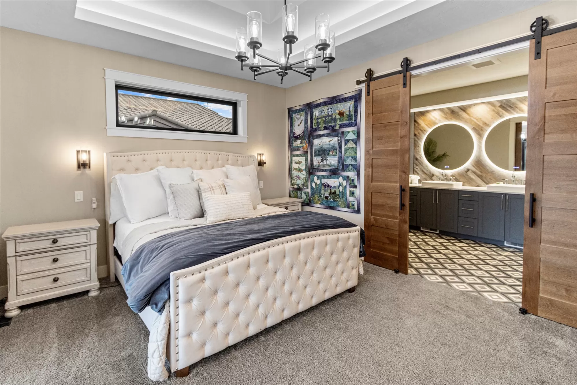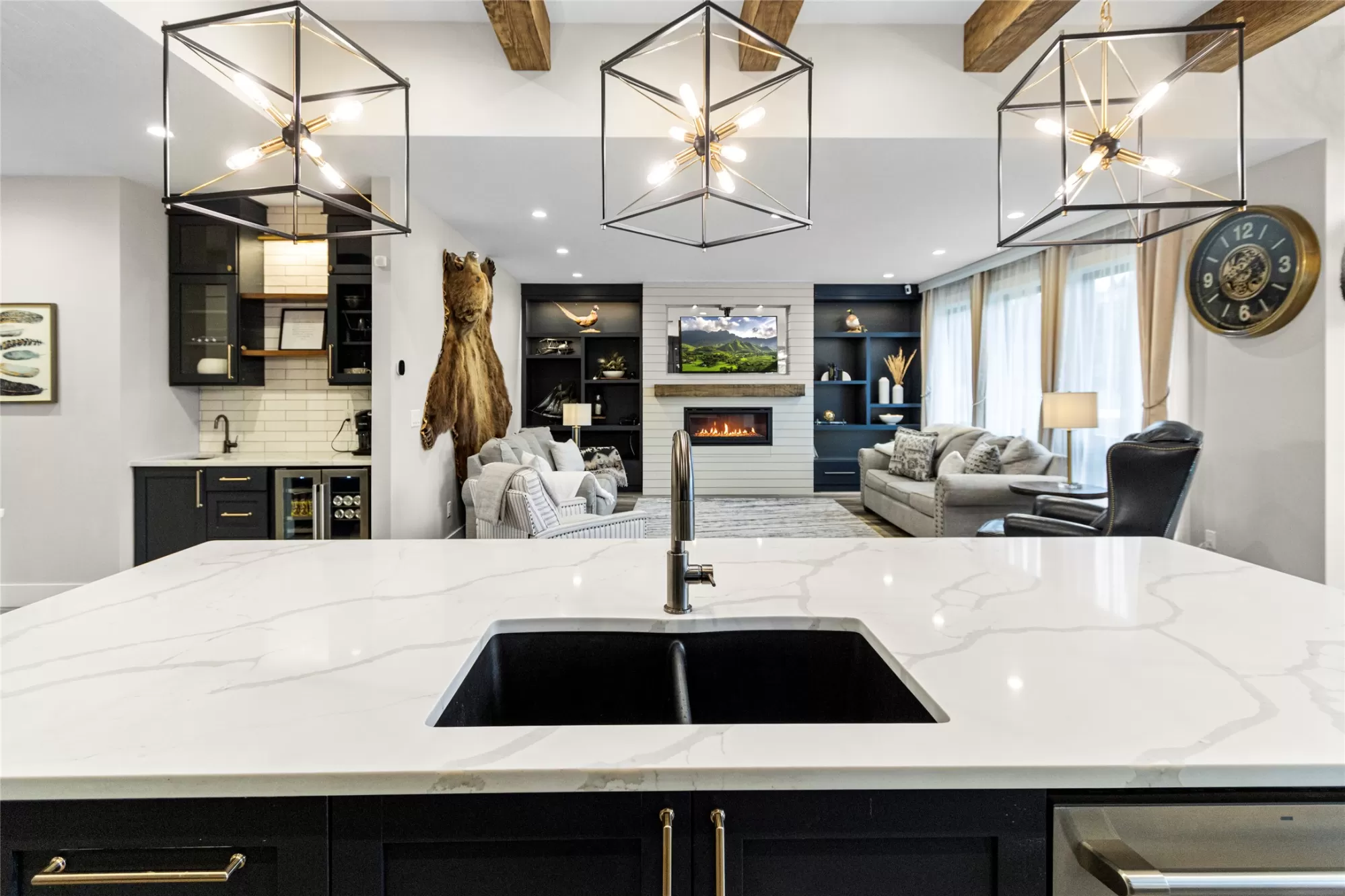 FORE! This is Montana’s premier golf lifestyle at Village Greens, where modern elegance meets effortless living on the 13th hole! This 2022 custom single-level, ADA-compliant 4BD/3BA home offers 2,207 sq ft of open, light-filled design. Expansive floor-to-ceiling glass windows frame fairway views like fine art. The chef’s kitchen features custom shaker cabinets, wet bar, and large island perfect for entertaining. The primary suite is a spa-inspired retreat with soaking tub, walk-in tile shower, dual vanity, and full ADA accessibility with wide doorways and zero-threshold entries. Step outside to a landscaped patio with tranquil water feature overlooking the 13th hole. Heated 2-car garage plus golf cart bay offers hot water, workspace, and sleek glass doors. Close to downtown Kalispell, shopping, dining, and Glacier National Park—luxury, light, and lifestyle combined.