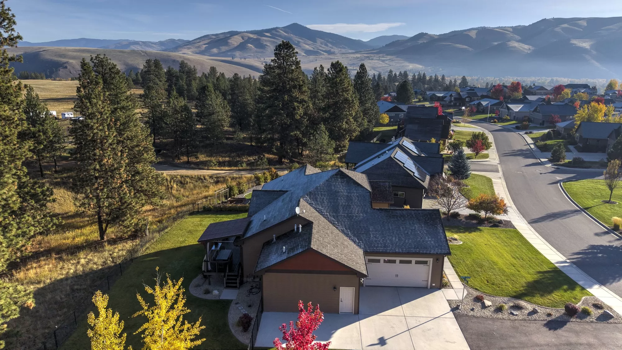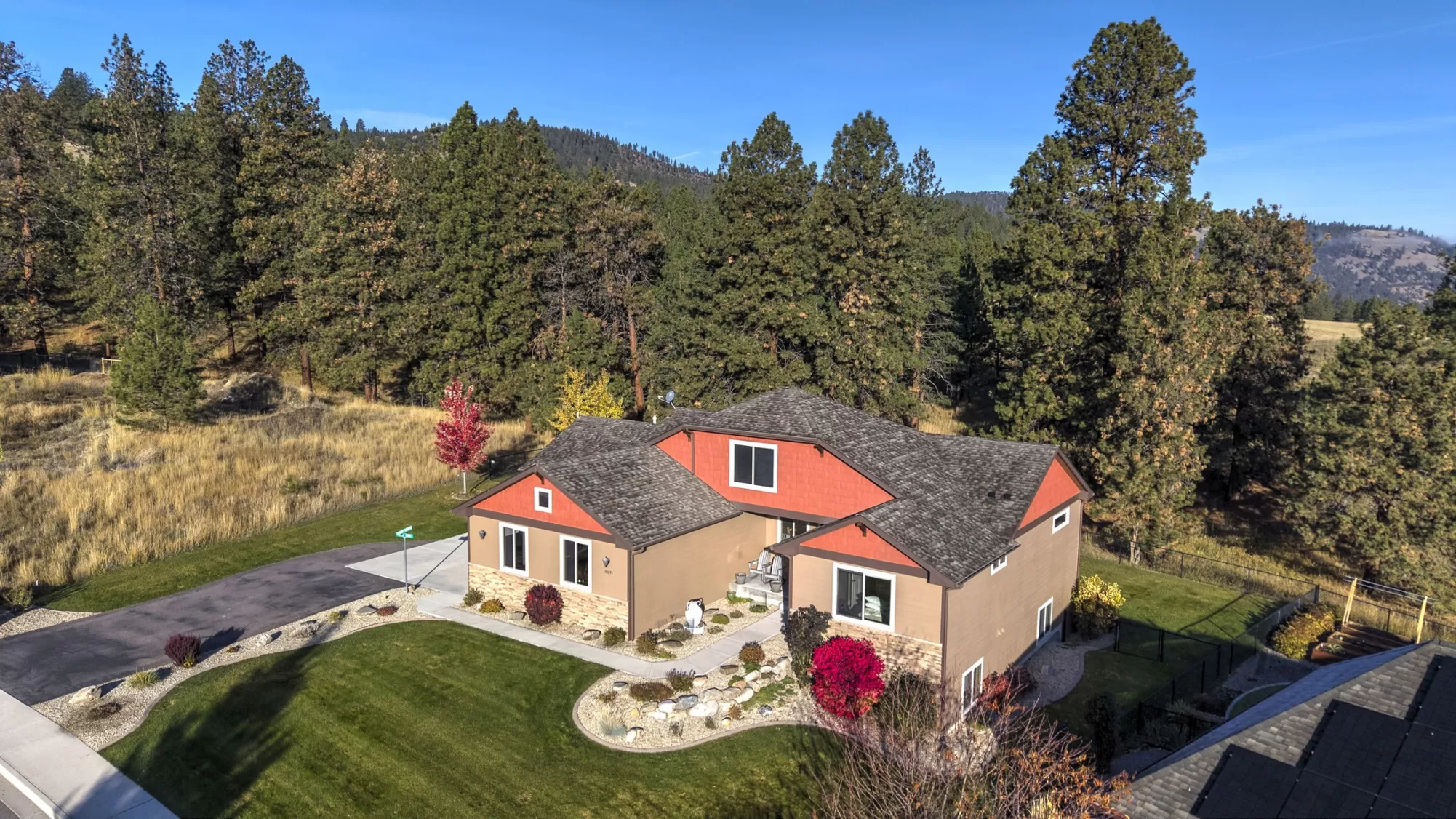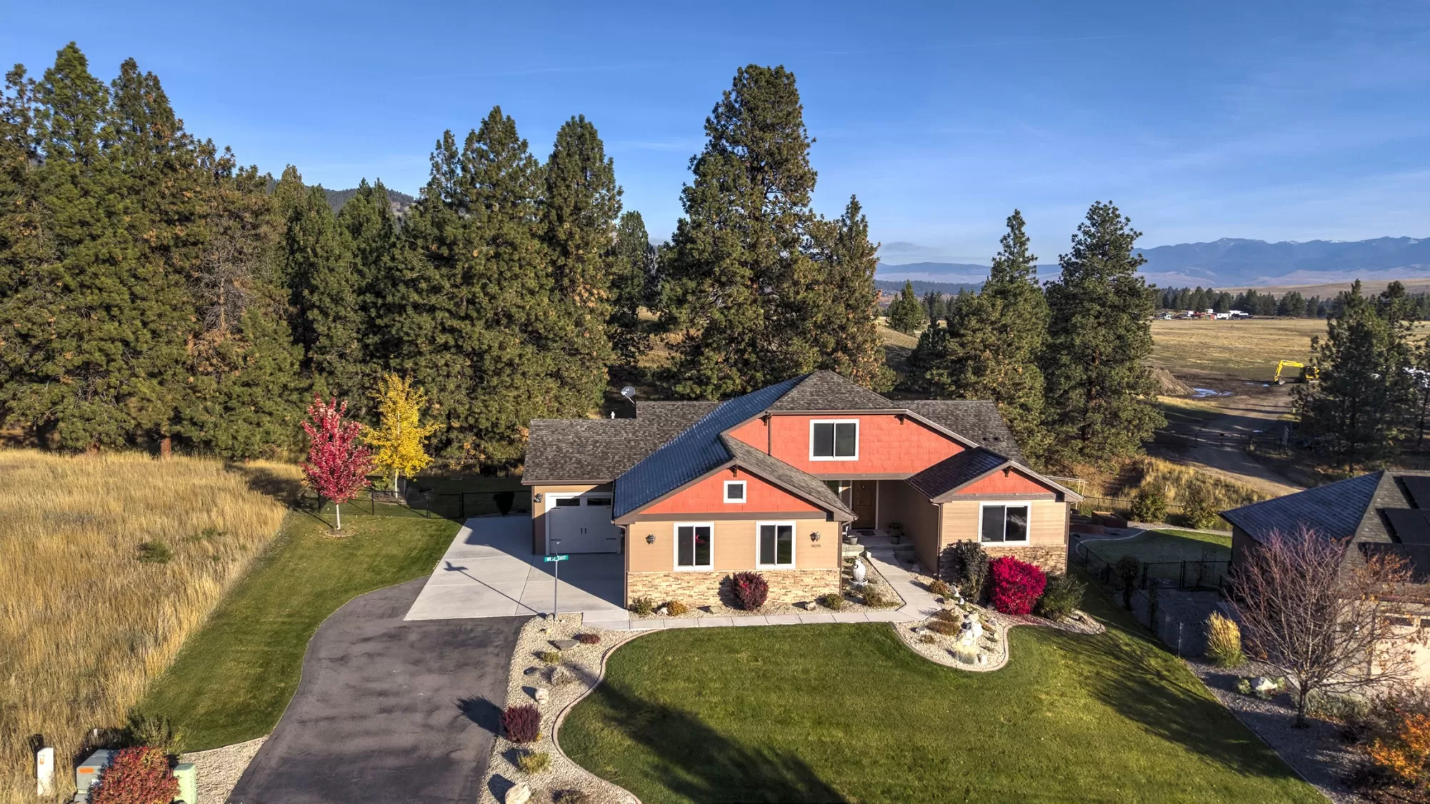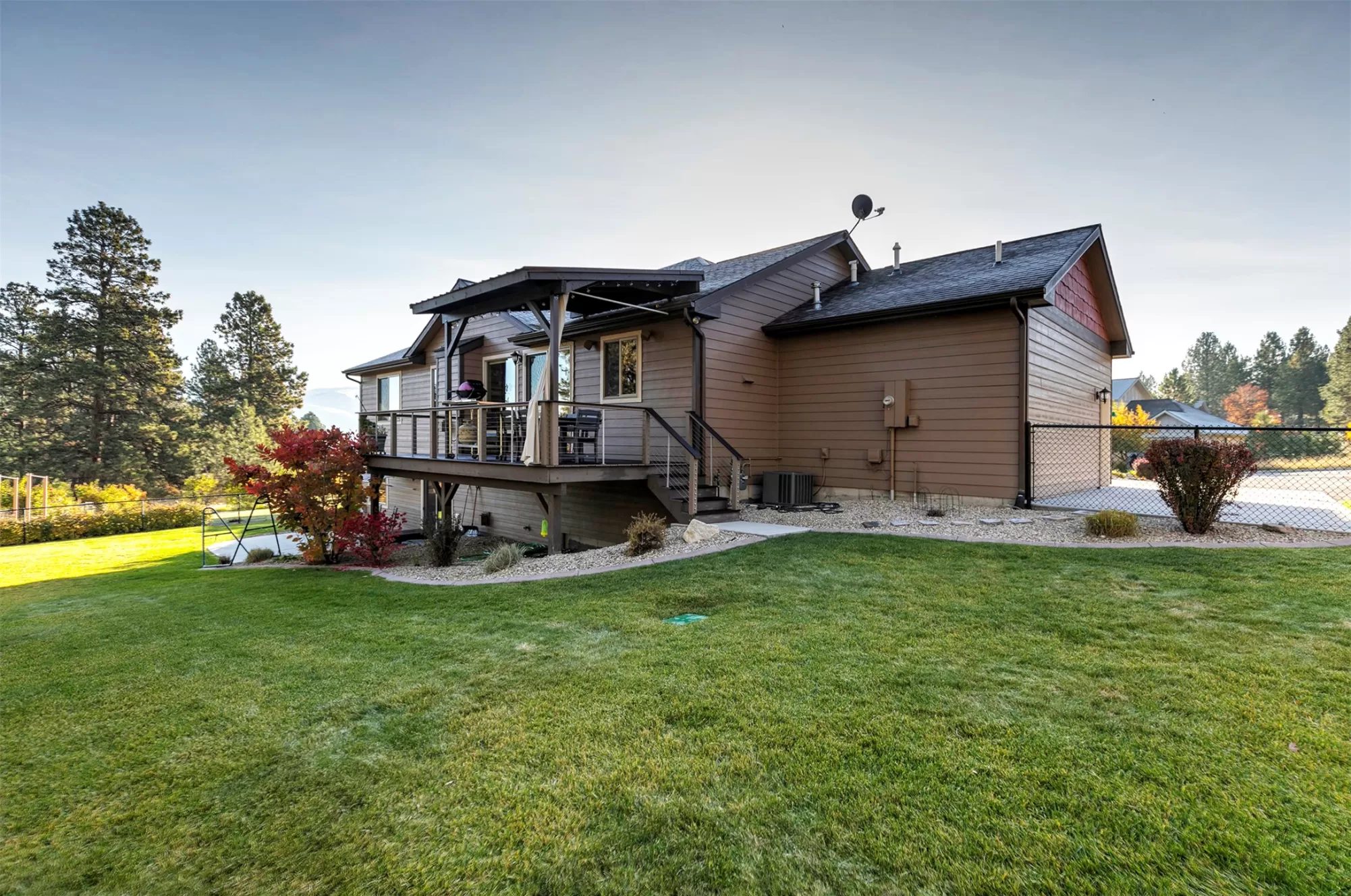 Live in the beautiful natural setting year round of Ponderosa Heights/Lolo surrounded by magnificent mountain and skyline views. Custom built 4 bedroom /3 bath home with a private indoor sauna on a .33 acre premier homesite which overlooks a natural green belt of tall glistening pines and the Rossignol Ranch (large undeveloped acreage). There is 50 ft wide wildlife space along the green belt frequented by Elk, Deer, Birds, etc. Step into a breathtaking open main floor floor plan with view windows , Stone Gas Fireplace, Custom Kitchen with granite counters and stainless appliances. The custom wood kitchen feature a stand alone island and room for the your dining table. Private entry with custom wood door sets the stage as you walk into open great room with vaulted ceilings, solid 3/4" wood floor, custom wood trim and finishes. Make an appointment today to see this special home now! Lolo offers services, easy commute to Missoula, river access. Picture of Elk in wildlife corridor! Glorious views of Ponderosa Pines to the north and west from the 24 X 9.8 engineered deck with awning over the outdoor table. Enjoy quiet evenings on 23 X 15 patio with partial awning from the daylight walkout lower level. The lower daylight level features a large family game room and a private media room. Privately situated down stairs is 2 bedrooms with a full bath for family, guests, or office use. This level has many windows letting the outdoors in! Radon System installed. Items included: Water Softener, range, refrigerator, dishwasher, microwave, gar-op & overhead garage heater in 3rd stall, window treatments, dart board, cabinet under TV. Items excluded pool table, patio/deck furniture + freestanding fireplace on patio and storage cabinet on patio, hammock frame, bookcases in living room-main floor, antique mirror in main floor hallway, TV on wall downstairs media room, NSEW directional sign in front yard.
