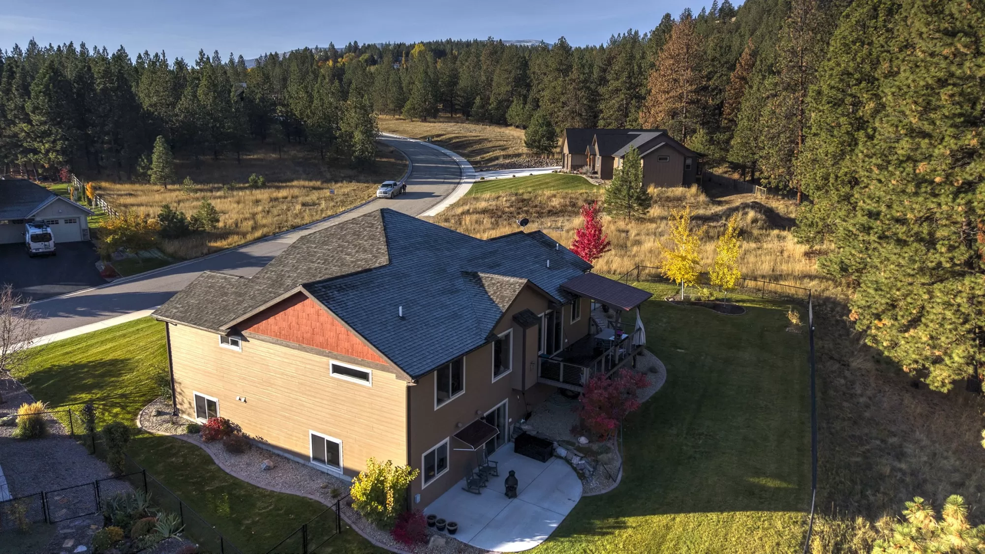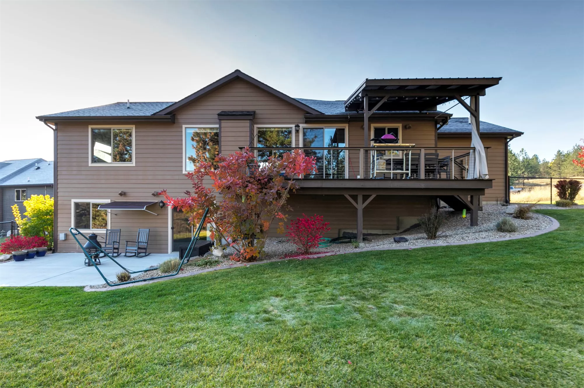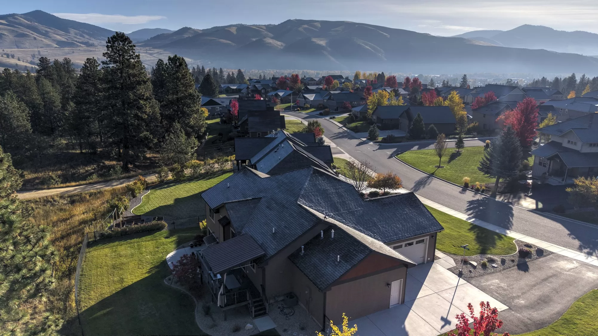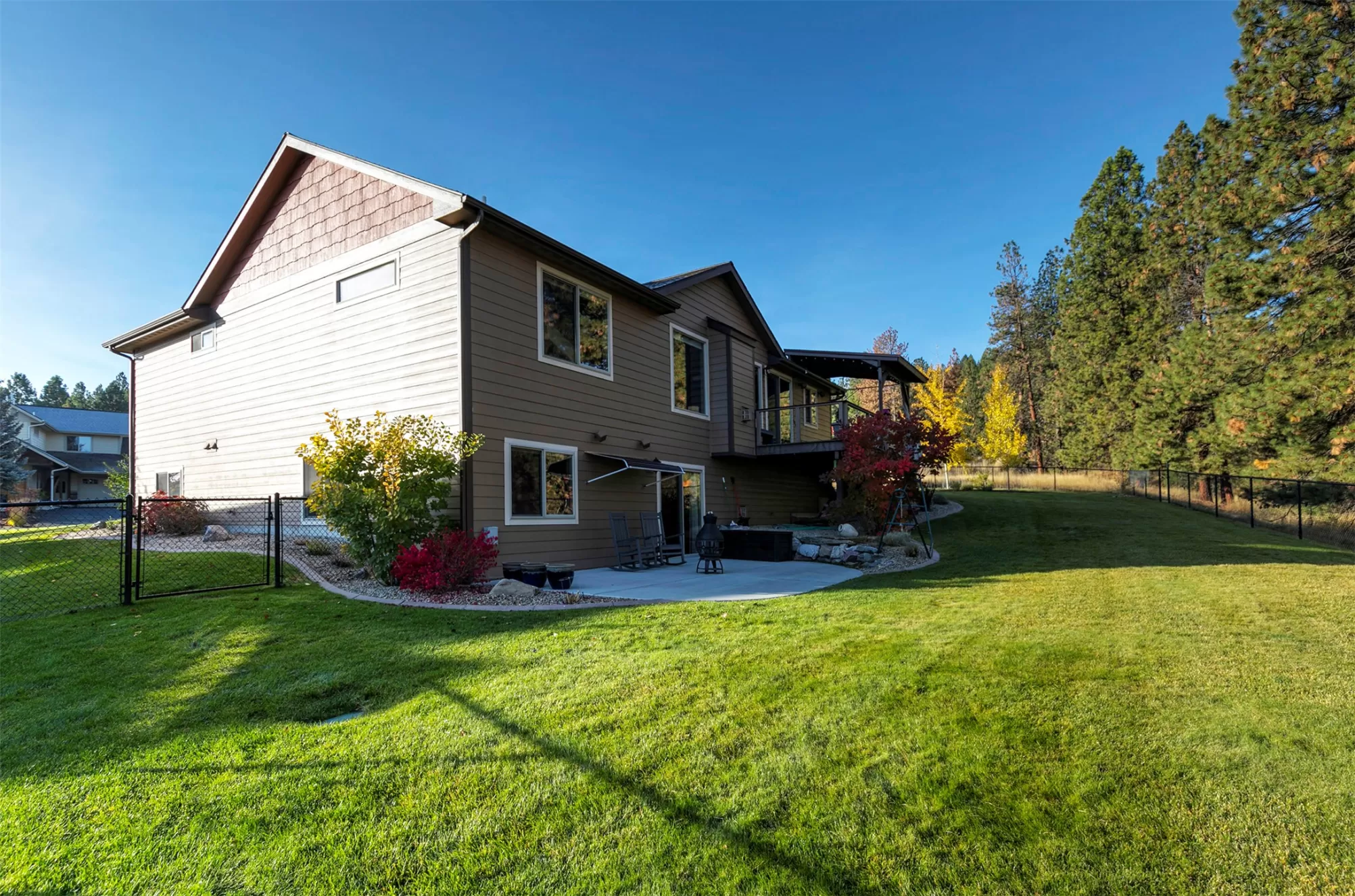 Live in the beautiful natural setting year round of Ponderosa Heights/Lolo surrounded by magnificent mountain and skyline views. Custom built 4 bedroom /3 bath home with a private indoor sauna on a .33 acre premier homesite which overlooks a natural green belt of tall glistening pines and the Rossignol Ranch (large undeveloped acreage). There is 50 ft wide wildlife space along the green belt frequented by Elk, Deer, Birds, etc. Step into a breathtaking open main floor floor plan with view windows , Stone Gas Fireplace, Custom Kitchen with granite counters and stainless appliances. The custom wood kitchen feature a stand alone island and room for the your dining table. Private entry with custom wood door sets the stage as you walk into open great room with vaulted ceilings, solid 3/4" wood floor, custom wood trim and finishes. Make an appointment today to see this special home now! Lolo offers services, easy commute to Missoula, river access. Picture of Elk in wildlife corridor! Glorious views of Ponderosa Pines to the north and west from the 24 X 9.8 engineered deck with awning over the outdoor table. Enjoy quiet evenings on 23 X 15 patio with partial awning from the daylight walkout lower level. The lower daylight level features a large family game room and a private media room. Privately situated down stairs is 2 bedrooms with a full bath for family, guests, or office use. This level has many windows letting the outdoors in! Radon System installed. Items included: Water Softener, range, refrigerator, dishwasher, microwave, gar-op & overhead garage heater in 3rd stall, window treatments, dart board, cabinet under TV. Items excluded pool table, patio/deck furniture + freestanding fireplace on patio and storage cabinet on patio, hammock frame, bookcases in living room-main floor, antique mirror in main floor hallway, TV on wall downstairs media room, NSEW directional sign in front yard.