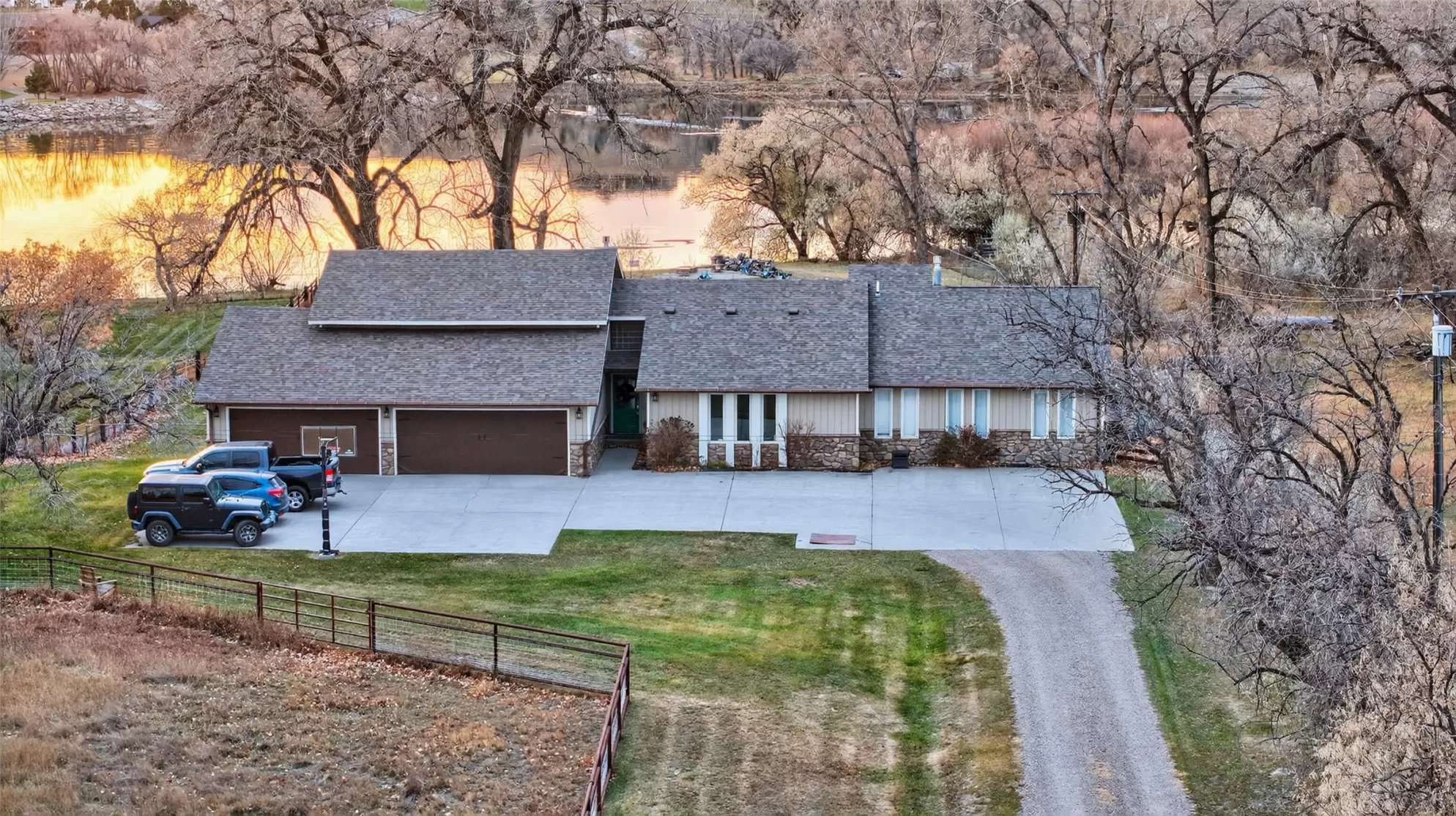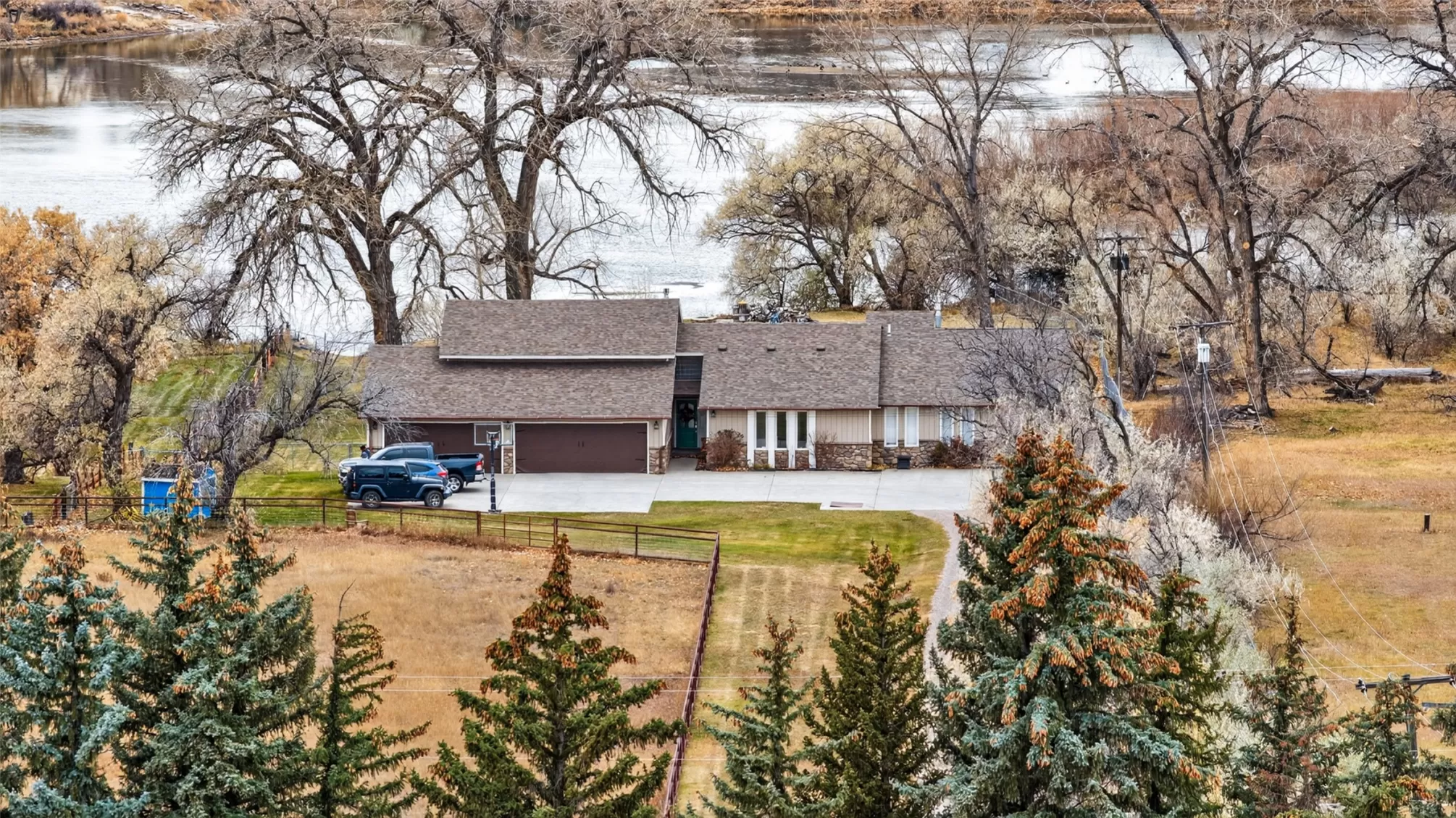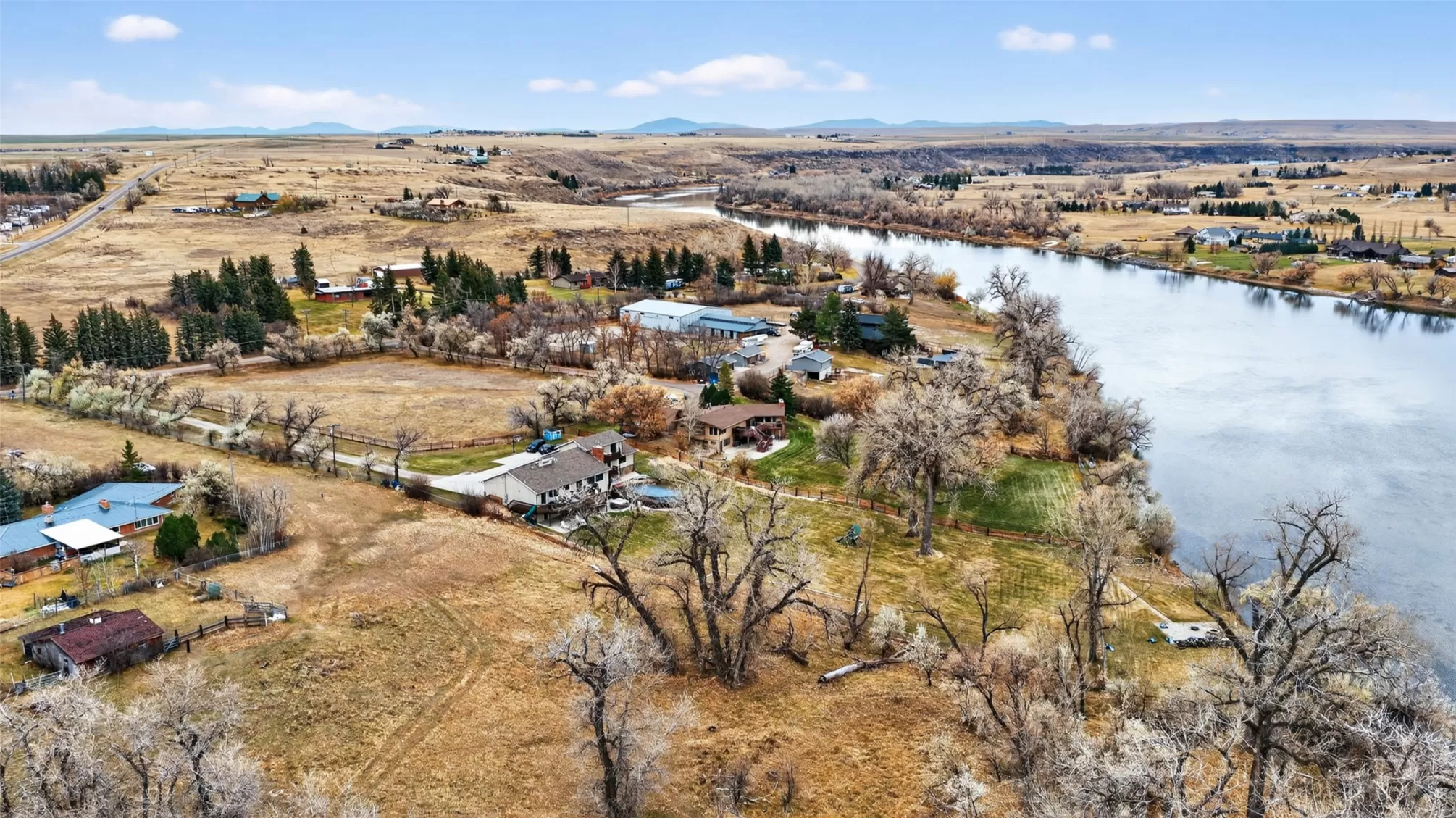 Experience true Montana riverfront living on 1.97 acres with approximately 150 feet of Missouri River frontage at 11 Wilson Butte Road, your private wellness retreat with a country feel while still being just 10 minutes from downtown Great Falls. This exceptional property offers rare amenities including a drivable launch for jet skis or water toys, a waterfront paver patio centered around a custom fire feature that offers an inviting space for year-round gatherings, and a sauna, pool, and hot tub that all convey. Inside, the home features beautiful oak hardwood flooring, an open-floor-plan kitchen with Viking hood and range, additional dining space, and stunning river views from the kitchen, living room, and primary suite. The second-level primary ensuite includes two granite double vanities, a slate tile walk-in shower, and a gas fireplace for a true spa-like retreat. The walkout basement offers even more room to entertain with a bar, generous living areas, and easy access to the outdoor amenities. With 6 bedrooms (one non-conforming), 4 bathrooms, three fireplaces, and a 4-car heated garage, this property blends luxury, functionality, and the Montana lifestyle in one extraordinary package.