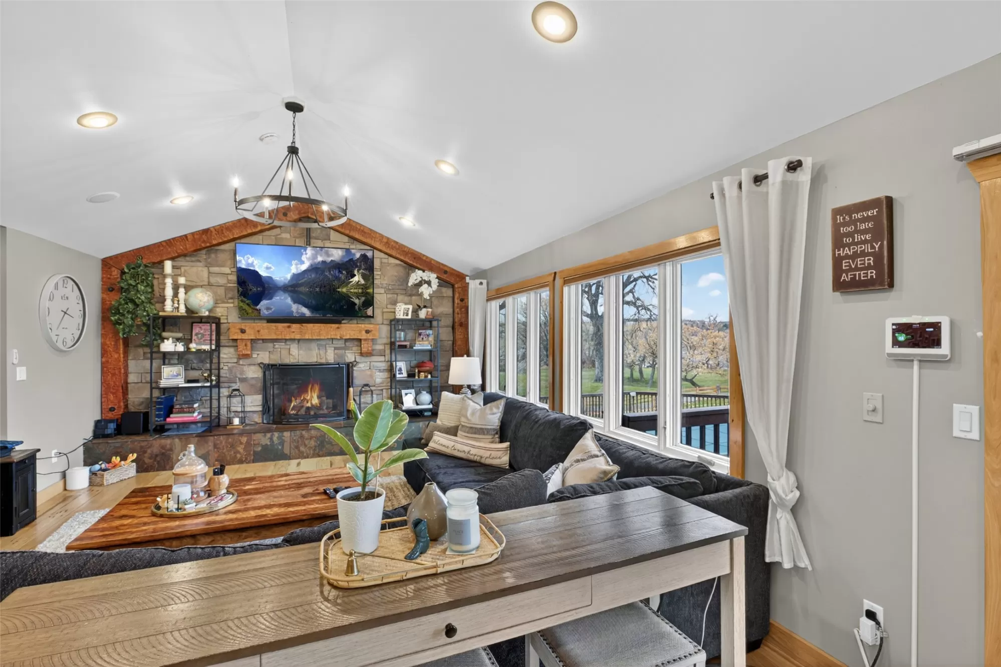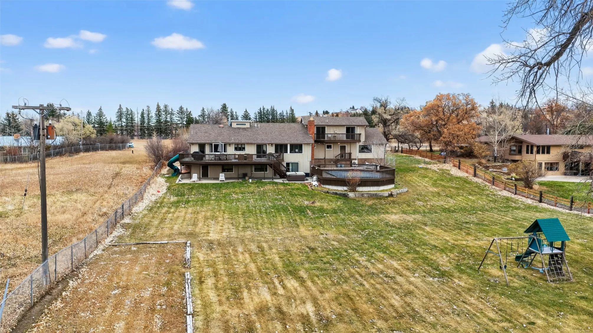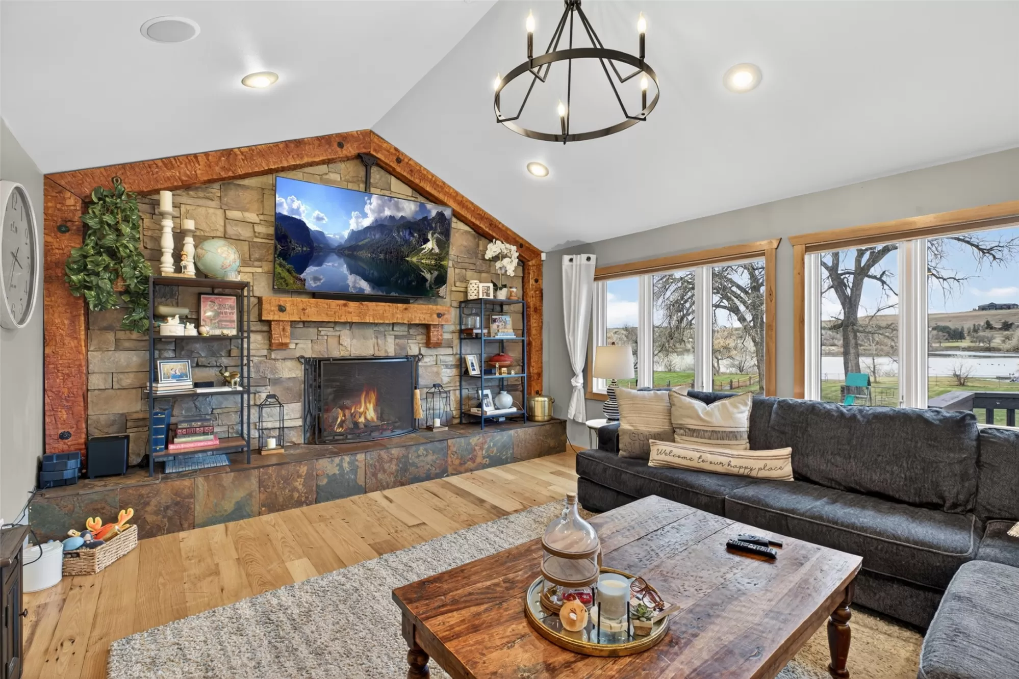 Experience true Montana riverfront living on 1.97 acres with approximately 150 feet of Missouri River frontage at 11 Wilson Butte Road, your private wellness retreat with a country feel while still being just 10 minutes from downtown Great Falls. This exceptional property offers rare amenities including a drivable launch for jet skis or water toys, a waterfront paver patio centered around a custom fire feature that offers an inviting space for year-round gatherings, and a sauna, pool, and hot tub that all convey. Inside, the home features beautiful oak hardwood flooring, an open-floor-plan kitchen with Viking hood and range, additional dining space, and stunning river views from the kitchen, living room, and primary suite. The second-level primary ensuite includes two granite double vanities, a slate tile walk-in shower, and a gas fireplace for a true spa-like retreat. The walkout basement offers even more room to entertain with a bar, generous living areas, and easy access to the outdoor amenities. With 6 bedrooms (one non-conforming), 4 bathrooms, three fireplaces, and a 4-car heated garage, this property blends luxury, functionality, and the Montana lifestyle in one extraordinary package.