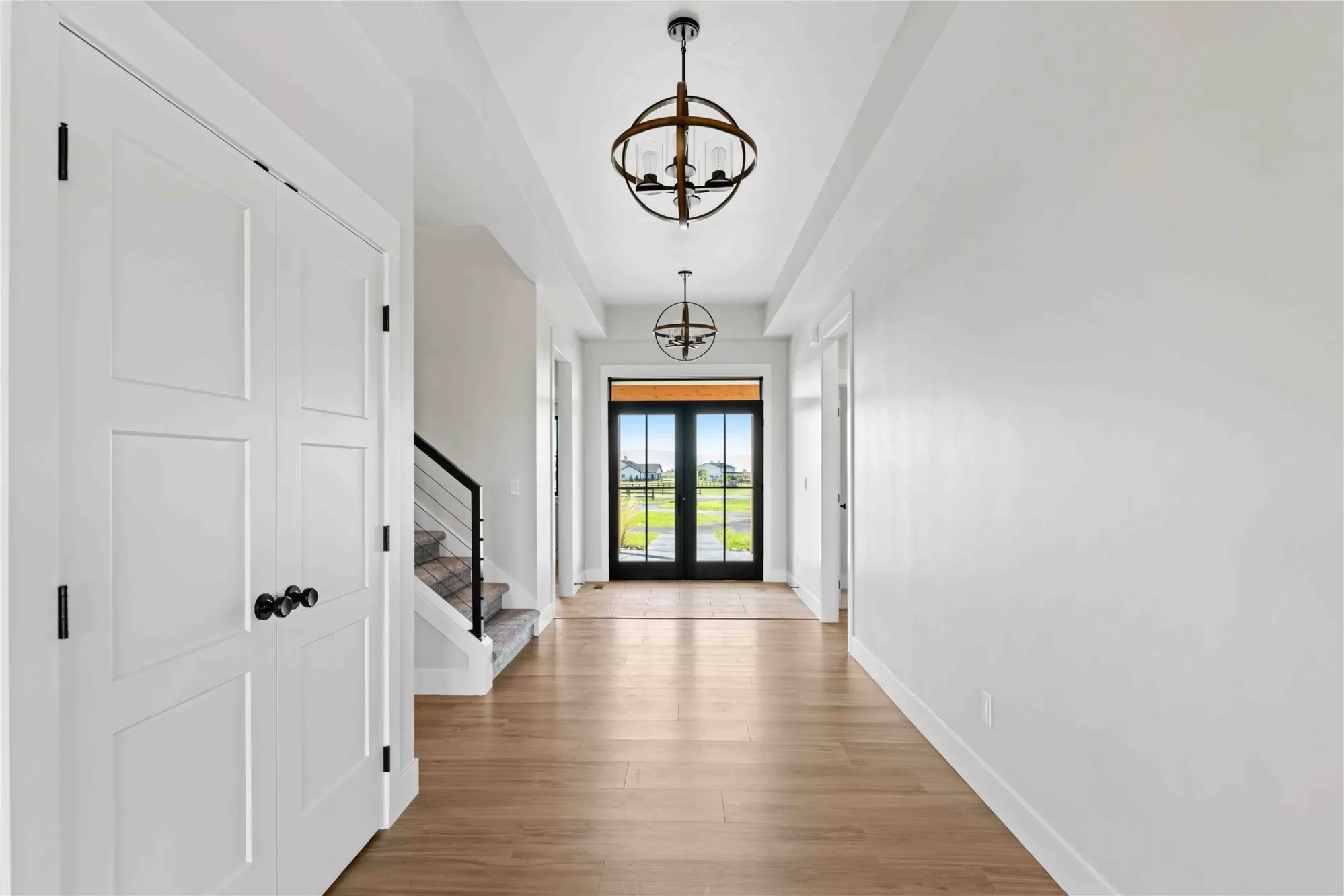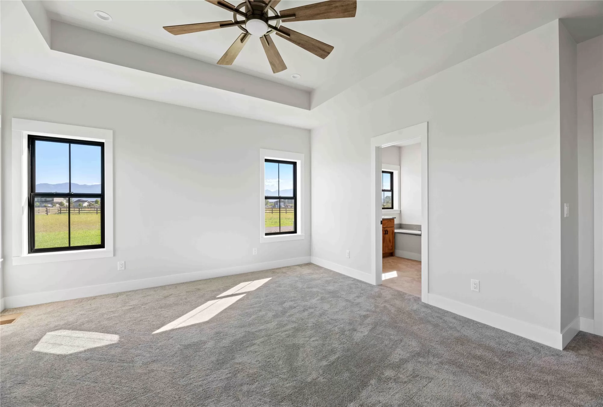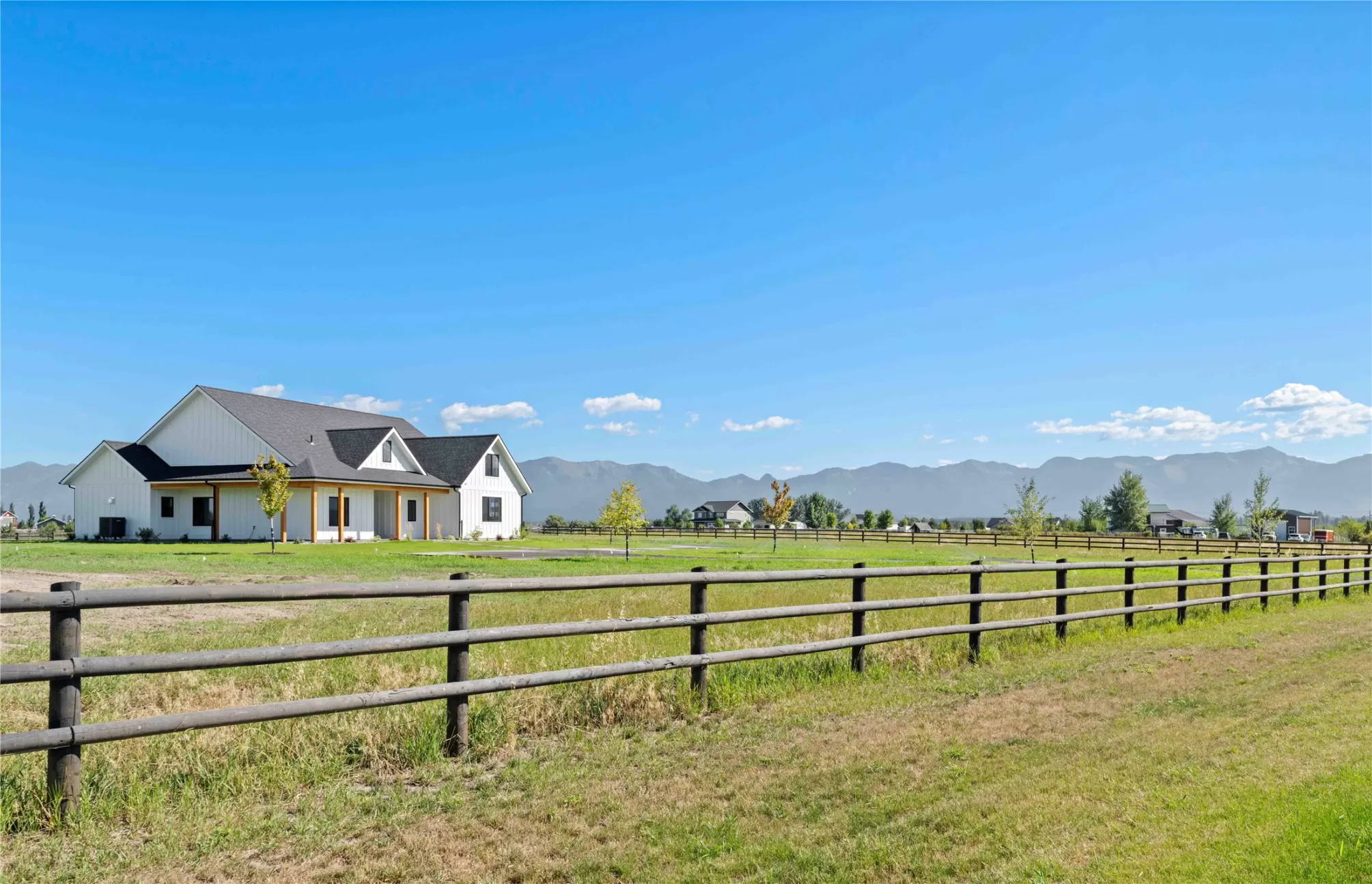 Discover modern farmhouse living with a touch of rustic elegance. This newly built home offers comfortable luxury on 2.5 fully fenced acres. Featuring 4 spacious bedrooms and 3.5 beautifully appointed bathrooms, this home combines open-concept living with warm, inviting design. The gourmet kitchen boasts quartz countertops, custom cabinetry, and stainless steel appliances, flowing seamlessly into the living and dining areas—ideal for entertaining or quiet evenings at home. The primary suite provides a peaceful escape with a spa-like bathroom and walk-in closet. Three additional bedrooms offer flexibility for guests, family, or home office space. Step outside to enjoy wide-open Montana skies, mountain views, and plenty of room for gardens, pets, or additional outbuildings. Located in a serene and scenic setting just minutes from Kalispell’s shops, schools, and recreation, this property offers the perfect blend of rural tranquility and modern comfort.