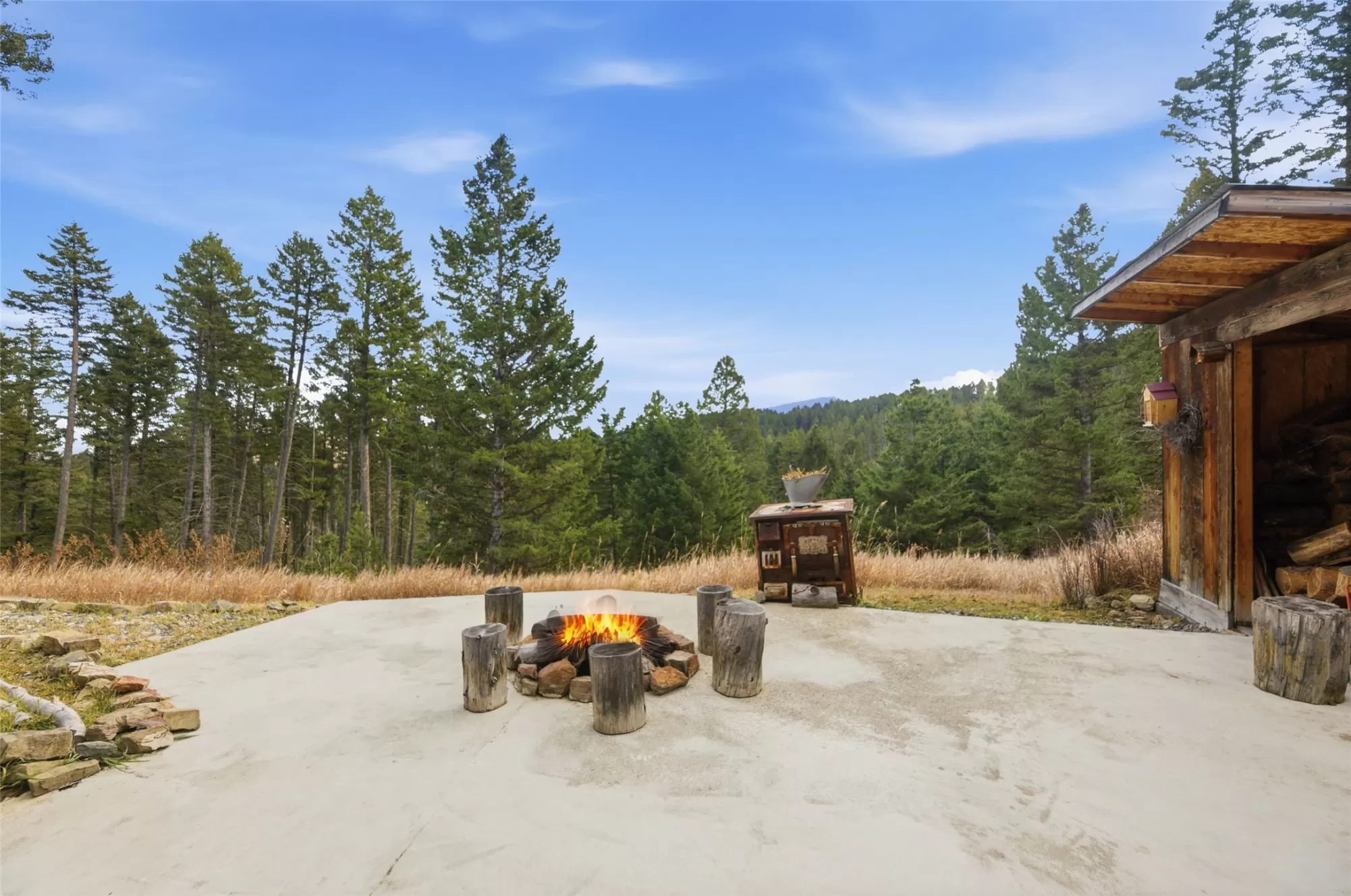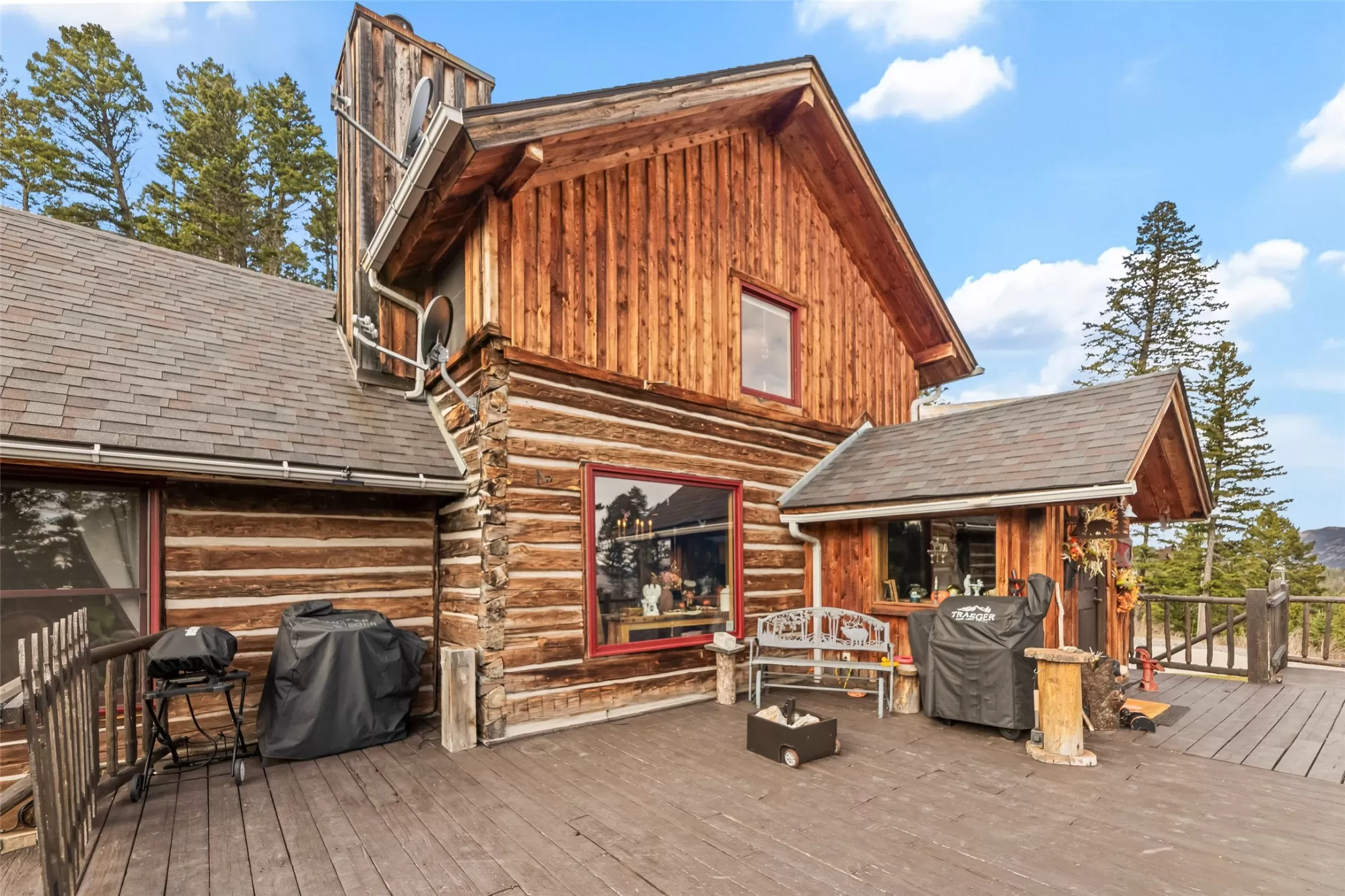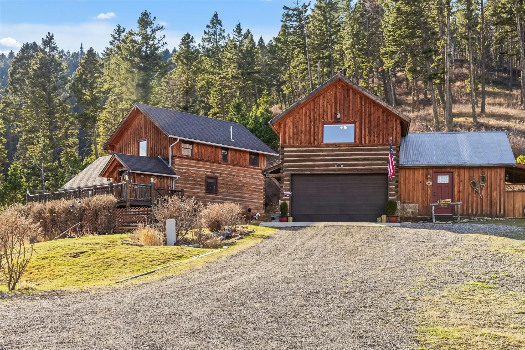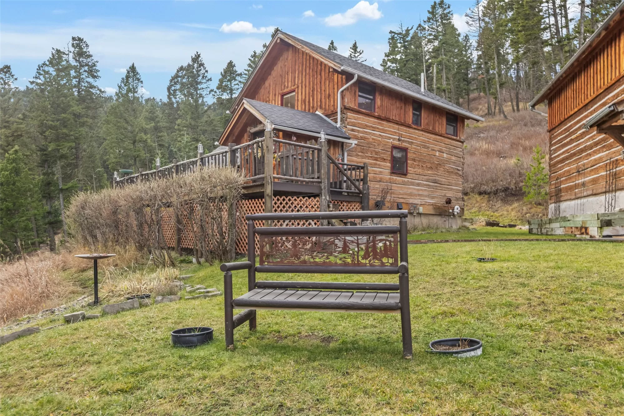 This beautiful, custom, hand hewn dovetail log home sourced from a homestead in the Snowy Mountains near Alder, MT, sits on 22.201 acres surrounded by woods, wildlife and mountains. The main home offers 2,376 sq. ft. of living space, 3 bd, 3 ba, and a 2-car garage. A cozy cottage feel is created throughout the home in the many details including the 2 gas fireplaces surrounded by moss rock hearths, a combination of slate and hardwood flooring, custom pine cabinetry, hammered copper sink, and exposed beams. Completing this property is a 700 sq. ft. detached 1bd/1ba ADU w/ a proven track record as a successful vacation rental. Just a short drive from both Bozeman and Livingston (about 15 minutes in either direction), the property is abundant in wildlife and is bordered 2 seasonal springs. The beautiful yard is set up with an underground sprinklers & is filled with thoughtfully placed perennials. Enjoy the mountain views in this secluded setting. By appointment only, please no drive-bys.