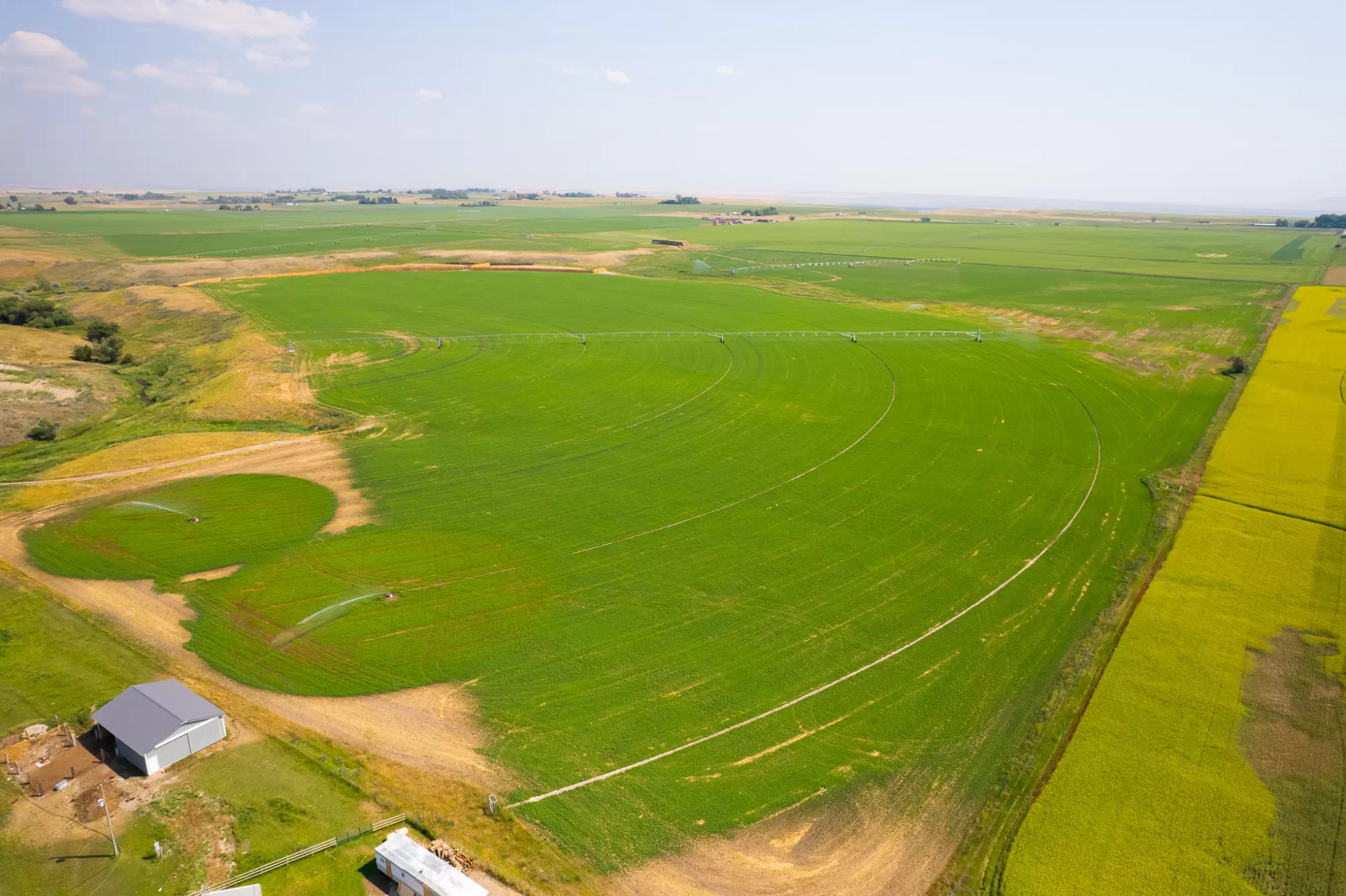 Own 4 contiguous parcels totaling +/- 425.96 acres on sought after Fairfield Bench in the Greenfields Irrigation District. This agricultural property delivers top-tier water, infrastructure, and income-producing potential. Approx. 340 productive acres in alfalfa, irrigated by six 2020/2024 Reinke pivots, all GPS-controlled via cell phone. Water resources are substantial & diverse including 334.17 GID assessed irrigated acres plus an additional 70 acres of State water rights from a live stream! Irrigation system features approx. 10,000 ft of buried mainline + 25 stationary big-gun sprinklers. Two feedlot setups, each approx. 750-head capacity, with large pens, steel bunks, concrete base, 9 buried frost-free stock waterers, & a 1-acre graveled yard for hay/equipment. Adding to the versatility & revenue potential, the property includes a gravel pit (Open Cut Mine) currently in operation. Property lies between 1st Rd S & County Line Rd at 12th Ln. Address: 1176 County Line Rd, Fort Shaw.