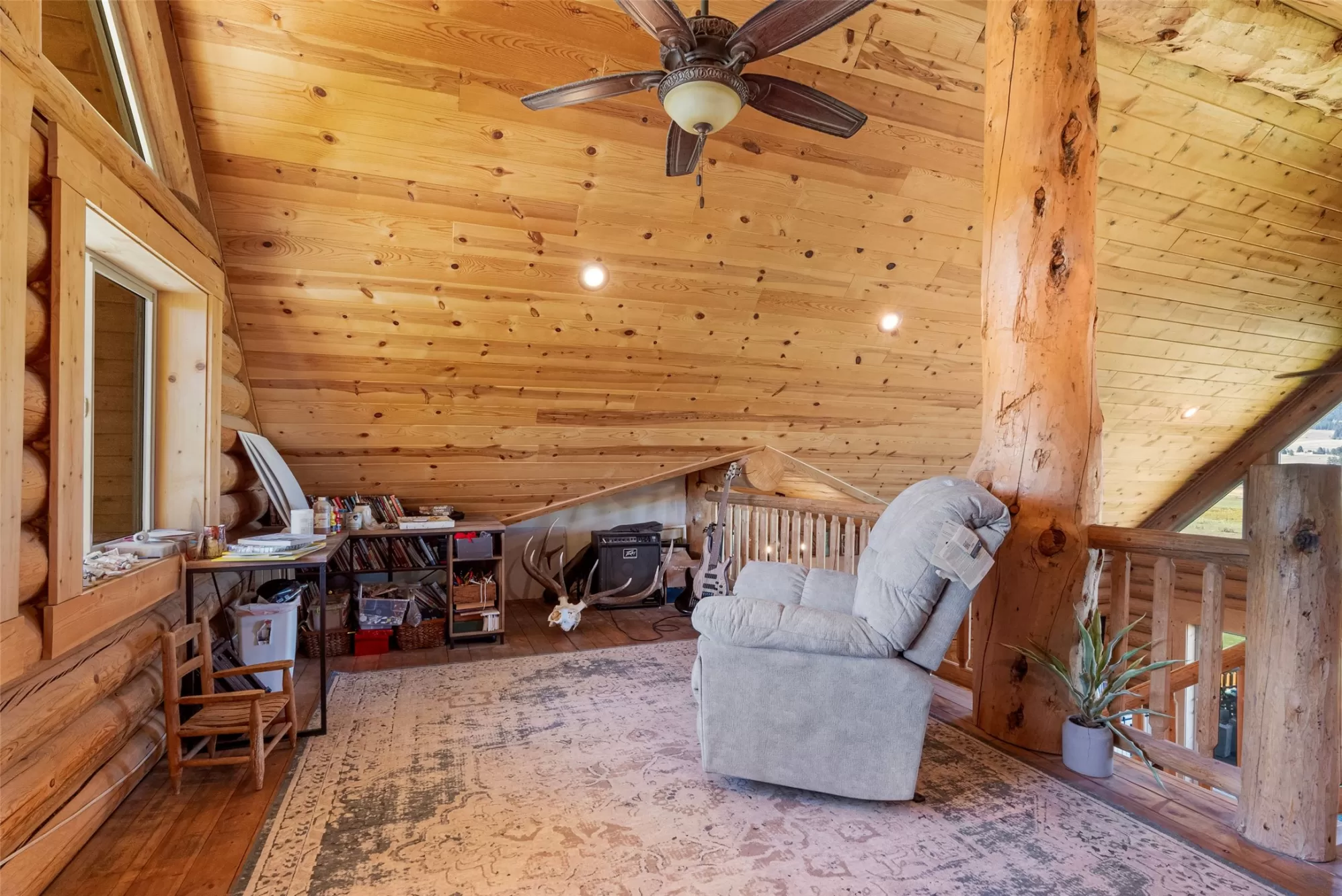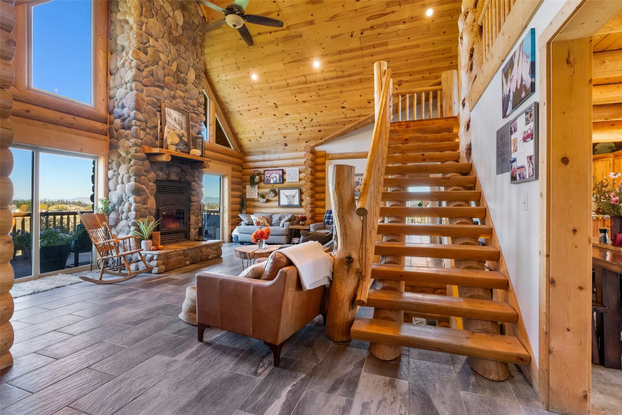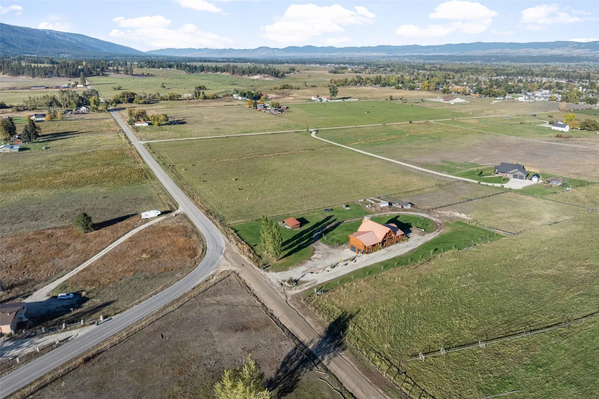 Newer log home with massive valley views in a central valley location. Nearly 13 irrigated, highly productive acres with a wheel line & excellent water rights, this log home features three levels of beautiful modern Montana living! Vaulted ceilings with a massive rock fireplace & a deck overlooking the valley with a view to knock your socks off! Main floor has a generous master suite with a walk in tile shower, jetted tub, walk in closet & private deck with a hot tub. Also on the main floor are two other bedrooms, a bathroom & laundry. Lower level is brand new, with two additional bedrooms, a full bathroom, a second laundry room & a large rec room. Room for the whole family! Convenient location, just off paved access. Large fenced yard with fruit trees, raspberries, raised garden beds, & a pole barn. Fenced and cross fenced with automatic waterers make this the perfect place for your horses or hobby ranch. Properties like this do not come available very often!