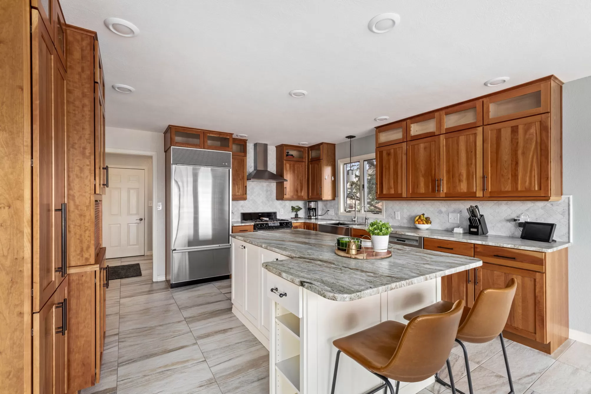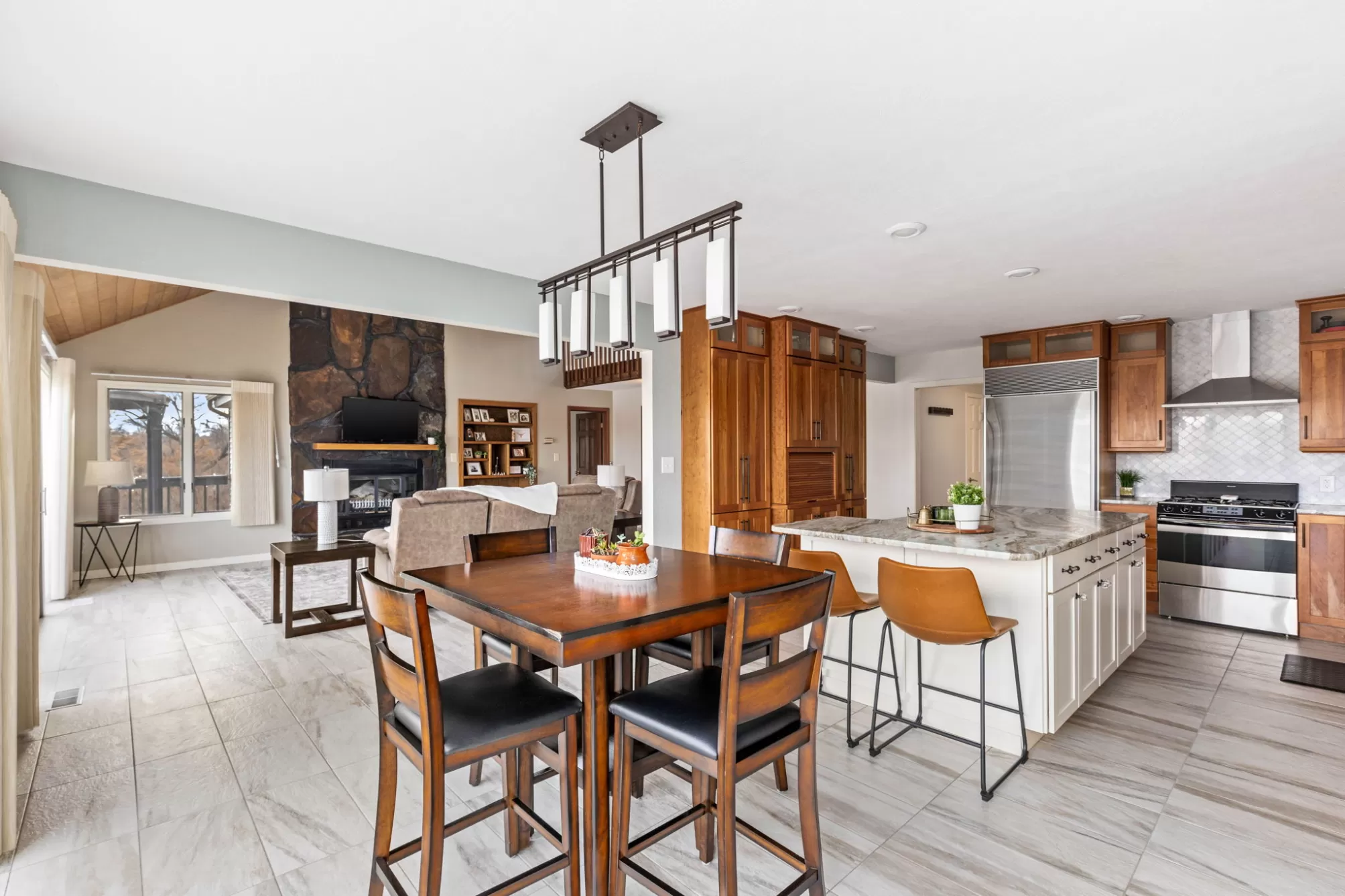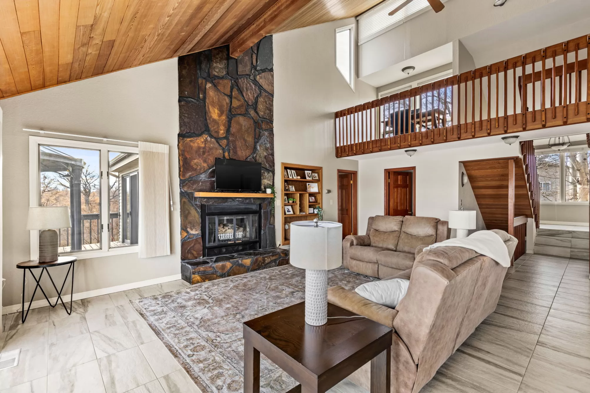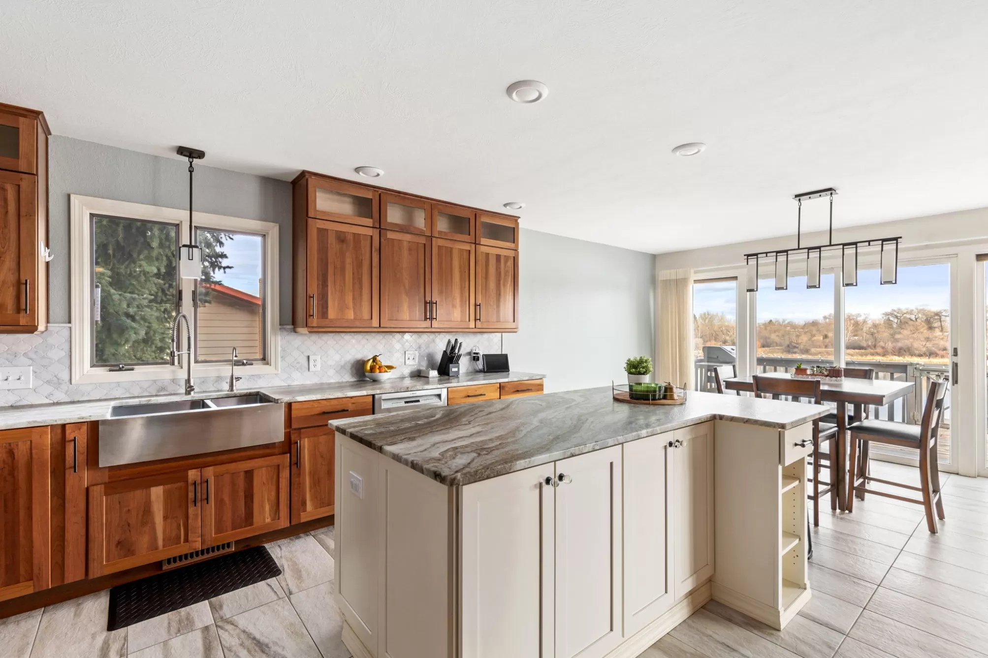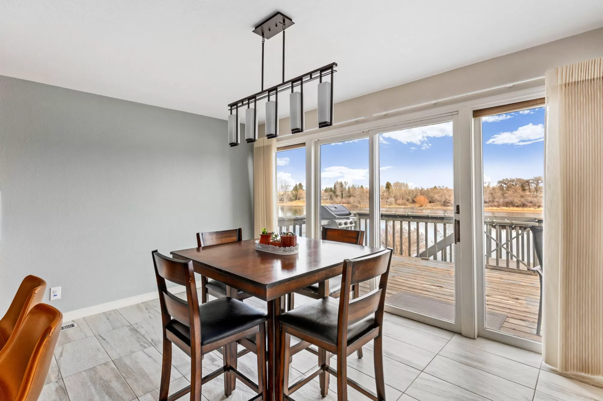 Private Missouri River water front home in Fox Farm and Meadowlark school district sitting on a beautiful landscaped lot with 160 feet of pristine river front! Hard to find and rare this close to town and this close to the water! Just steps from your deck to the deep water private water front! Dock your boat up, fish, and swim! Boat access is just a short trip from Broadwater bay and allows for easy navigable water all the way to your property. This home has an updated modern kitchen with cherry cabinets, granite counter tops, and a large island with additional seating. Stainless steel appliances and sink finish it beautifully. Updated tile floors throughout the main floor with a full wall of windows facing the panoramic view of the river from every angle! Floor to ceiling rock fireplace that is serviced by natural gas. The main floor living space has huge vaulted ceiling creating an inviting entertainment vibe and access to the full length large deck to enjoy the river views. Very peaceful setting with mature landscaping to enjoy the natural feel of this lot. Large main floor primary bedroom and main floor laundry that is equipped with a laundry sink and plenty of cabinet and counter space. Upstairs has two bedrooms with an adjoining full bathroom that has a tub shower and double sinks. There is also a quaint alcove office space with views. The walkout basement has a great living space that has an additional gas stove, a large custom featuring a mid century wall of custom wood accents. A full bathroom and two additional bedrooms are in the basement floor for a total of 5 bedrooms and 3.5 baths in the home. Enjoy the attached heated two car garage and an additional 40x24 heated and finished shop! Don't miss your chance to own on the river!