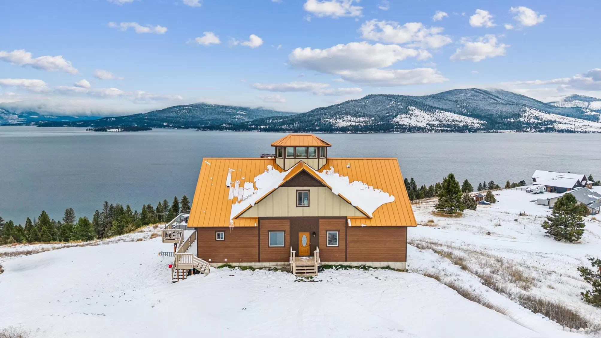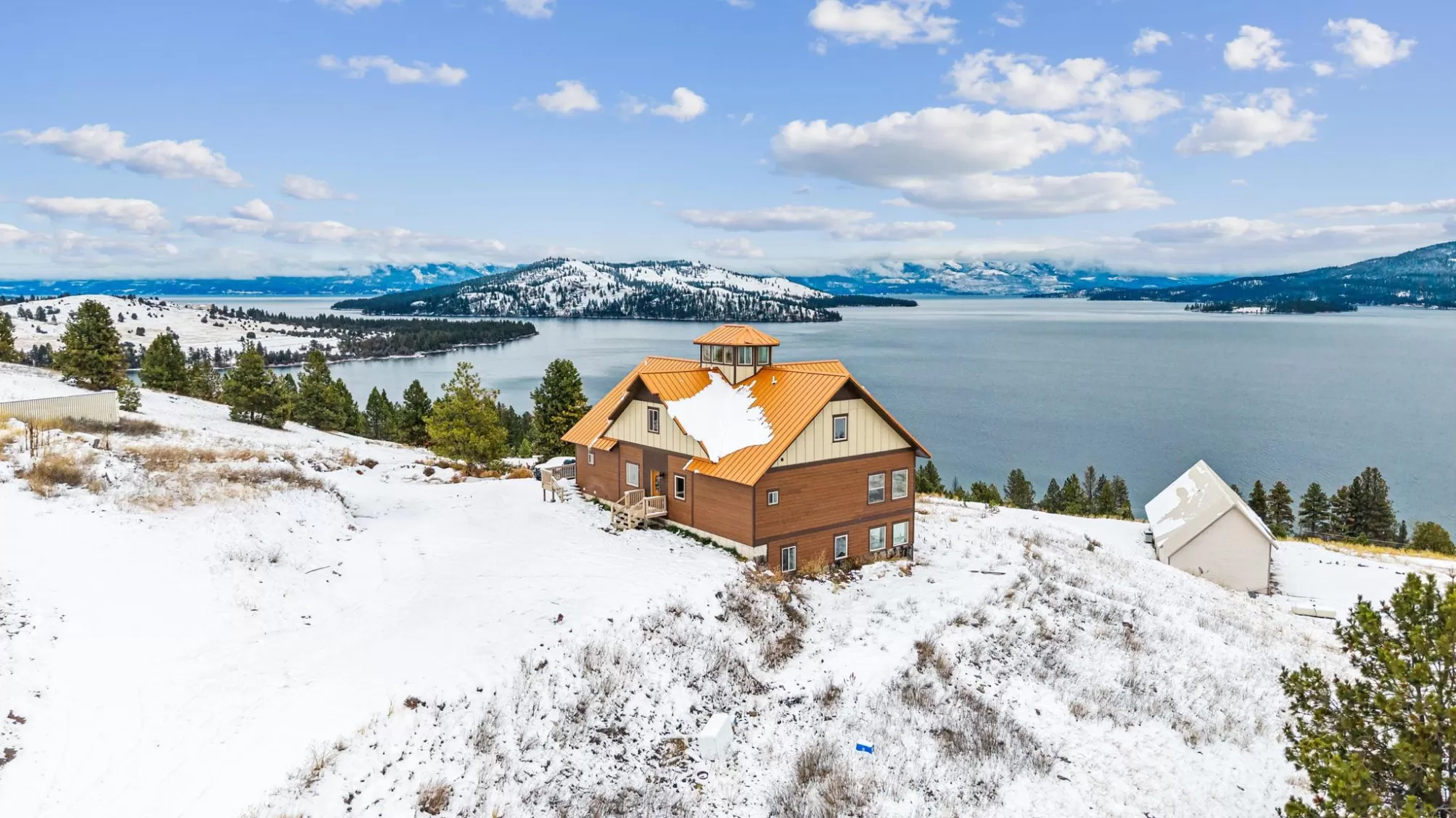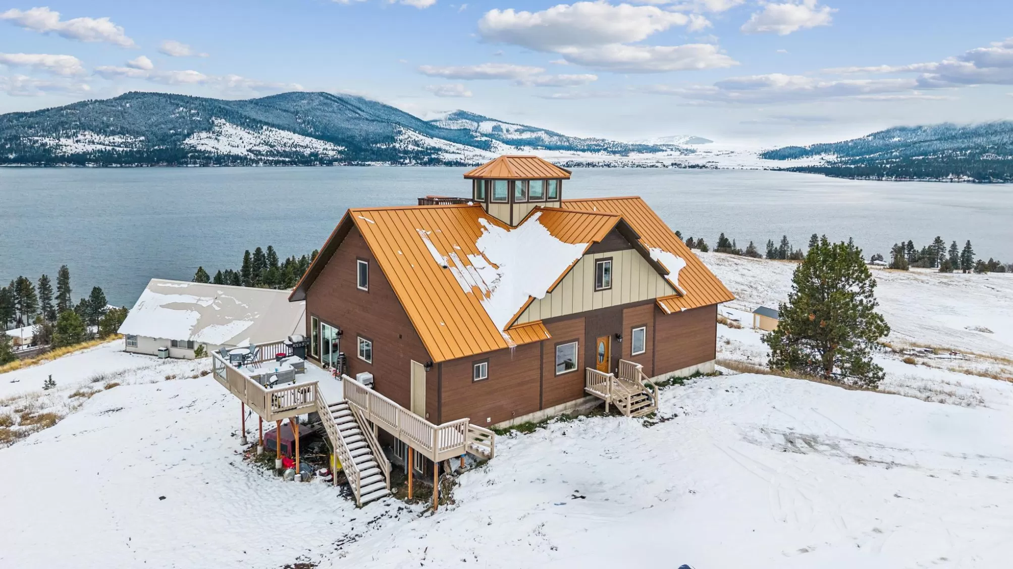 Experience Montana at its finest at 44142 Buffalo Road in Dayton. Perched on 3.75 open acres with sweeping, unobstructed views of Flathead Lake, this spacious multi-level home offers room to gather, room to retreat, and room to breathe. The main level welcomes you with an open, light-filled layout designed to capture the lake and mountain views from every angle. The kitchen flows seamlessly into the dining area with direct access to the deck—perfect for outdoor meals, morning coffee, and evening relaxation. A comfortable living room anchors the space, while the main-floor primary suite provides convenience and privacy. Two additional bedrooms, full laundry, and a bathroom round out this level. The lower level is made for entertaining with a generous living/recreation area, three bedrooms, and a full bath—ideal for guests! Upstairs, you’ll find an additional two bedrooms and a cozy living area, offering even more flexibility. At the very top of the home, an overlook room and deck provide a quiet perch to take in the panoramic lake and mountain scenery—your own private retreat. With no covenants, there’s freedom to use the property to suit your needs: extra parking, boat storage, recreational toys, or future outbuildings. Whether you're looking for a full-time residence, multi-generational home, or investment opportunity, this Dayton property delivers abundant space, expansive views, and the true Montana lifestyle.