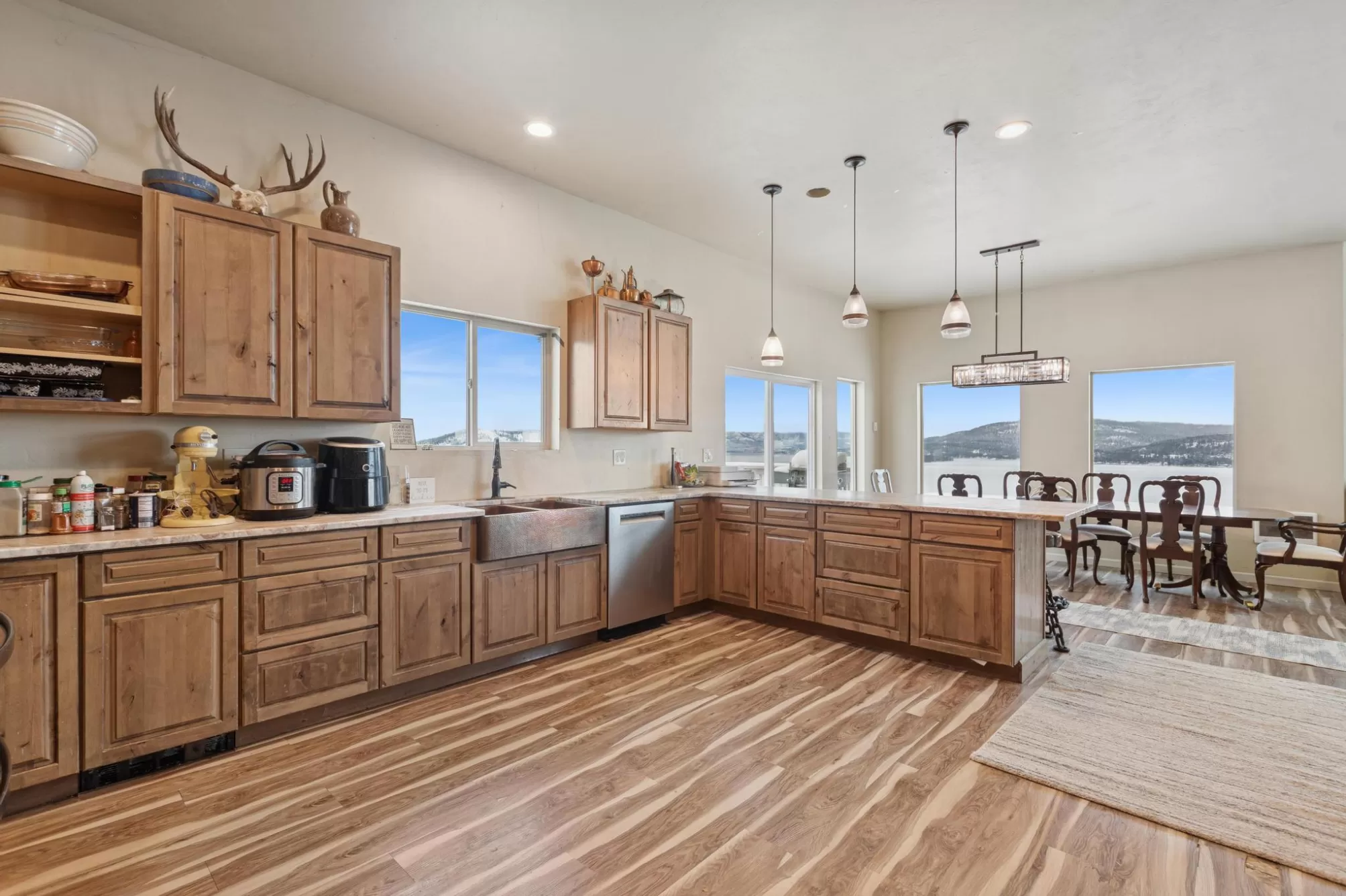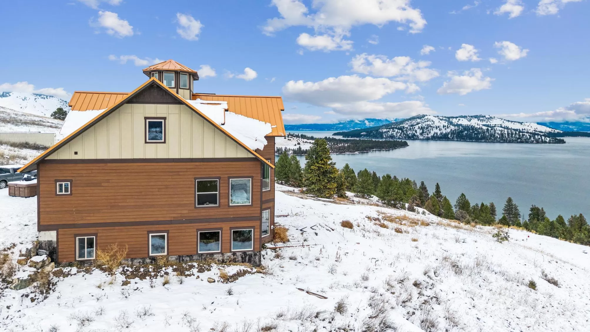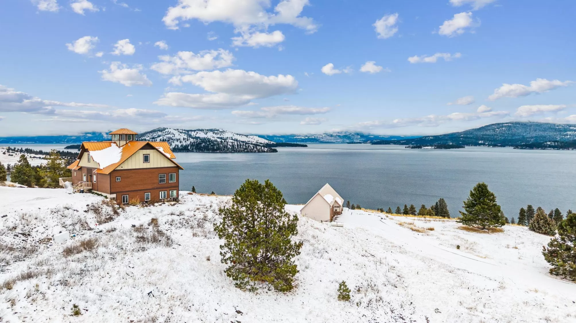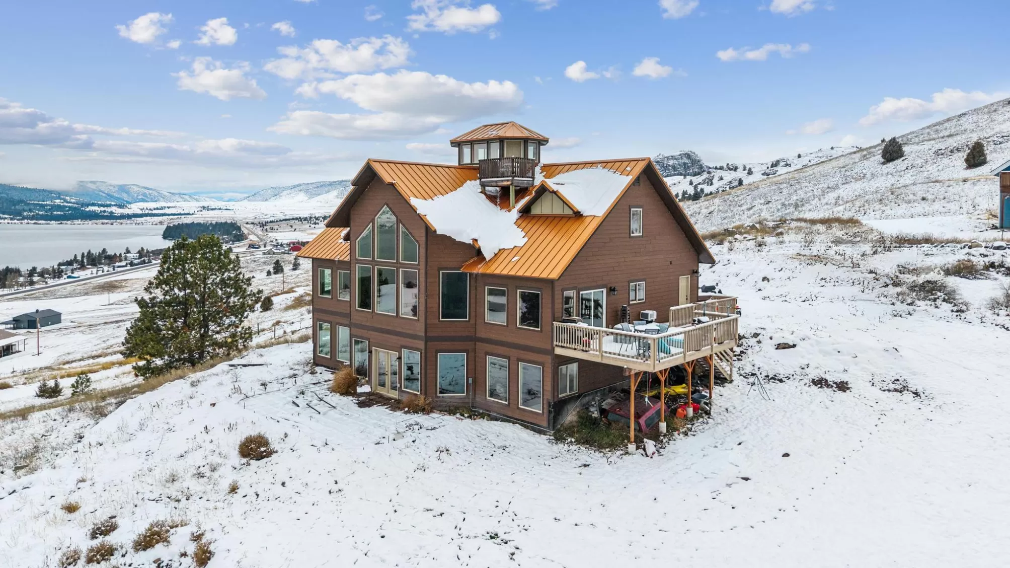 Experience Montana at its finest at 44142 Buffalo Road in Dayton. Perched on 3.75 open acres with sweeping, unobstructed views of Flathead Lake, this spacious multi-level home offers room to gather, room to retreat, and room to breathe. The main level welcomes you with an open, light-filled layout designed to capture the lake and mountain views from every angle. The kitchen flows seamlessly into the dining area with direct access to the deck—perfect for outdoor meals, morning coffee, and evening relaxation. A comfortable living room anchors the space, while the main-floor primary suite provides convenience and privacy. Two additional bedrooms, full laundry, and a bathroom round out this level. The lower level is made for entertaining with a generous living/recreation area, three bedrooms, and a full bath—ideal for guests! Upstairs, you’ll find an additional two bedrooms and a cozy living area, offering even more flexibility. At the very top of the home, an overlook room and deck provide a quiet perch to take in the panoramic lake and mountain scenery—your own private retreat. With no covenants, there’s freedom to use the property to suit your needs: extra parking, boat storage, recreational toys, or future outbuildings. Whether you're looking for a full-time residence, multi-generational home, or investment opportunity, this Dayton property delivers abundant space, expansive views, and the true Montana lifestyle.