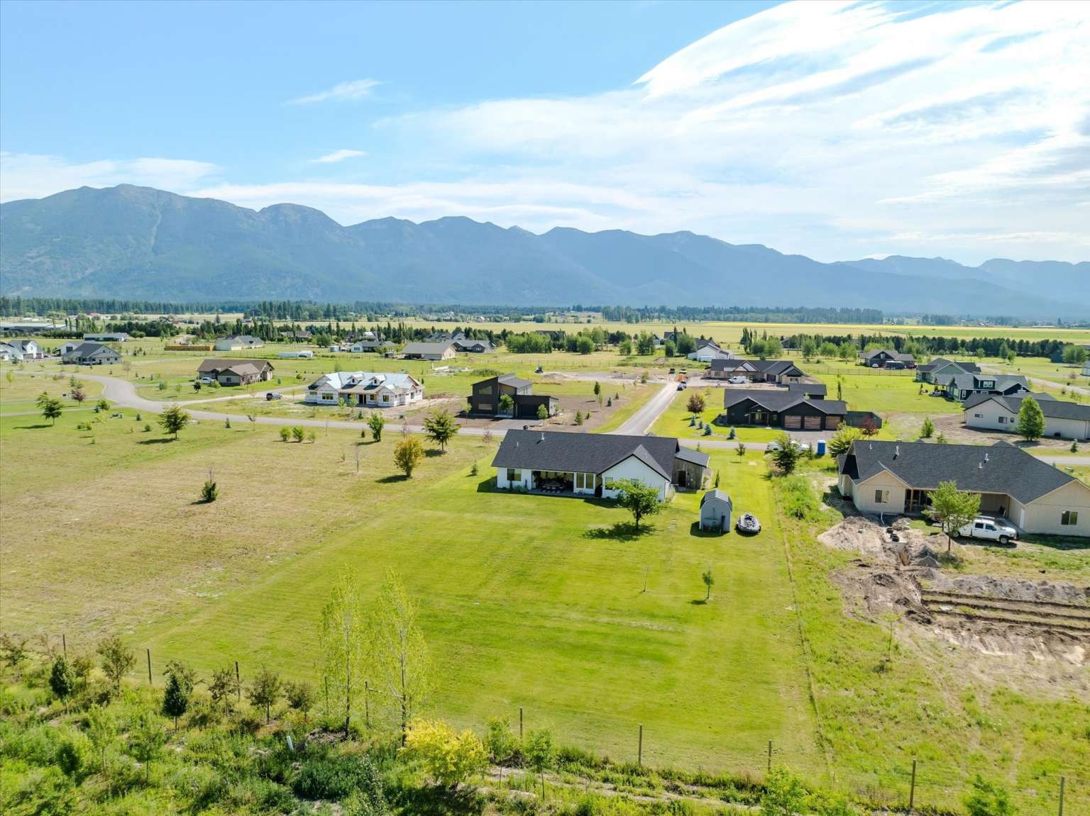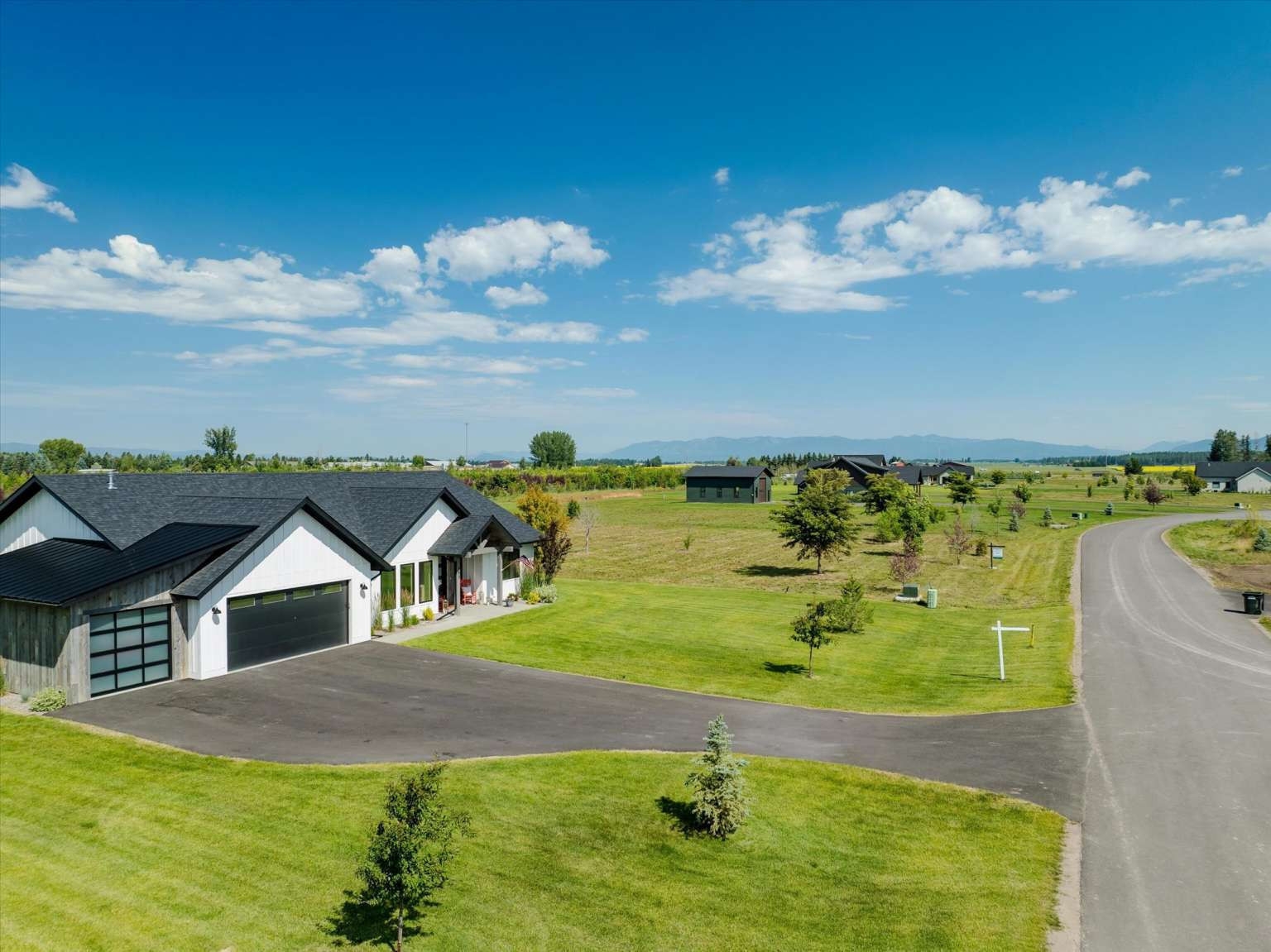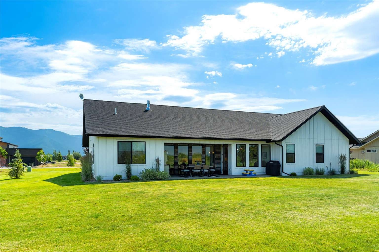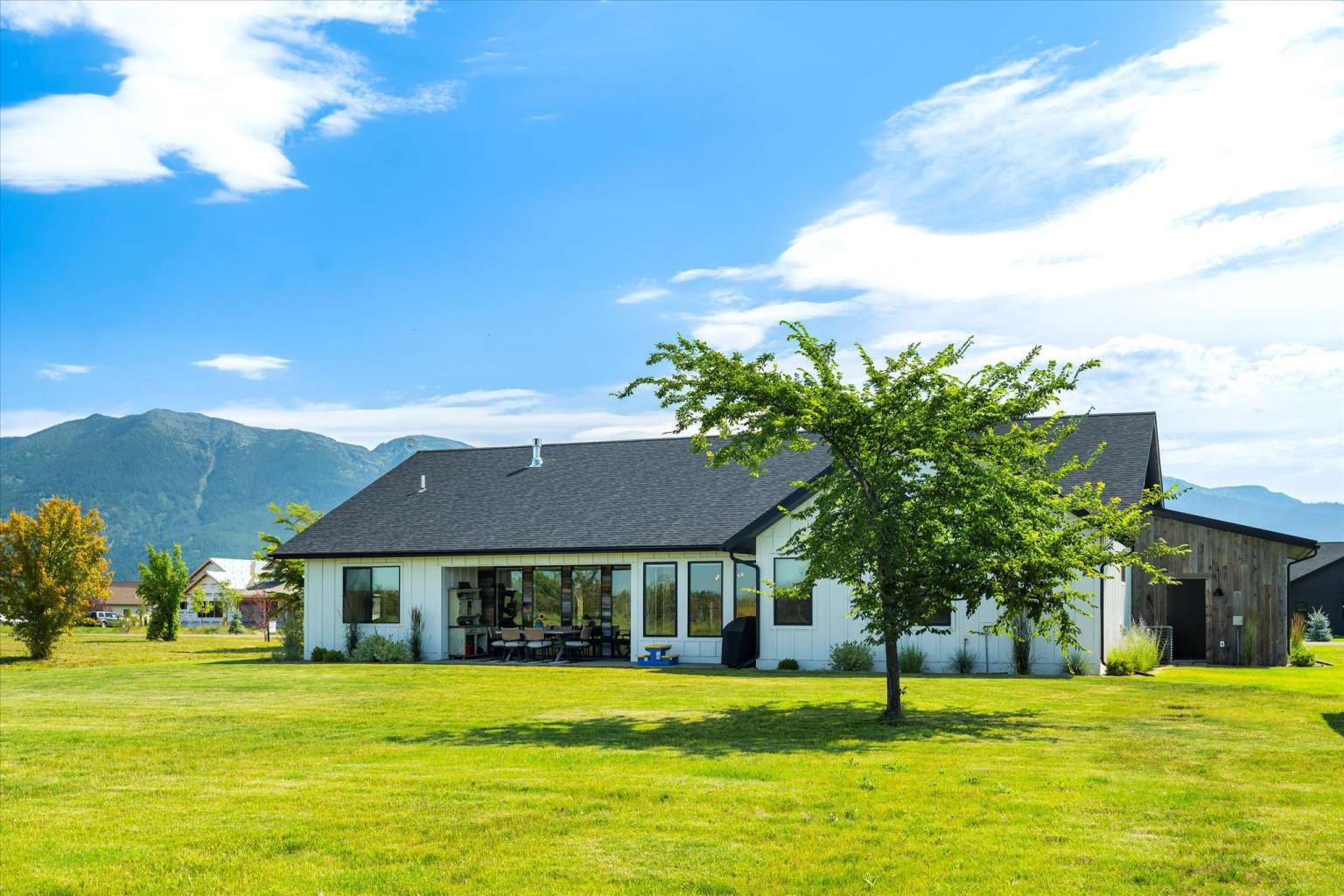 Nearly one acre with mountain views, this 2024 single-level, zero-step home offers modern Montana living just minutes from Kalispell and under 30 minutes from Glacier National Park. Designed for effortless everyday living, the home features vaulted ceilings, floor-to-ceiling windows, and covered front and rear patios that capture the surrounding landscape. The thoughtfully planned layout includes four bedrooms, two and a half bathrooms, a dedicated laundry room, and an inviting living space anchored by a gas fireplace. The kitchen is both functional and stylish, with Cafe appliances, a walk-in pantry, and clean, modern finishes throughout. The primary suite is a private retreat with heated bathroom floors and generous storage. Additional highlights include a heated three-car garage, quality construction, and a move-in-ready interior. Set in a peaceful Creston setting, this home blends comfort, functionality, and space in one of the Flathead Valley’s most desirable locations.