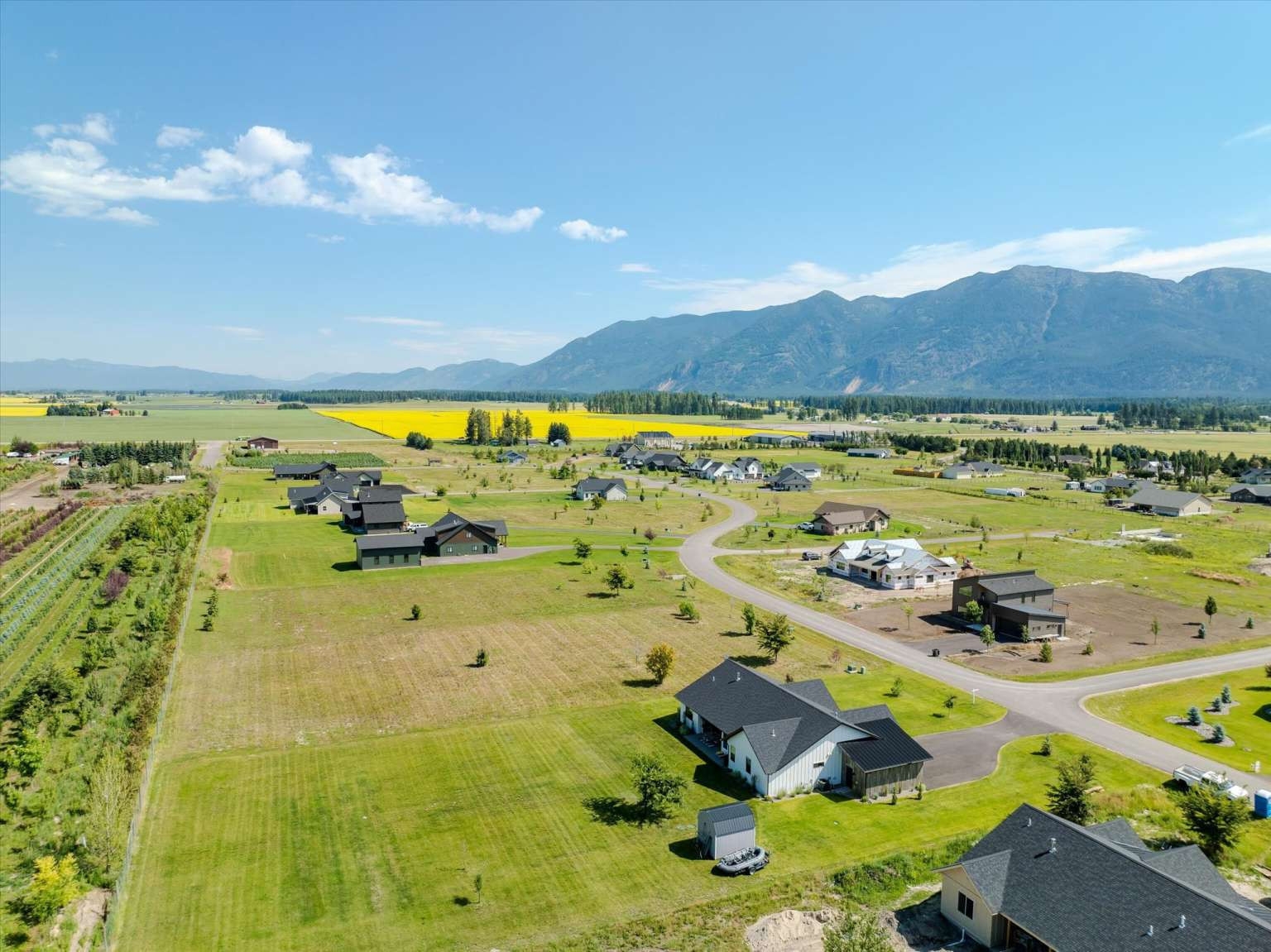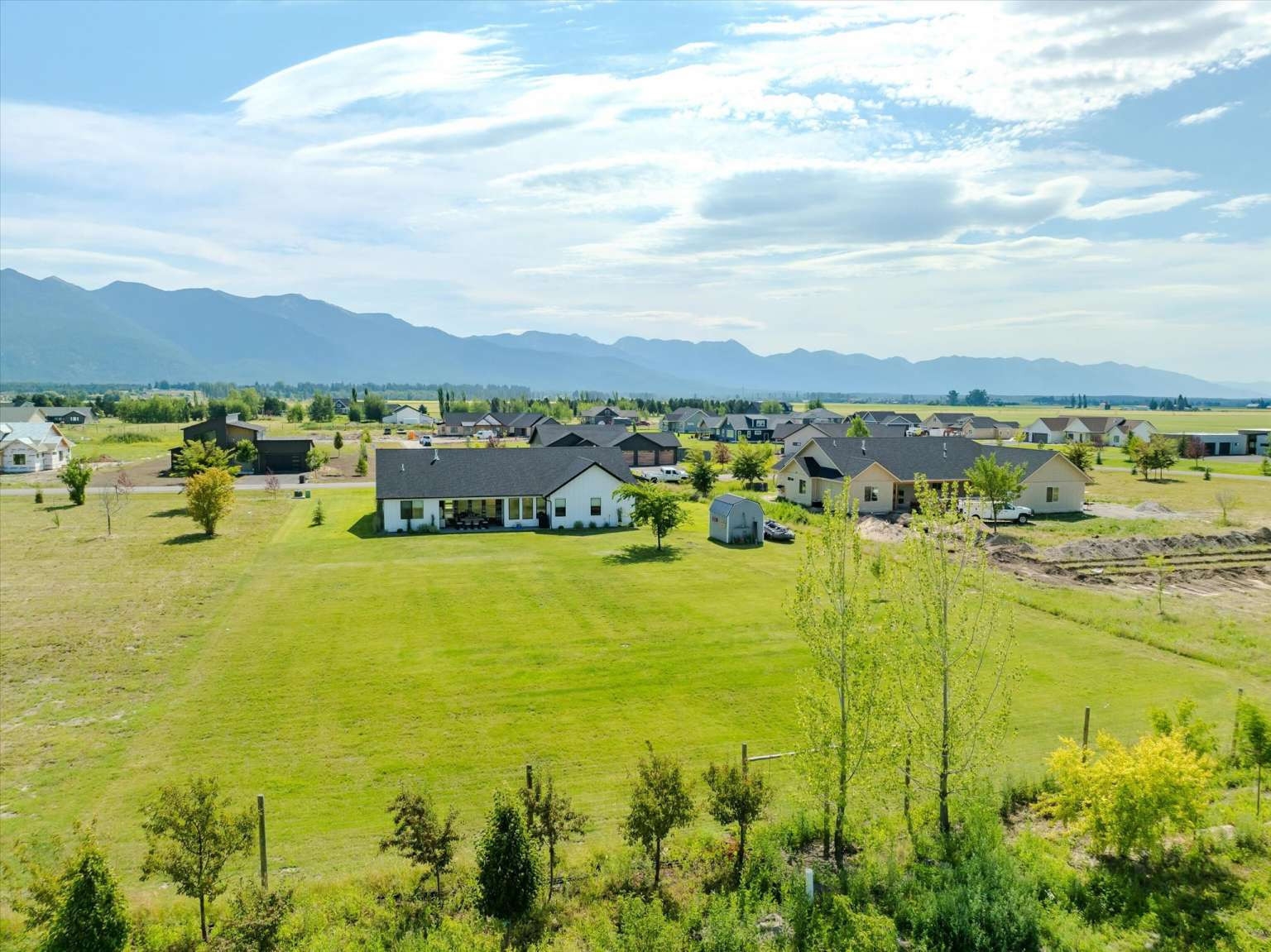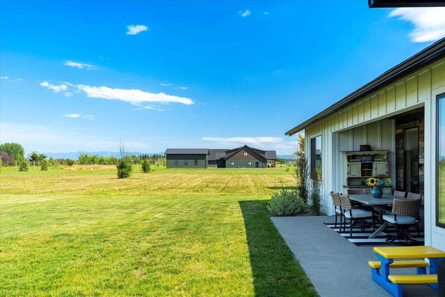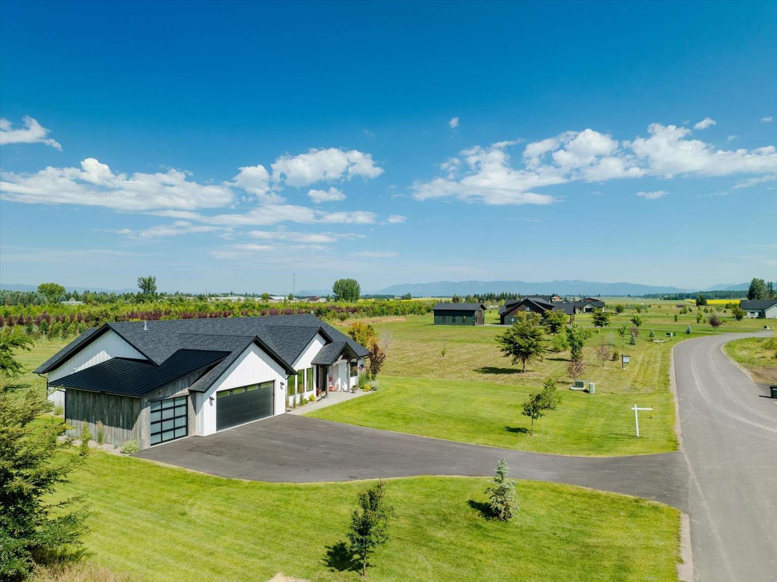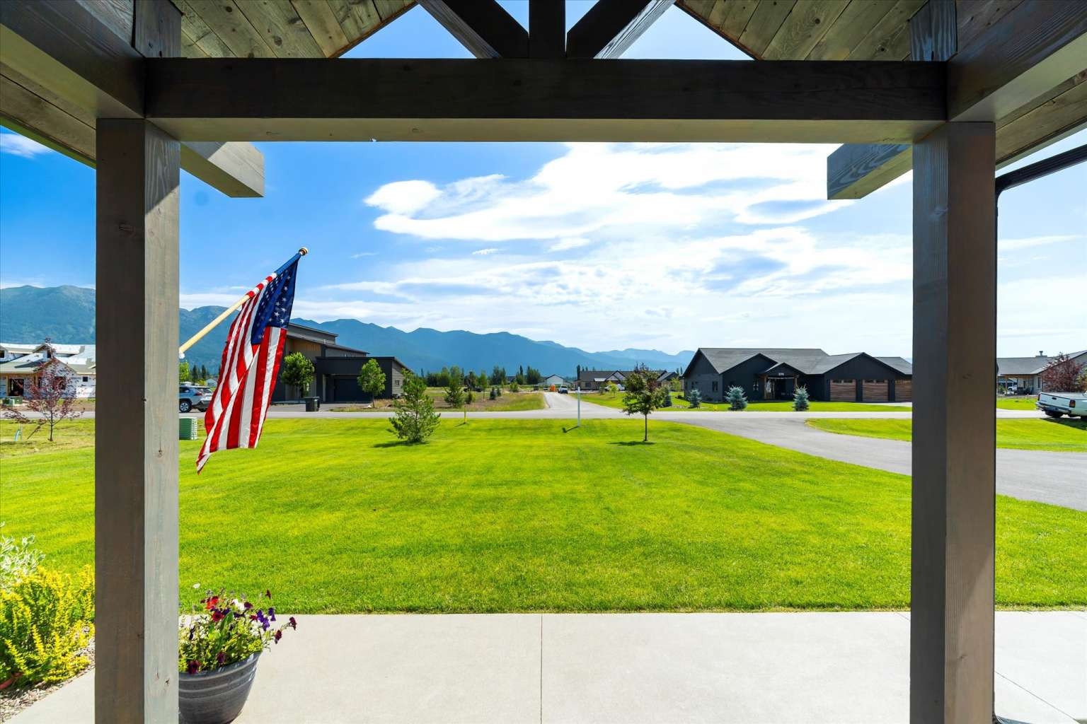 Nearly one acre with mountain views, this 2024 single-level, zero-step home offers modern Montana living just minutes from Kalispell and under 30 minutes from Glacier National Park. Designed for effortless everyday living, the home features vaulted ceilings, floor-to-ceiling windows, and covered front and rear patios that capture the surrounding landscape. The thoughtfully planned layout includes four bedrooms, two and a half bathrooms, a dedicated laundry room, and an inviting living space anchored by a gas fireplace. The kitchen is both functional and stylish, with Cafe appliances, a walk-in pantry, and clean, modern finishes throughout. The primary suite is a private retreat with heated bathroom floors and generous storage. Additional highlights include a heated three-car garage, quality construction, and a move-in-ready interior. Set in a peaceful Creston setting, this home blends comfort, functionality, and space in one of the Flathead Valley’s most desirable locations.