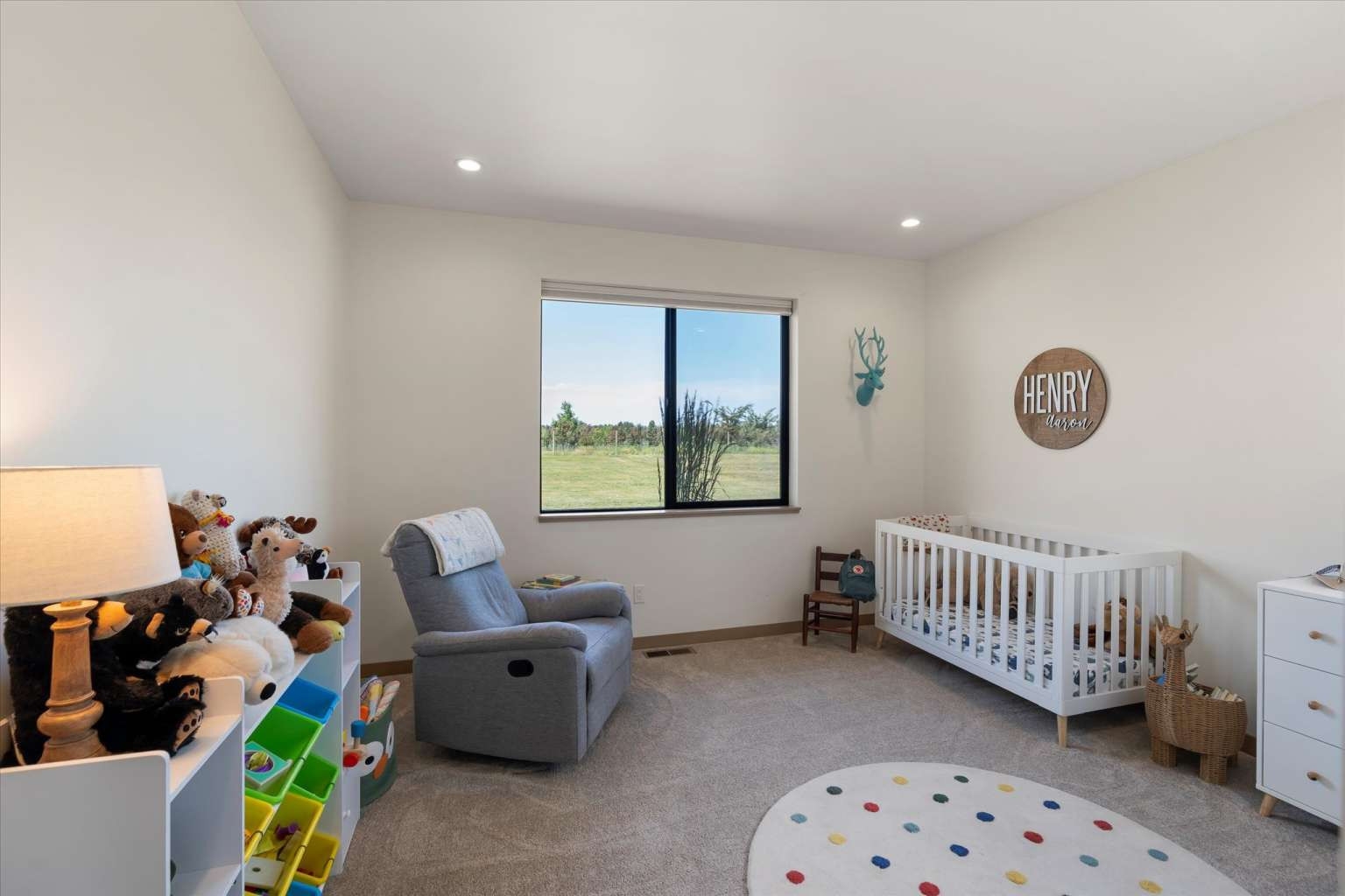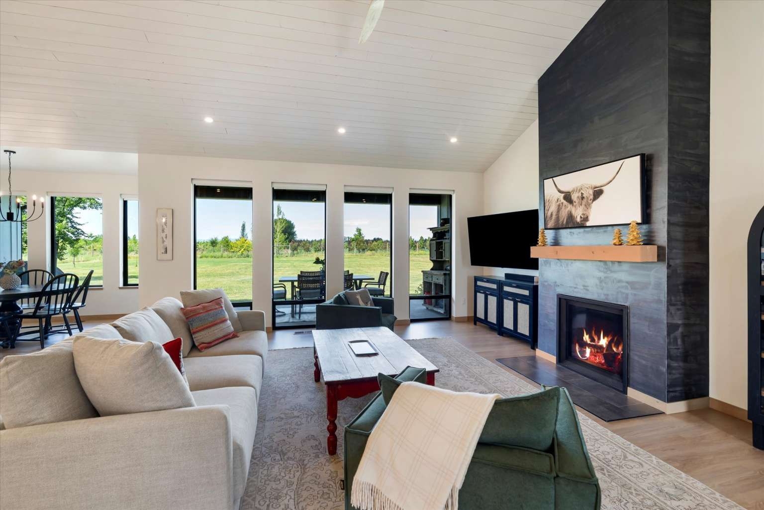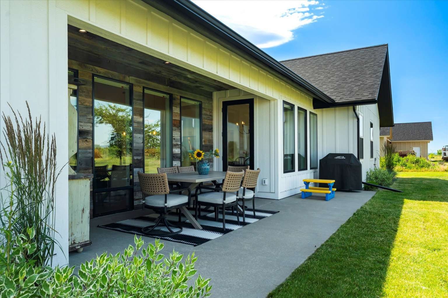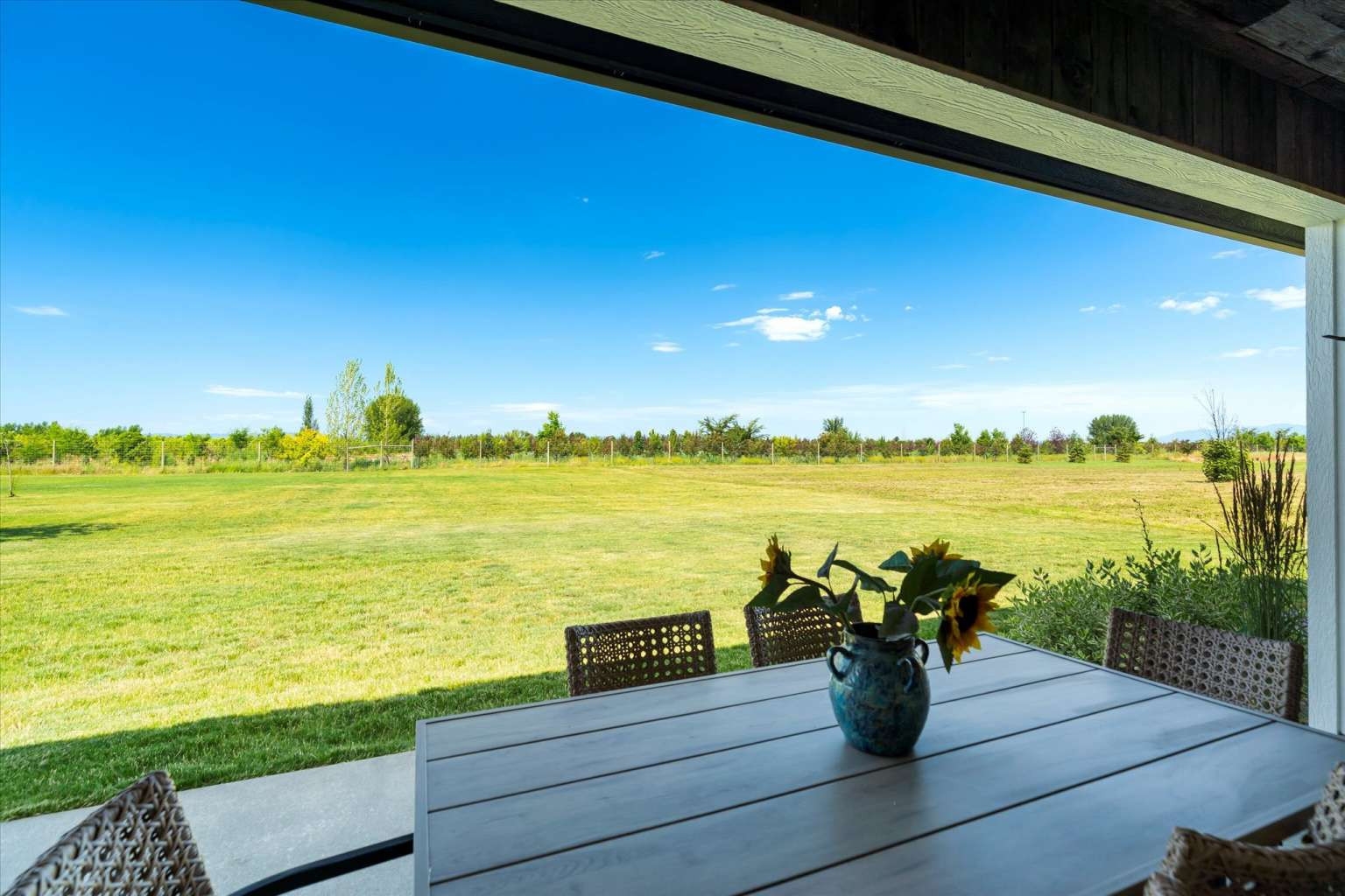 Nearly one acre with mountain views, this 2024 single-level, zero-step home offers modern Montana living just minutes from Kalispell and under 30 minutes from Glacier National Park. Designed for effortless everyday living, the home features vaulted ceilings, floor-to-ceiling windows, and covered front and rear patios that capture the surrounding landscape. The thoughtfully planned layout includes four bedrooms, two and a half bathrooms, a dedicated laundry room, and an inviting living space anchored by a gas fireplace. The kitchen is both functional and stylish, with Cafe appliances, a walk-in pantry, and clean, modern finishes throughout. The primary suite is a private retreat with heated bathroom floors and generous storage. Additional highlights include a heated three-car garage, quality construction, and a move-in-ready interior. Set in a peaceful Creston setting, this home blends comfort, functionality, and space in one of the Flathead Valley’s most desirable locations.