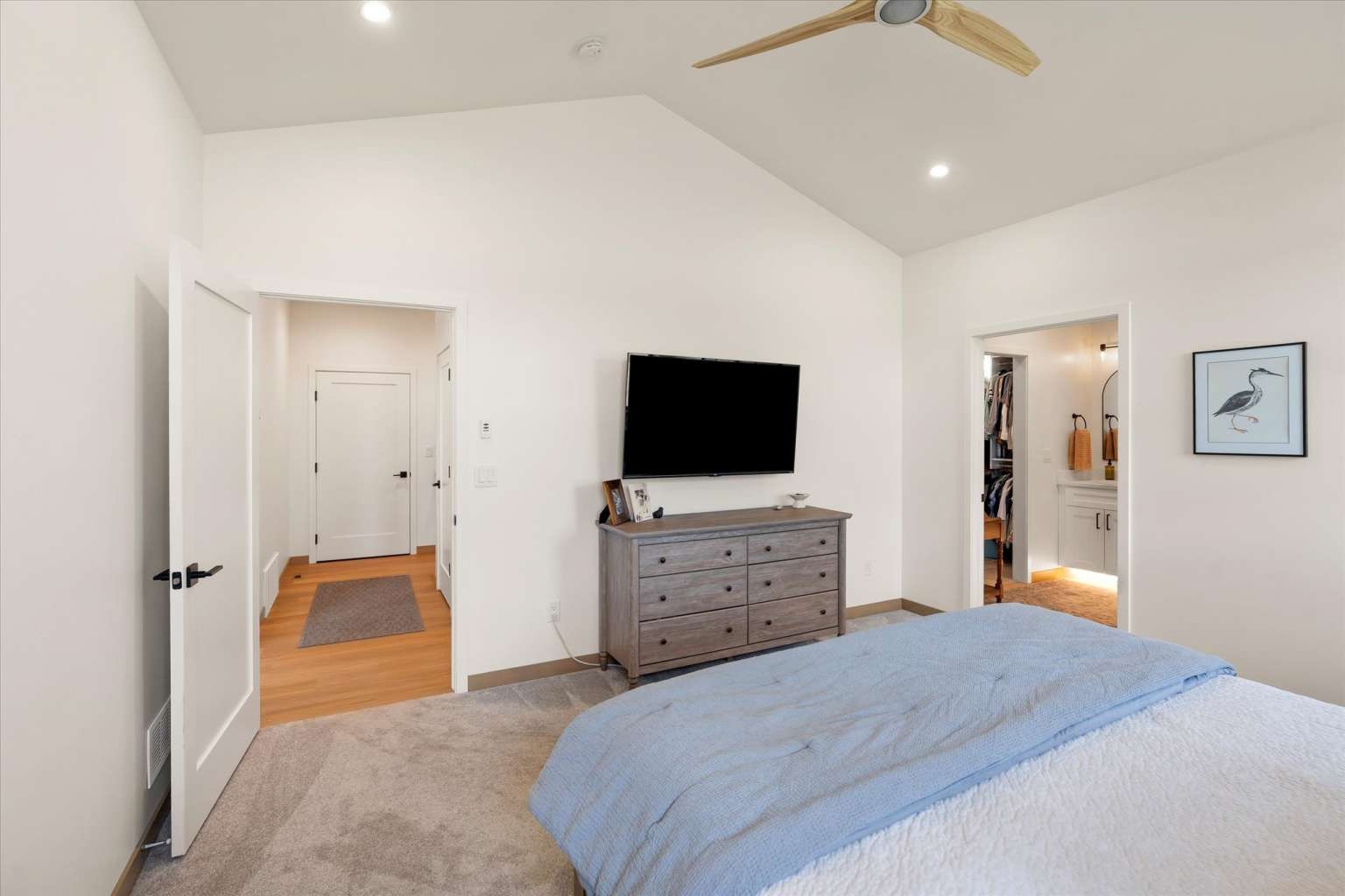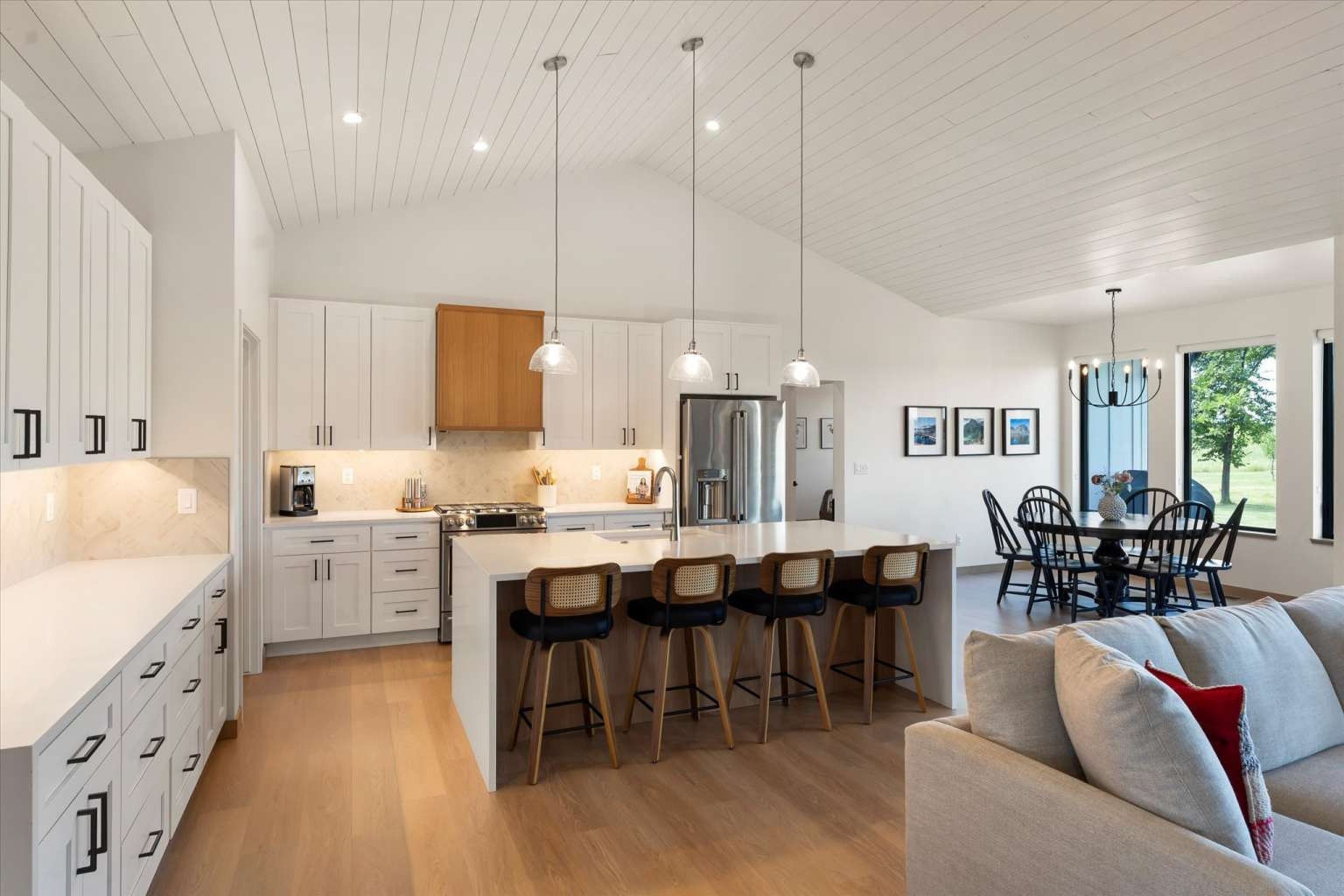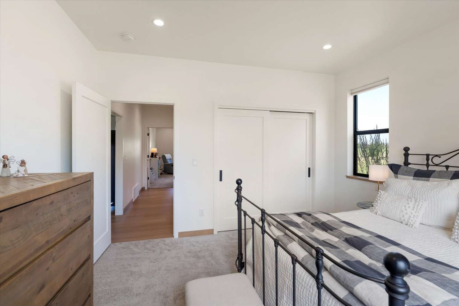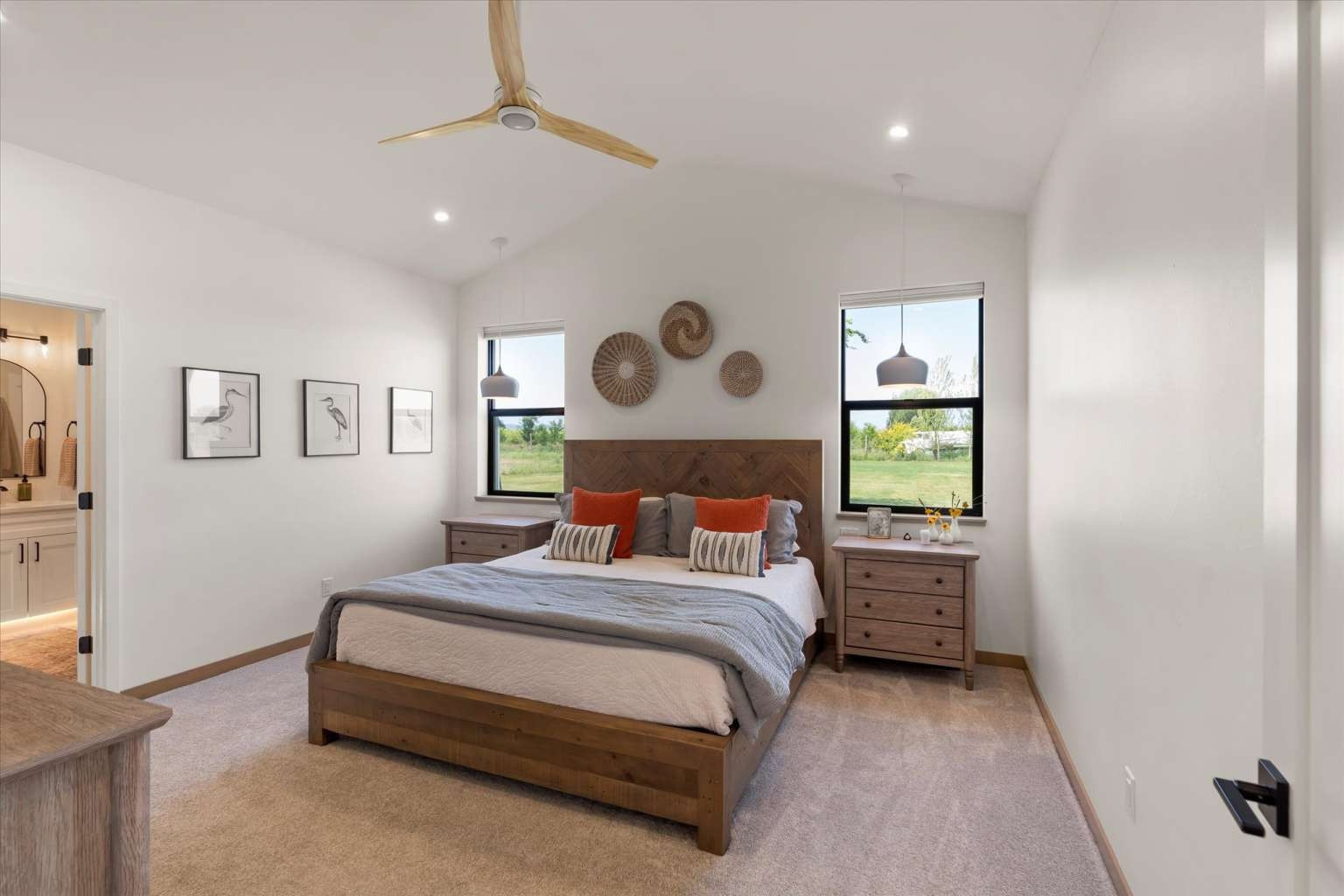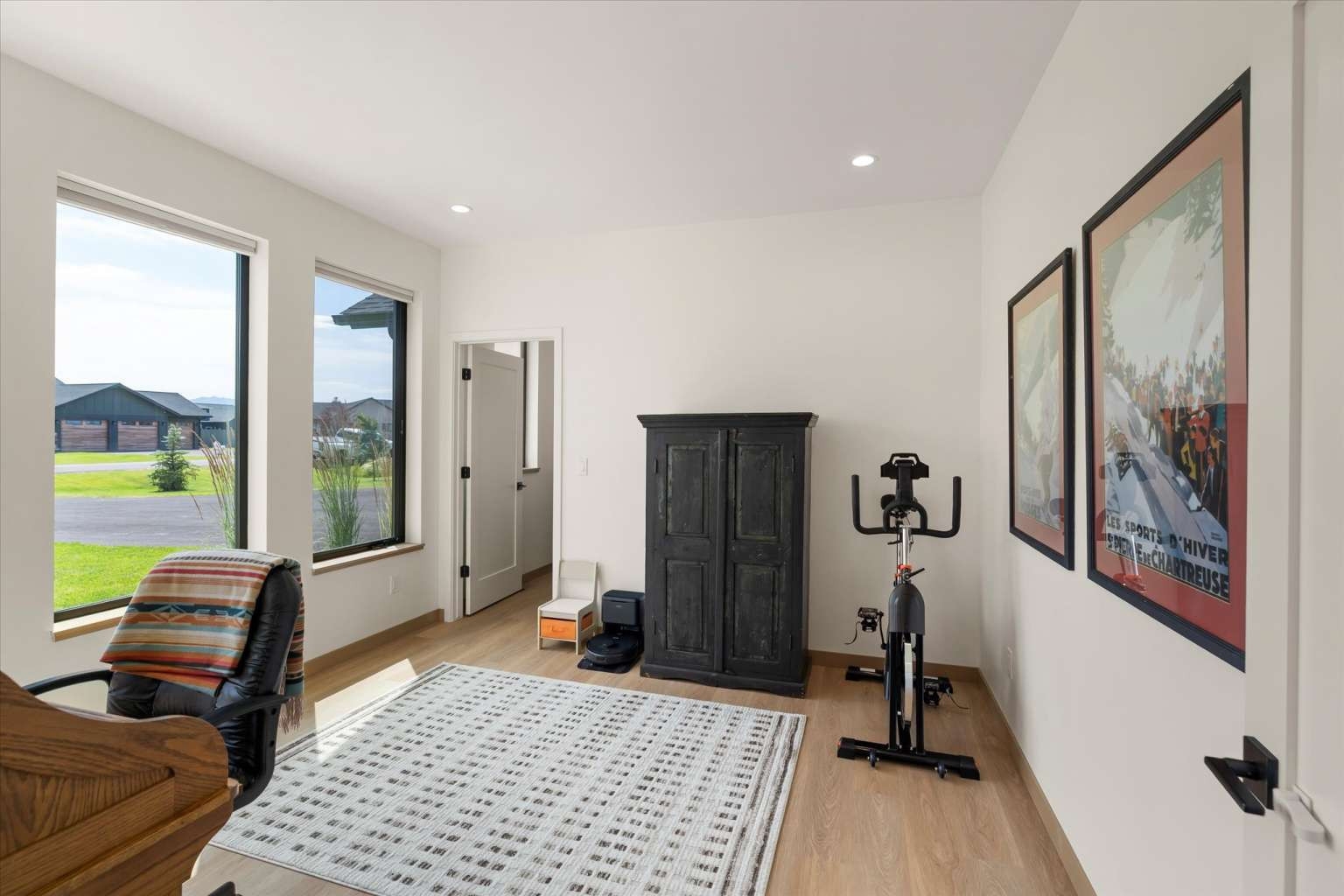 Nearly one acre with mountain views, this 2024 single-level, zero-step home offers modern Montana living just minutes from Kalispell and under 30 minutes from Glacier National Park. Designed for effortless everyday living, the home features vaulted ceilings, floor-to-ceiling windows, and covered front and rear patios that capture the surrounding landscape. The thoughtfully planned layout includes four bedrooms, two and a half bathrooms, a dedicated laundry room, and an inviting living space anchored by a gas fireplace. The kitchen is both functional and stylish, with Cafe appliances, a walk-in pantry, and clean, modern finishes throughout. The primary suite is a private retreat with heated bathroom floors and generous storage. Additional highlights include a heated three-car garage, quality construction, and a move-in-ready interior. Set in a peaceful Creston setting, this home blends comfort, functionality, and space in one of the Flathead Valley’s most desirable locations.