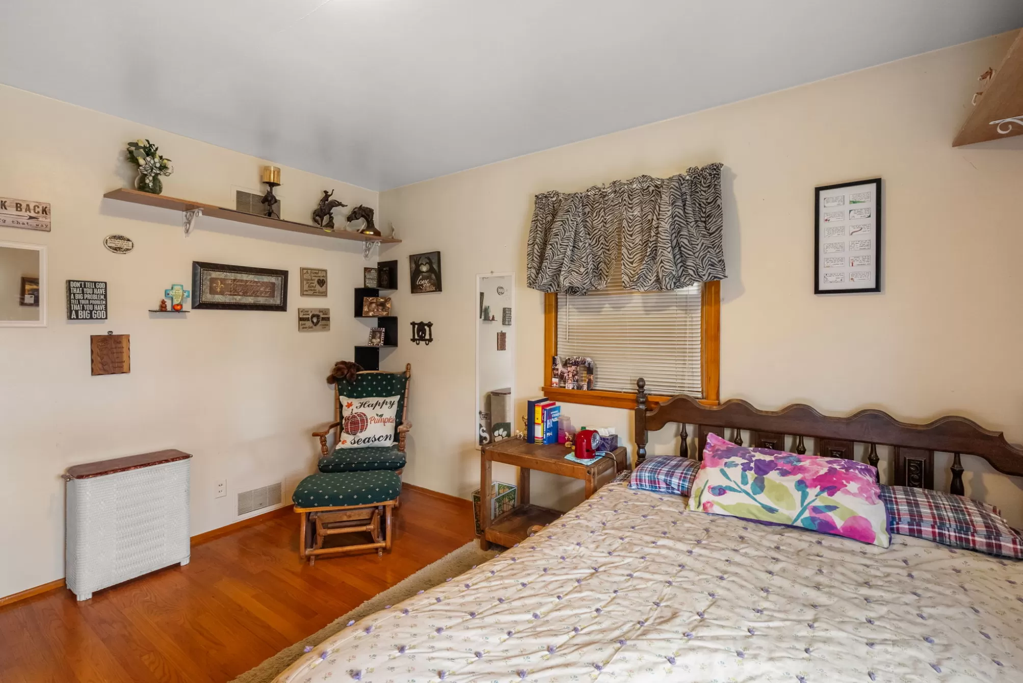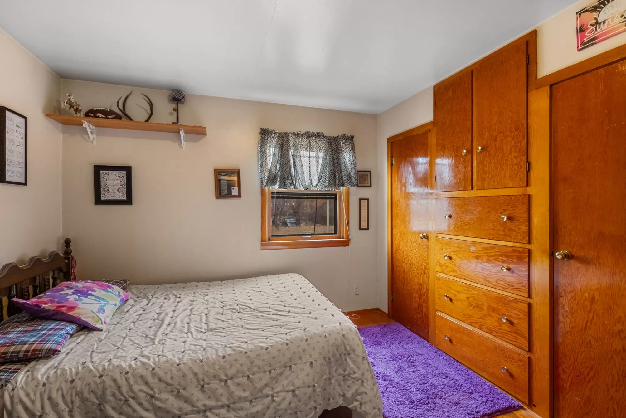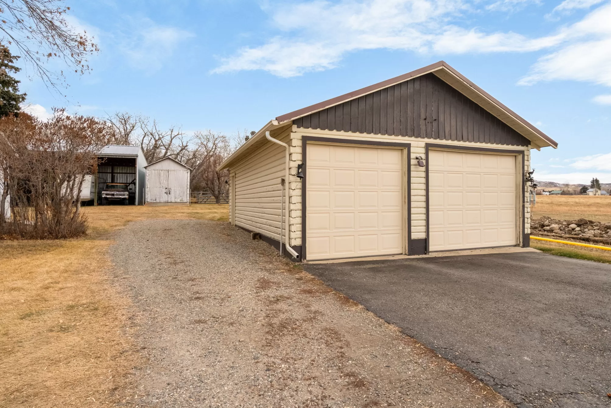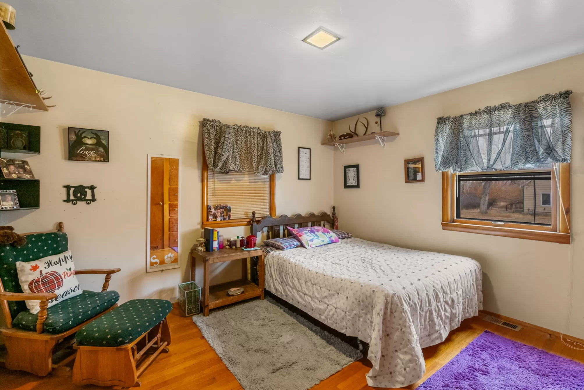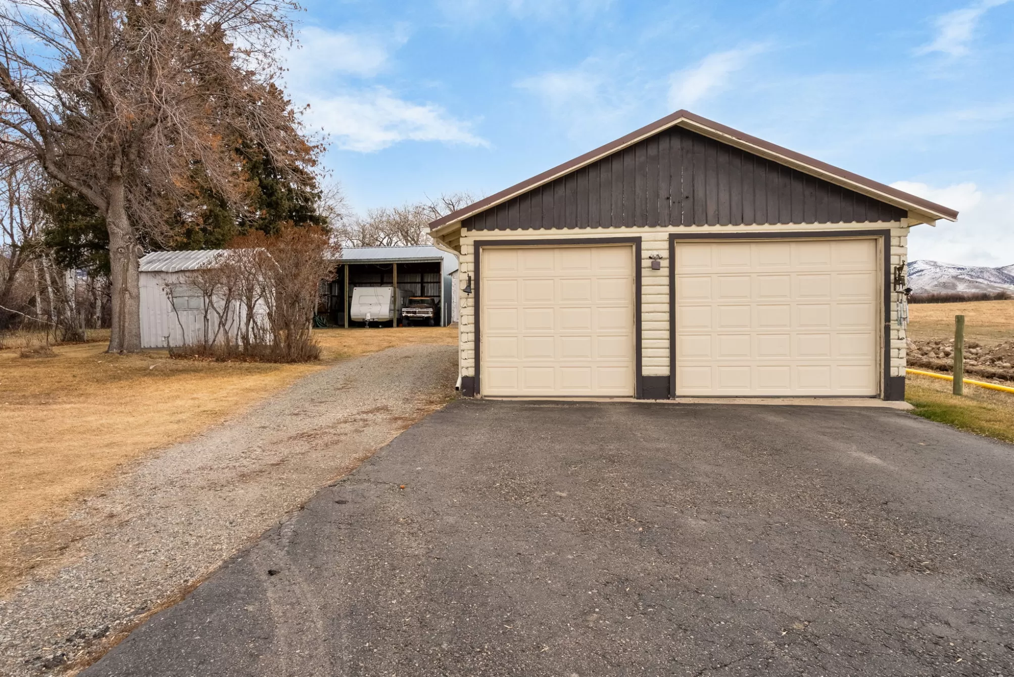Charming 1952 3-bedroom, 1-bathroom home on the rural edge of Sheridan with original hardwood floors (under the carpet), beautiful built-ins, and large picture windows that fill the living room with natural light. Ample storage in the large kitchen. Third bedroom addition offers flexibility with its own exterior entrance. The 1,114 SF unfinished basement provides excellent potential for future expansion. Enjoy central A/C and a convenient laundry chute from the bathroom. Exterior features include a blacktop driveway, 2-car detached garage, 3-stall open pole barn, large shed, small shed, underground sprinklers, and mature vegetation. Easy access just off the highway and room to make this property your own.