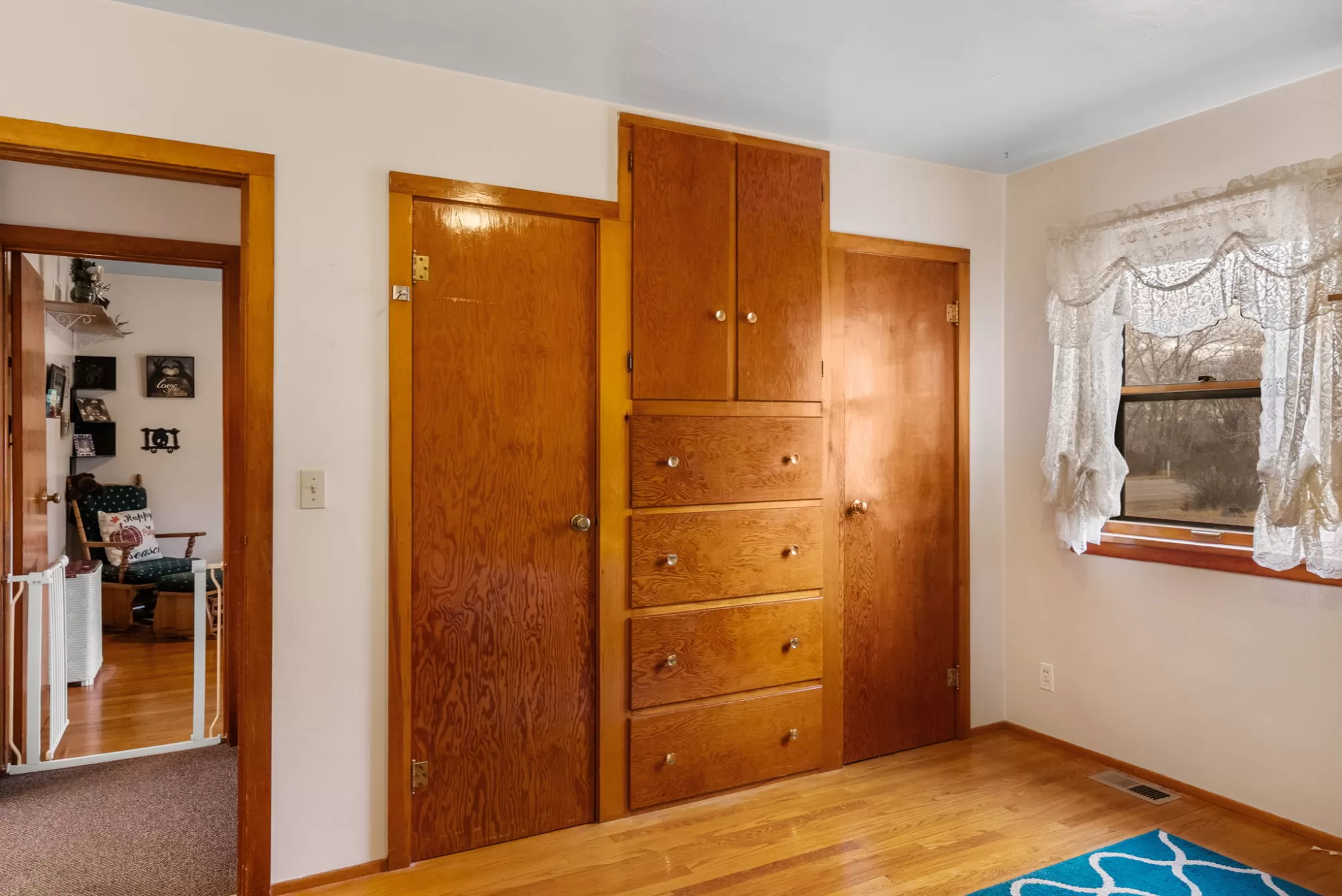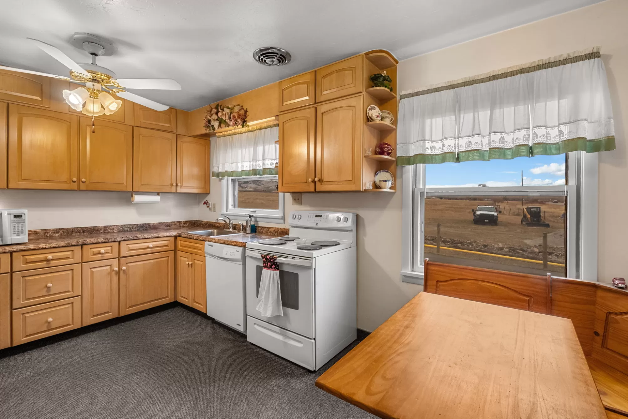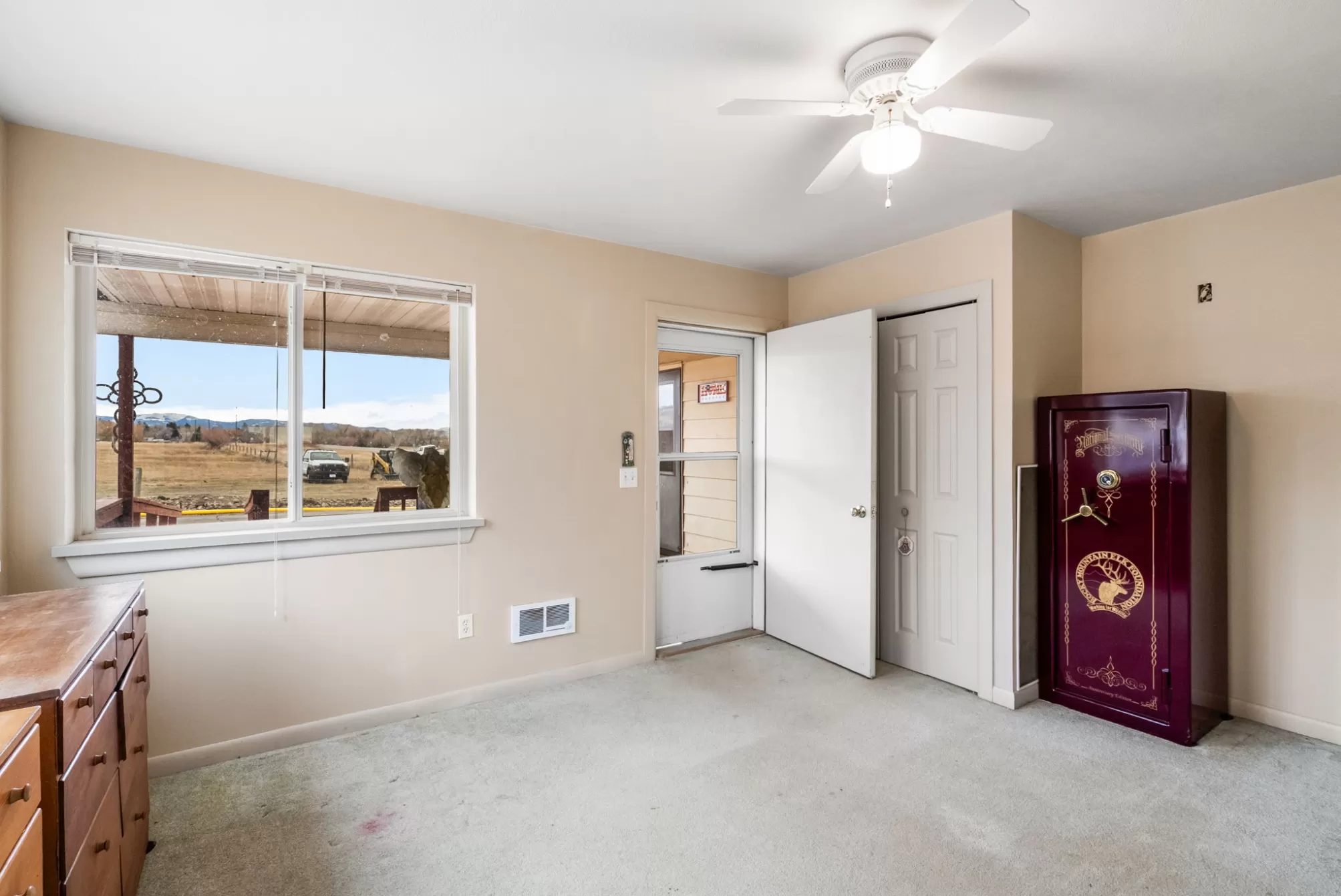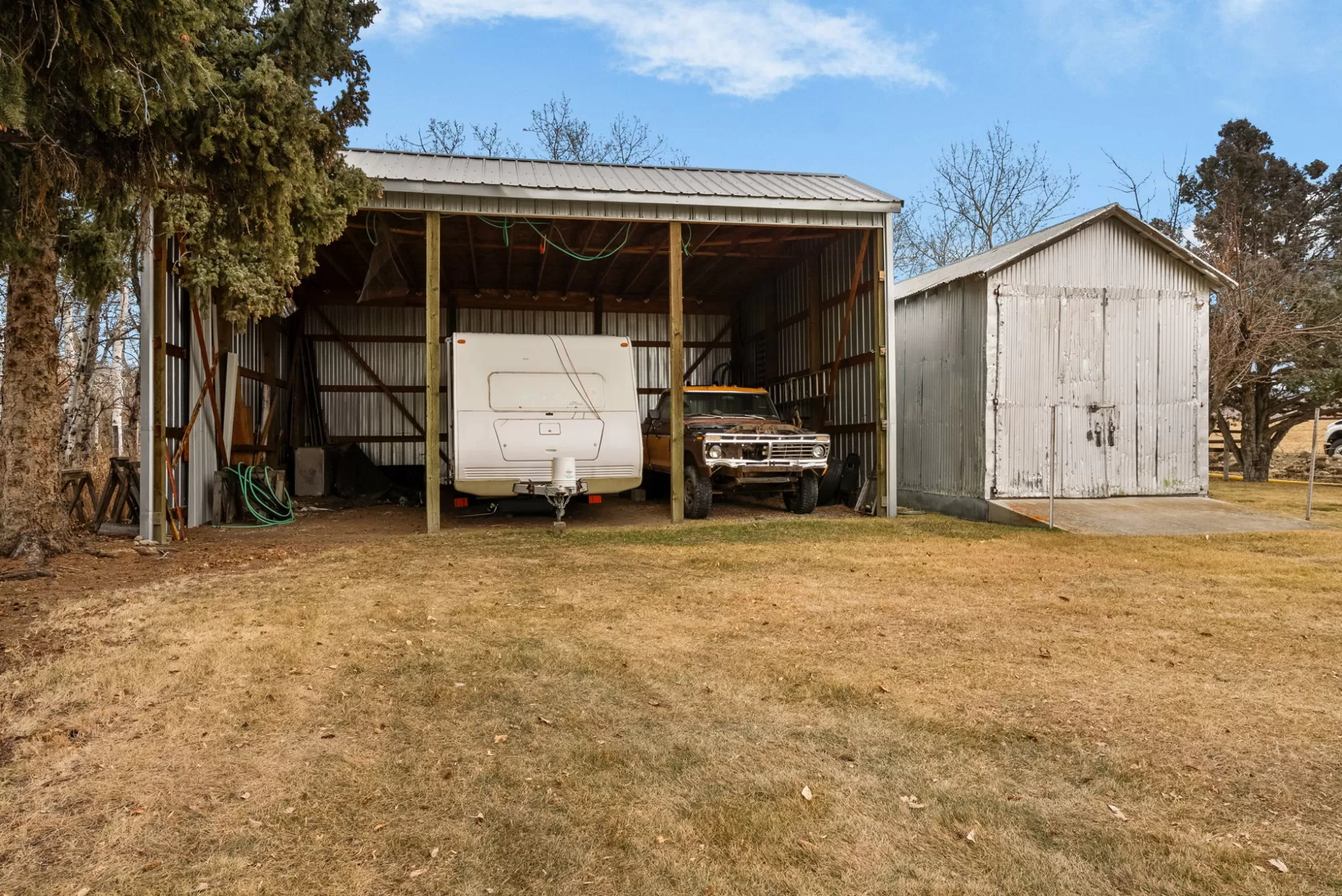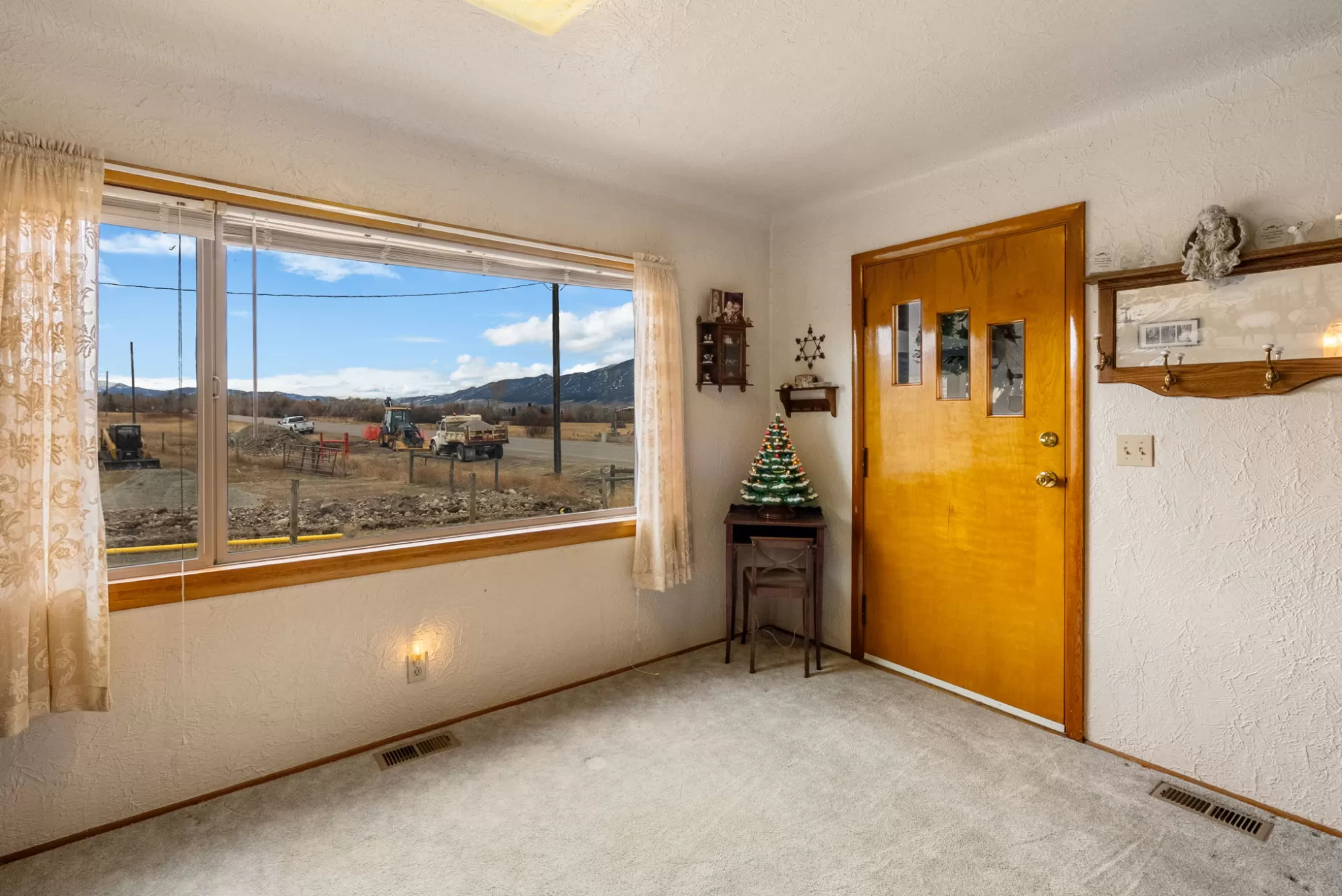 Charming 1952 3-bedroom, 1-bathroom home on the rural edge of Sheridan with original hardwood floors (under the carpet), beautiful built-ins, and large picture windows that fill the living room with natural light. Ample storage in the large kitchen. Third bedroom addition offers flexibility with its own exterior entrance. The 1,114 SF unfinished basement provides excellent potential for future expansion. Enjoy central A/C and a convenient laundry chute from the bathroom. Exterior features include a blacktop driveway, 2-car detached garage, 3-stall open pole barn, large shed, small shed, underground sprinklers, and mature vegetation. Easy access just off the highway and room to make this property your own.