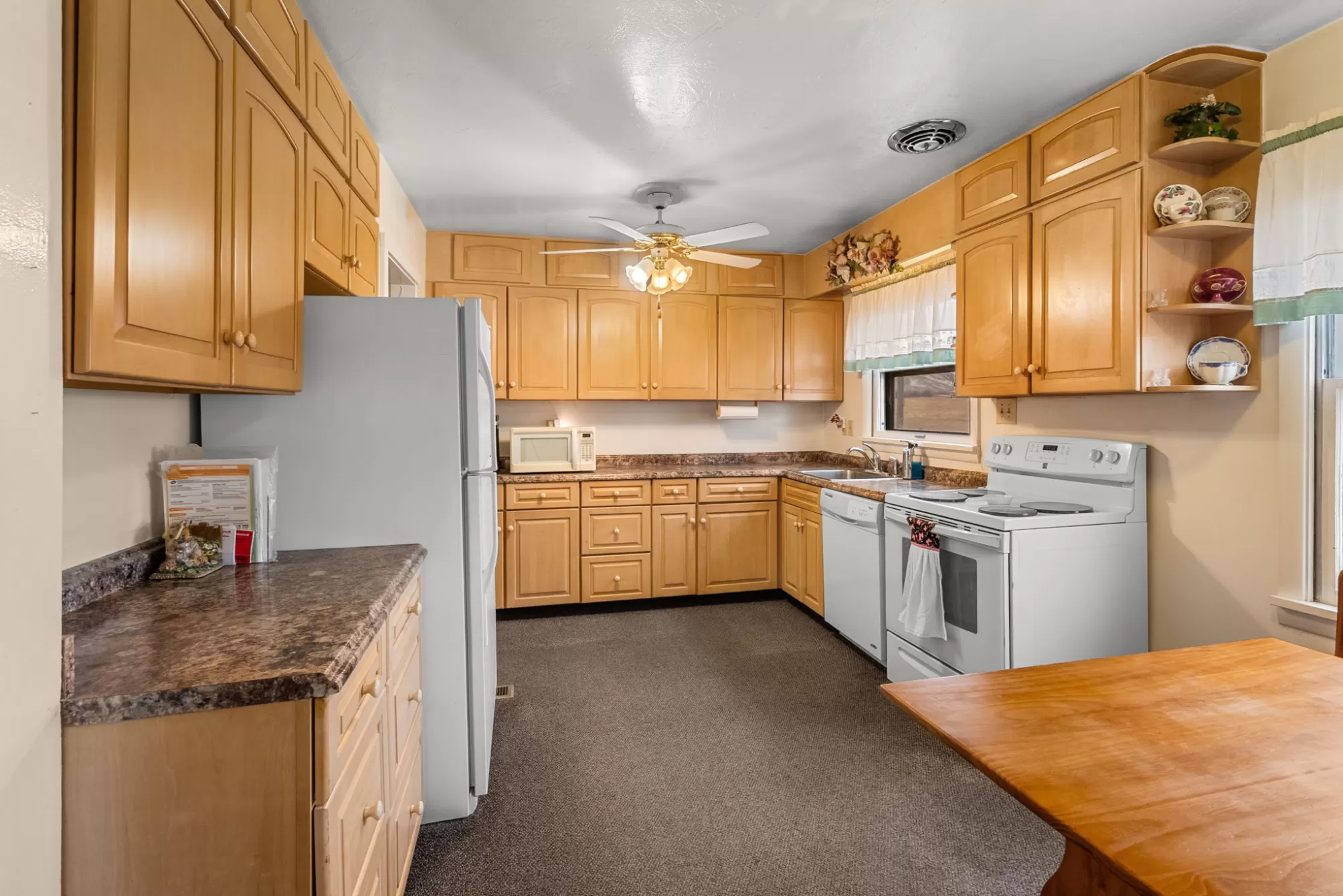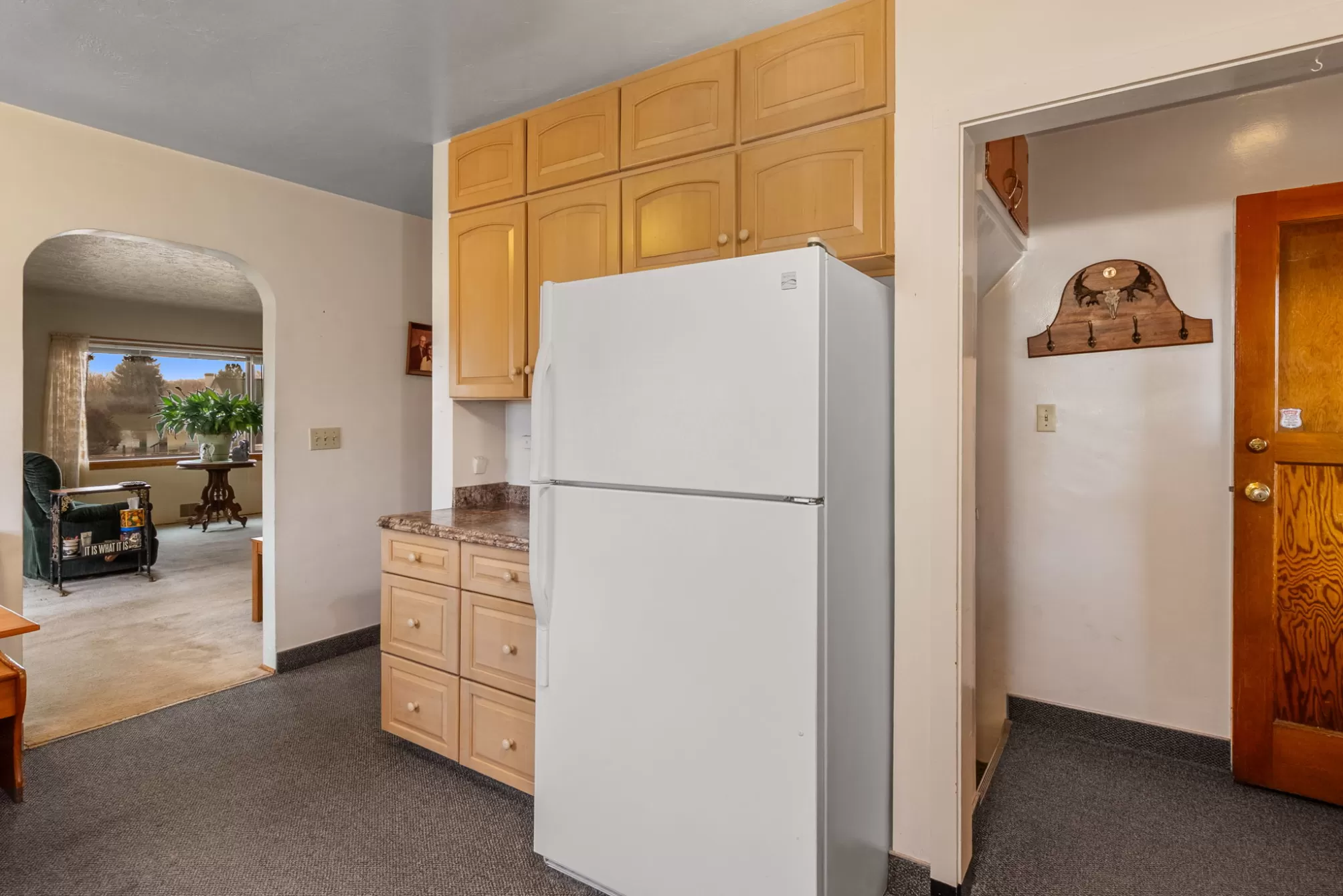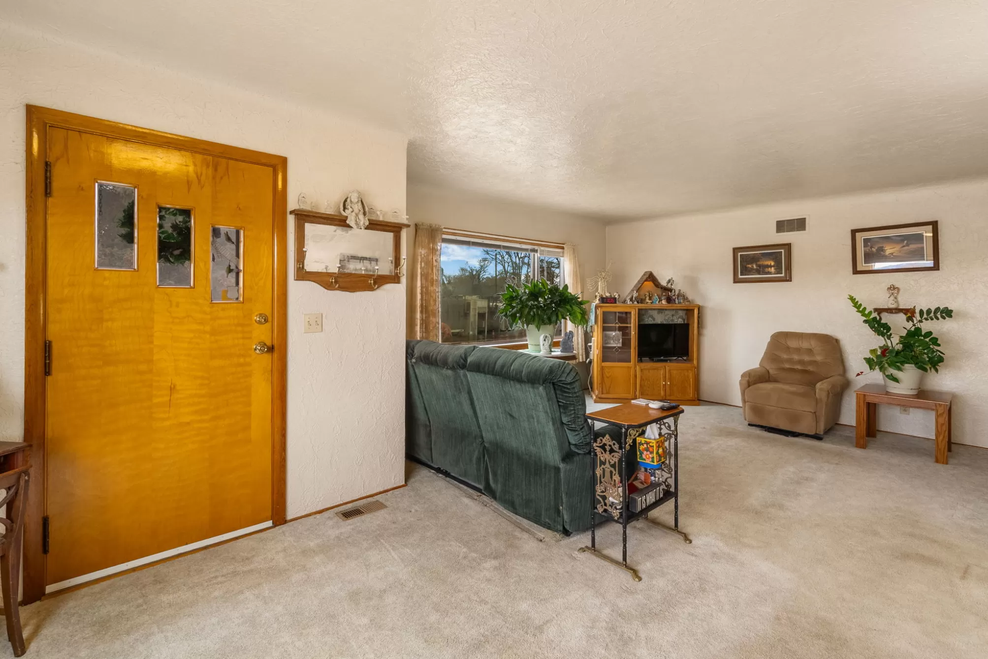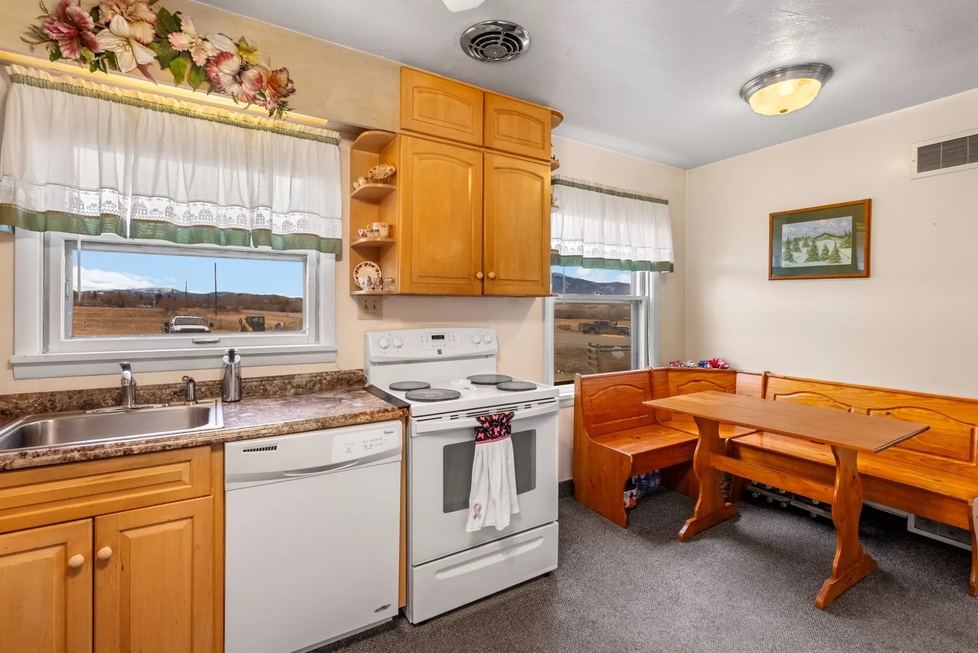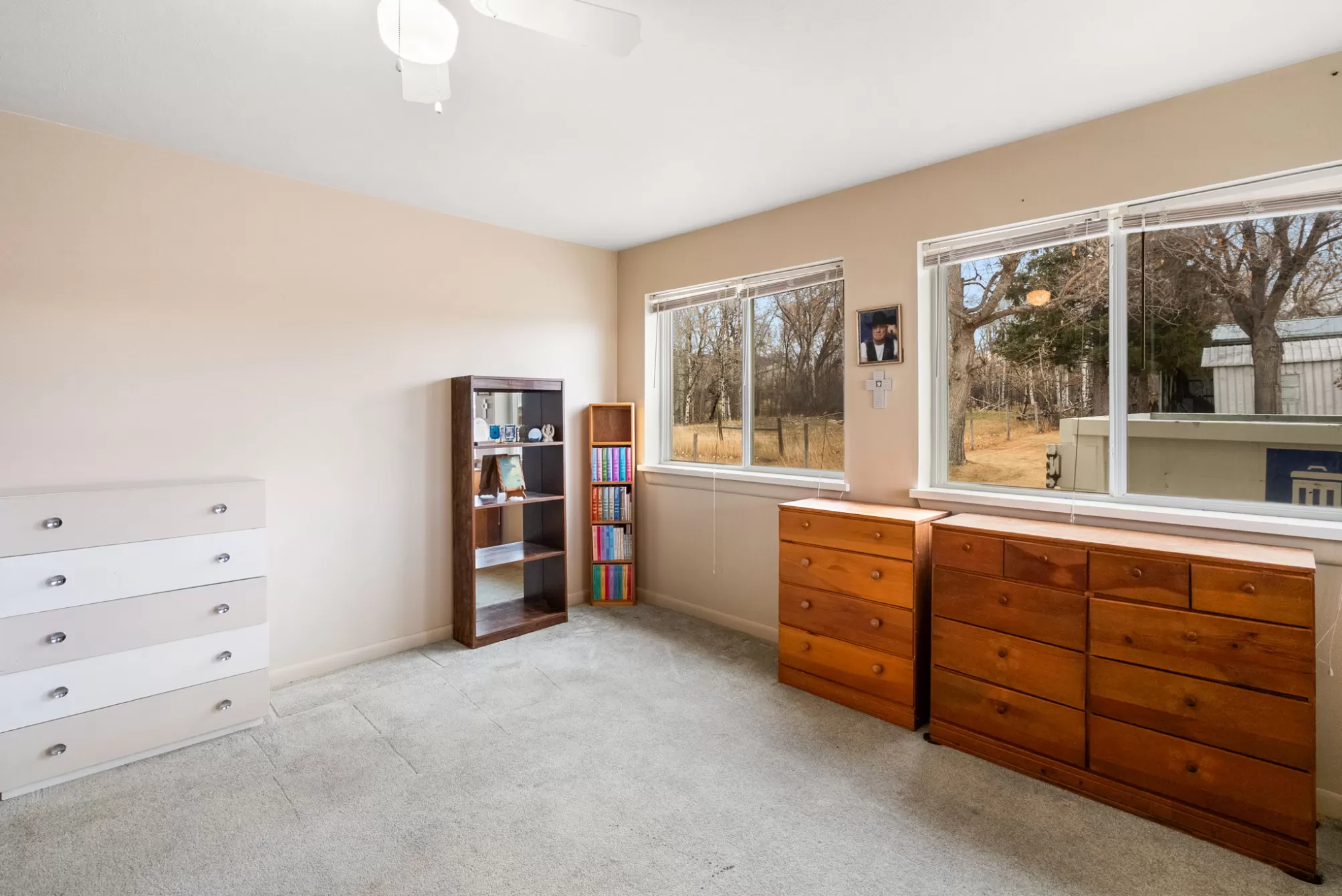 Charming 1952 3-bedroom, 1-bathroom home on the rural edge of Sheridan with original hardwood floors (under the carpet), beautiful built-ins, and large picture windows that fill the living room with natural light. Ample storage in the large kitchen. Third bedroom addition offers flexibility with its own exterior entrance. The 1,114 SF unfinished basement provides excellent potential for future expansion. Enjoy central A/C and a convenient laundry chute from the bathroom. Exterior features include a blacktop driveway, 2-car detached garage, 3-stall open pole barn, large shed, small shed, underground sprinklers, and mature vegetation. Easy access just off the highway and room to make this property your own.