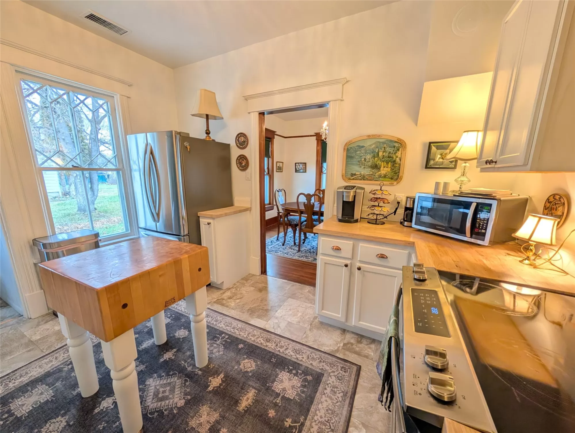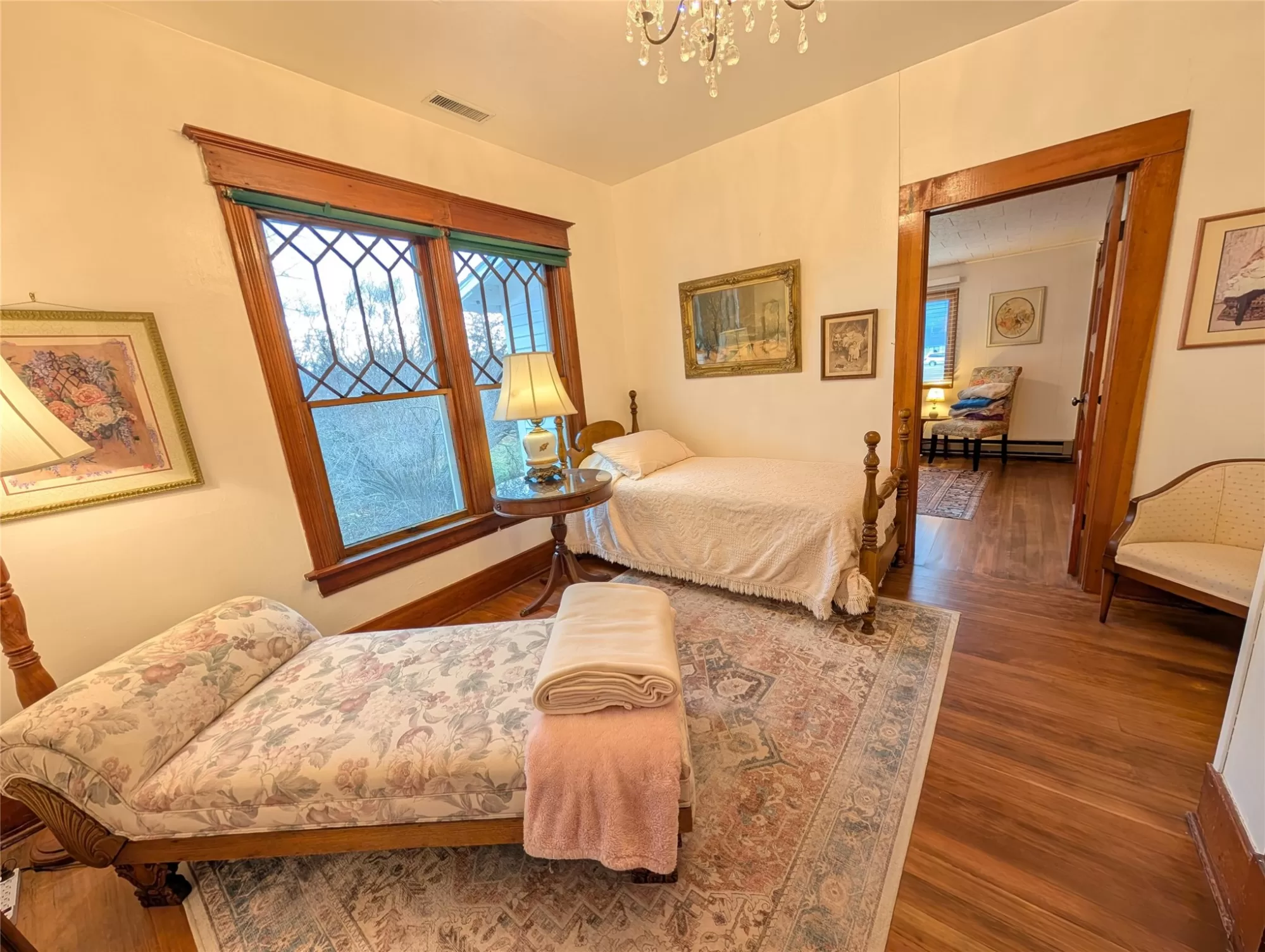 Historic Charm abounds in this carefully refurbished 1910 bungalow, originally belonging to Charles Amos Buck. The property appears on the Historic Registry of Historic Places, and is located just a block off Main Street Stevensville. Care has been taken to maintain the original beauty of the leaded glass windows, woodwork, hardwood floors, original door hardware, and hardwood flooring, while adding modern convenience. Upgrades include plumbing and electrical, new kitchen and bathroom fixtures and appliances, new stackable washer/dryer. Underground sprinklers. Use the bonus room as an office, den, or second bedroom with an ample closet. Home has been used as a VRBO at $200/night, with occasional month-long bookings. Good source of revenue.
