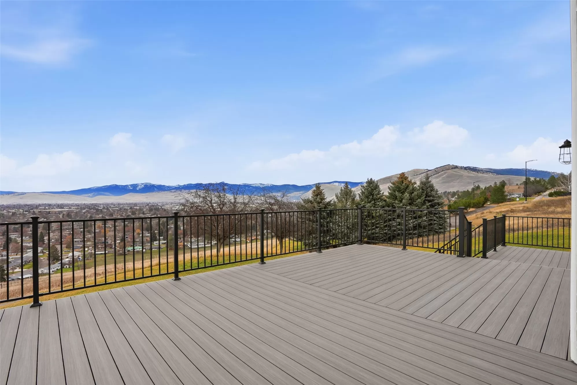 Perched to capture sweeping, unobstructed views of the Missoula Valley, this truly one-of-a-kind property offers privacy, space, and a remarkable setting. Backing to approximately 16 acres of common area and the surroundings provide a rare sense of openness and tranquility. With six bedrooms, three bathrooms, and abundant room to roam, this home blends comfort, functionality, and breathtaking scenery. Designed with entertaining in mind while still feeling warm and inviting, the thoughtfully planned floor plan offers generous living spaces throughout. The main level features a light-filled kitchen with numerous windows perfectly positioned to take in the expansive views. An oversized living room showcases a gas fireplace framed in classic brick, creating a welcoming focal point. Sliding doors off the kitchen and living room lead to a new Trex deck with stairs down to the backyard—ideal for gatherings or quiet moments outdoors. This outdoor space is the picturesque Montana feel and it could be yours! Also on the main level is a spacious laundry room complete with a sink and long countertops, making everyday tasks effortless. A formal dining room and sitting room along with a half-bath round out this level, offering flexible spaces for hosting or relaxing. Upstairs, you’ll find four bedrooms, including a private primary suite with its own full bathroom and two closets. The additional bedrooms are generously sized, providing comfort and personal space for everyone. The daylight basement adds even more living potential with additional bedrooms and a large living area designed for entertaining or multi-purpose use. Storage will never be a concern thanks to ample additional space for belongings and seasonal decor. Completing the property is an attached triple-car garage, along with extra outdoor spot/space for recreational toys. With stunning views, nearby recreational trails, and a beautiful, well-designed layout, properties like this rarely come to market, offering a unique opportunity to enjoy Missoula living at its finest.