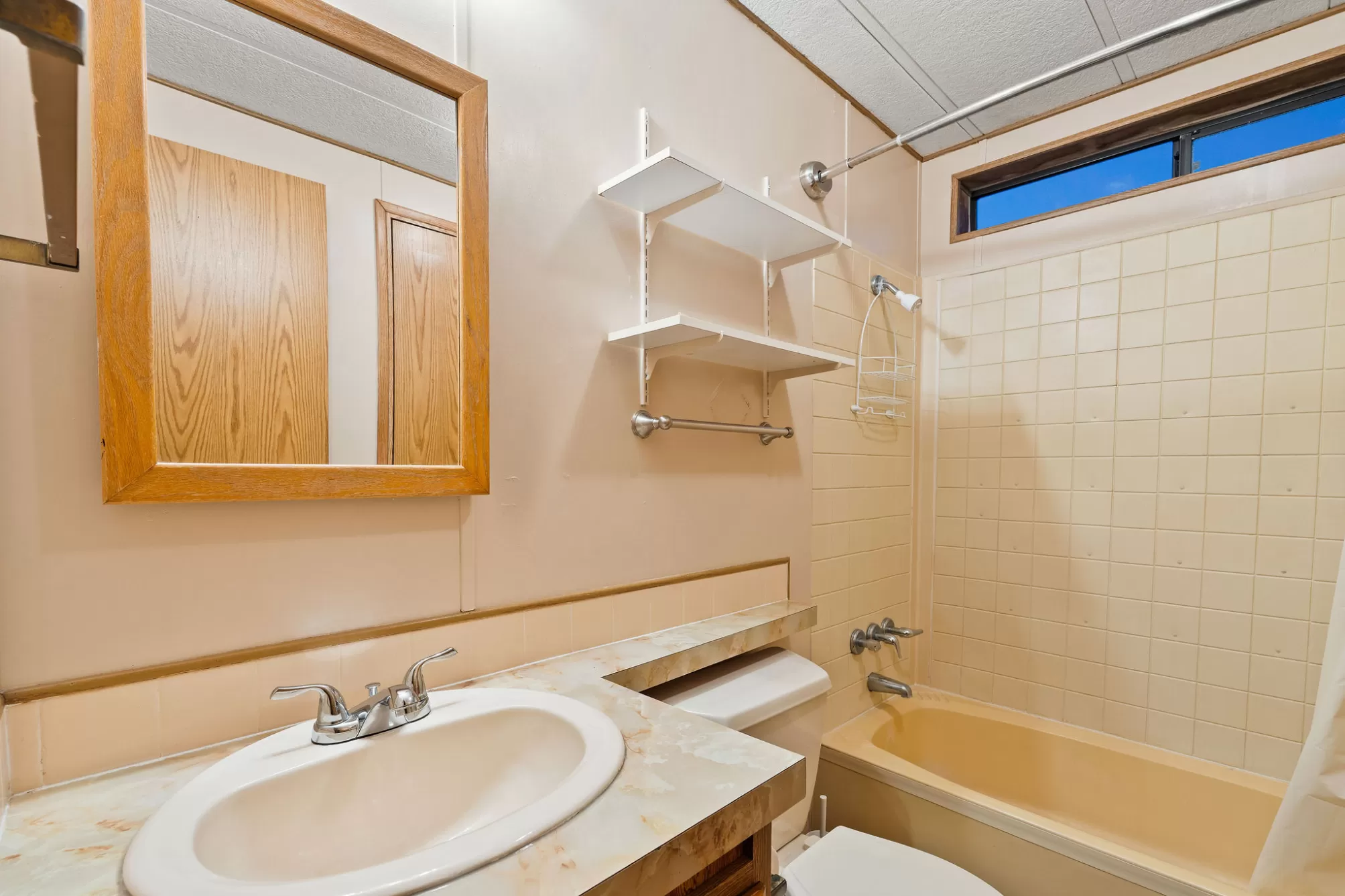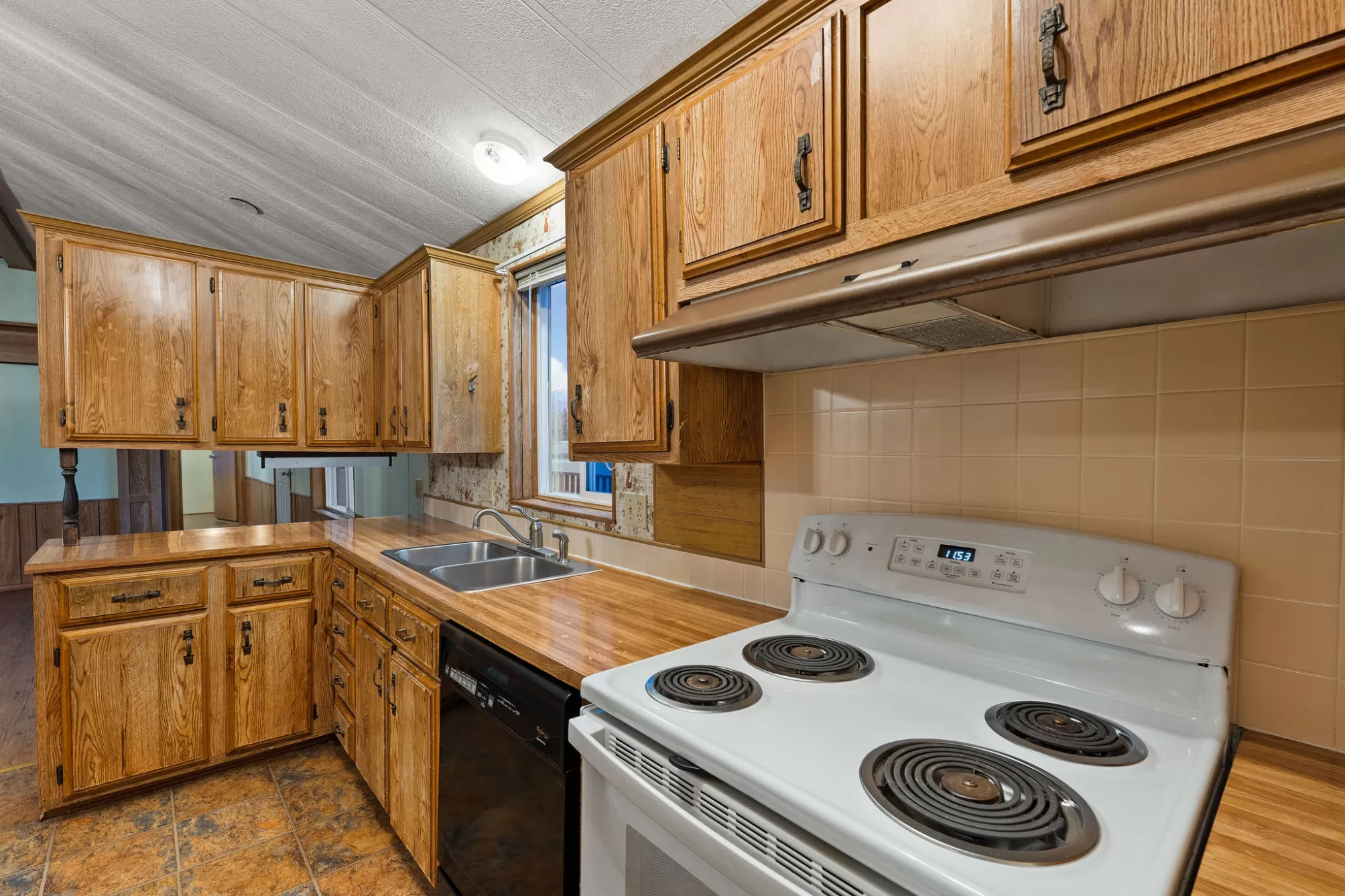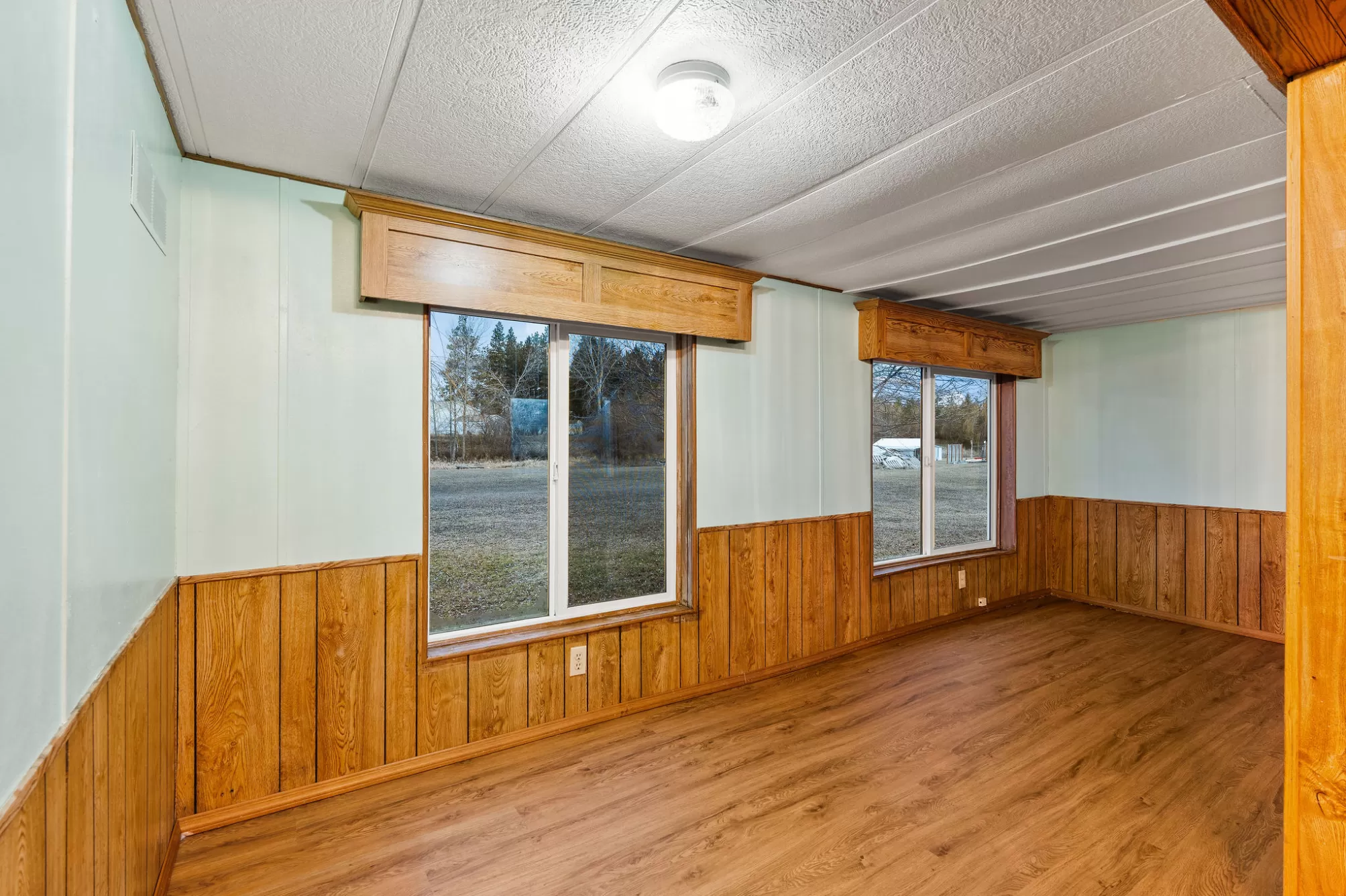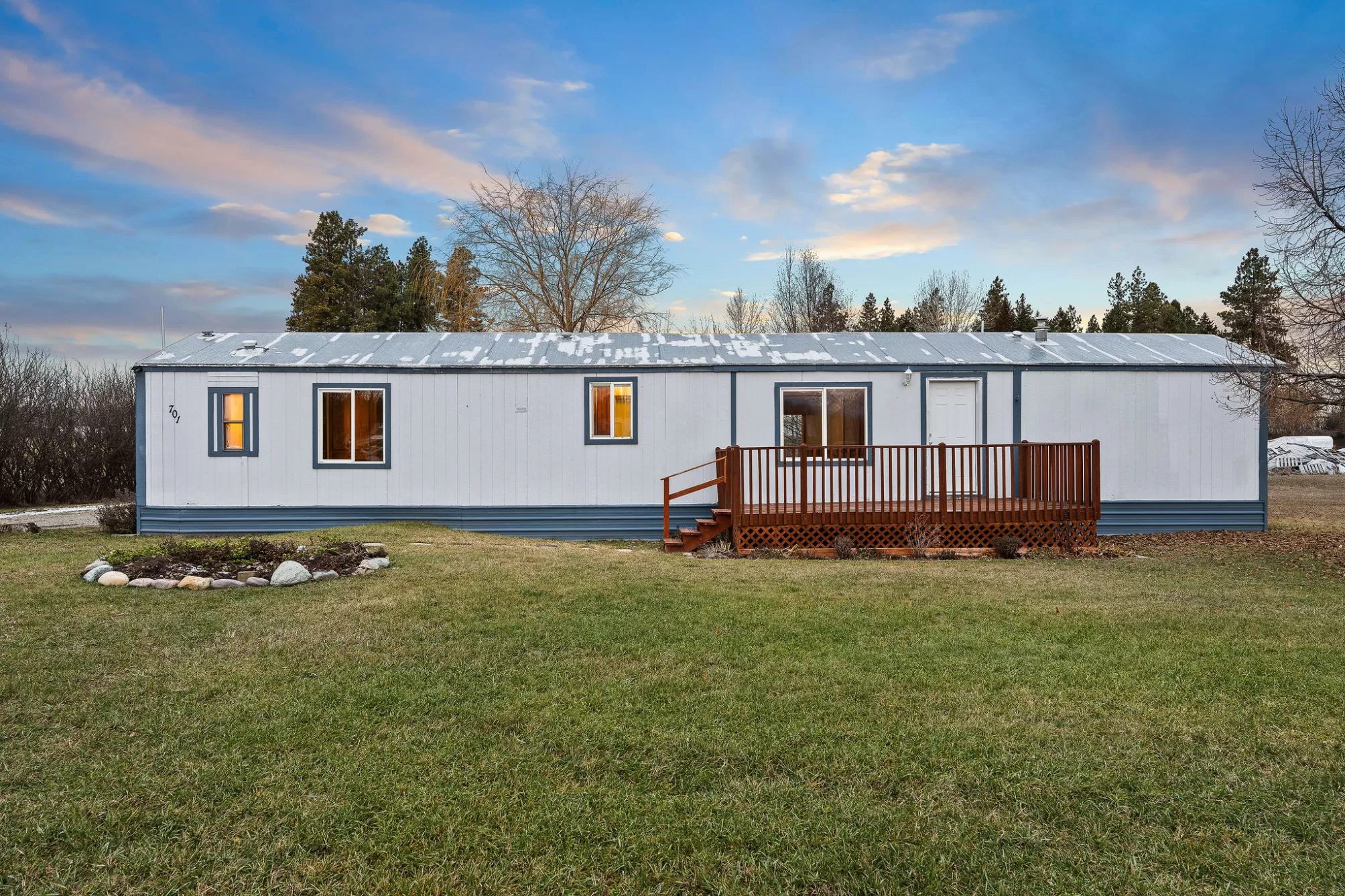 This 1984 Fleetwood Vogue offers a spacious 1,246-square-foot layout featuring 3 bedrooms and 2 bathrooms, making it an ideal choice for affordable housing or a custom renovation project. The interior is defined by a bright, open-concept living area with vaulted ceilings, exposed decorative beams, and classic wood wainscoting that adds a cozy, rustic charm. The functional kitchen includes extensive wood cabinetry and leads into a dining space with a built-in hutch and glass display cases. The primary suite provides a private retreat with built-in storage and an en-suite bathroom featuring a wide vanity with theater-style lighting, while the additional bedrooms offer versatility with integrated shelving and desk spaces. The exterior features durable metal siding and a large wooden deck perfect for taking in the surrounding views. Please be advised that this is a Personal Property Only Listing; no land or real estate is included in the sale. Seller is open to offering concessions to assist the buyer with mobile home relocation costs.