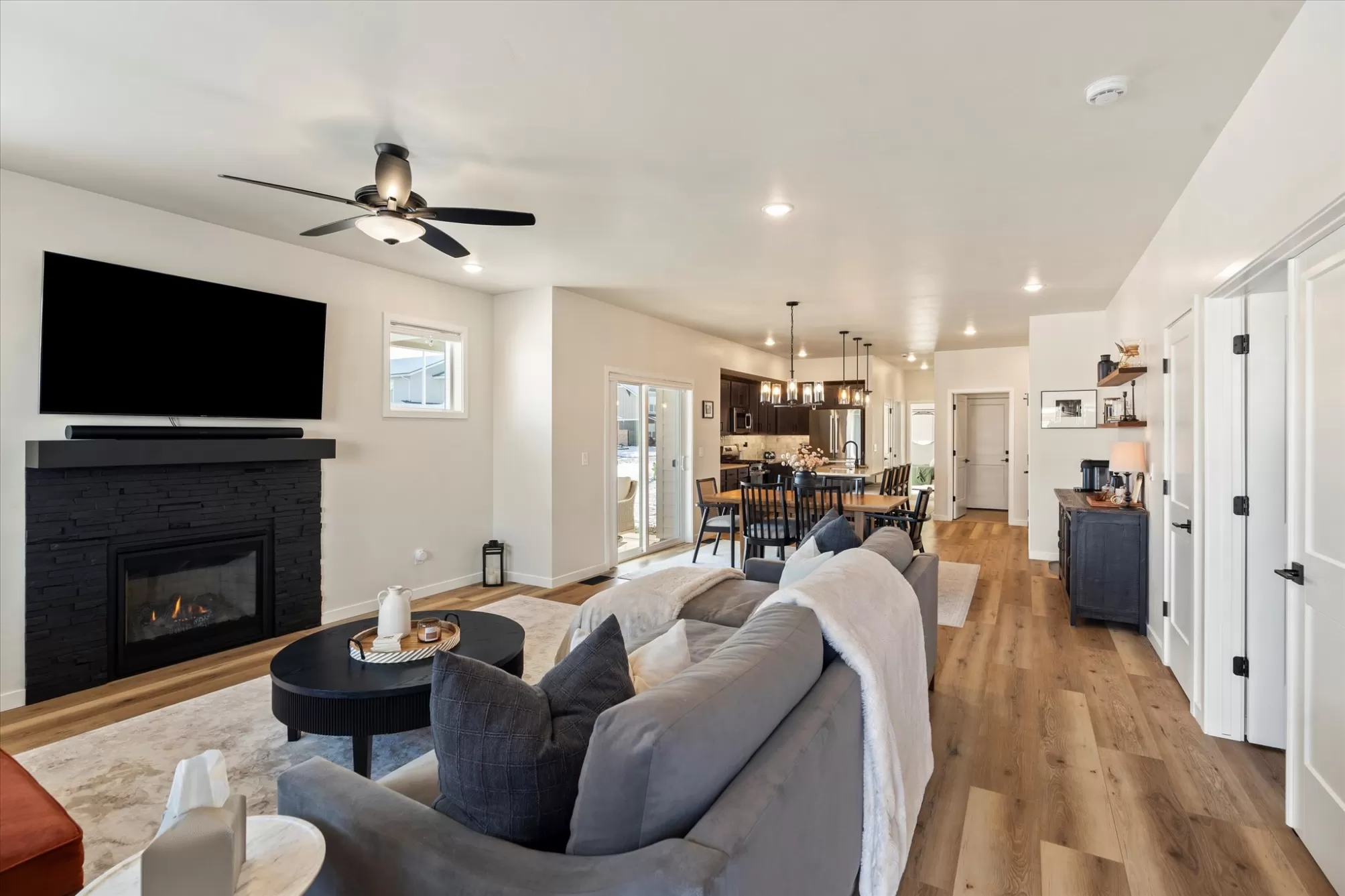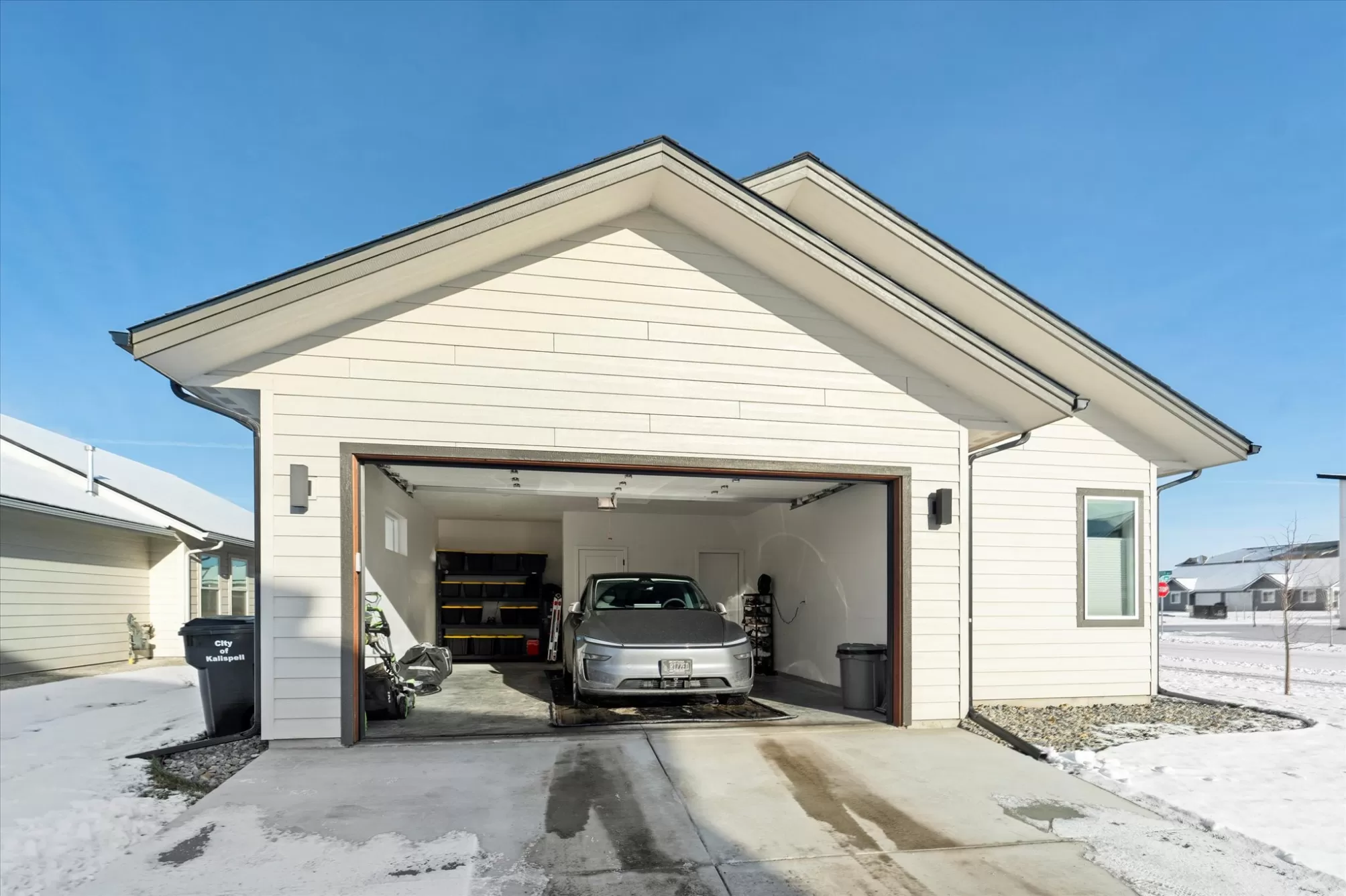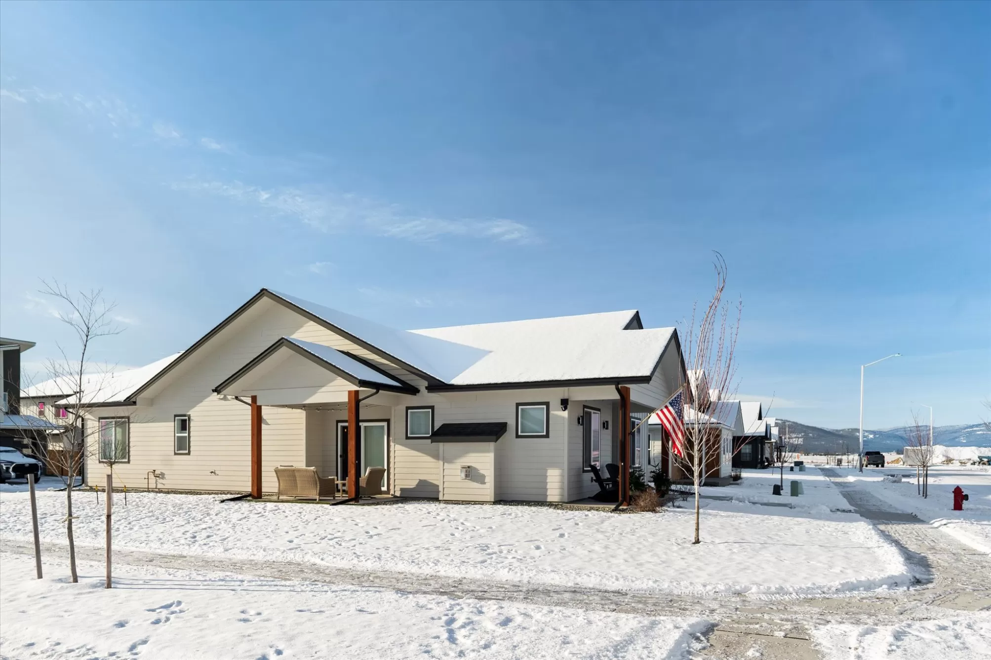 Built in 2024 and offered by the original owner, this move-in ready single-level home is located in the desirable Starling Community. Featuring 3 bedrooms and 2 bathrooms on a desirable corner lot, the home offers a functional open floor plan with gas fireplace, and central A/C. The primary suite includes a double vanity and walk-in closet, and the home comes fully equipped with appliances. Additional highlights include an attached two-car garage, underground sprinklers, and a covered front porch with mountain views. Enjoy sidewalk-lined streets, nearby parks and a convenient location close to shopping, dining, medical facilities, and all that Kalispell has to offer. A clean, lightly lived-in home offering the benefits of new construction without the wait.