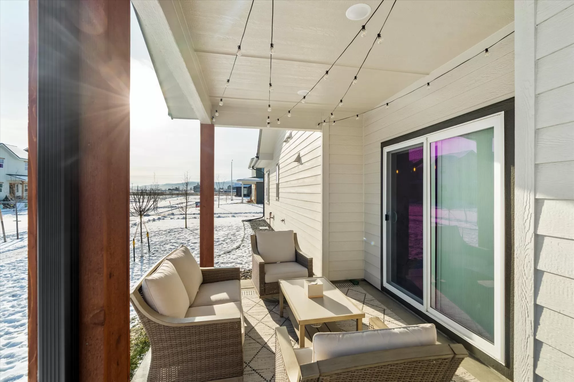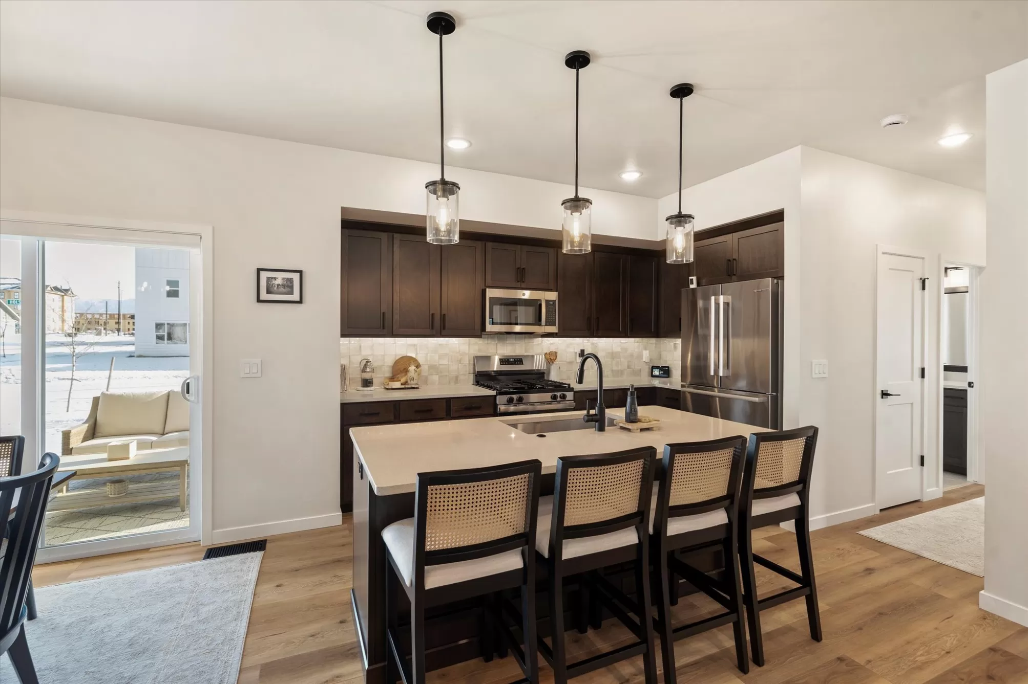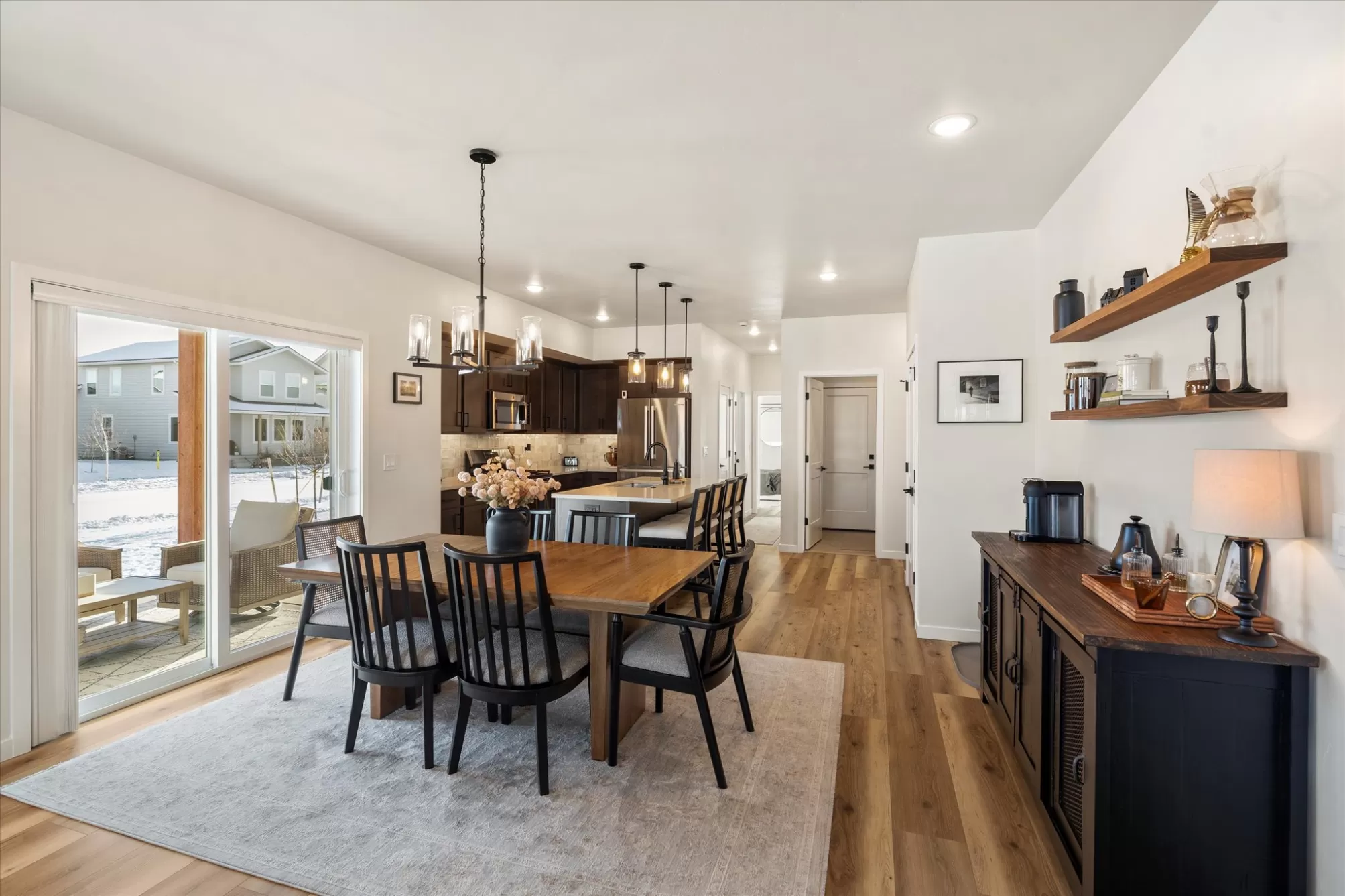 Built in 2024 and offered by the original owner, this move-in ready single-level home is located in the desirable Starling Community. Featuring 3 bedrooms and 2 bathrooms on a desirable corner lot, the home offers a functional open floor plan with gas fireplace, and central A/C. The primary suite includes a double vanity and walk-in closet, and the home comes fully equipped with appliances. Additional highlights include an attached two-car garage, underground sprinklers, and a covered front porch with mountain views. Enjoy sidewalk-lined streets, nearby parks and a convenient location close to shopping, dining, medical facilities, and all that Kalispell has to offer. A clean, lightly lived-in home offering the benefits of new construction without the wait.