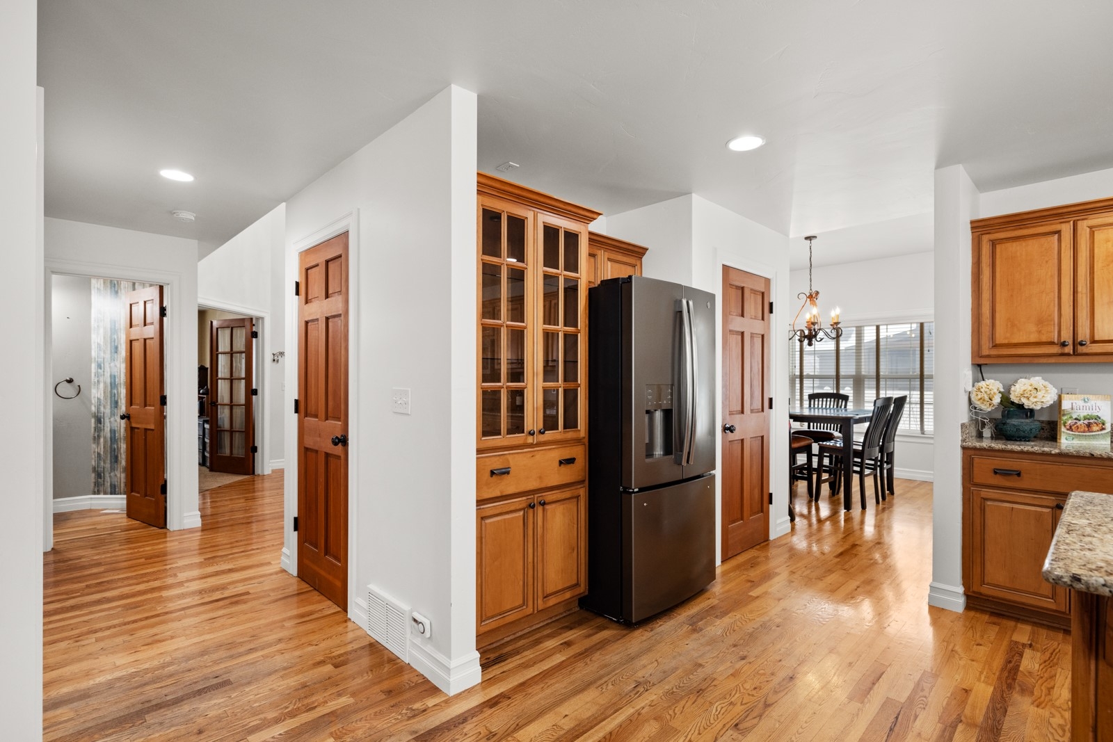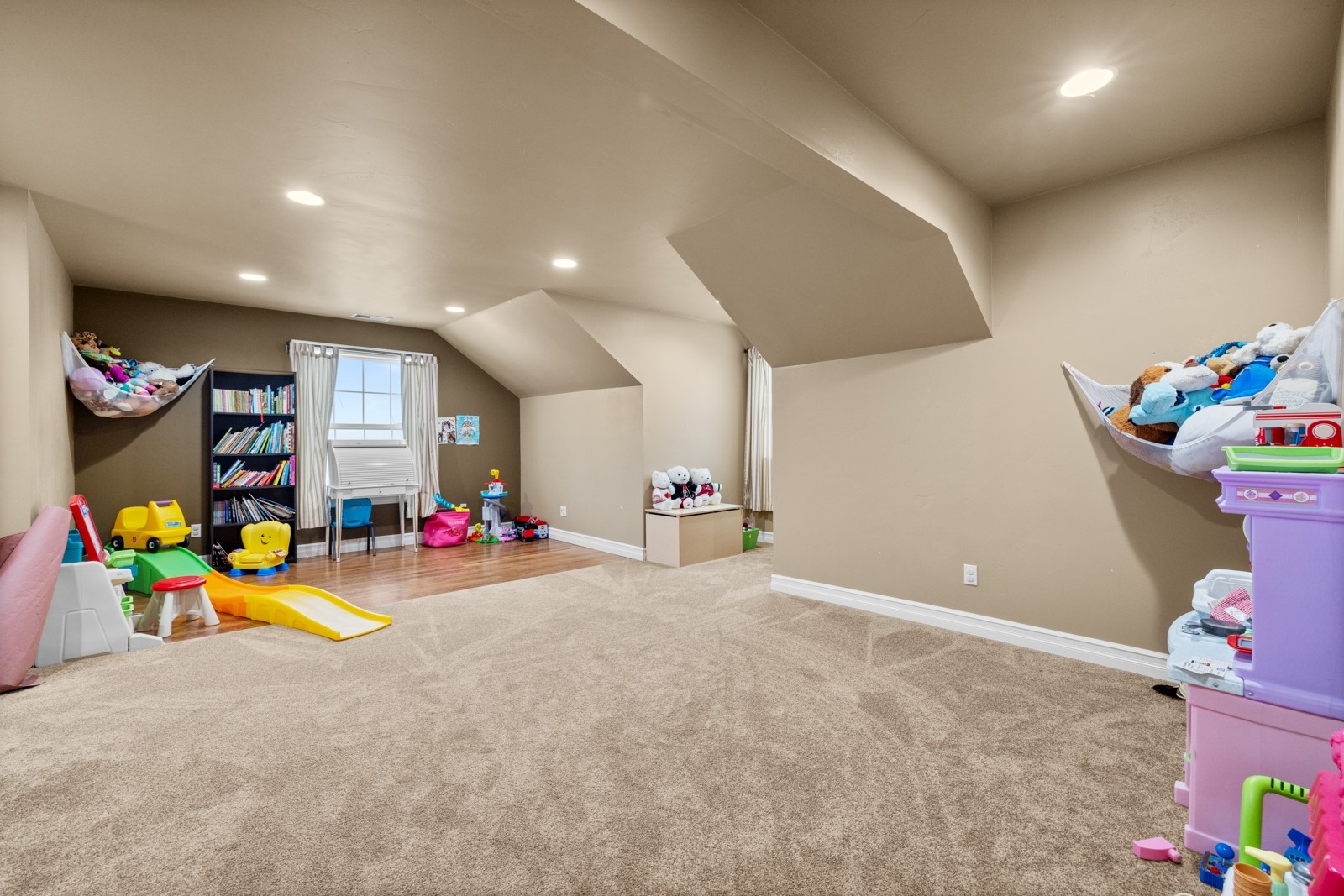 Spacious modern home in the desirable Glacier Commons neighborhood offering 4105 SF, 5 Bedrooms, 3.5 Baths, an office with French doors, and a sizeable bonus/multi-purpose room on a .35-acre lot. Thoughtfully designed across two levels plus a finished basement, this home provides flexibility for large households, multigenerational living, or work from home needs. The main level showcases oak floors, a formal sitting room and dining room combo and an open-concept kitchen and living room area with gas fireplace and breakfast nook. The kitchen is well-appointed with a gas range, granite countertops, a pantry and a large island. The generously sized primary suite includes a private balcony with mountain views, and the primary bath has a soaking tub, a shower, and a walk-in closet. The heated triple garage includes an overhead furnace. The level landscaped lot features underground sprinklers, vinyl fencing, a large composite deck, and a dog run. Close to GNP and Whitefish Mountain Resort.
