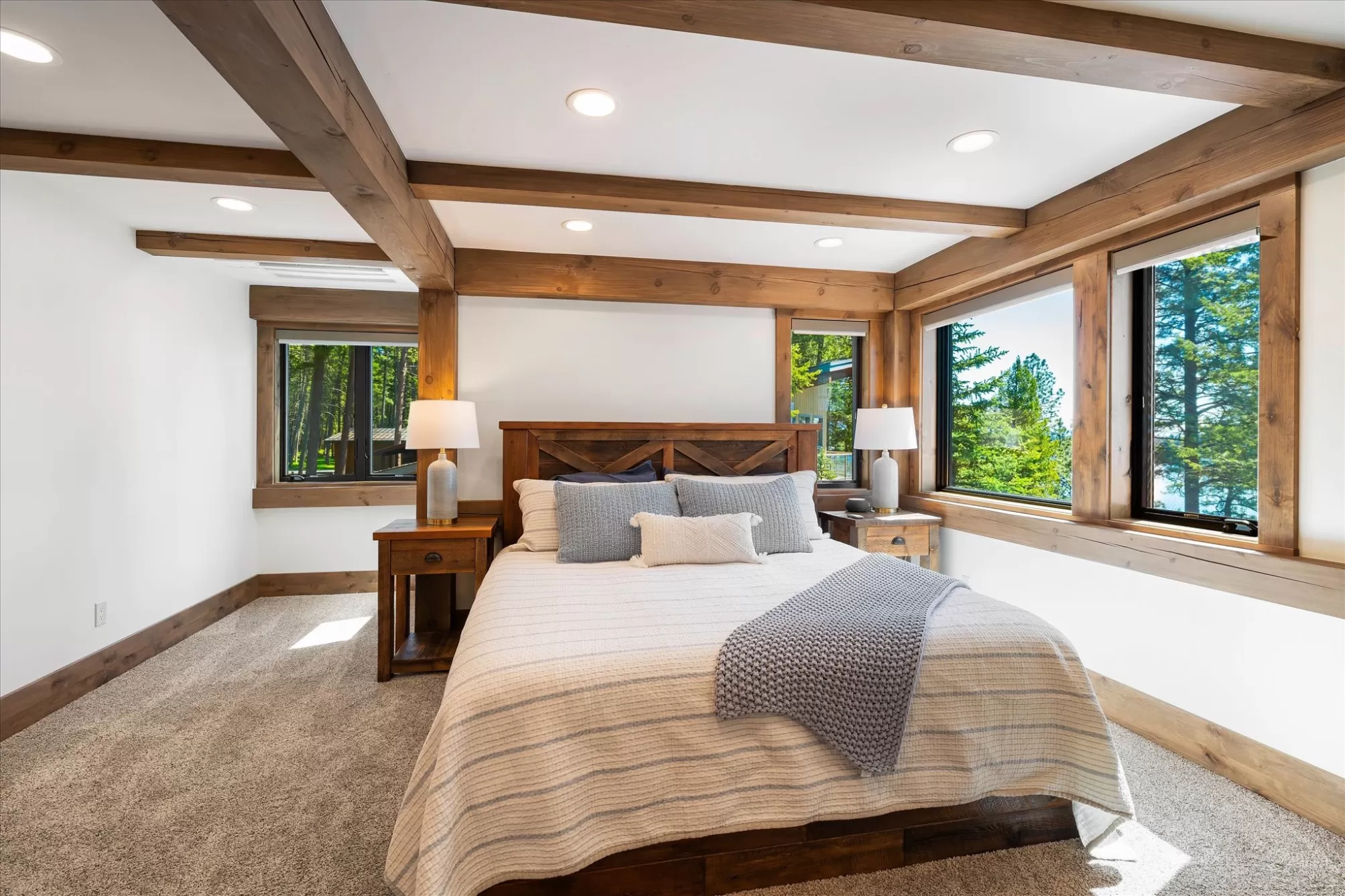 Signature Whitefish Lake Living! Set above the Whitefish Lake shoreline, this remarkable property features approximately 75 feet of pristine, deep-water lake frontage on 0.82 acres. The impeccably built 5,156-square-foot residence offers six bedrooms, five bathrooms, and is fully furnished and turnkey, complete with a charming, one-bathroom, 258-square-foot lakeside cottage, perfect for a private escape or guests. Custom-built and equipped with comprehensive Smart Home technology, the home reflects meticulous attention to detail with no element overlooked. Expansive windows and generous decking frame sweeping mountain vistas, glowing lake sunsets, and ever-changing seasonal scenery unique to Whitefish. The primary suite is a show-stopper, featuring heated bathroom floors, an oversized soaking tub, a spacious walk-in shower, and rich alder cabinetry. Additional highlights include a custom glass-enclosed wine room and a penthouse-level office with sweeping lake views. Steps from the shoreline with a private dock and located minutes from downtown Whitefish, Iron Horse Golf Club, and the base of Whitefish Mountain Resort, this private lakefront sanctuary delivers an exceptional lifestyle you’ll never want to leave. Solar panels on the home. Water Leak detection at every faucet linked to the house shutoff in the security system & 4K video security system.