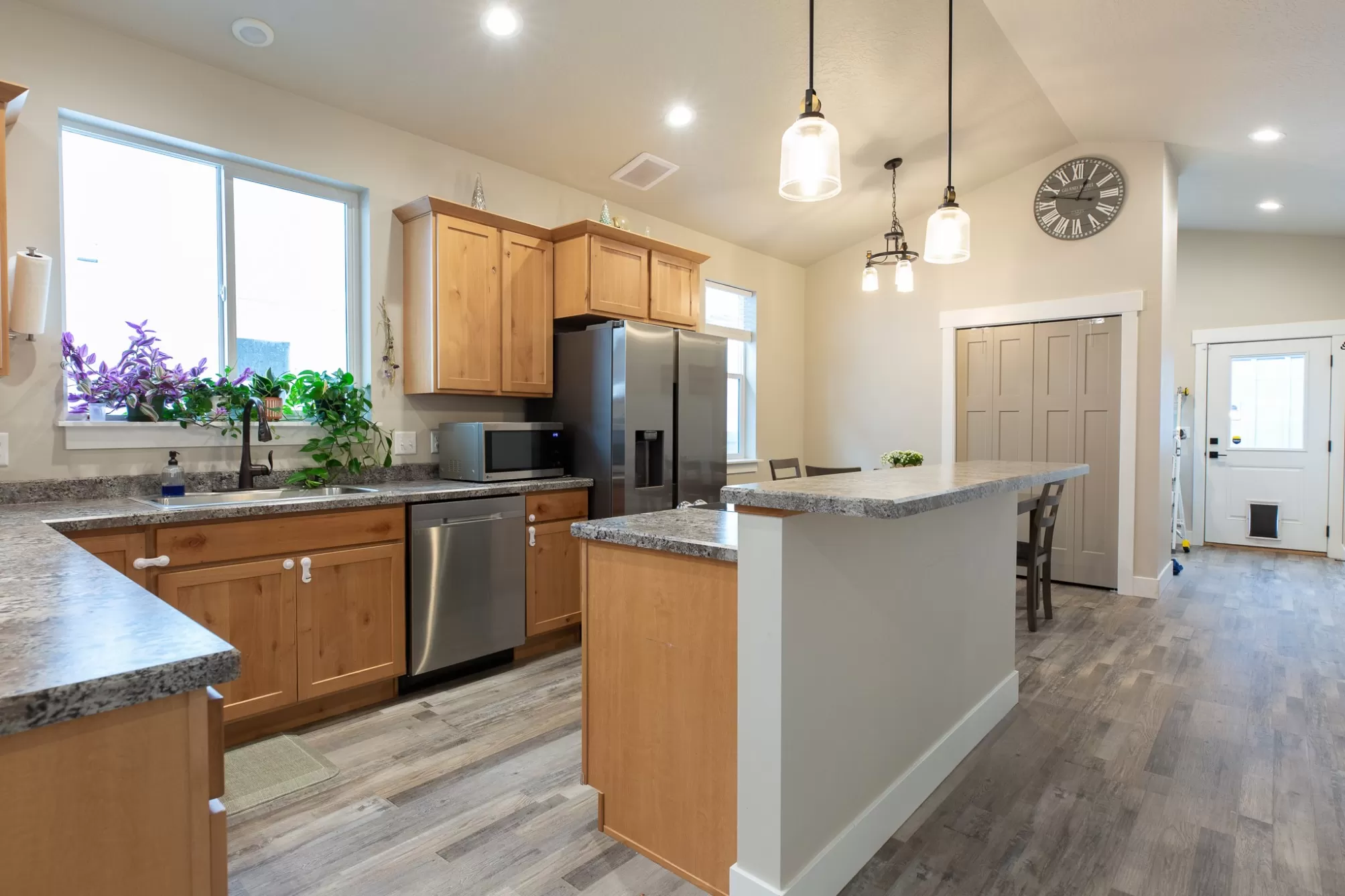 JUST REDUCED! This beautifully built 2023 single-family home blends modern comfort, smart technology, and energy-efficient living. The light-filled living room features soaring vaulted ceilings, creating an open and inviting space ideal for relaxing or entertaining. The chef-inspired kitchen offers beautiful countertops, shaker cabinets, a large center island, plus bar and peninsula seating for everyday living and gatherings. The primary bedroom is a private retreat with an ensuite bathroom. Standout features include solar panels that significantly offset electricity costs, enhancing long-term savings and sustainability. Additional upgrades include fiber-optic internet, Halo air purification system, security system, permanent seasonal exterior lighting, and new vinyl fencing. Ideally located near Missoula amenities while offering comfort and privacy, this move-in-ready home is thoughtfully designed for today’s living!