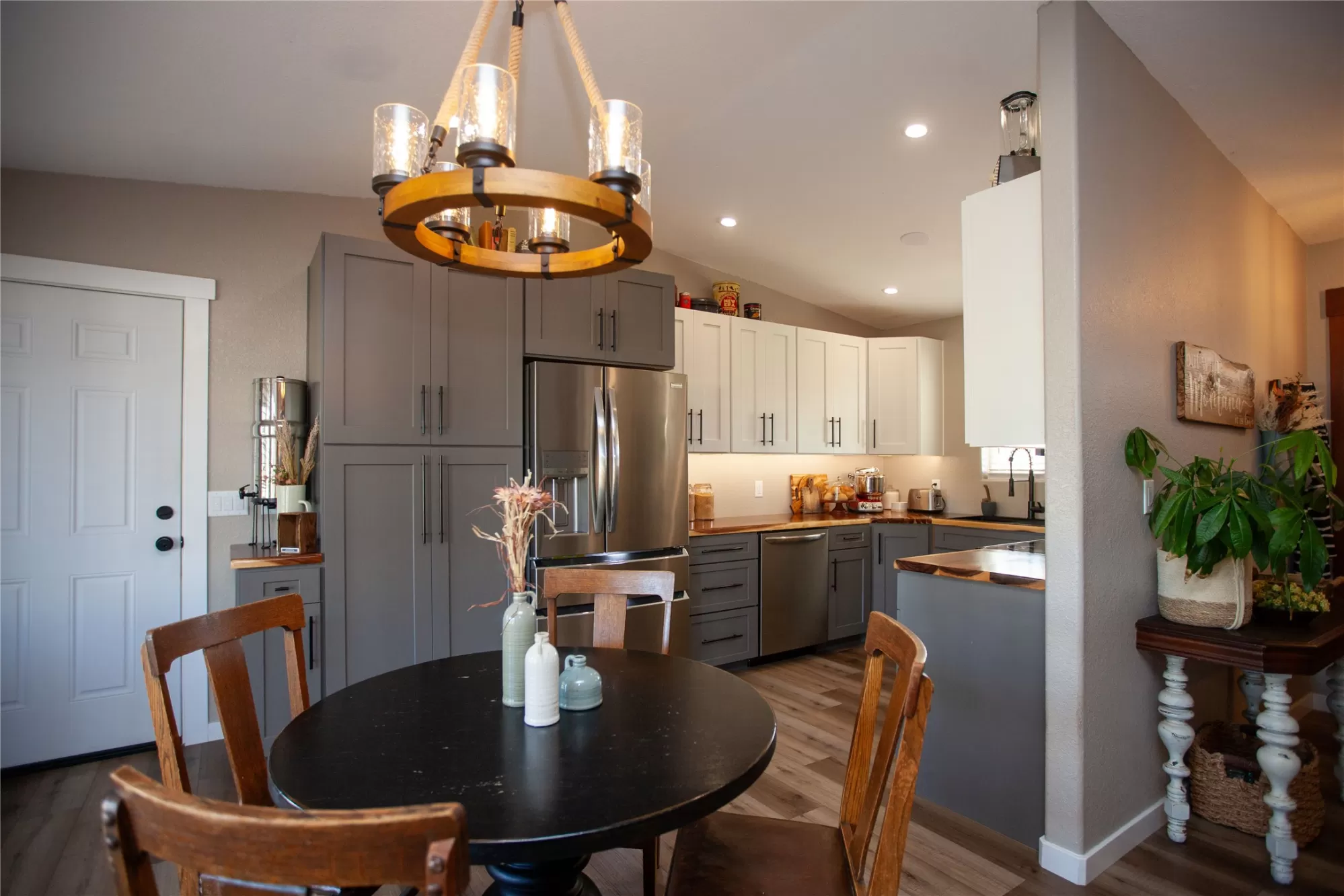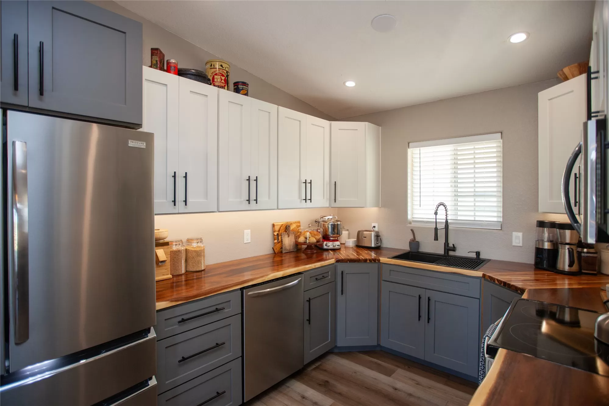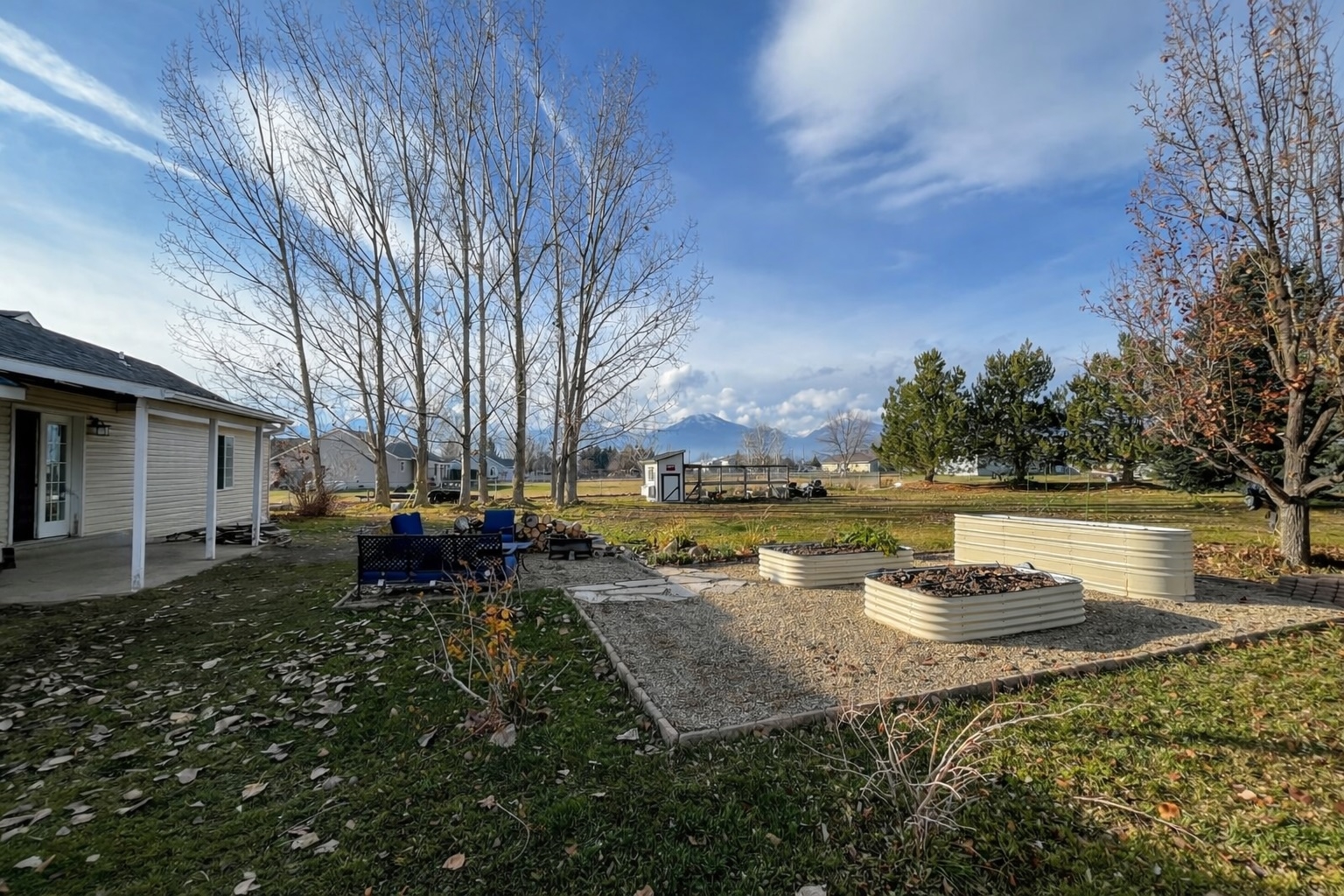 This mighty, beautifully upgraded home delivers scale, quality, and thoughtful design at every turn. The open-concept living, dining, and kitchen areas are anchored by vaulted ceilings, creating an immediate sense of volume and light that elevates daily living. The entire kitchen has been completely reimagined, featuring new appliances, cabinetry, and an improved layout that maximizes both function and flow. The primary bathroom has also been fully remodeled, showcasing a stunning tiled surround and modern finishes for a true retreat experience. The home offers 3 bedrooms and 2 bathrooms, with a layout that balances openness and privacy. Outside you’ll find a covered patio, a fully fenced yard complete with a firepit, raised garden beds featuring drip, beautifully crafted coop & fully contained run, and mature shade trees. Underground sprinklers and a paved driveway add convenience and ease of maintenance. A standout feature is the new 30’ x 40’ shop with 16’ walls offering approximately 1,200 square feet of unfinished space with electric to building. With ample height for a future loft, this structure provides endless potential for storage, workspace, hobbies, or expansion. This property combines substantial improvements, generous scale, and versatile outdoor amenities, making it a rare and compelling opportunity.