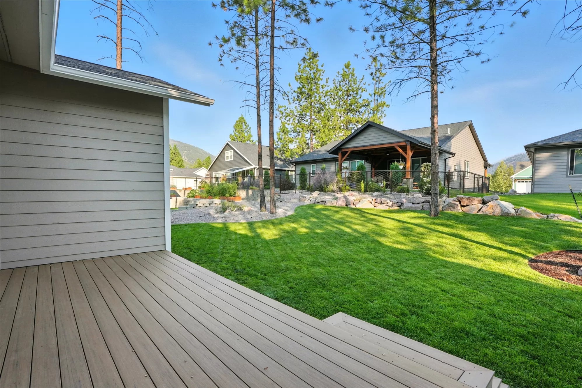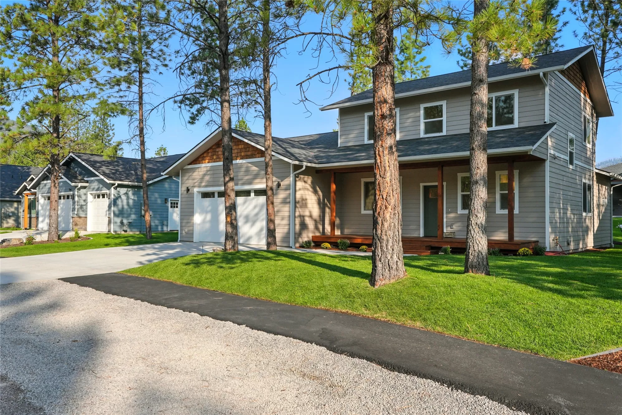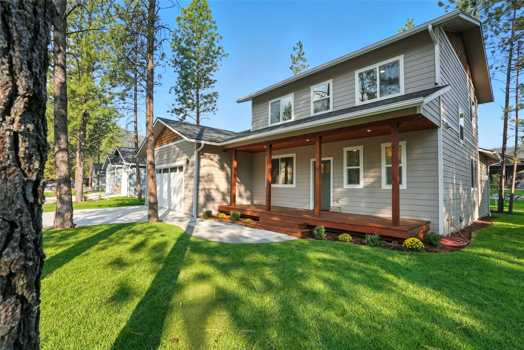 Newly completed in 2025, this 4 bedroom 3-bath home is located in the enchanting neighborhood of Turah Meadows, just 8 minutes from the heart of Missoula. The open concept plan connects the kitchen, dining, and living areas, allowing daily life to flow naturally from one room to the next. Custom cabinetry adds warmth and craftsmanship, and a fireplace centers the main living area perfectly. The kitchen is nicely appointed with custom cabinetry and Quartz countertops. The floor plan allows for single-level living with utilities, primary ensuite and office, with the added benefit of 3 bedrooms and a bath upstairs for a versatile lifestyle. The primary suite feels calm and spacious with a well-appointed bath and generous storage. The tiled shower is zero-entry, and the vanity is made of marble. Both the front and back decks open the home to fresh air and views where you can enjoy morning coffee or evening tranquility. A two-car garage and a level, professionally landscaped lot add ease and functionality within a cared-for HOA community. Underground sprinklers add ease to landscape and lawn care.