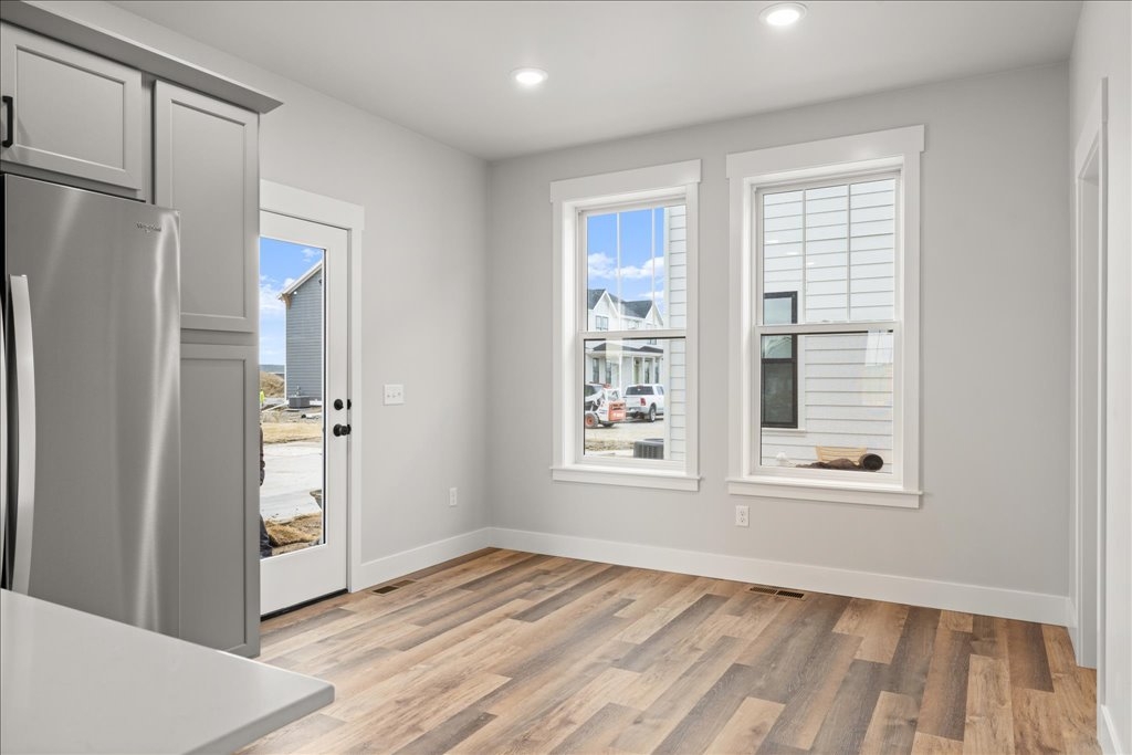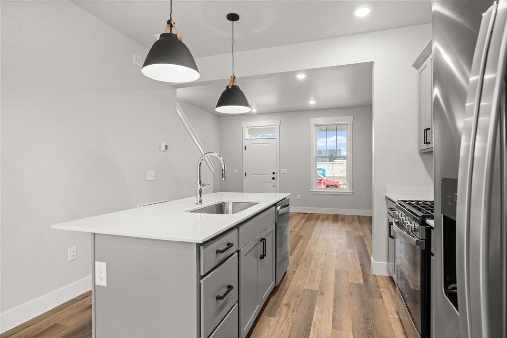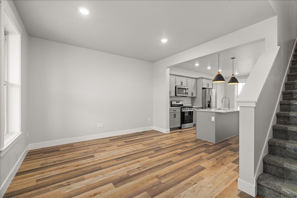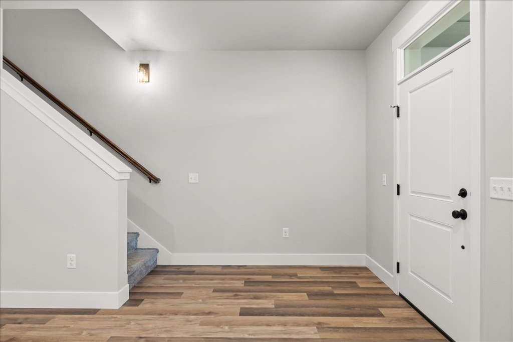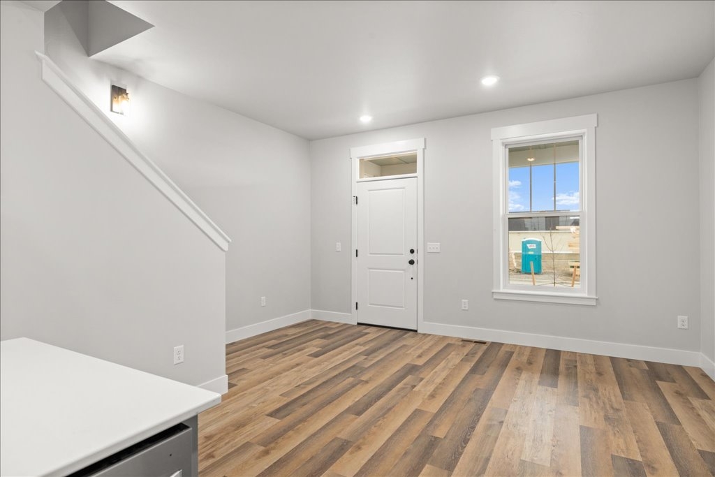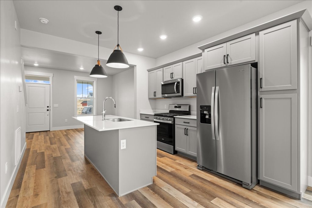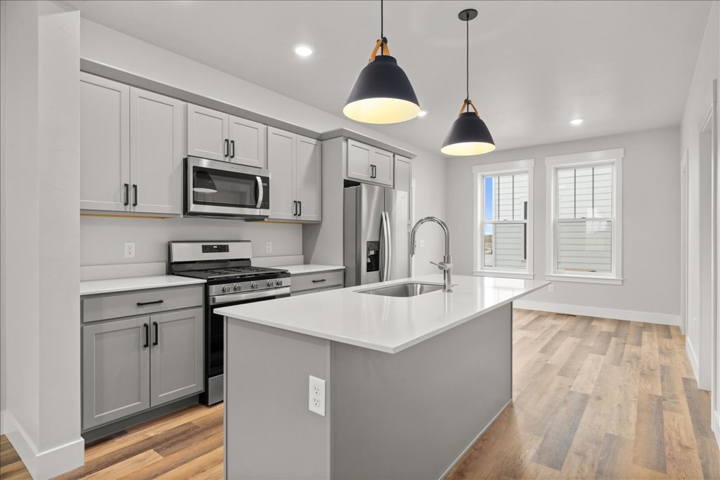 The Alpine 2 plan with expanded study area upstairs! This efficient two-story home features 3 bedrooms, 2 full baths plus a powder room, 2 car attached garage & approximately 1,370 sq ft of thoughtfully designed living space. The open main level offers a welcoming living room, dining area, and galley kitchen with stainless appliances, quartz countertops, and island seating. A convenient half bath completes the first floor. Upstairs includes two bedrooms, a full bath, laundry area and linen storage. Located in Annafeld, a vibrant McCall Homes neighborhood with parks, trails, walkable streets and commercial space encouraging connection and active living. Home is under construction. Pictures of like home/finishes.