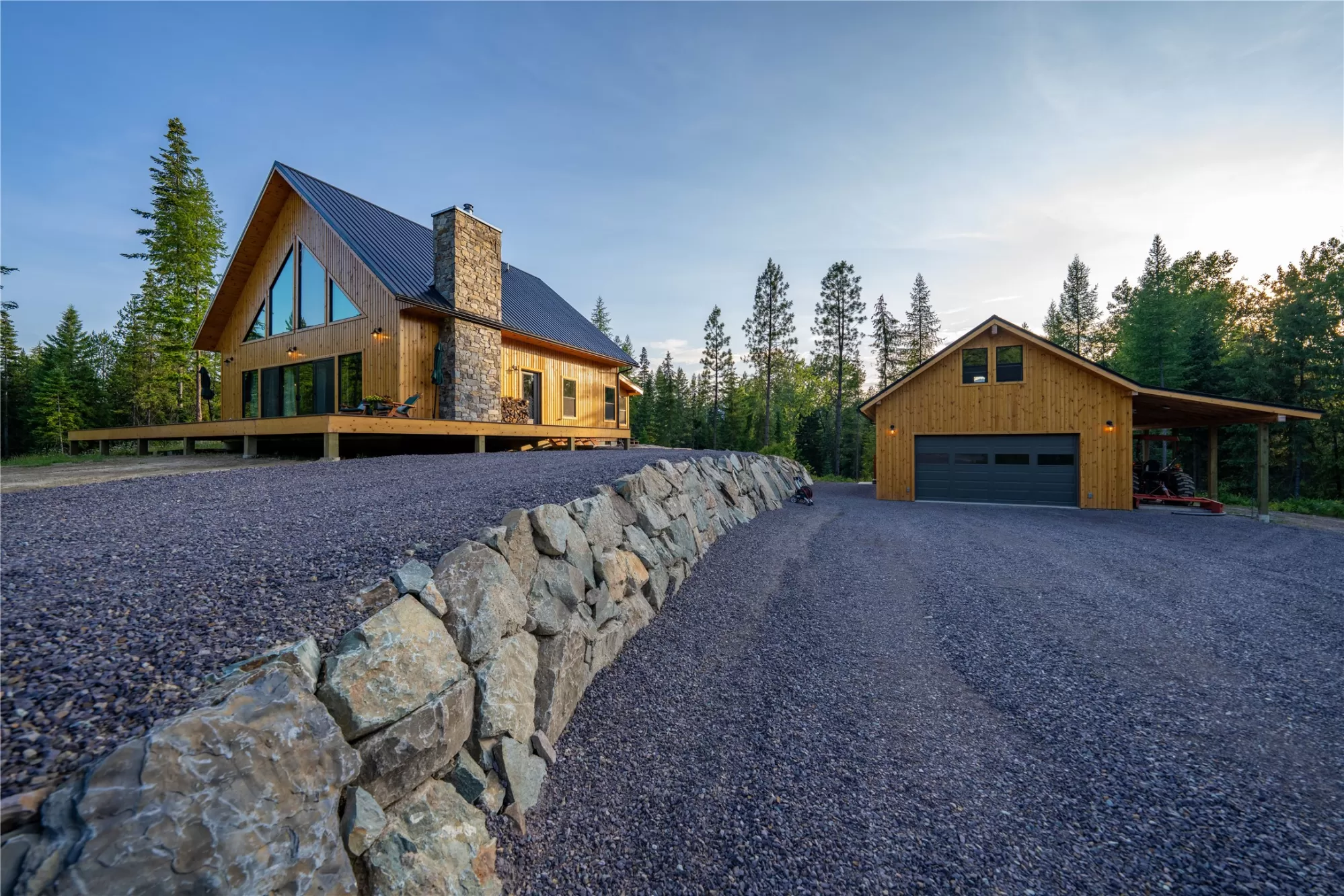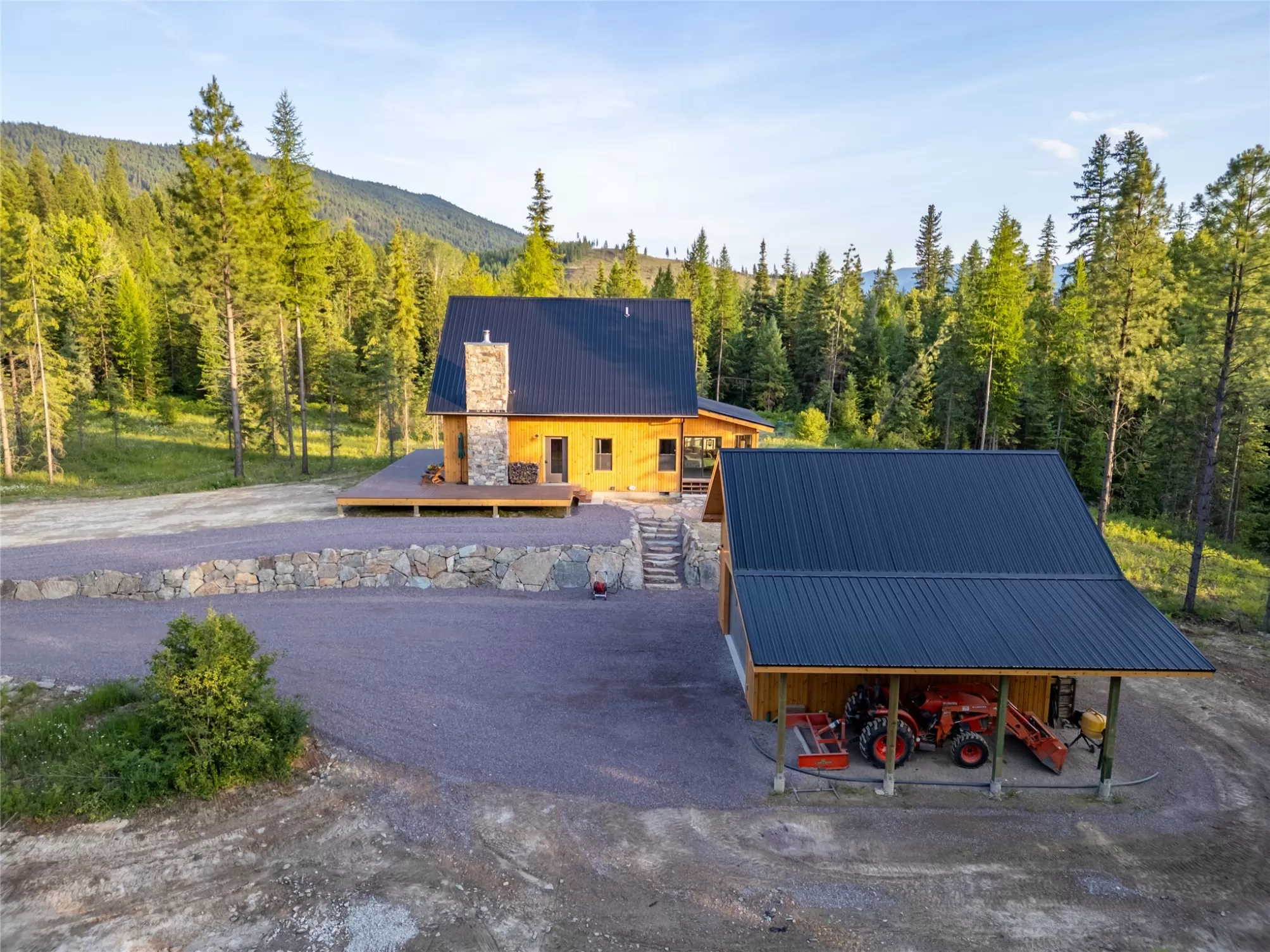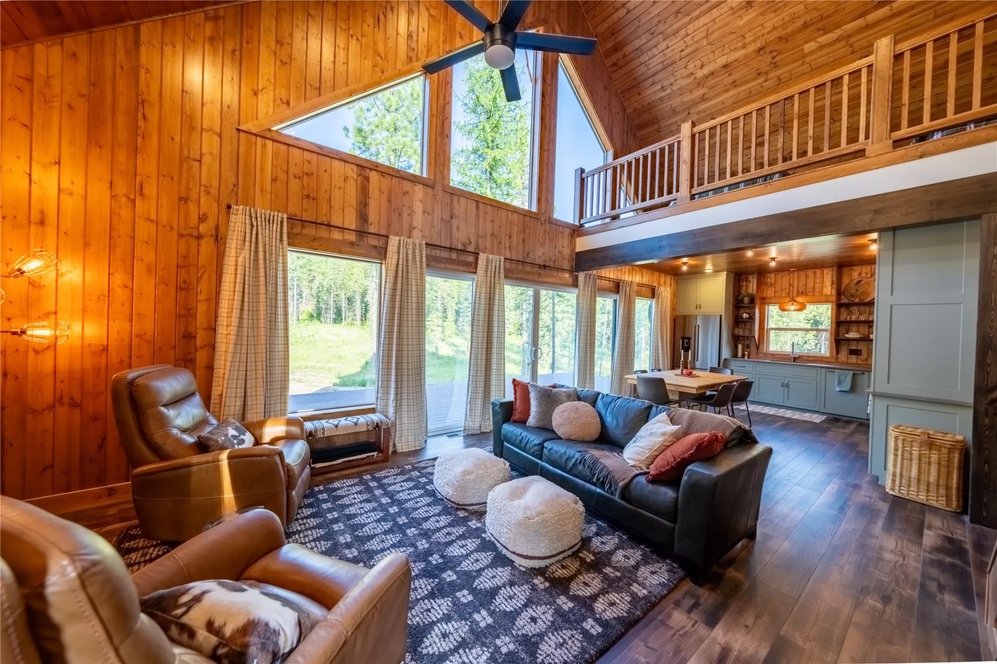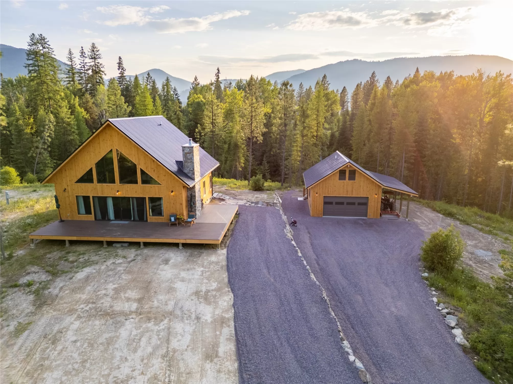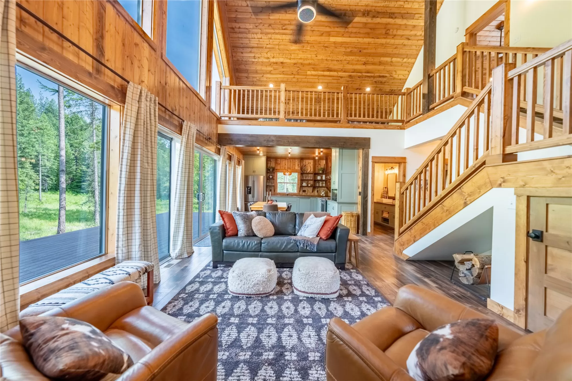 Discover quality craftsmanship in this 4-bed, 3.5-bath home on 6+ private acres in the gated community of Lake Creek Ranch. Ideally situated between Troy and Bull Lake, this 2,145 SF cabin features vaulted wood ceilings, an open concept layout, and a natural stone fireplace. The main level offers two spacious bedrooms, a full bath, and a half bath. The kitchen features honed quartz countertops and solid wood custom cabinetry. There is also a sunroom that offers a bright, peaceful retreat with forest views. Upstairs, the private primary suite includes an en-suite bath, walk-in closet, and a versatile loft. Additionally, there is a 320 SF guest suite above the detached two-car garage, bringing the total livable space to 2,465 SF. Front and side porches extend the living space outdoors. With high-speed fiber internet, central heating and A/C, a private well, and a private neighborhood trail to Lake Creek, this home offers comfort, flexibility, and access to endless outdoor recreation.