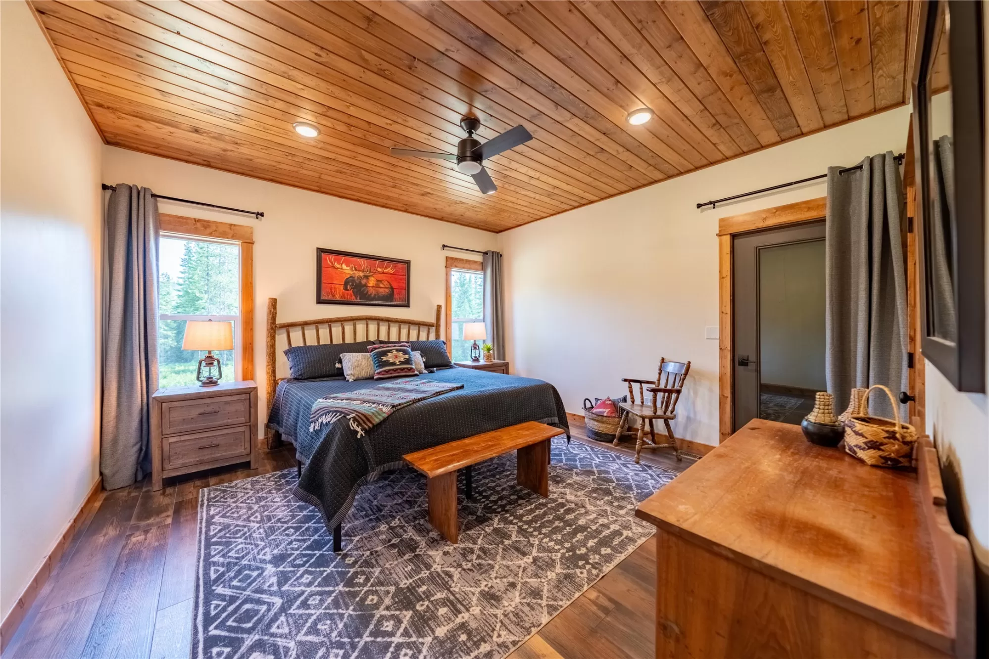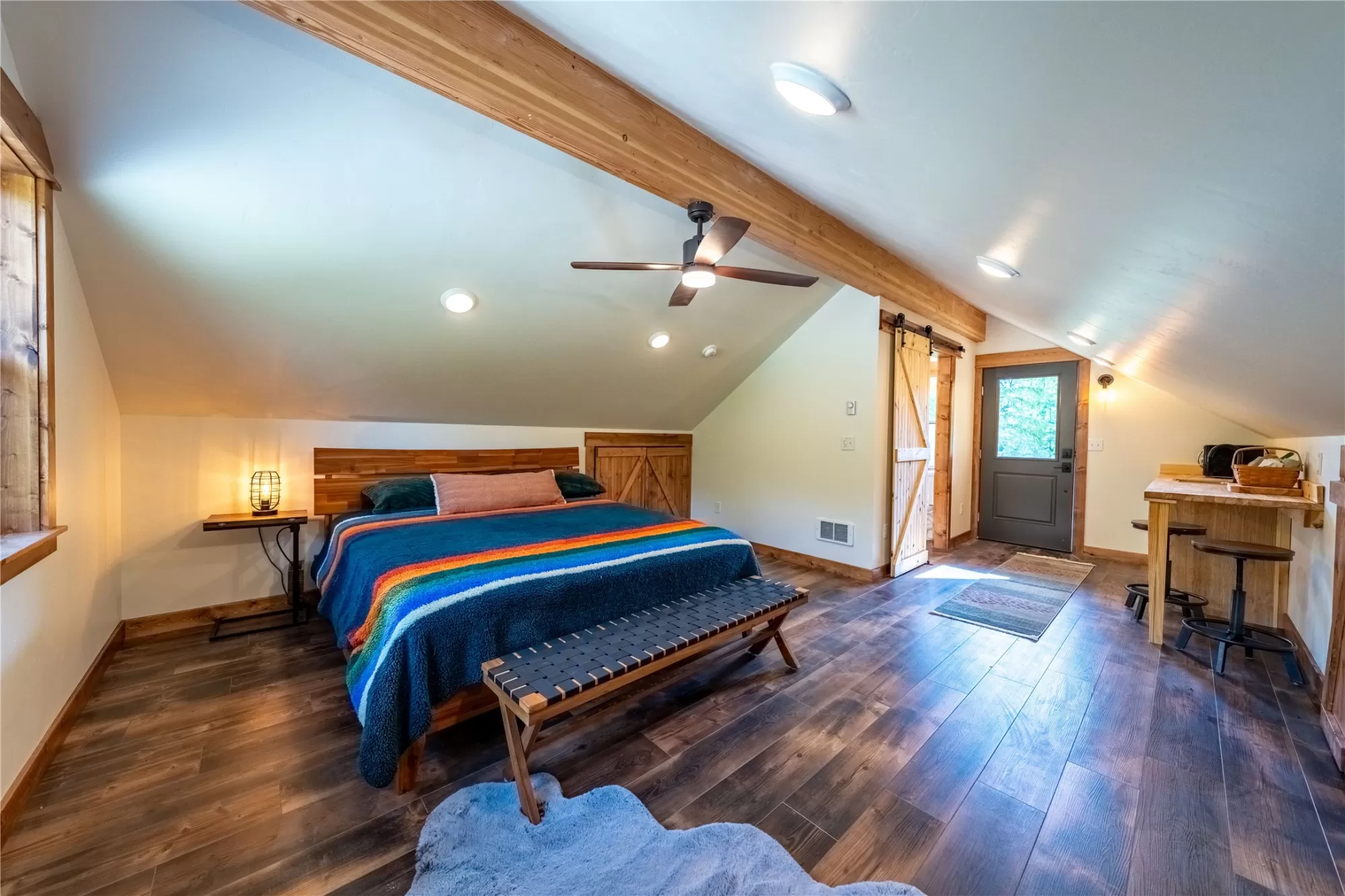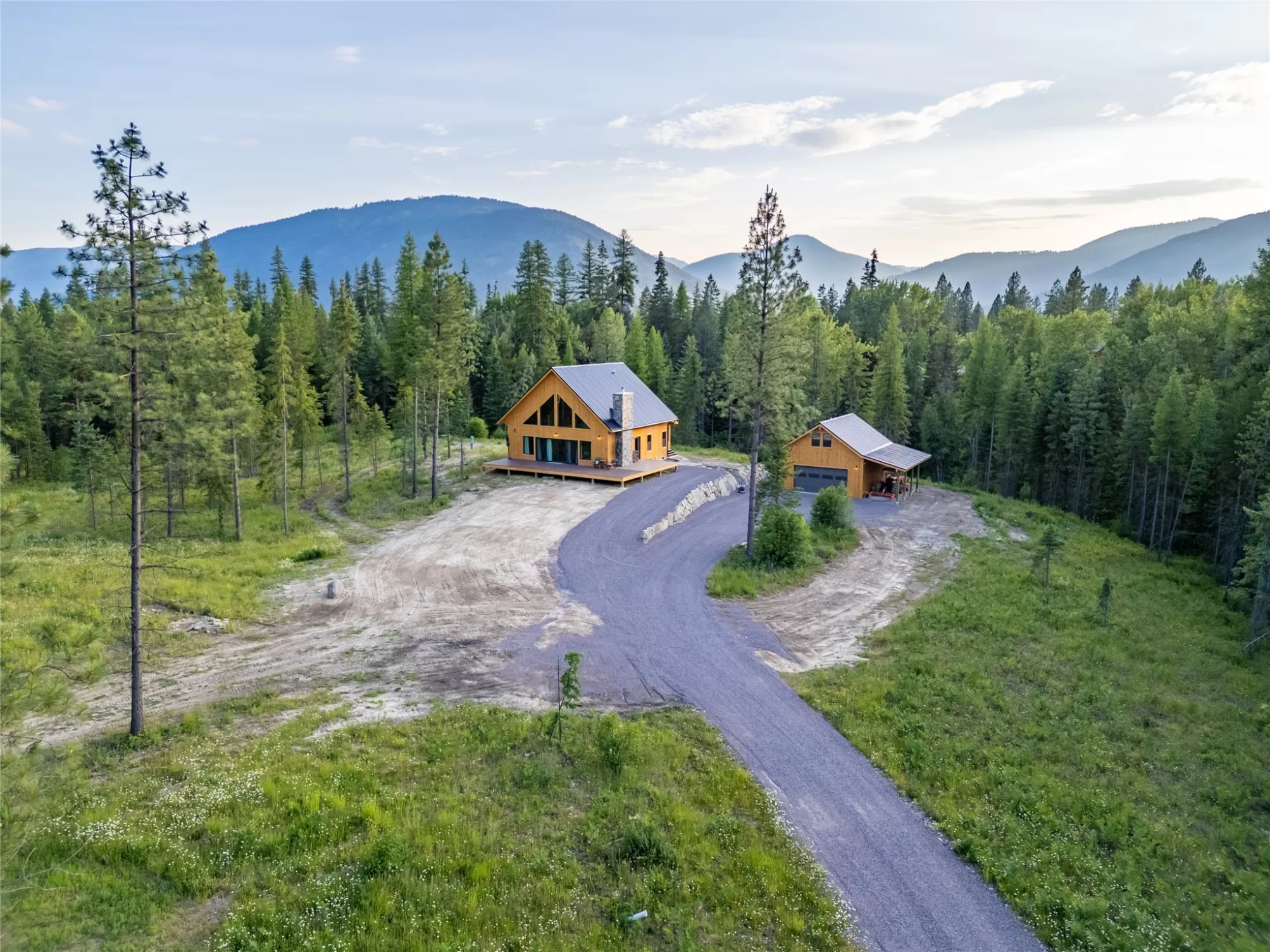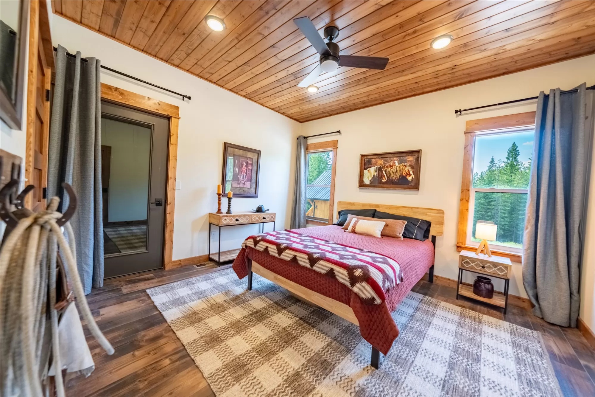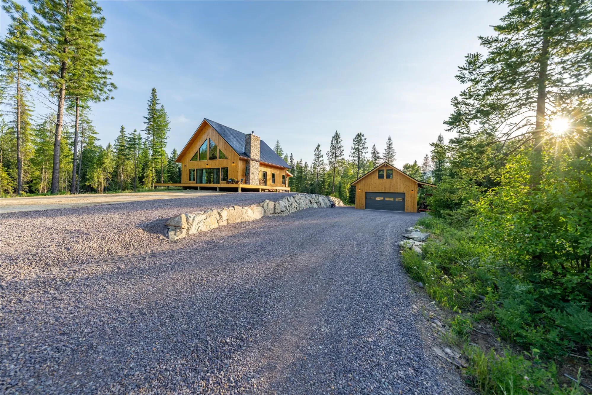 Discover quality craftsmanship in this 4-bed, 3.5-bath home on 6+ private acres in the gated community of Lake Creek Ranch. Ideally situated between Troy and Bull Lake, this 2,145 SF cabin features vaulted wood ceilings, an open concept layout, and a natural stone fireplace. The main level offers two spacious bedrooms, a full bath, and a half bath. The kitchen features honed quartz countertops and solid wood custom cabinetry. There is also a sunroom that offers a bright, peaceful retreat with forest views. Upstairs, the private primary suite includes an en-suite bath, walk-in closet, and a versatile loft. Additionally, there is a 320 SF guest suite above the detached two-car garage, bringing the total livable space to 2,465 SF. Front and side porches extend the living space outdoors. With high-speed fiber internet, central heating and A/C, a private well, and a private neighborhood trail to Lake Creek, this home offers comfort, flexibility, and access to endless outdoor recreation.