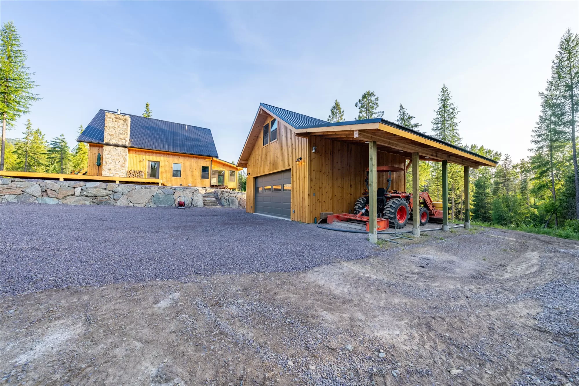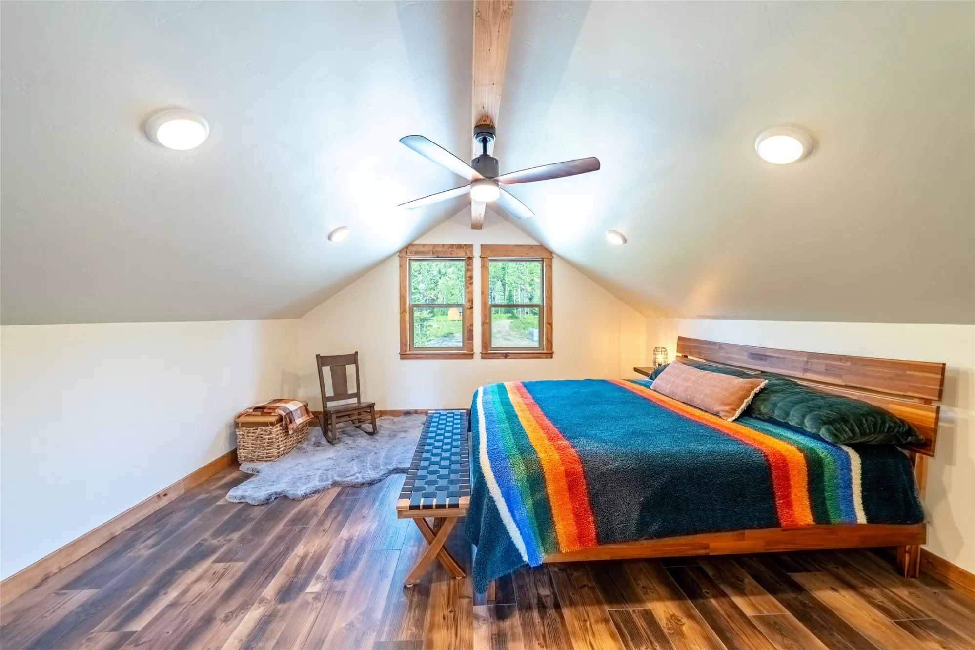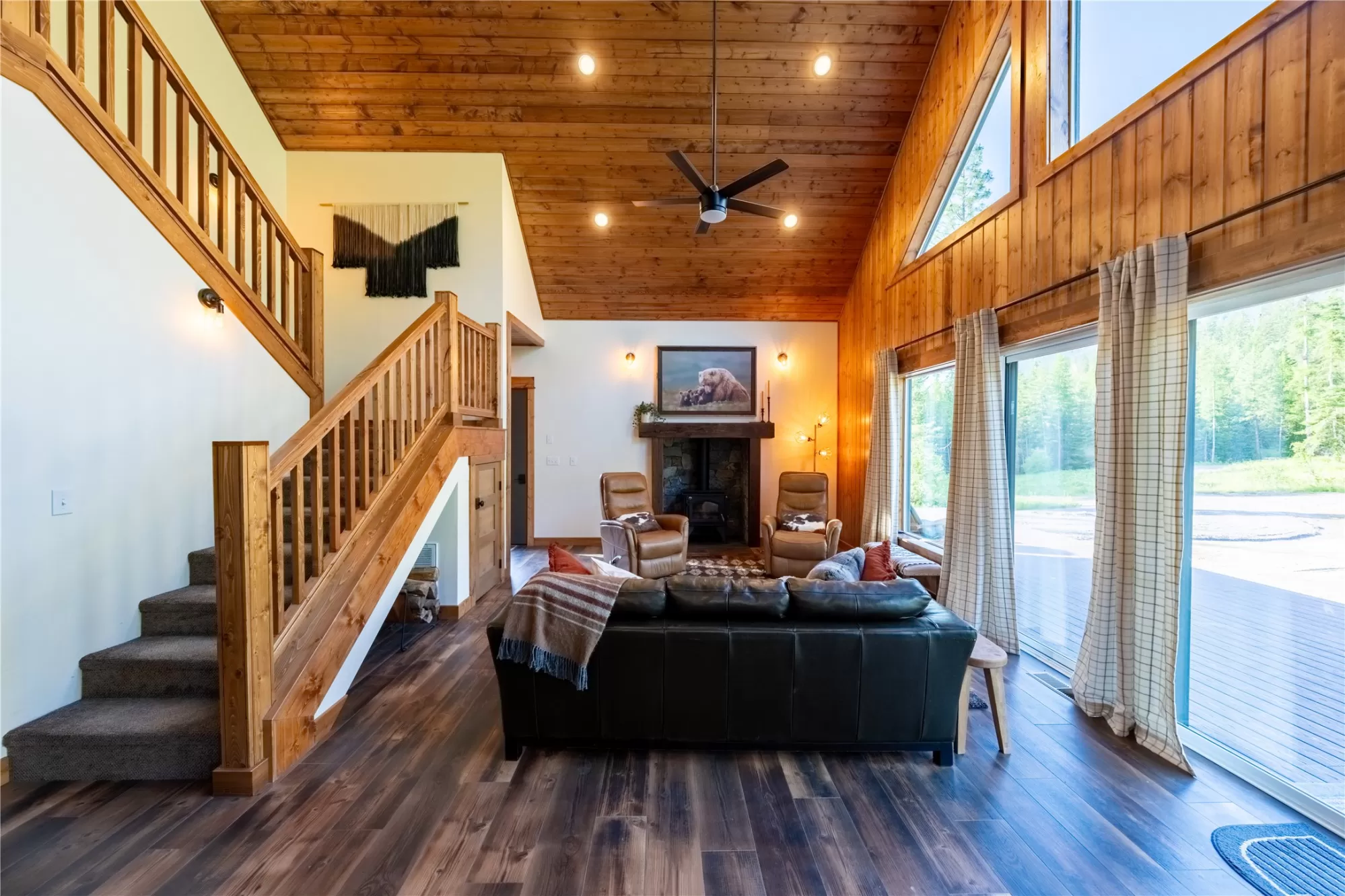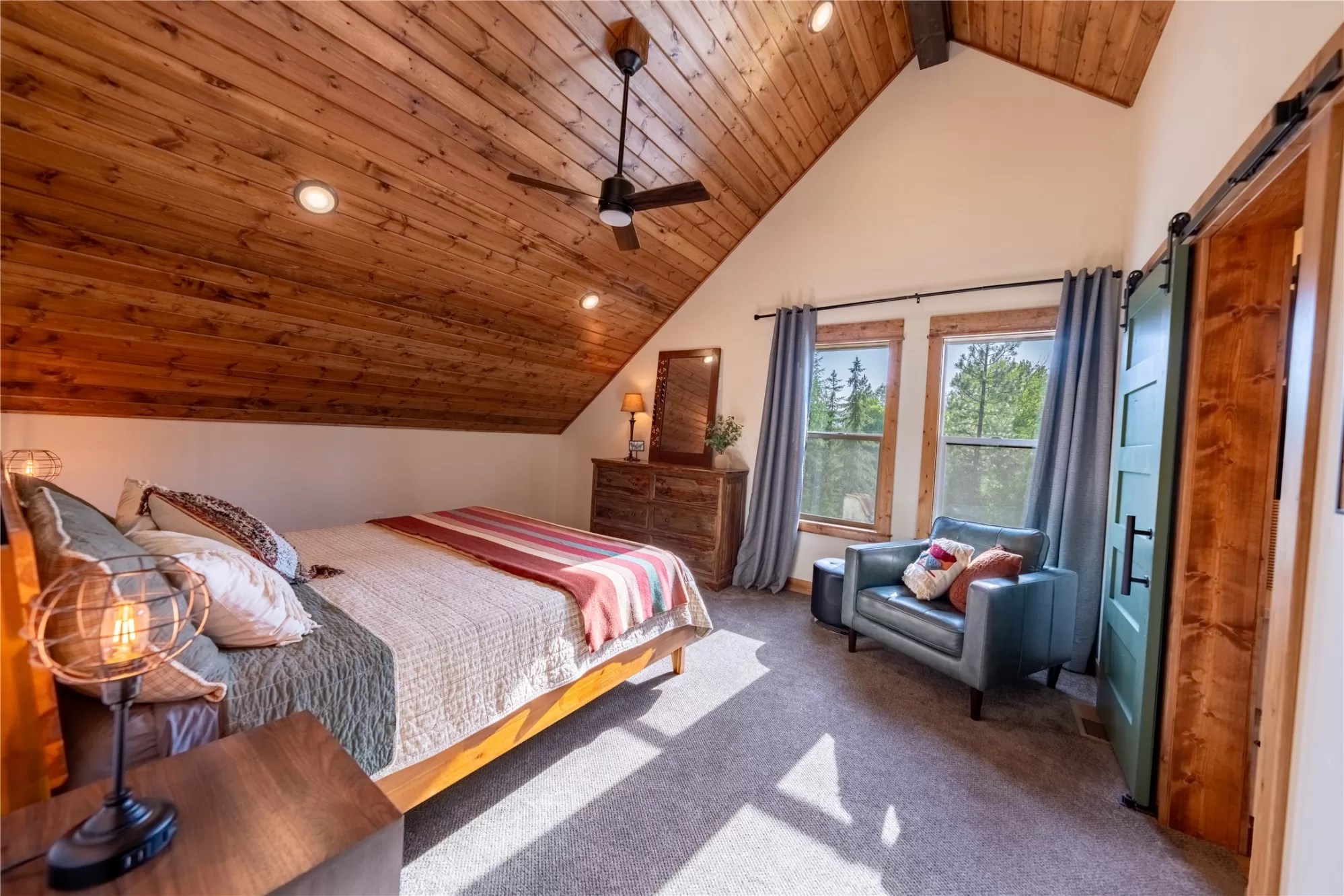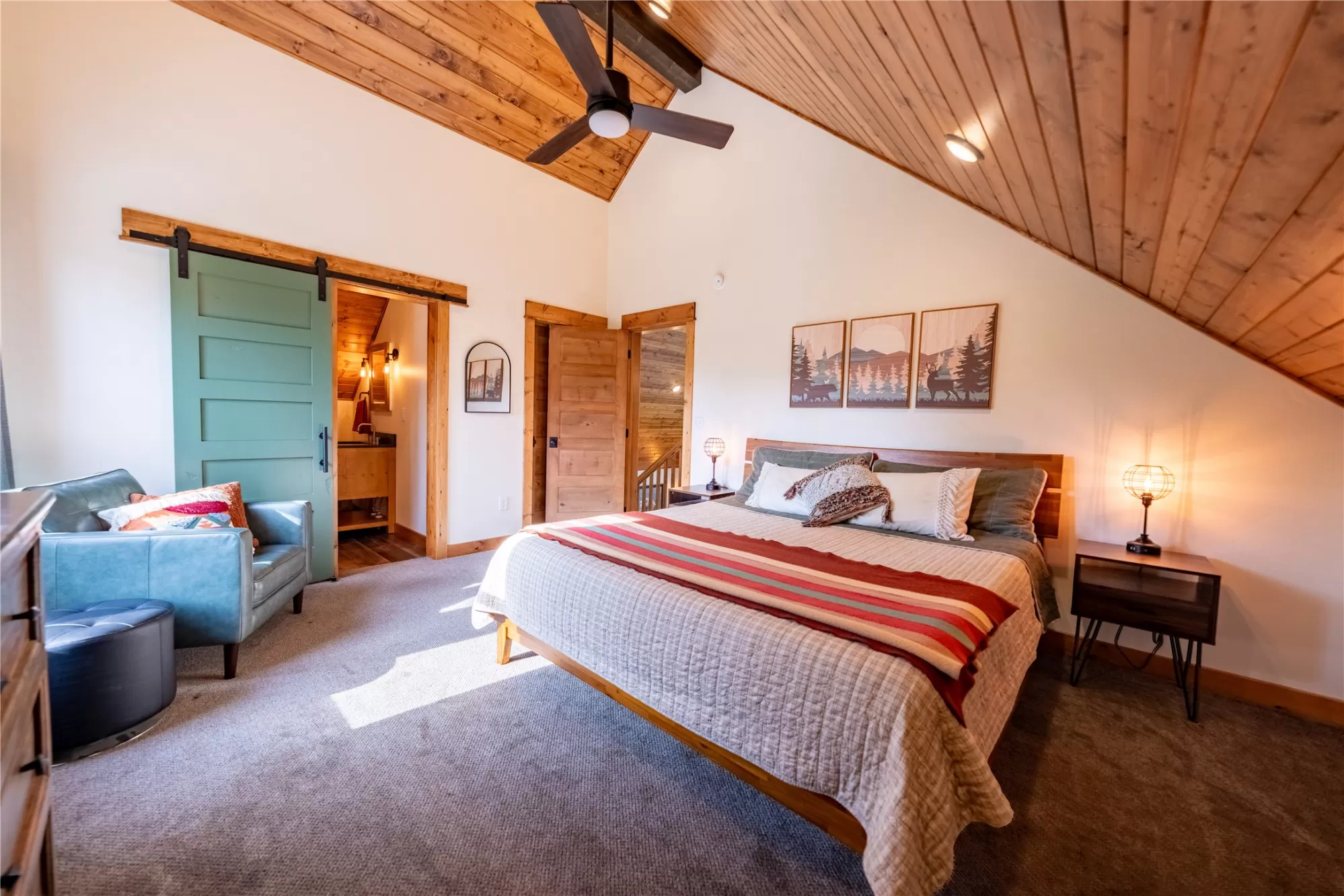 Discover quality craftsmanship in this 4-bed, 3.5-bath home on 6+ private acres in the gated community of Lake Creek Ranch. Ideally situated between Troy and Bull Lake, this 2,145 SF cabin features vaulted wood ceilings, an open concept layout, and a natural stone fireplace. The main level offers two spacious bedrooms, a full bath, and a half bath. The kitchen features honed quartz countertops and solid wood custom cabinetry. There is also a sunroom that offers a bright, peaceful retreat with forest views. Upstairs, the private primary suite includes an en-suite bath, walk-in closet, and a versatile loft. Additionally, there is a 320 SF guest suite above the detached two-car garage, bringing the total livable space to 2,465 SF. Front and side porches extend the living space outdoors. With high-speed fiber internet, central heating and A/C, a private well, and a private neighborhood trail to Lake Creek, this home offers comfort, flexibility, and access to endless outdoor recreation.