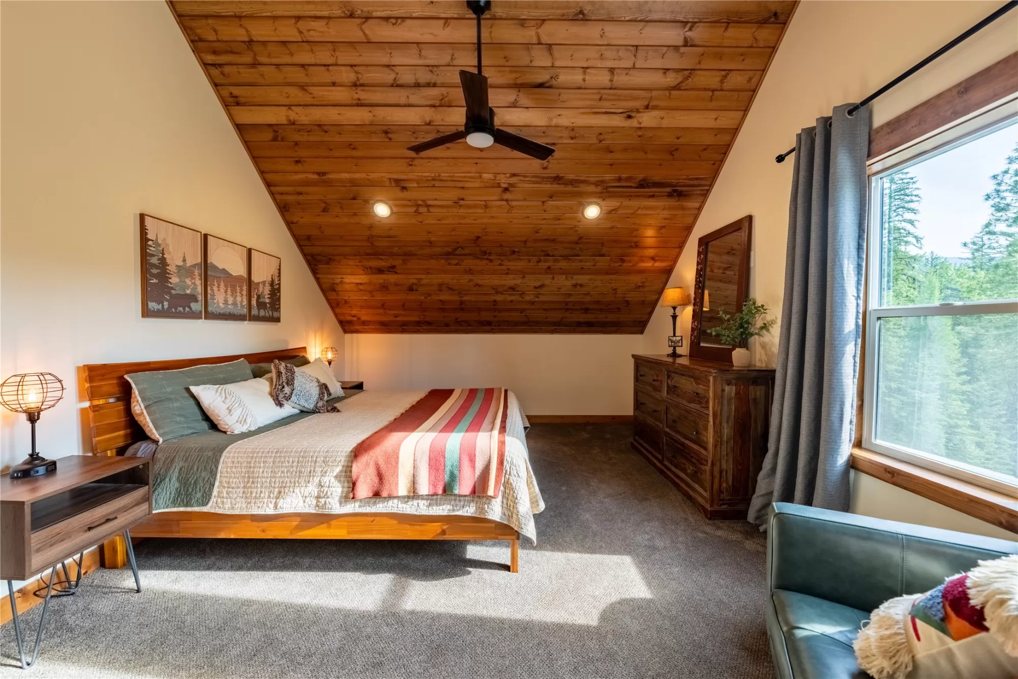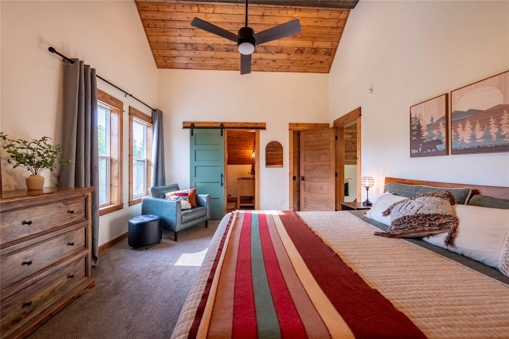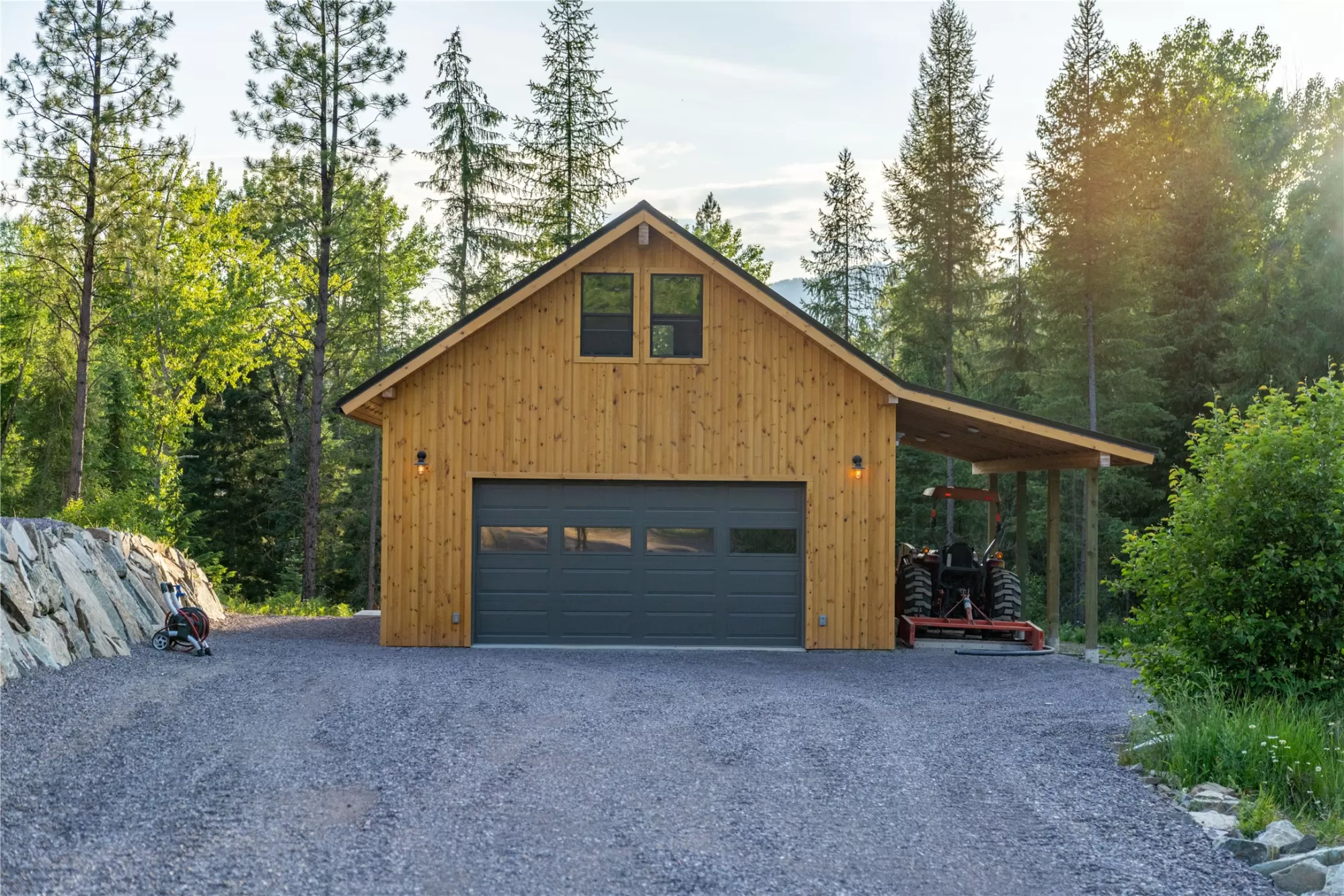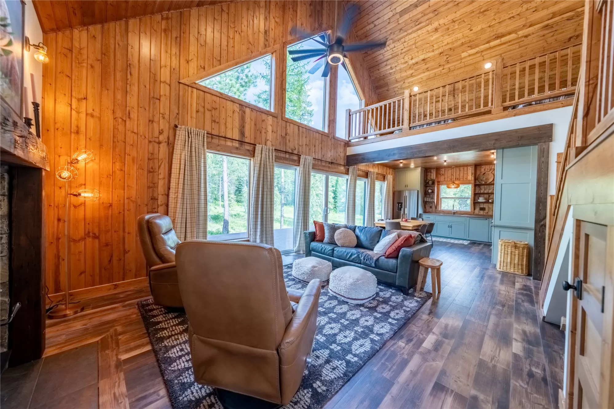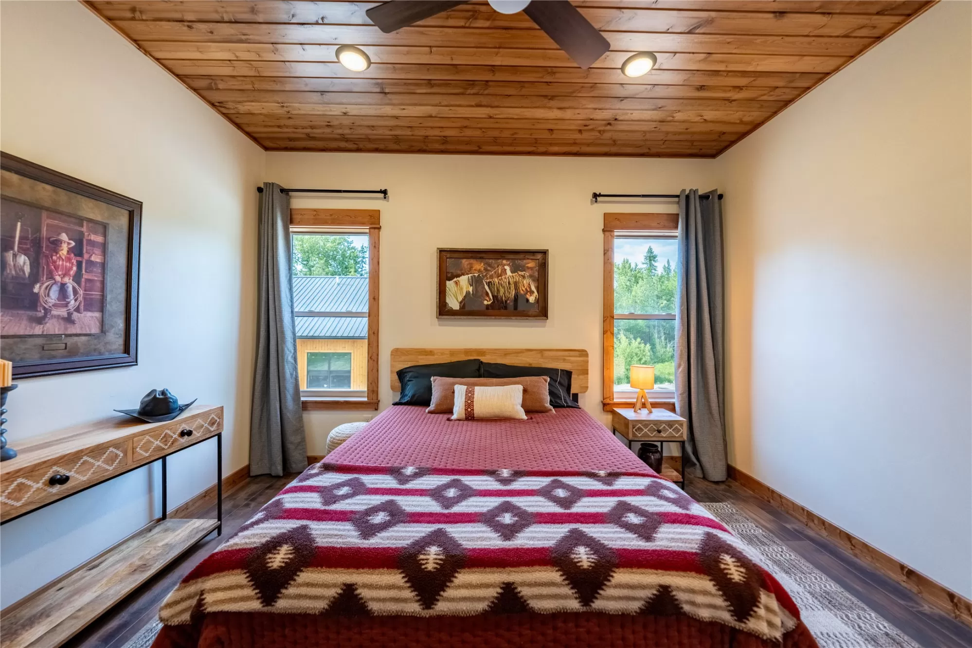 Discover quality craftsmanship in this 4-bed, 3.5-bath home on 6+ private acres in the gated community of Lake Creek Ranch. Ideally situated between Troy and Bull Lake, this 2,145 SF cabin features vaulted wood ceilings, an open concept layout, and a natural stone fireplace. The main level offers two spacious bedrooms, a full bath, and a half bath. The kitchen features honed quartz countertops and solid wood custom cabinetry. There is also a sunroom that offers a bright, peaceful retreat with forest views. Upstairs, the private primary suite includes an en-suite bath, walk-in closet, and a versatile loft. Additionally, there is a 320 SF guest suite above the detached two-car garage, bringing the total livable space to 2,465 SF. Front and side porches extend the living space outdoors. With high-speed fiber internet, central heating and A/C, a private well, and a private neighborhood trail to Lake Creek, this home offers comfort, flexibility, and access to endless outdoor recreation.