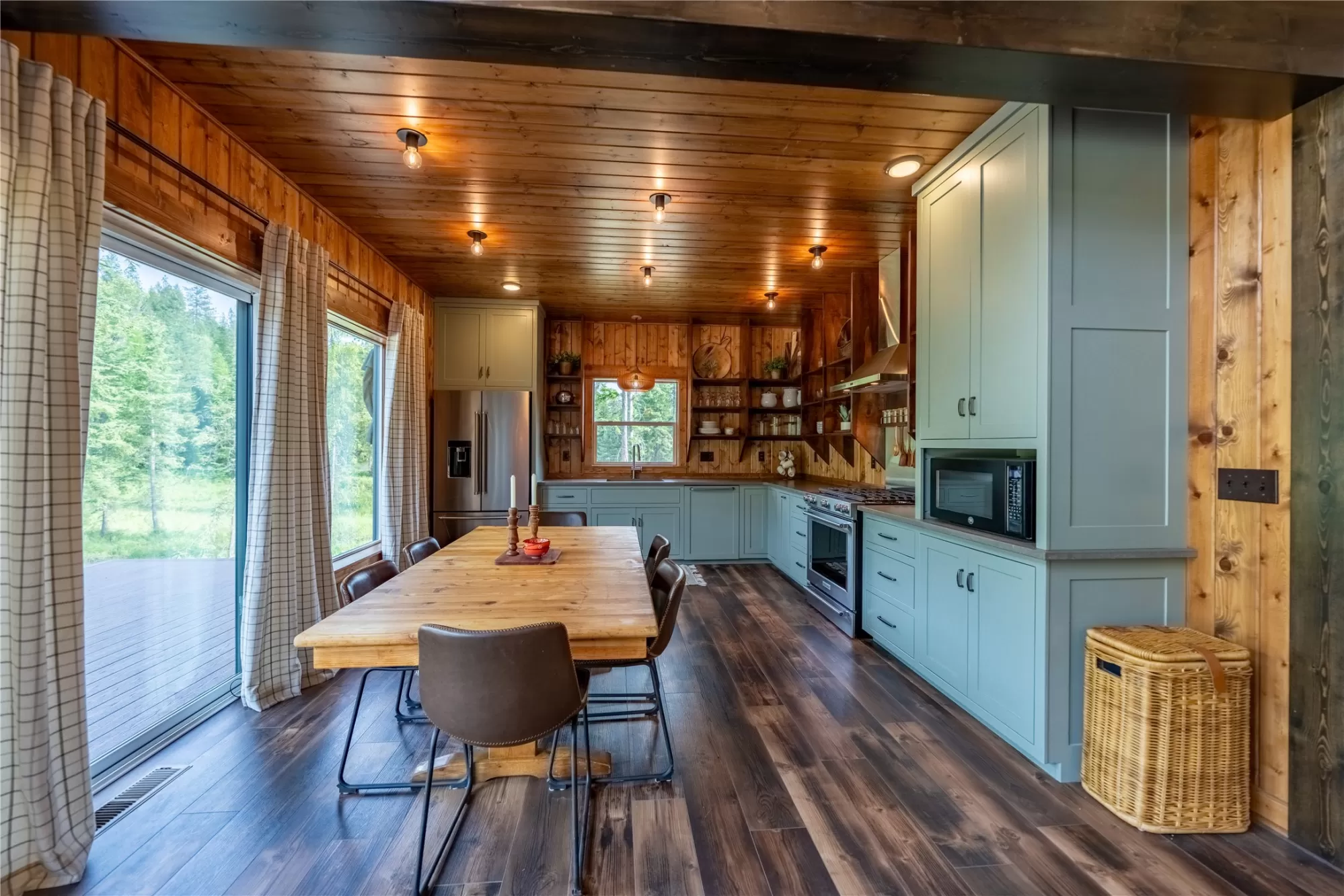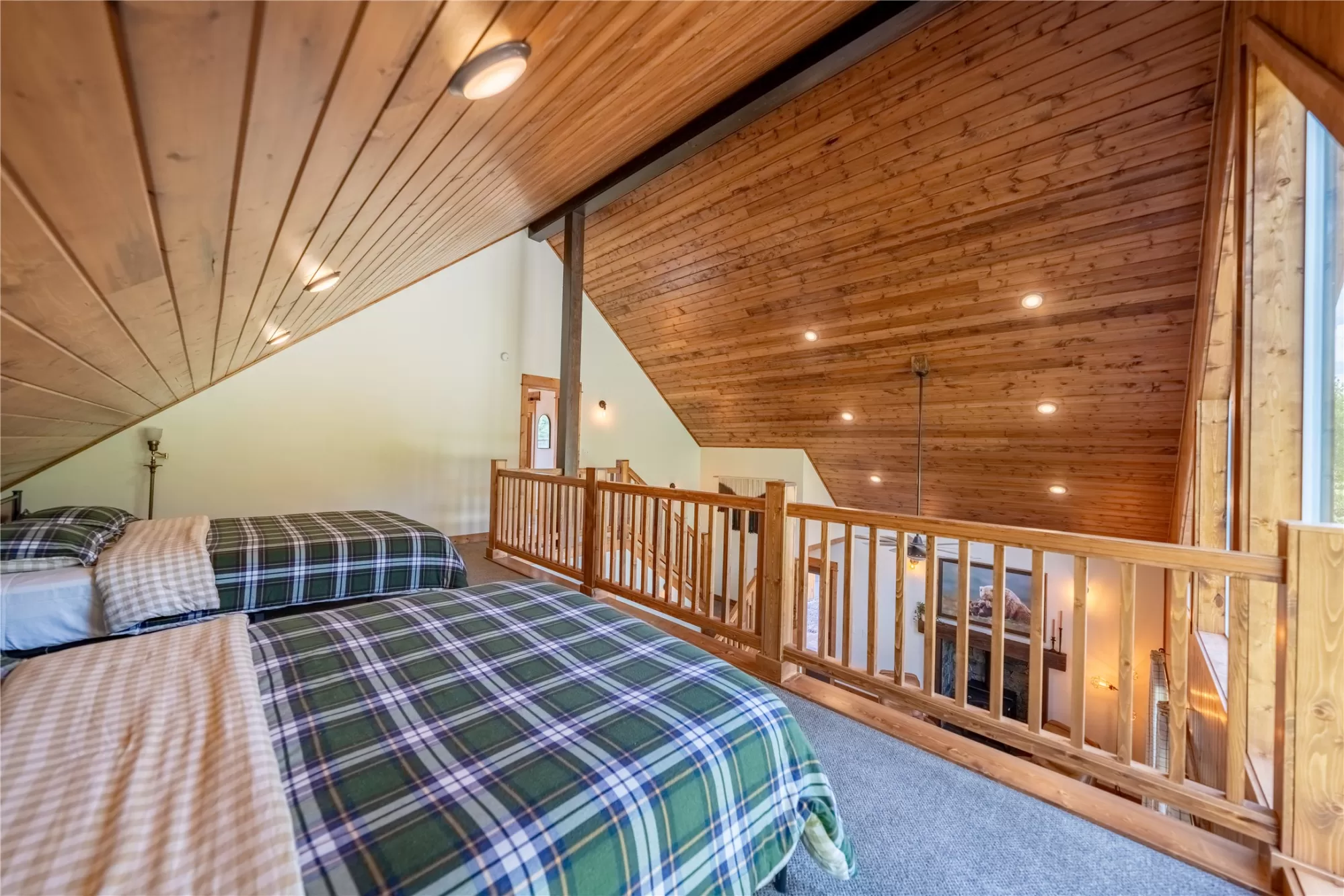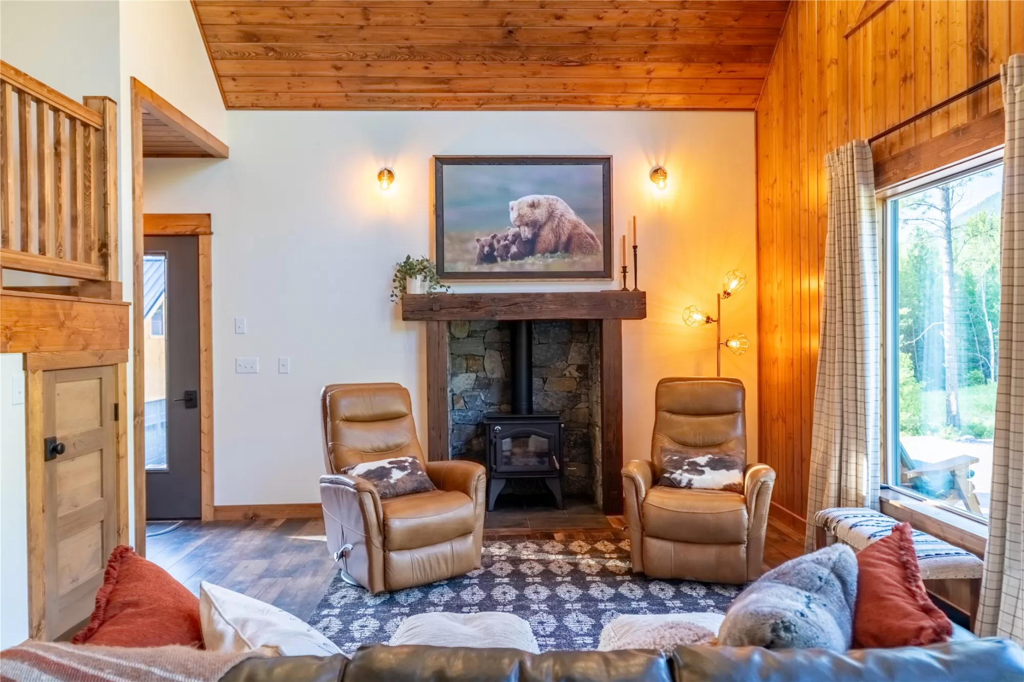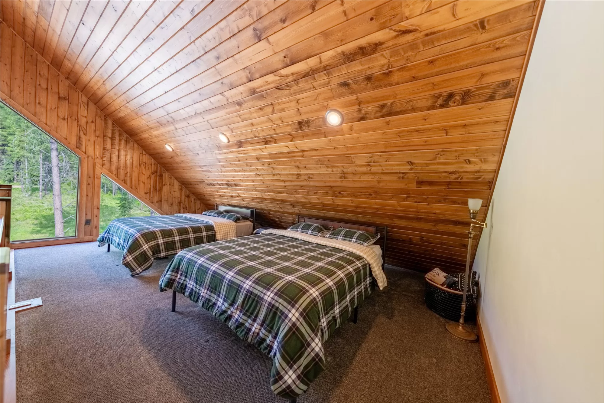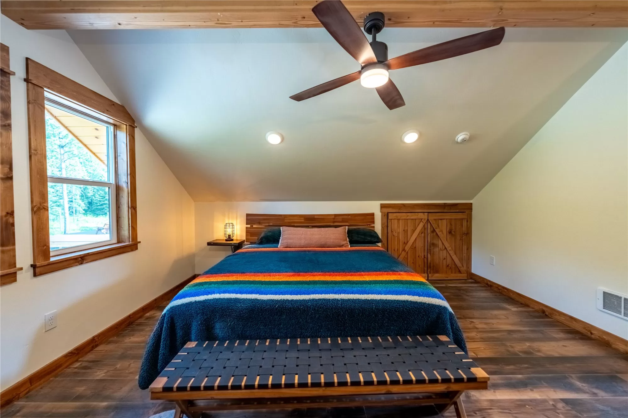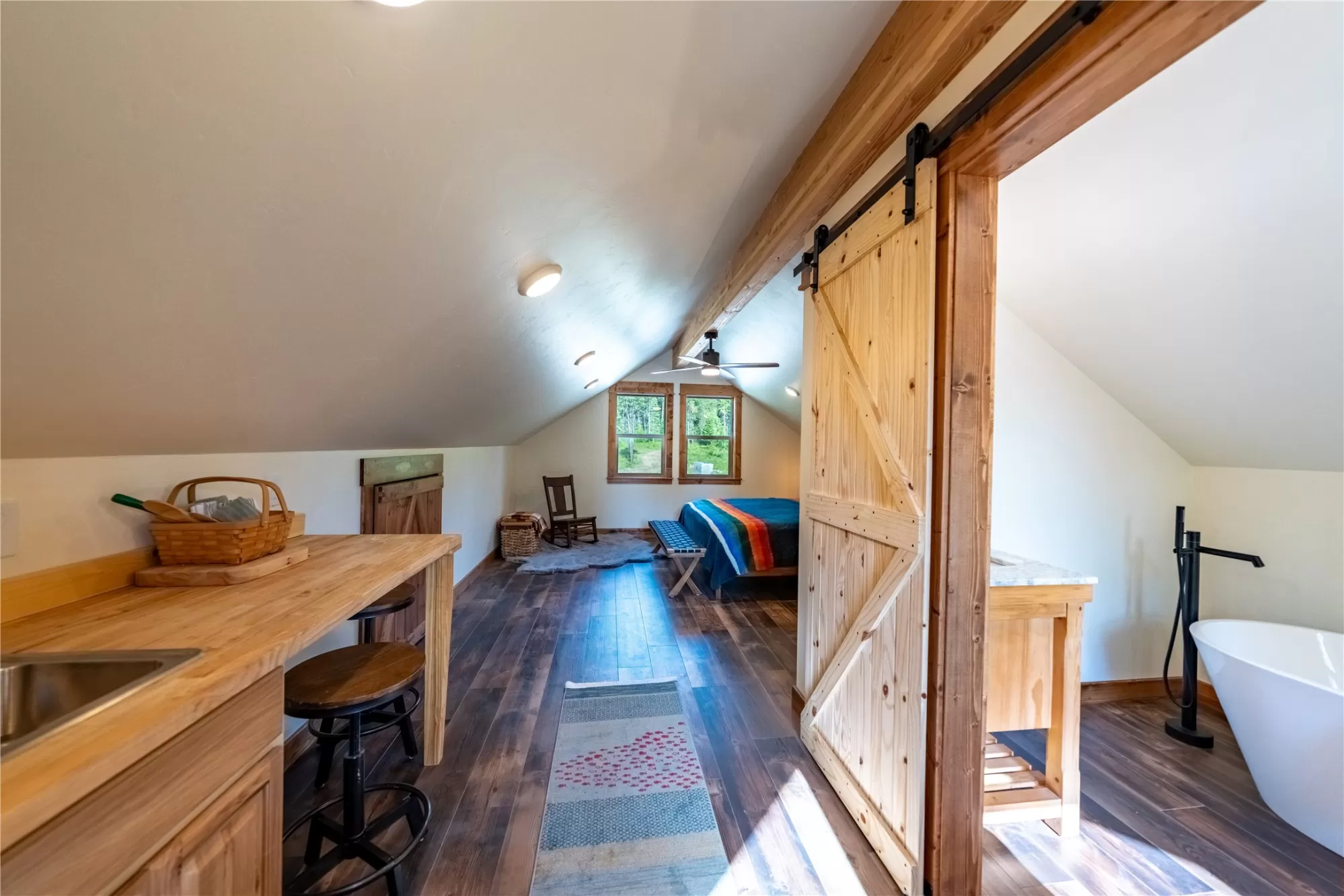 Discover quality craftsmanship in this 4-bed, 3.5-bath home on 6+ private acres in the gated community of Lake Creek Ranch. Ideally situated between Troy and Bull Lake, this 2,145 SF cabin features vaulted wood ceilings, an open concept layout, and a natural stone fireplace. The main level offers two spacious bedrooms, a full bath, and a half bath. The kitchen features honed quartz countertops and solid wood custom cabinetry. There is also a sunroom that offers a bright, peaceful retreat with forest views. Upstairs, the private primary suite includes an en-suite bath, walk-in closet, and a versatile loft. Additionally, there is a 320 SF guest suite above the detached two-car garage, bringing the total livable space to 2,465 SF. Front and side porches extend the living space outdoors. With high-speed fiber internet, central heating and A/C, a private well, and a private neighborhood trail to Lake Creek, this home offers comfort, flexibility, and access to endless outdoor recreation.