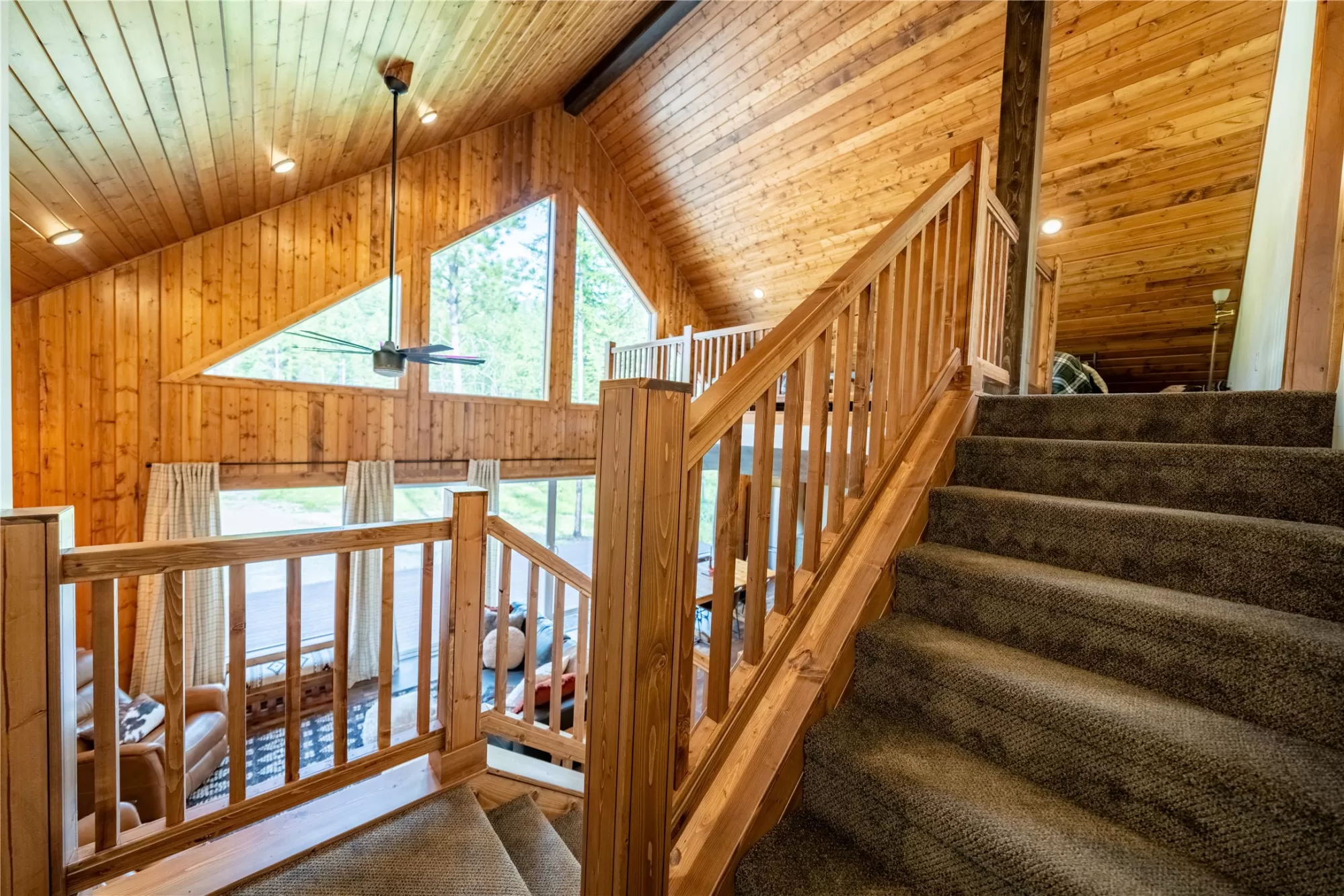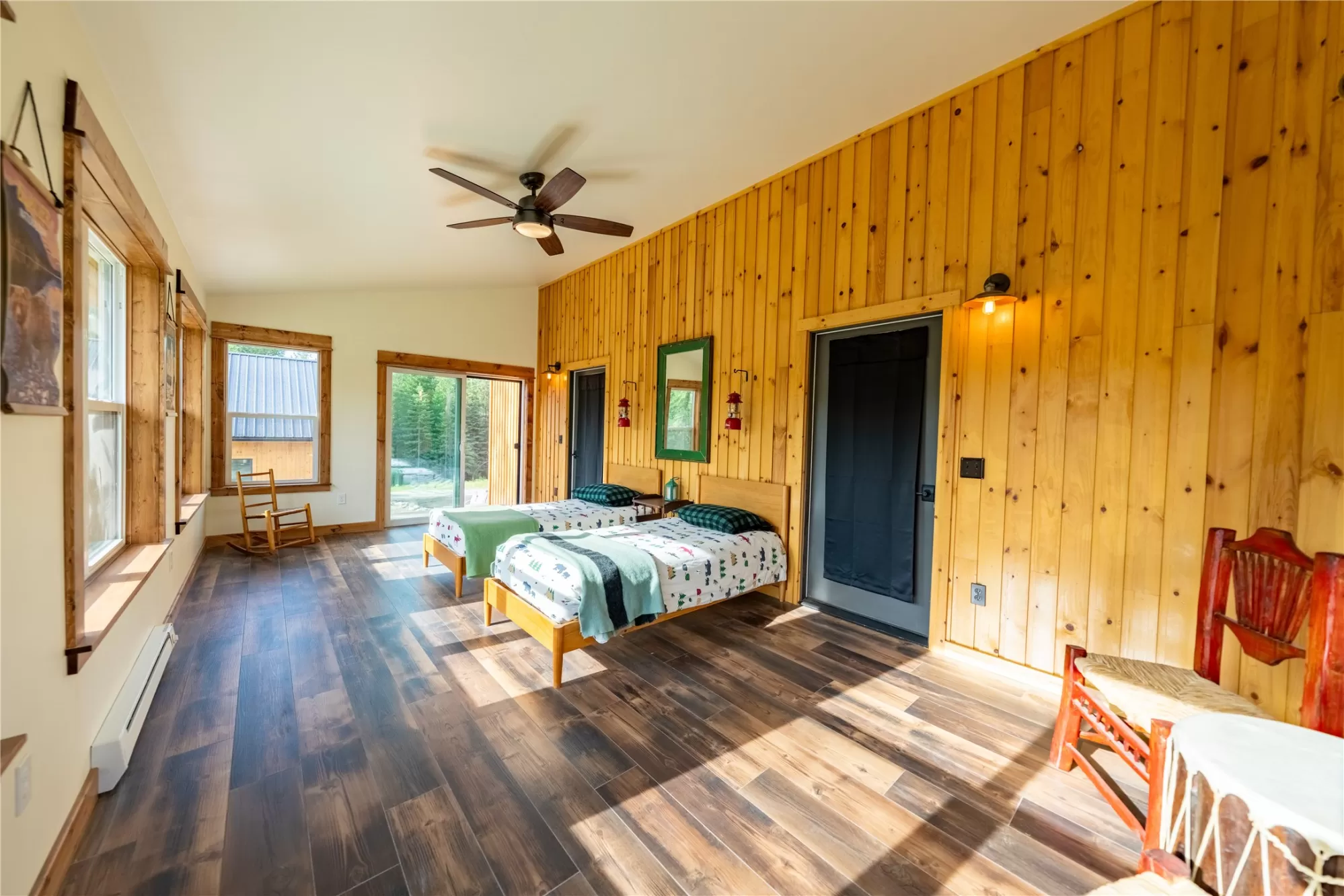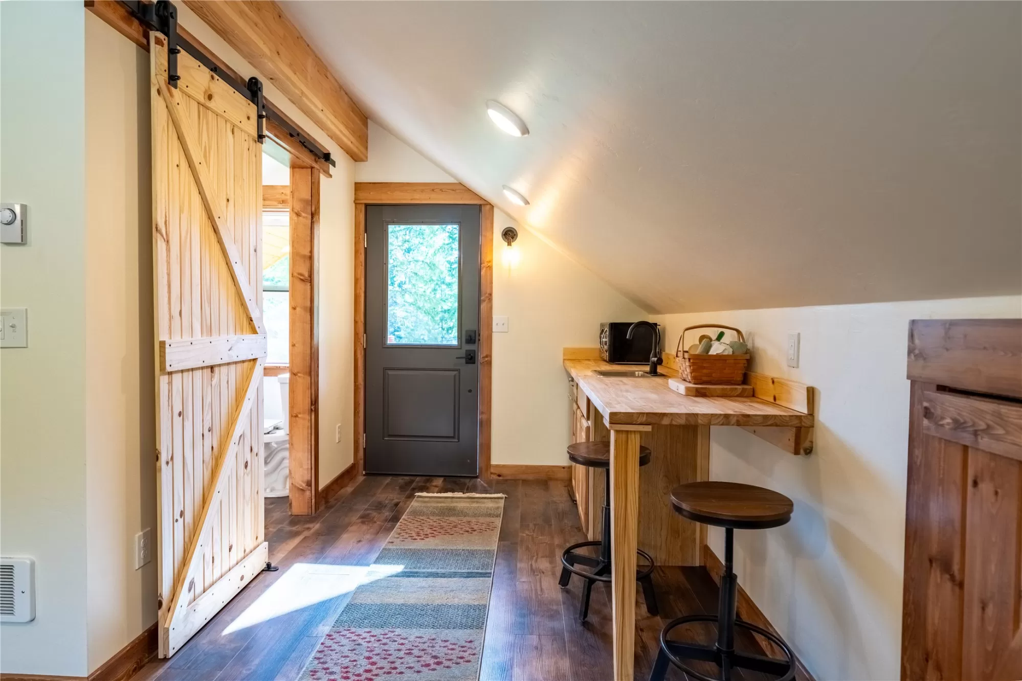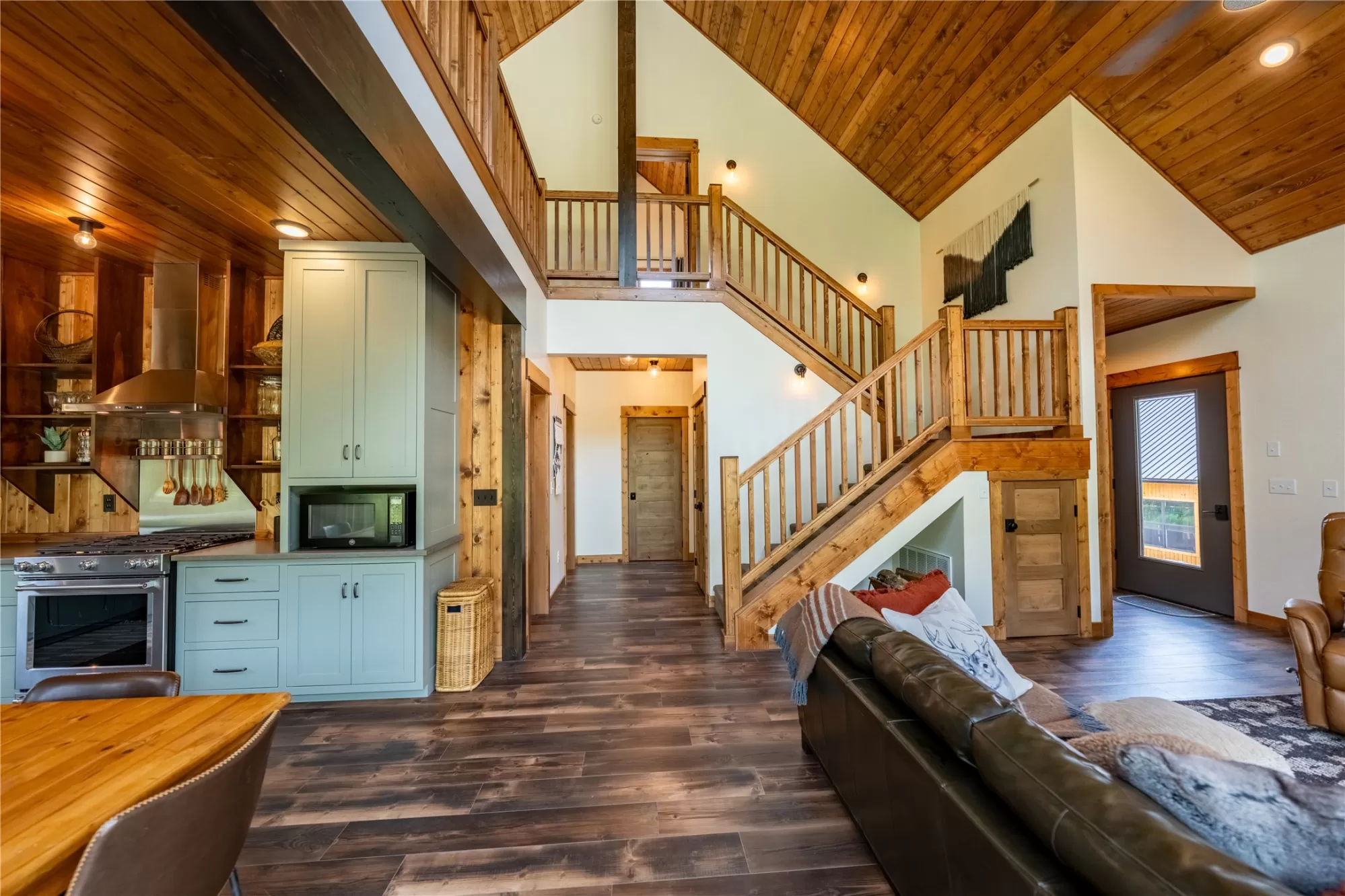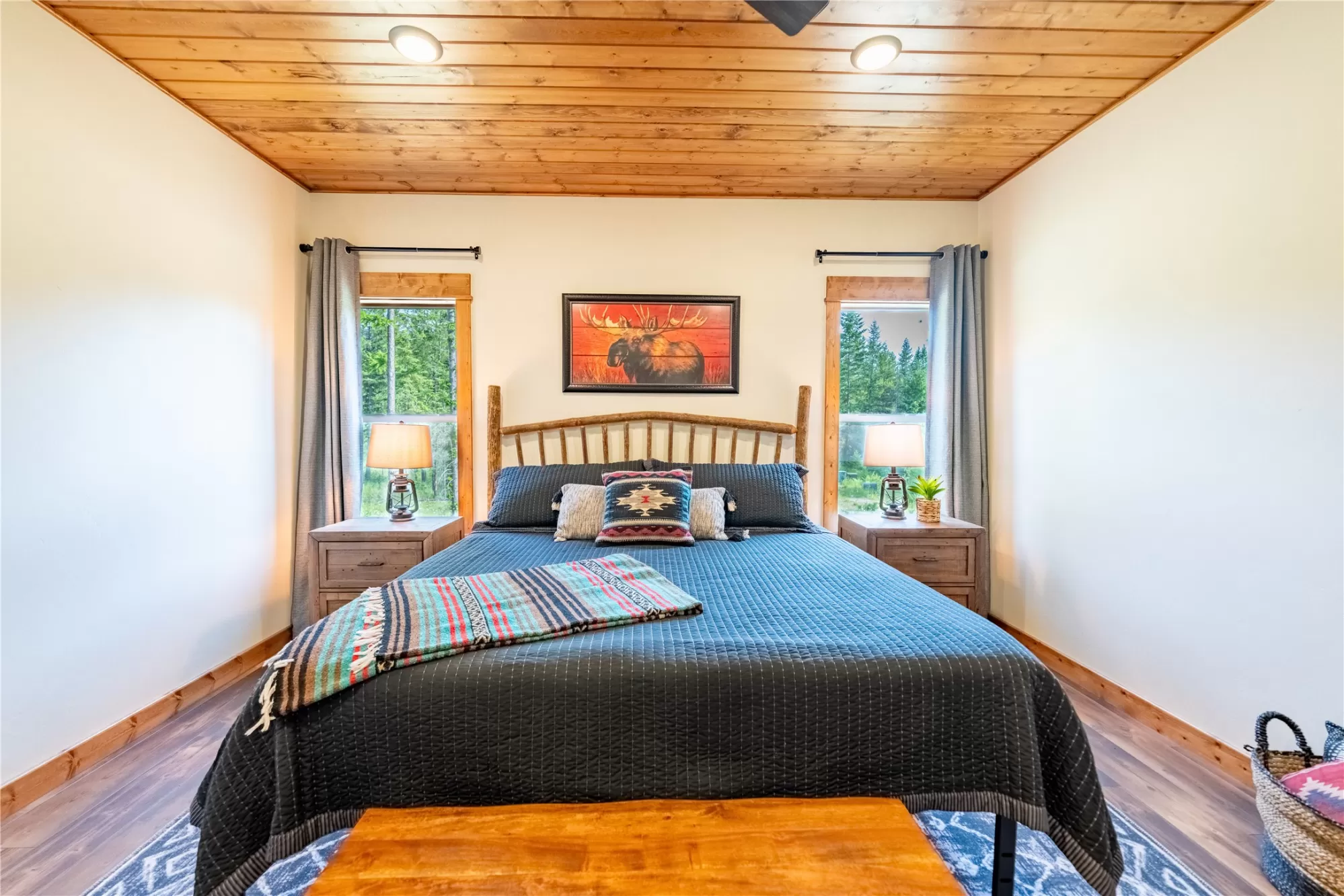Discover quality craftsmanship in this 4-bed, 3.5-bath home on 6+ private acres in the gated community of Lake Creek Ranch. Ideally situated between Troy and Bull Lake, this 2,145 SF cabin features vaulted wood ceilings, an open concept layout, and a natural stone fireplace. The main level offers two spacious bedrooms, a full bath, and a half bath. The kitchen features honed quartz countertops and solid wood custom cabinetry. There is also a sunroom that offers a bright, peaceful retreat with forest views. Upstairs, the private primary suite includes an en-suite bath, walk-in closet, and a versatile loft. Additionally, there is a 320 SF guest suite above the detached two-car garage, bringing the total livable space to 2,465 SF. Front and side porches extend the living space outdoors. With high-speed fiber internet, central heating and A/C, a private well, and a private neighborhood trail to Lake Creek, this home offers comfort, flexibility, and access to endless outdoor recreation.