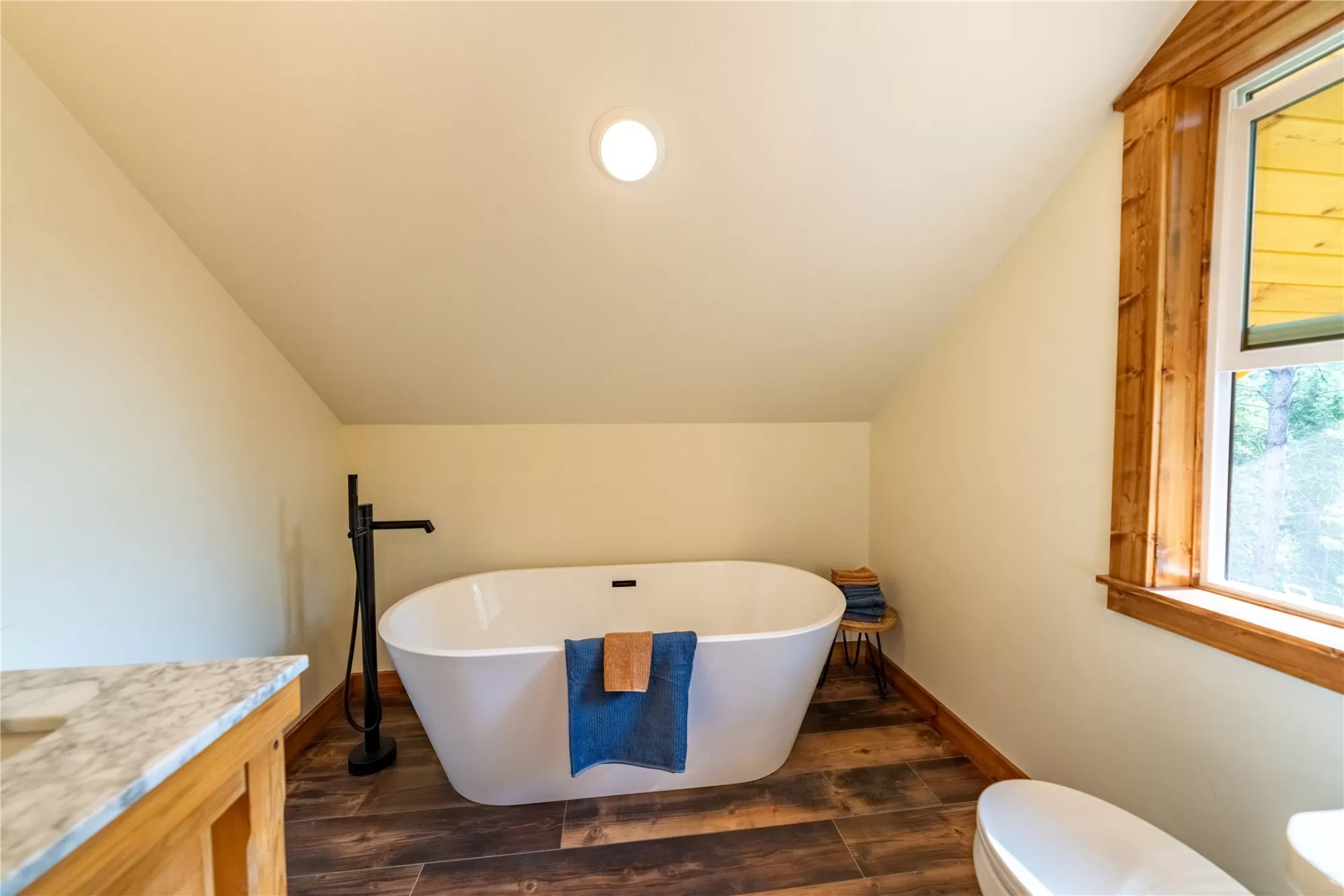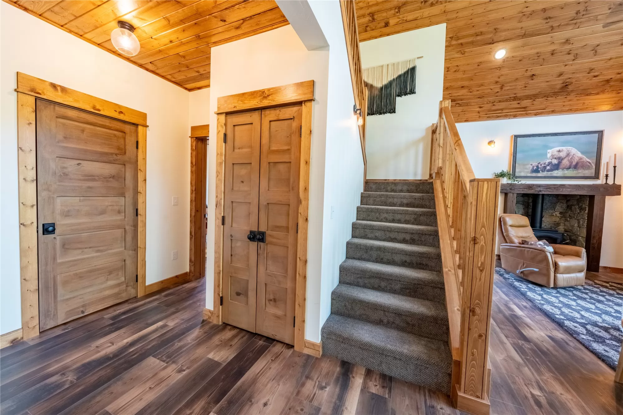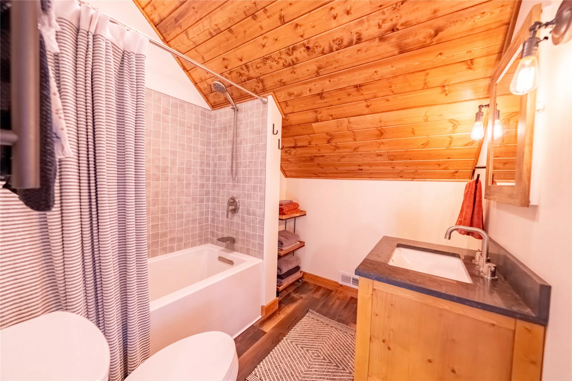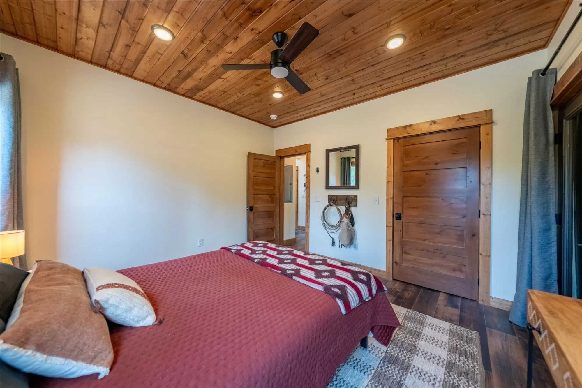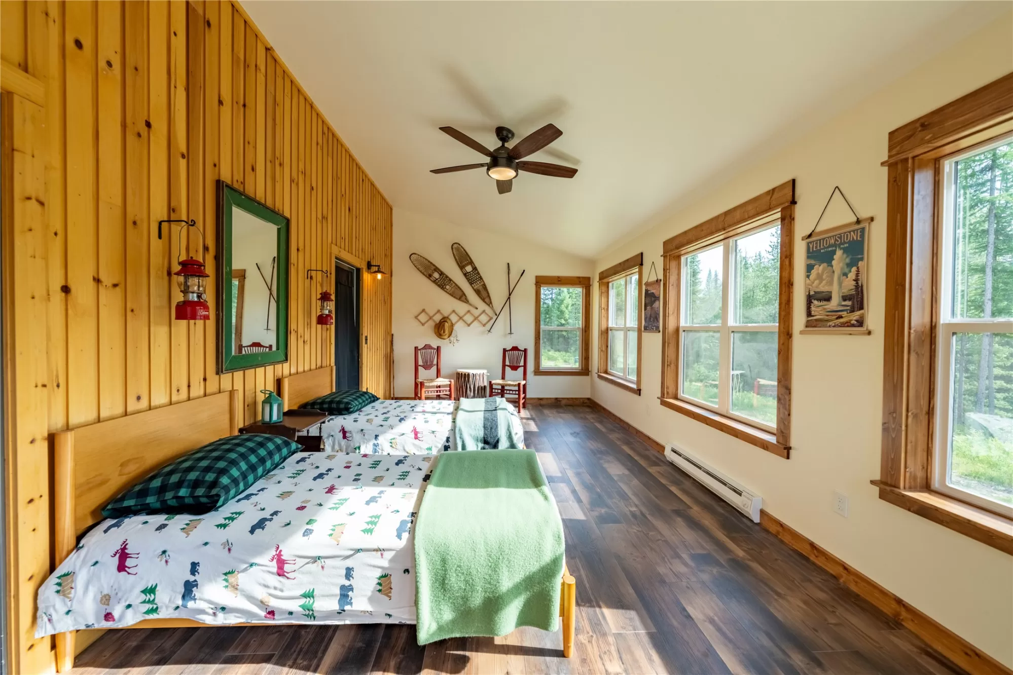 Discover quality craftsmanship in this 4-bed, 3.5-bath home on 6+ private acres in the gated community of Lake Creek Ranch. Ideally situated between Troy and Bull Lake, this 2,145 SF cabin features vaulted wood ceilings, an open concept layout, and a natural stone fireplace. The main level offers two spacious bedrooms, a full bath, and a half bath. The kitchen features honed quartz countertops and solid wood custom cabinetry. There is also a sunroom that offers a bright, peaceful retreat with forest views. Upstairs, the private primary suite includes an en-suite bath, walk-in closet, and a versatile loft. Additionally, there is a 320 SF guest suite above the detached two-car garage, bringing the total livable space to 2,465 SF. Front and side porches extend the living space outdoors. With high-speed fiber internet, central heating and A/C, a private well, and a private neighborhood trail to Lake Creek, this home offers comfort, flexibility, and access to endless outdoor recreation.