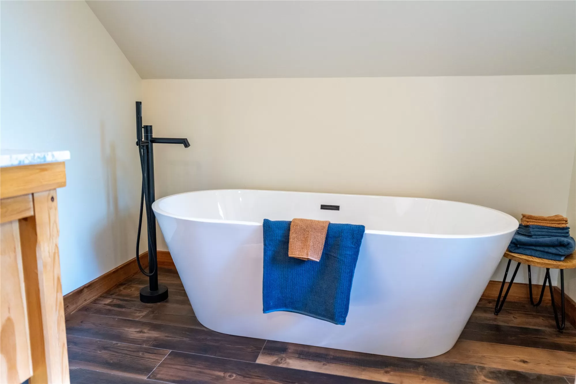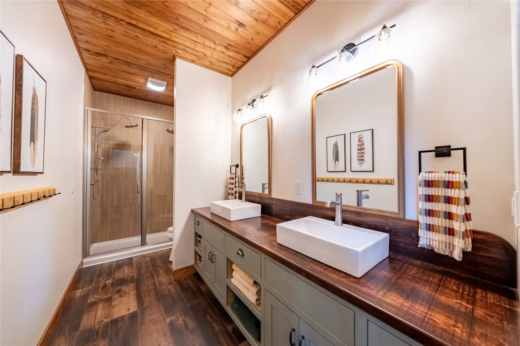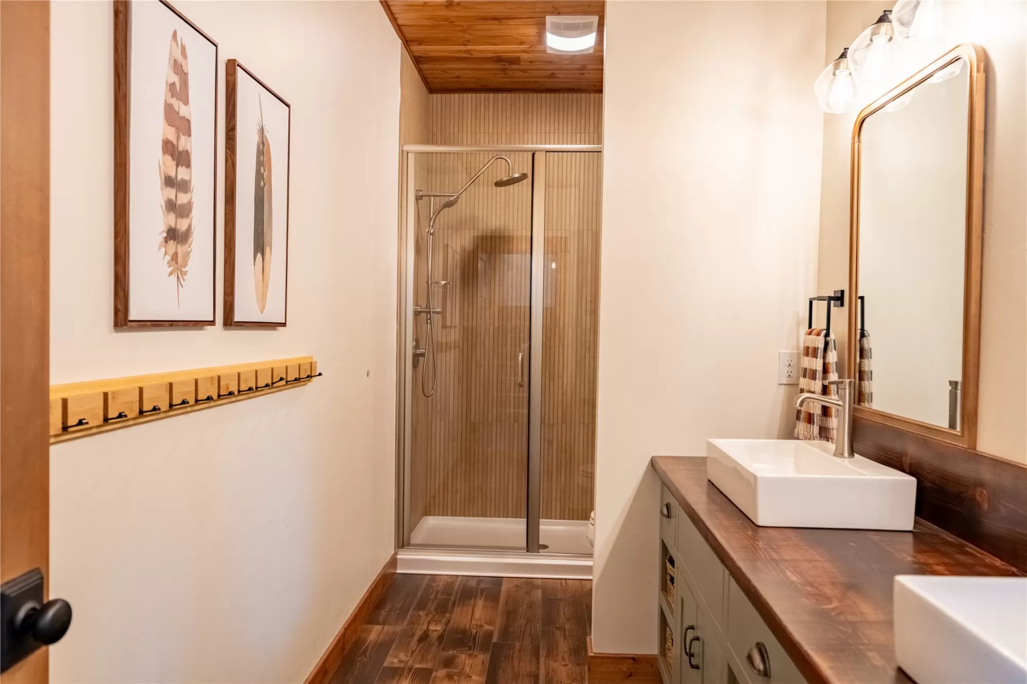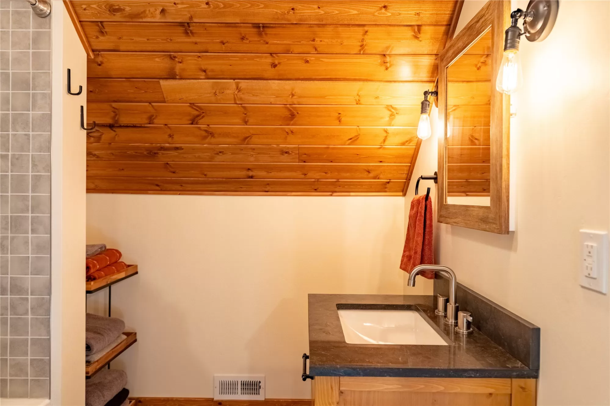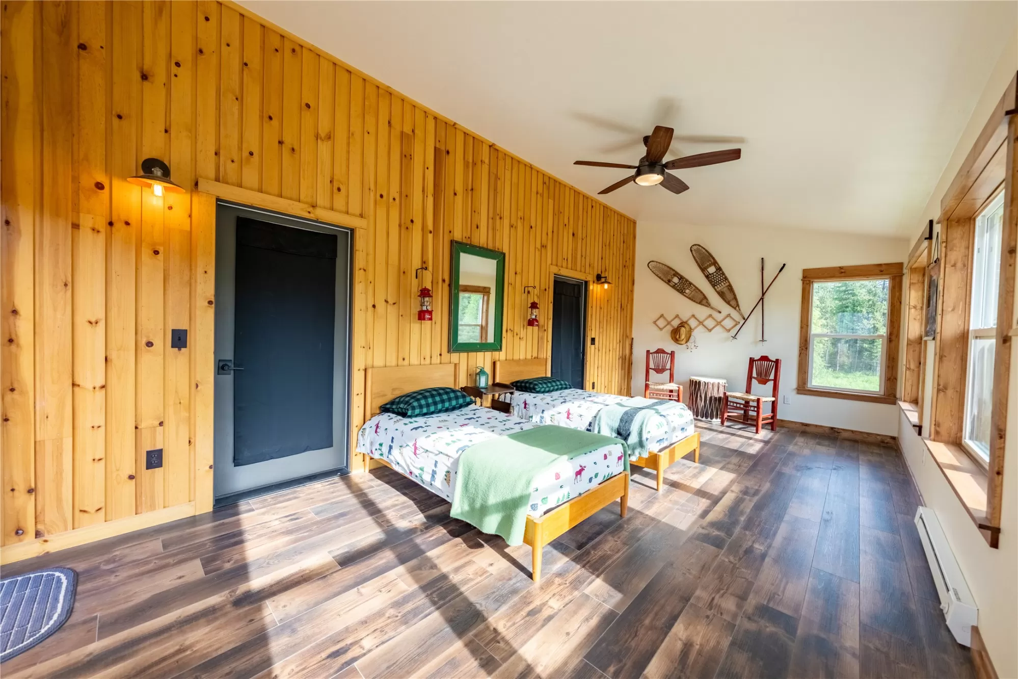 Discover quality craftsmanship in this 4-bed, 3.5-bath home on 6+ private acres in the gated community of Lake Creek Ranch. Ideally situated between Troy and Bull Lake, this 2,145 SF cabin features vaulted wood ceilings, an open concept layout, and a natural stone fireplace. The main level offers two spacious bedrooms, a full bath, and a half bath. The kitchen features honed quartz countertops and solid wood custom cabinetry. There is also a sunroom that offers a bright, peaceful retreat with forest views. Upstairs, the private primary suite includes an en-suite bath, walk-in closet, and a versatile loft. Additionally, there is a 320 SF guest suite above the detached two-car garage, bringing the total livable space to 2,465 SF. Front and side porches extend the living space outdoors. With high-speed fiber internet, central heating and A/C, a private well, and a private neighborhood trail to Lake Creek, this home offers comfort, flexibility, and access to endless outdoor recreation.