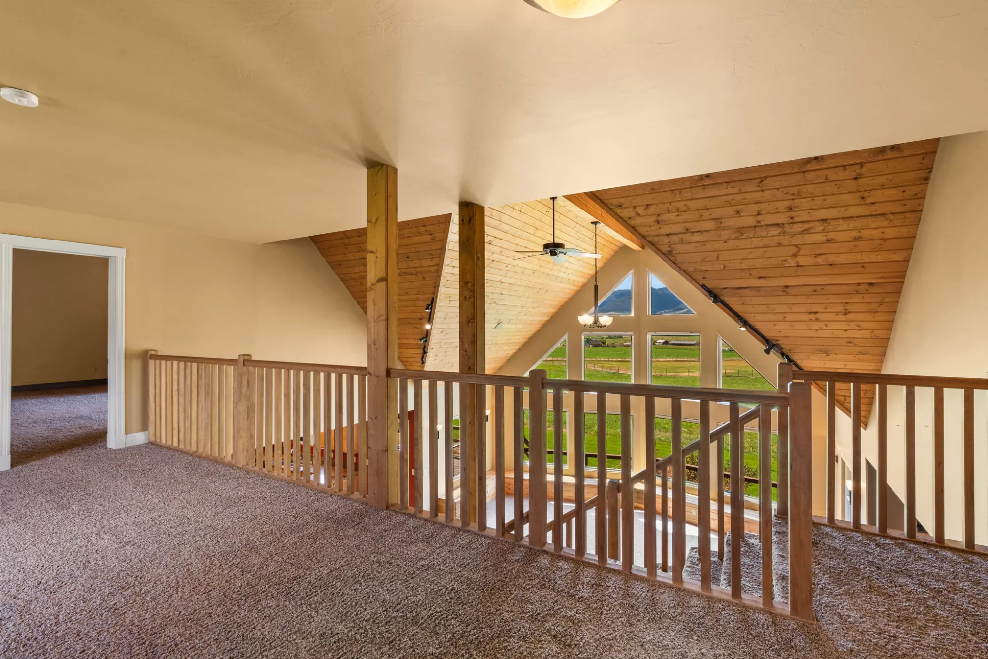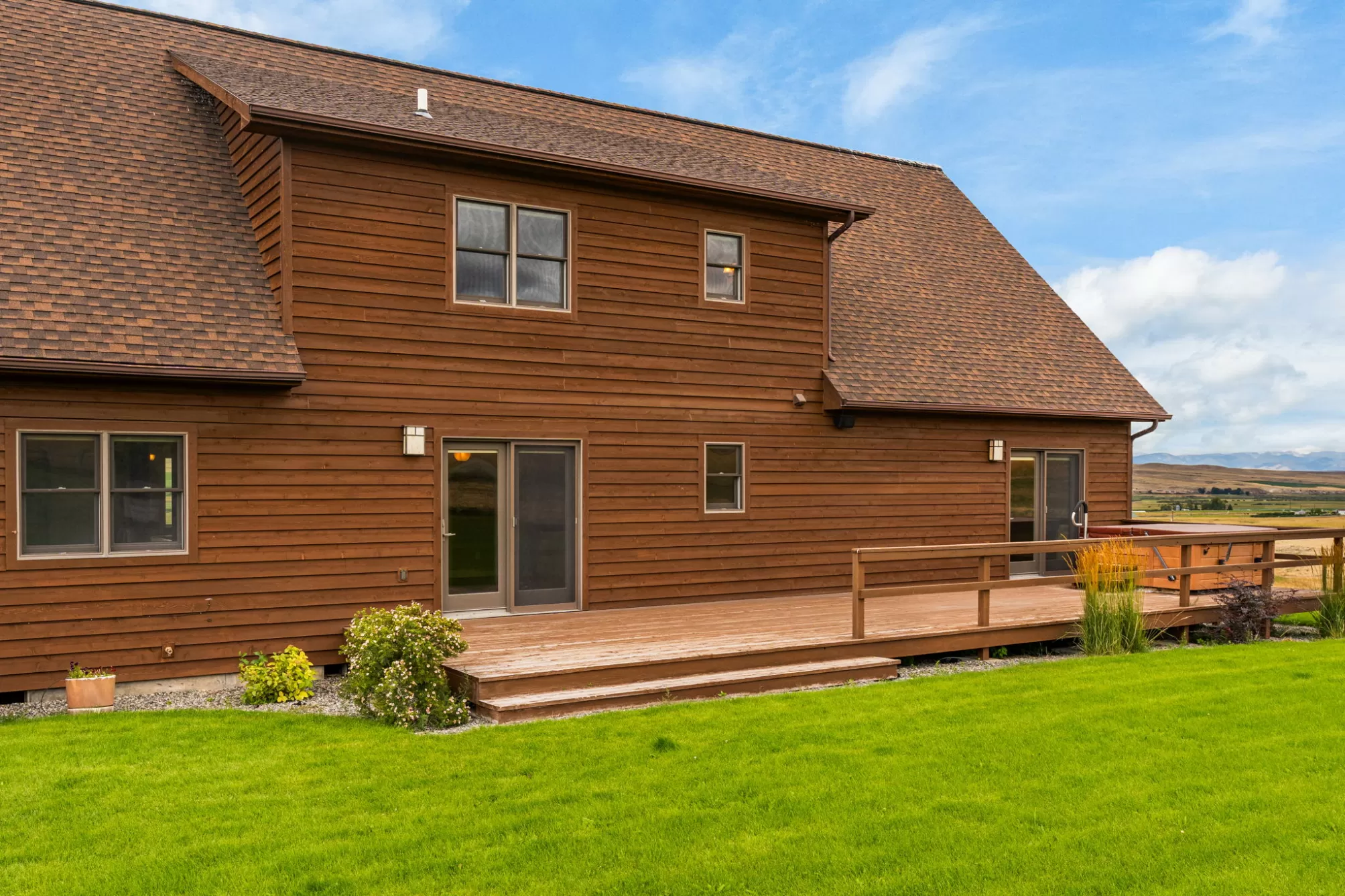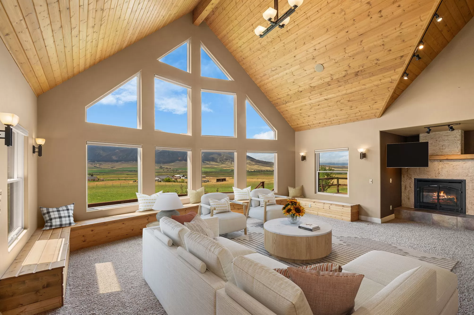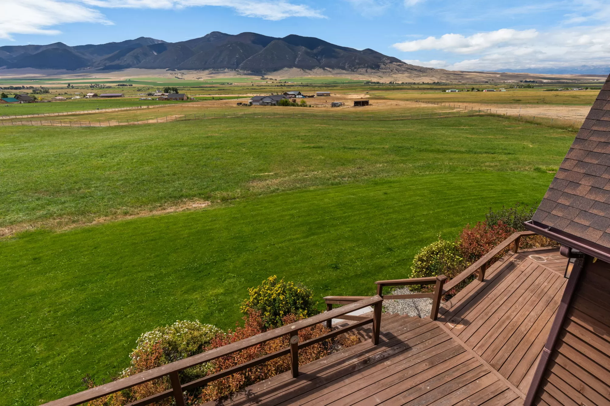 This custom-built residence offers over 3,500 square feet of thoughtfully designed living space on just over 5 acres with irrigation water and handlines. The beautifully landscaped grounds feature a manicured lawn with an underground sprinkler system and a wrap-around deck extending along three sides of the home, ideal for enjoying the surrounding views of the Ruby Mountains. Inside, the home includes 4 bedrooms, with one well-suited for use as an office. The primary suite offers a walk-in closet, bathroom with a jetted tub, and private deck access to the hot tub. Two additional upstairs bedrooms are generously sized, each with large closets and private balconies. The formal dining room provides direct access to the deck, creating excellent space for gathering and entertaining. The kitchen is equipped with granite countertops, stainless steel appliances, and abundant cabinetry. The main living area showcases vaulted ceilings, expansive windows that frame the mountain views, and a gas fireplace. Additional features include central air conditioning, central vacuum, and a landscaped yard with underground sprinklers. This property combines comfort, functionality, and scenic beauty with ample space both indoors and outdoors.