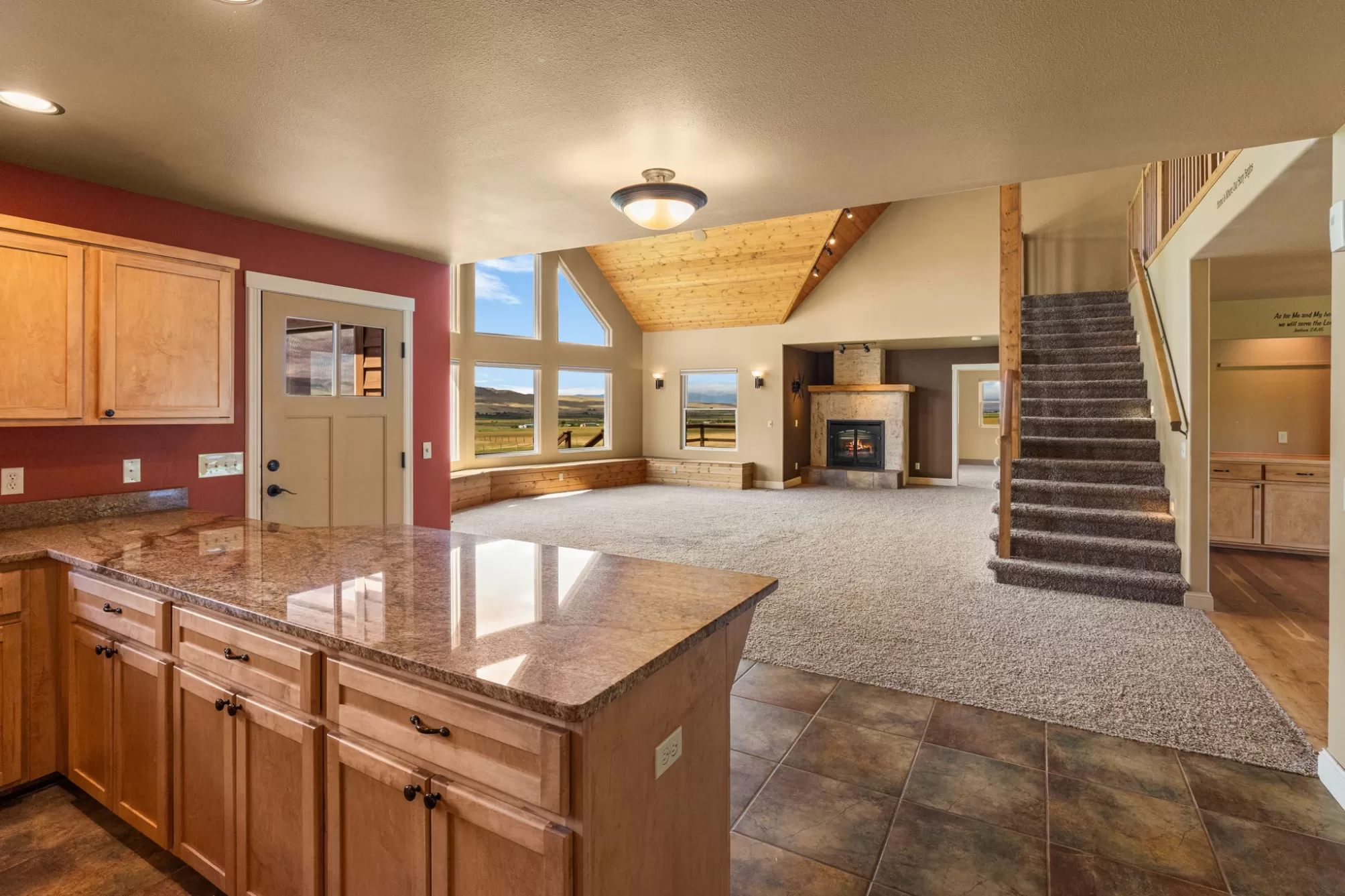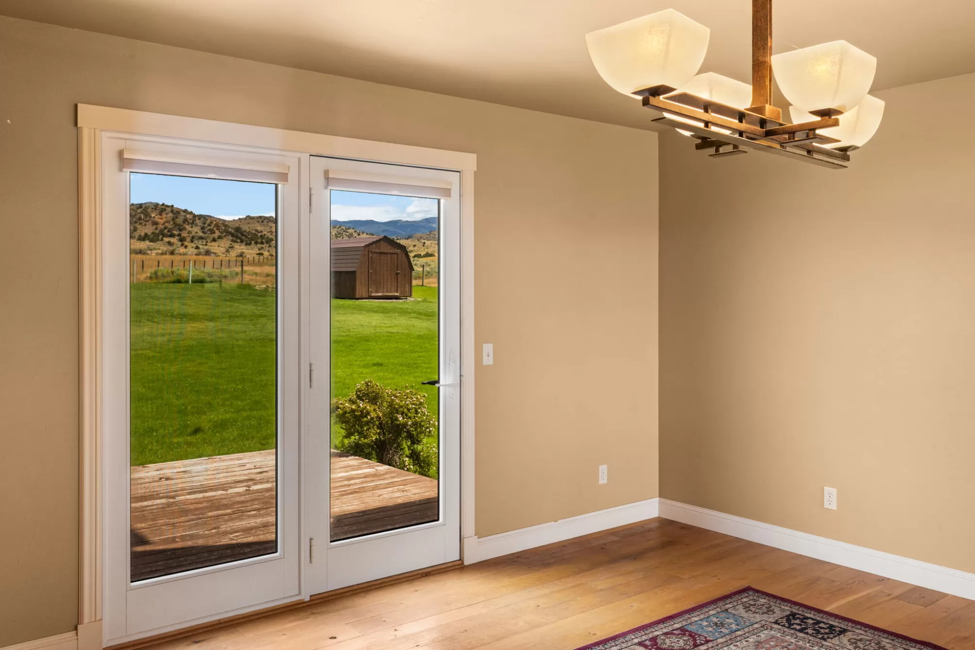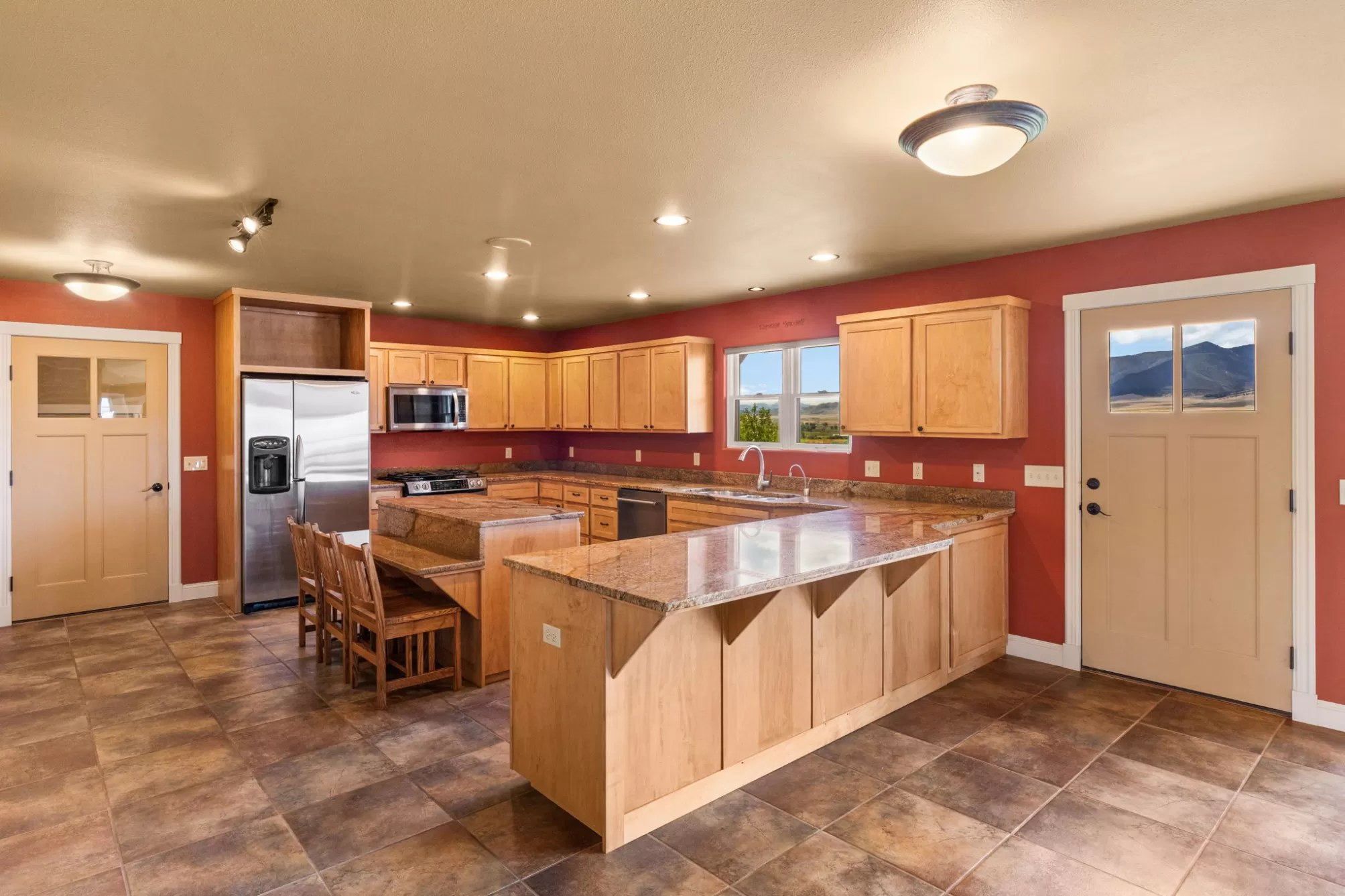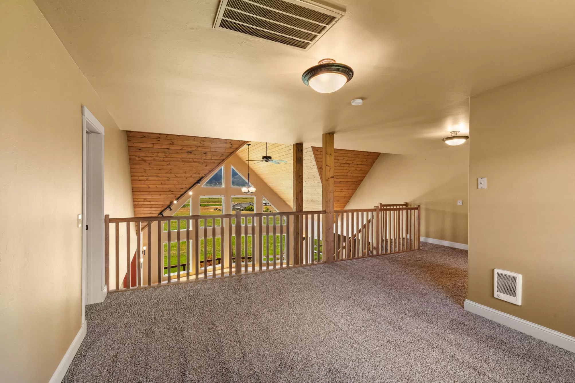 This custom-built residence offers over 3,500 square feet of thoughtfully designed living space on just over 5 acres with irrigation water and handlines. The beautifully landscaped grounds feature a manicured lawn with an underground sprinkler system and a wrap-around deck extending along three sides of the home, ideal for enjoying the surrounding views of the Ruby Mountains. Inside, the home includes 4 bedrooms, with one well-suited for use as an office. The primary suite offers a walk-in closet, bathroom with a jetted tub, and private deck access to the hot tub. Two additional upstairs bedrooms are generously sized, each with large closets and private balconies. The formal dining room provides direct access to the deck, creating excellent space for gathering and entertaining. The kitchen is equipped with granite countertops, stainless steel appliances, and abundant cabinetry. The main living area showcases vaulted ceilings, expansive windows that frame the mountain views, and a gas fireplace. Additional features include central air conditioning, central vacuum, and a landscaped yard with underground sprinklers. This property combines comfort, functionality, and scenic beauty with ample space both indoors and outdoors.