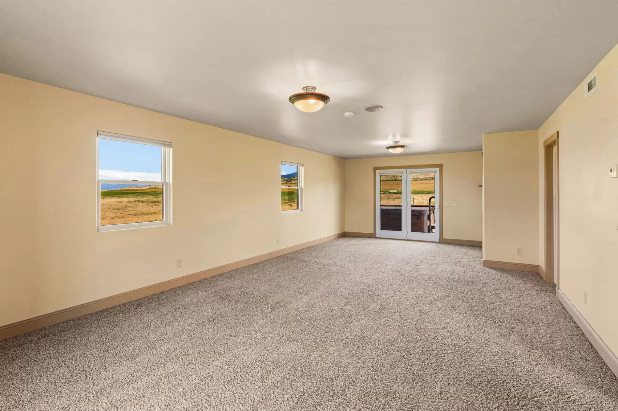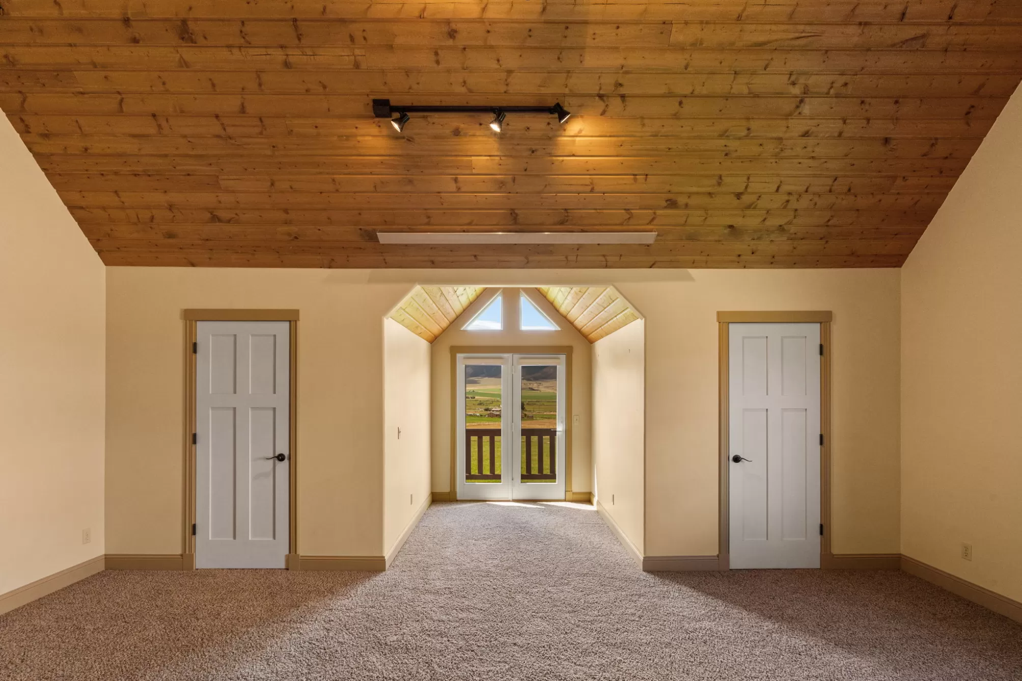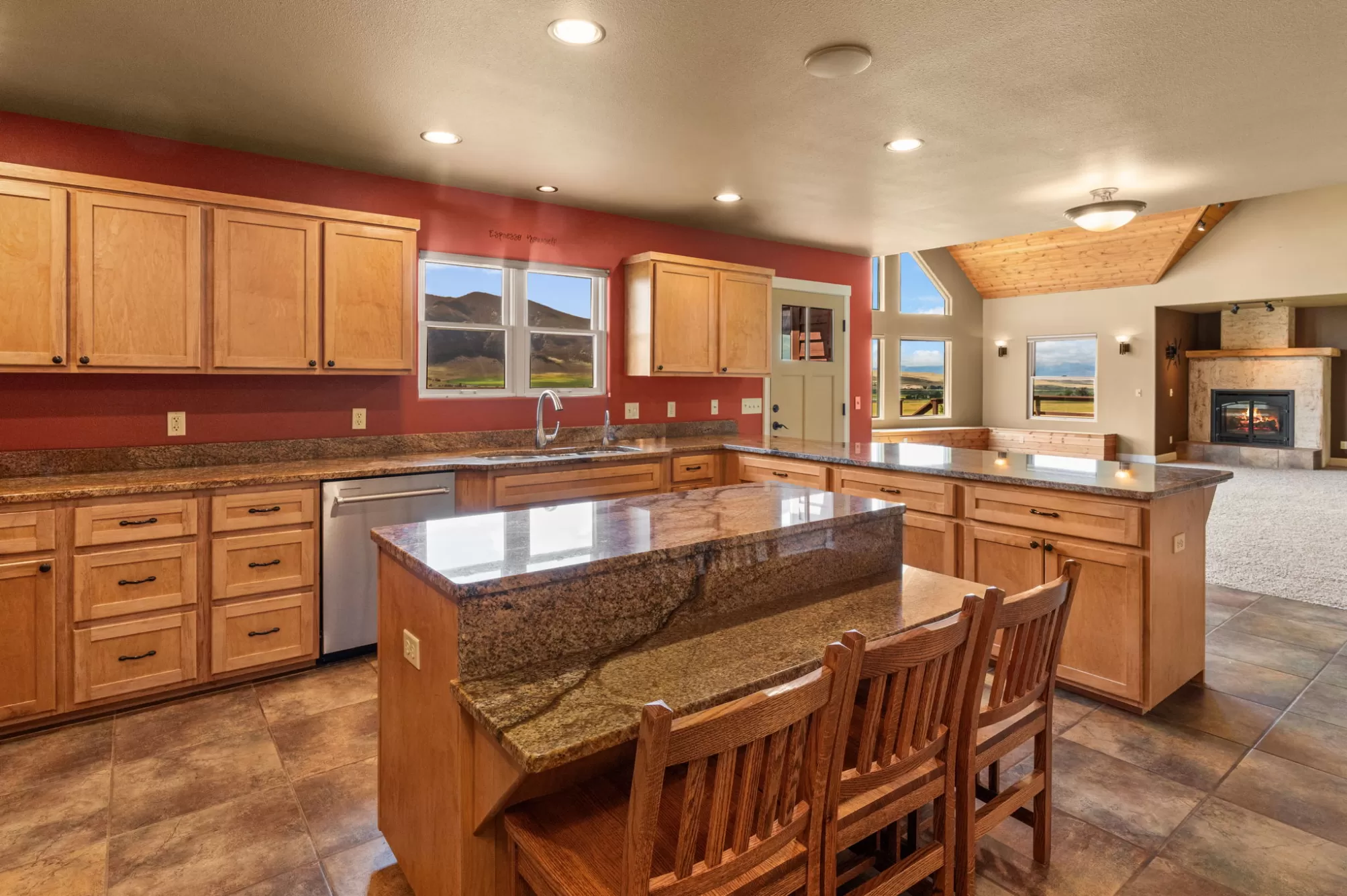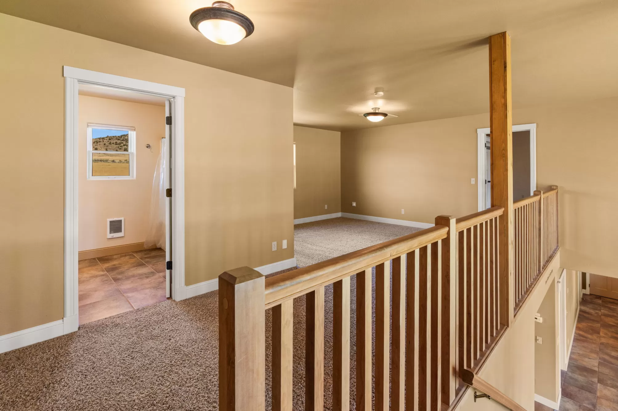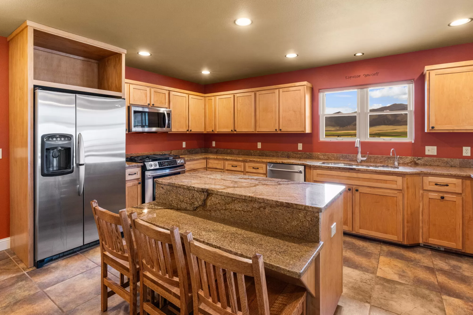 This custom-built residence offers over 3,500 square feet of thoughtfully designed living space on just over 5 acres with irrigation water and handlines. The beautifully landscaped grounds feature a manicured lawn with an underground sprinkler system and a wrap-around deck extending along three sides of the home, ideal for enjoying the surrounding views of the Ruby Mountains. Inside, the home includes 4 bedrooms, with one well-suited for use as an office. The primary suite offers a walk-in closet, bathroom with a jetted tub, and private deck access to the hot tub. Two additional upstairs bedrooms are generously sized, each with large closets and private balconies. The formal dining room provides direct access to the deck, creating excellent space for gathering and entertaining. The kitchen is equipped with granite countertops, stainless steel appliances, and abundant cabinetry. The main living area showcases vaulted ceilings, expansive windows that frame the mountain views, and a gas fireplace. Additional features include central air conditioning, central vacuum, and a landscaped yard with underground sprinklers. This property combines comfort, functionality, and scenic beauty with ample space both indoors and outdoors.