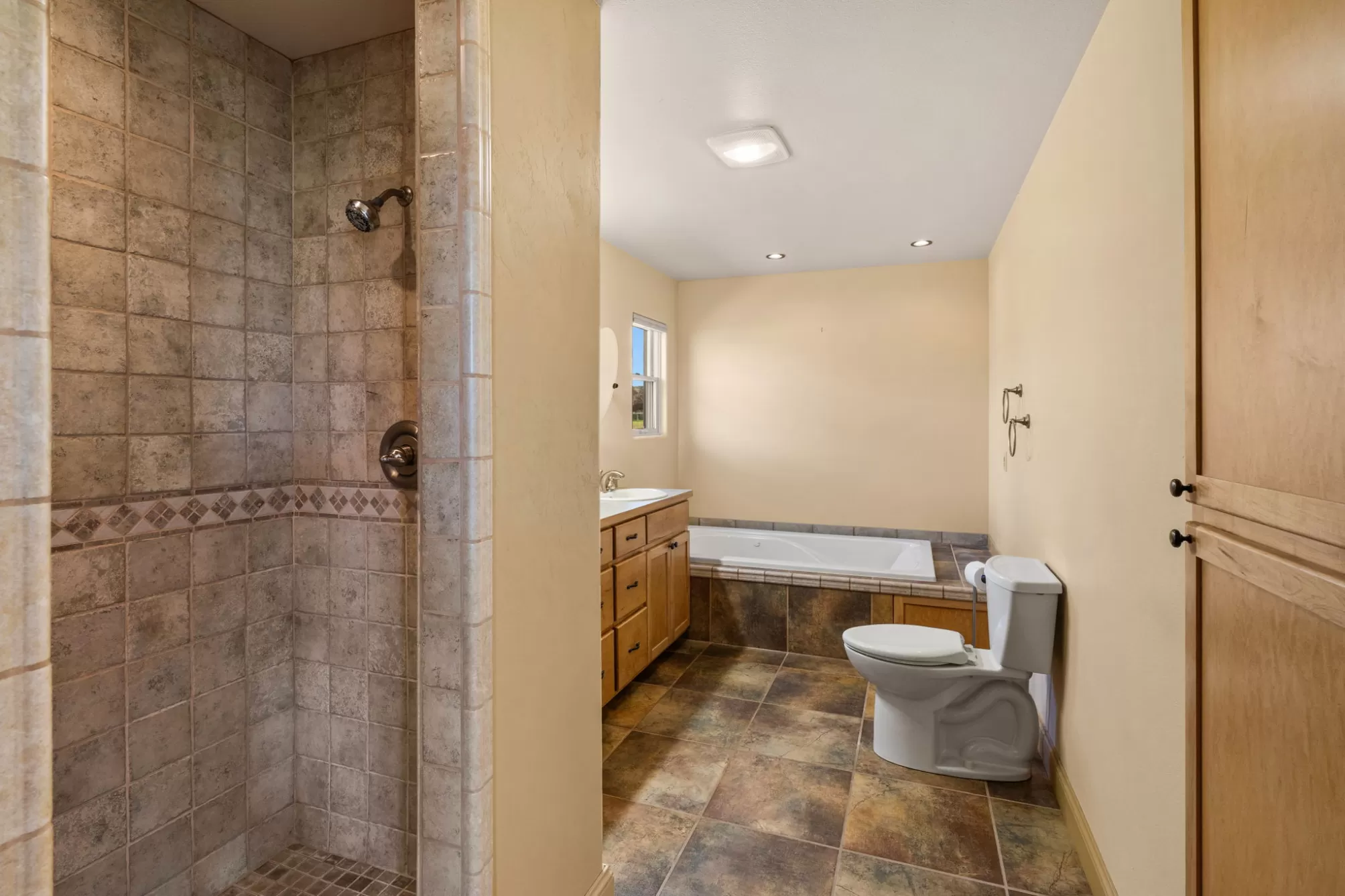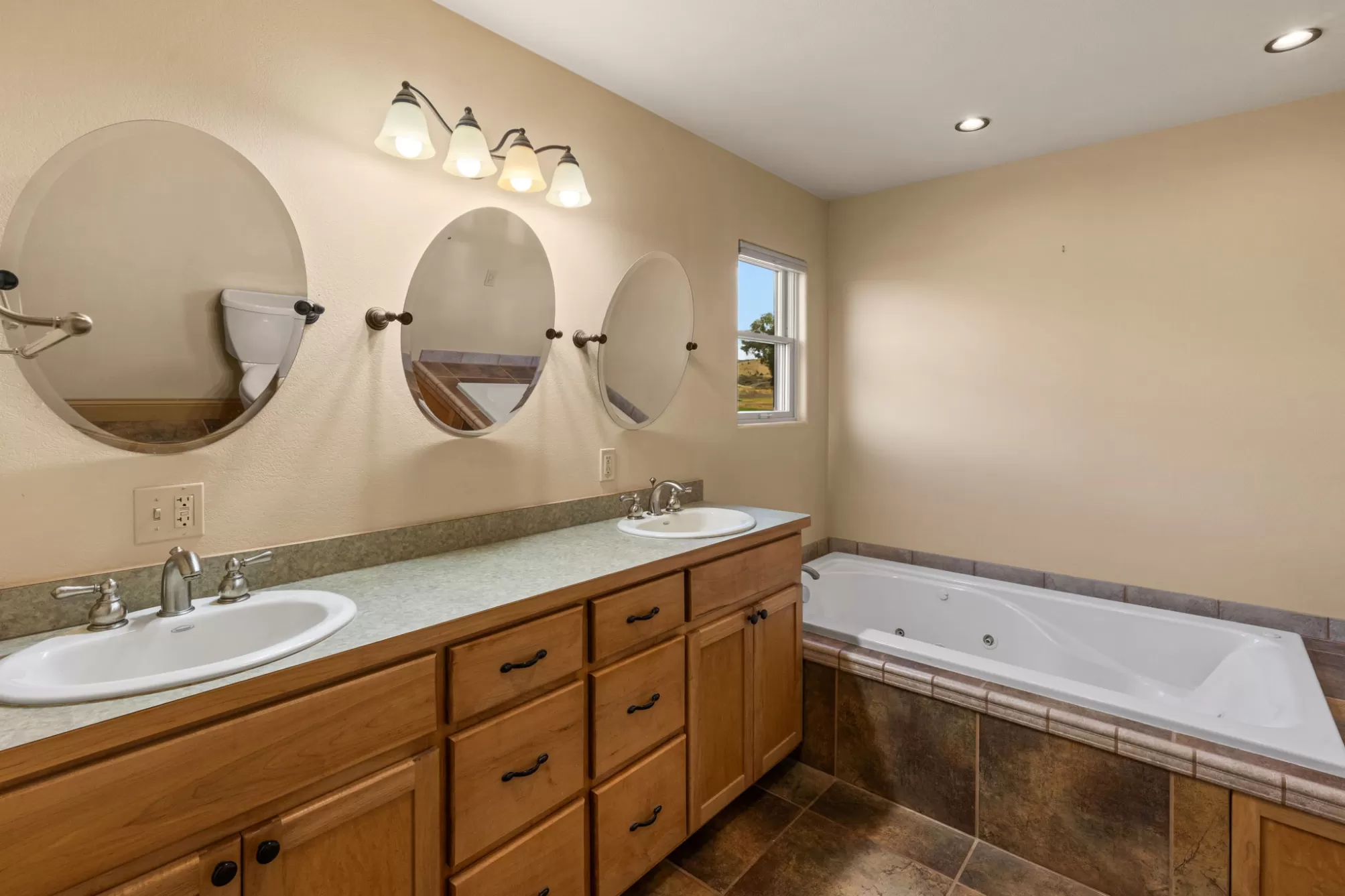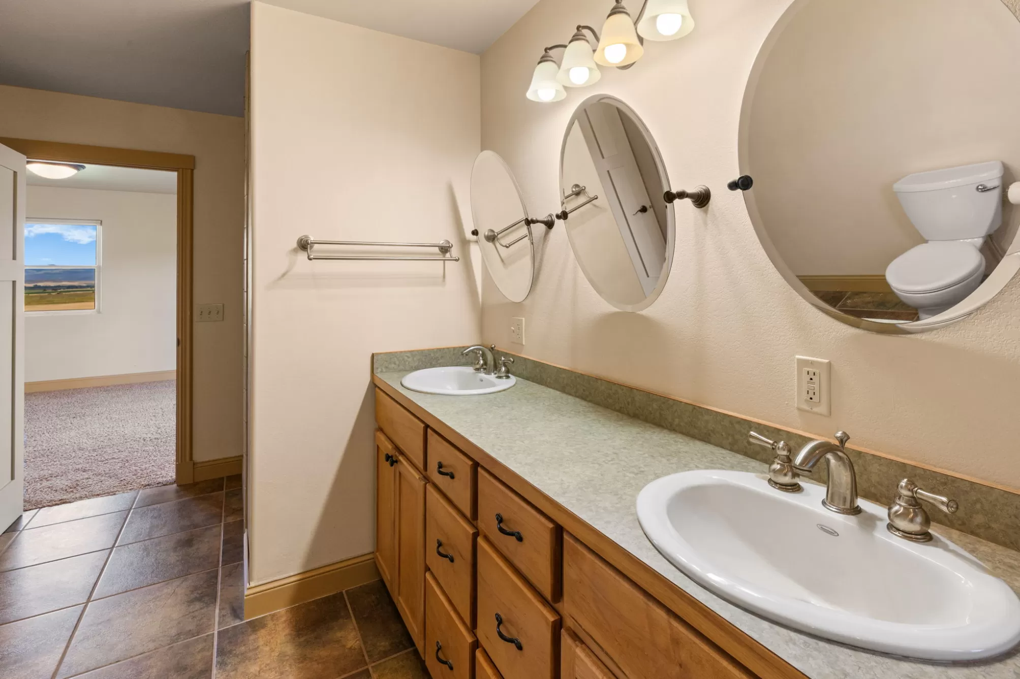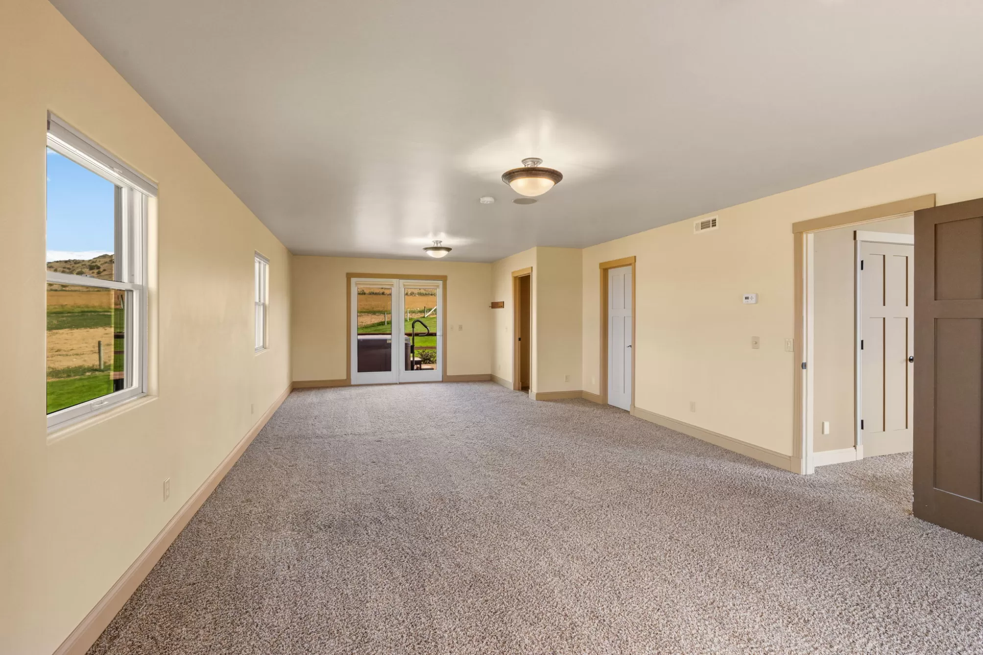 This custom-built residence offers over 3,500 square feet of thoughtfully designed living space on just over 5 acres with irrigation water and handlines. The beautifully landscaped grounds feature a manicured lawn with an underground sprinkler system and a wrap-around deck extending along three sides of the home, ideal for enjoying the surrounding views of the Ruby Mountains. Inside, the home includes 4 bedrooms, with one well-suited for use as an office. The primary suite offers a walk-in closet, bathroom with a jetted tub, and private deck access to the hot tub. Two additional upstairs bedrooms are generously sized, each with large closets and private balconies. The formal dining room provides direct access to the deck, creating excellent space for gathering and entertaining. The kitchen is equipped with granite countertops, stainless steel appliances, and abundant cabinetry. The main living area showcases vaulted ceilings, expansive windows that frame the mountain views, and a gas fireplace. Additional features include central air conditioning, central vacuum, and a landscaped yard with underground sprinklers. This property combines comfort, functionality, and scenic beauty with ample space both indoors and outdoors.